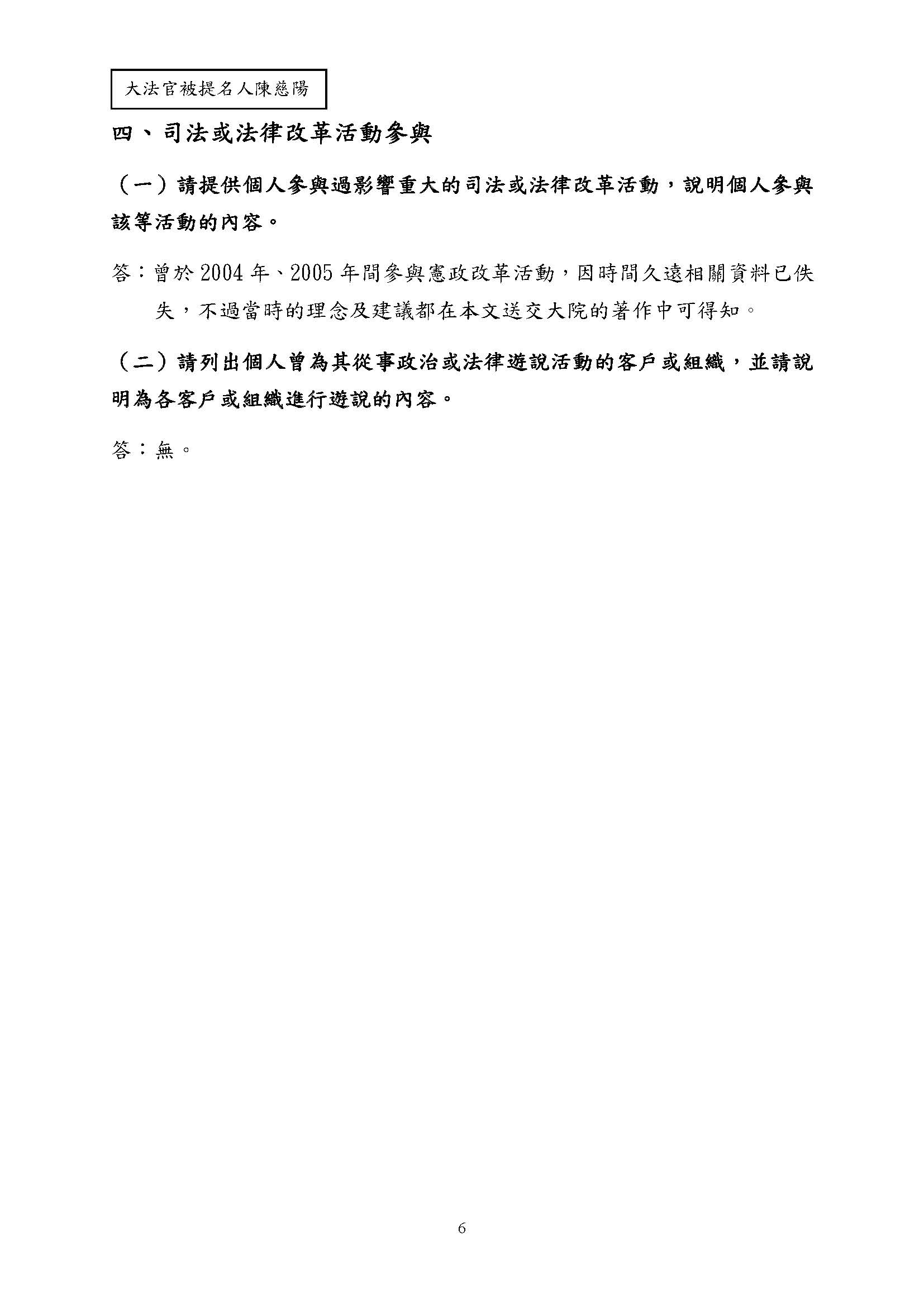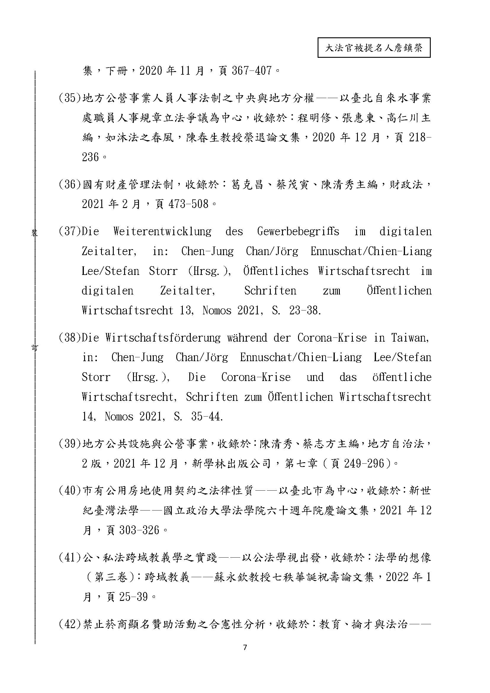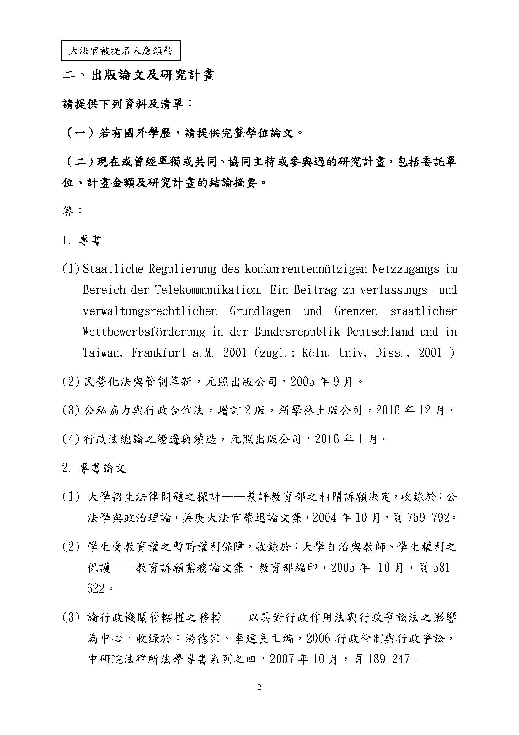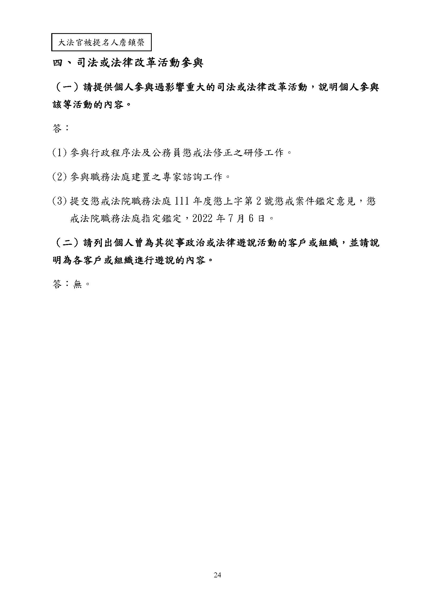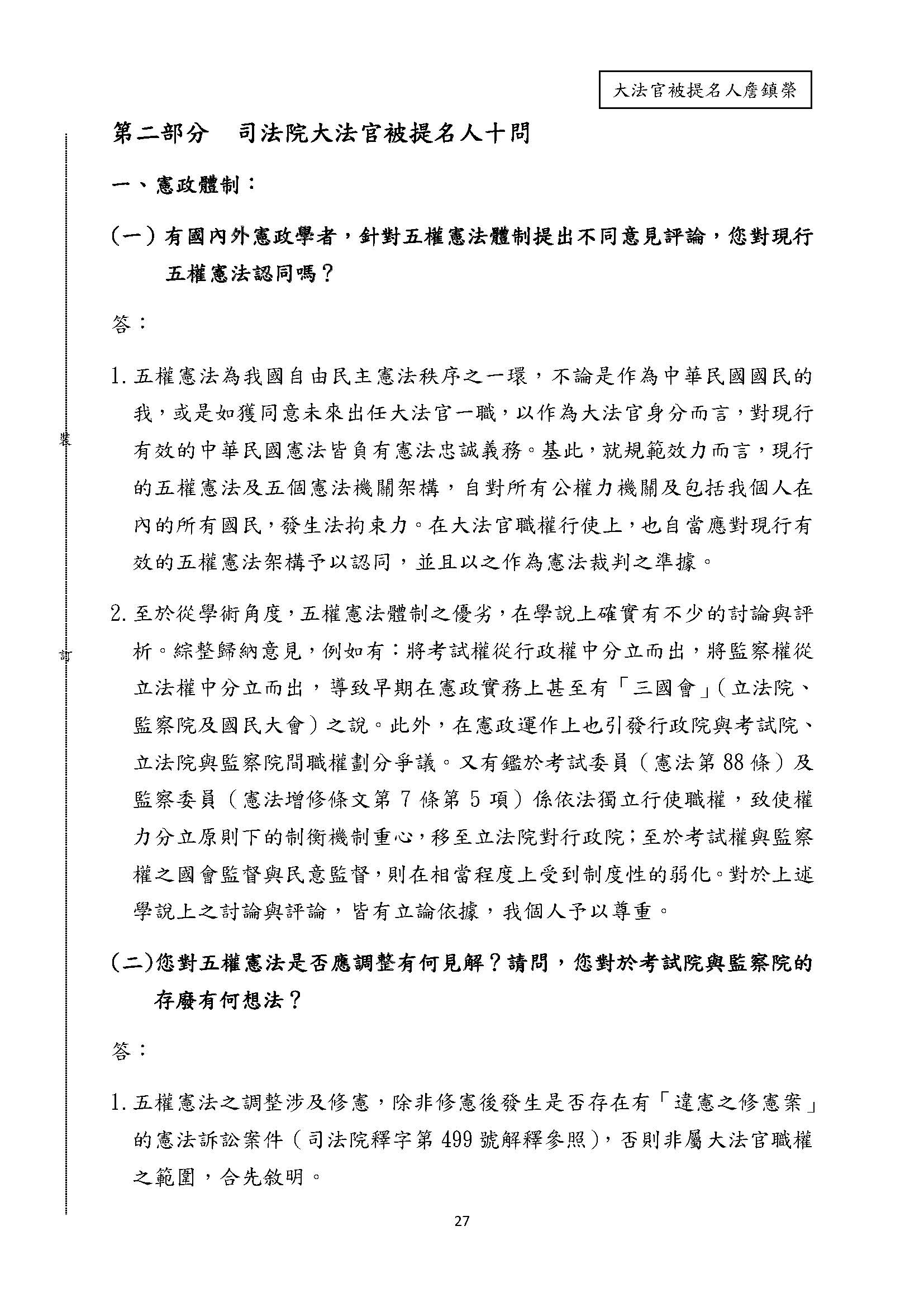 七、司法院大法官被提名人詹鎮榮書面資料: