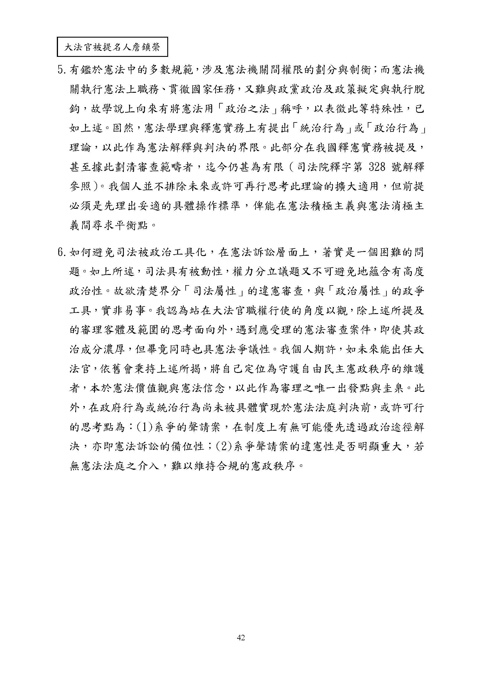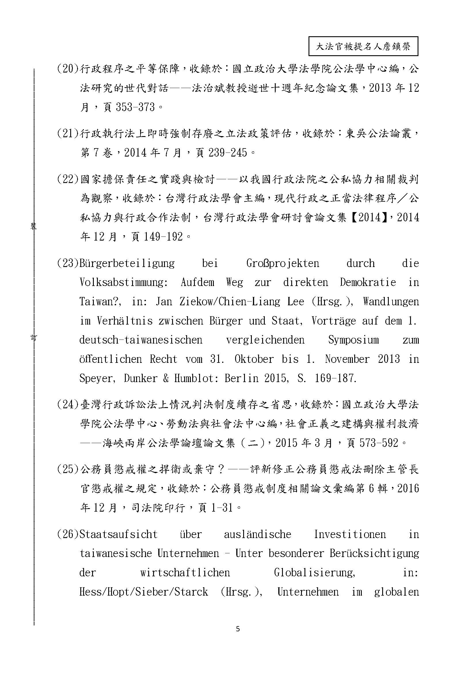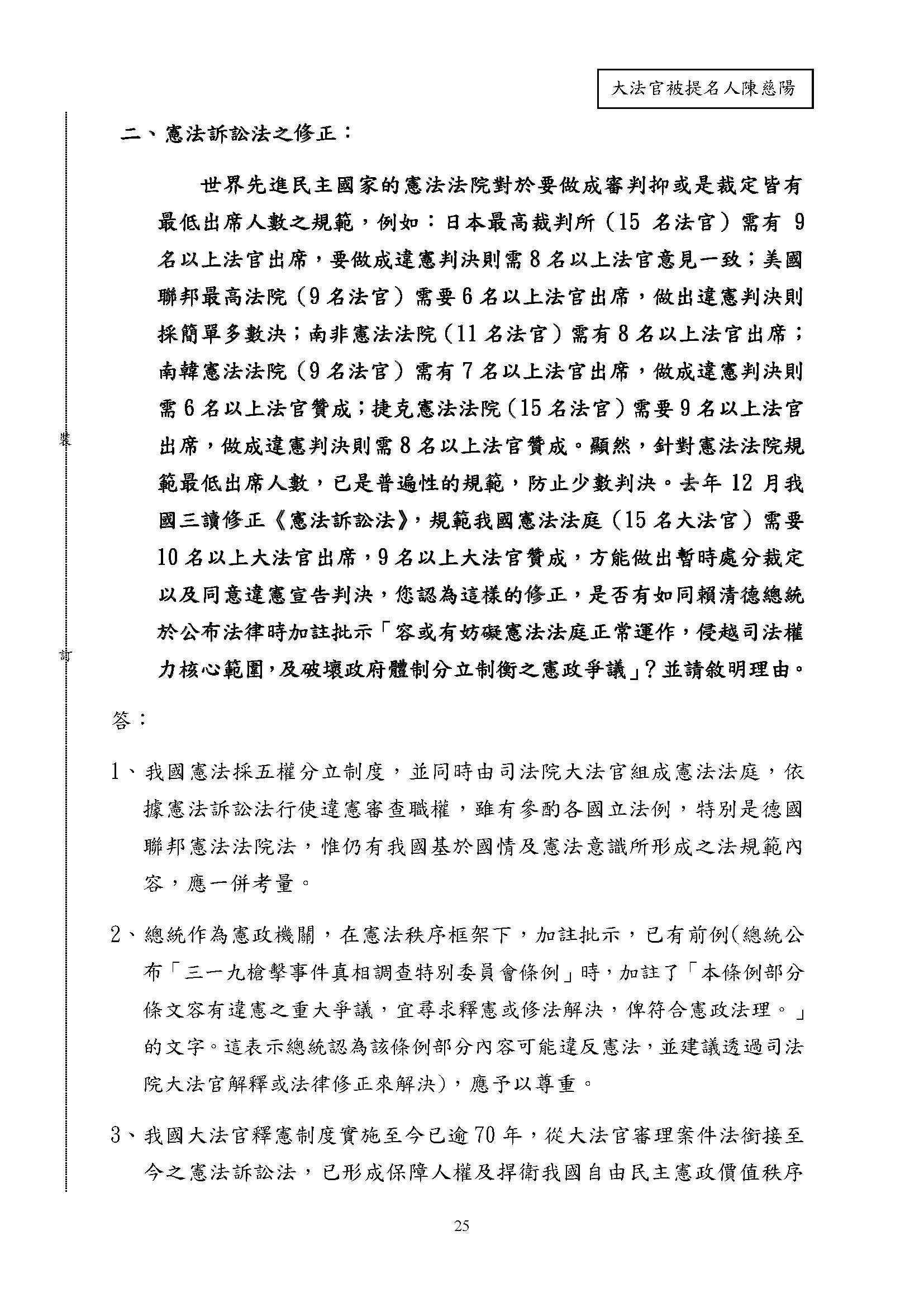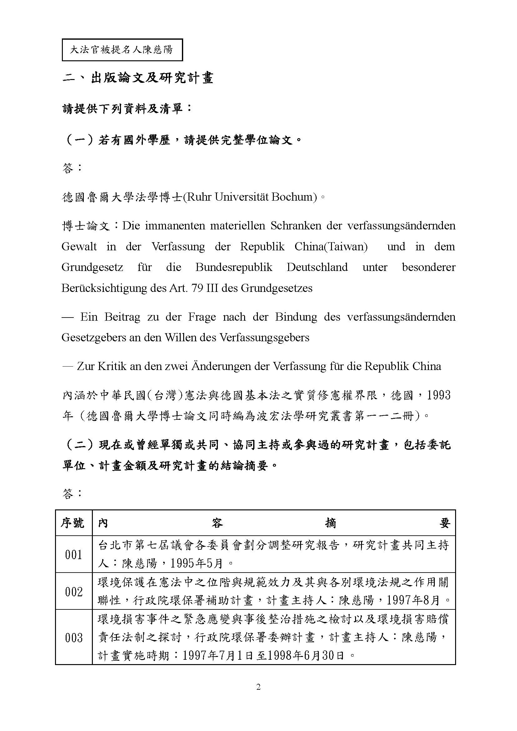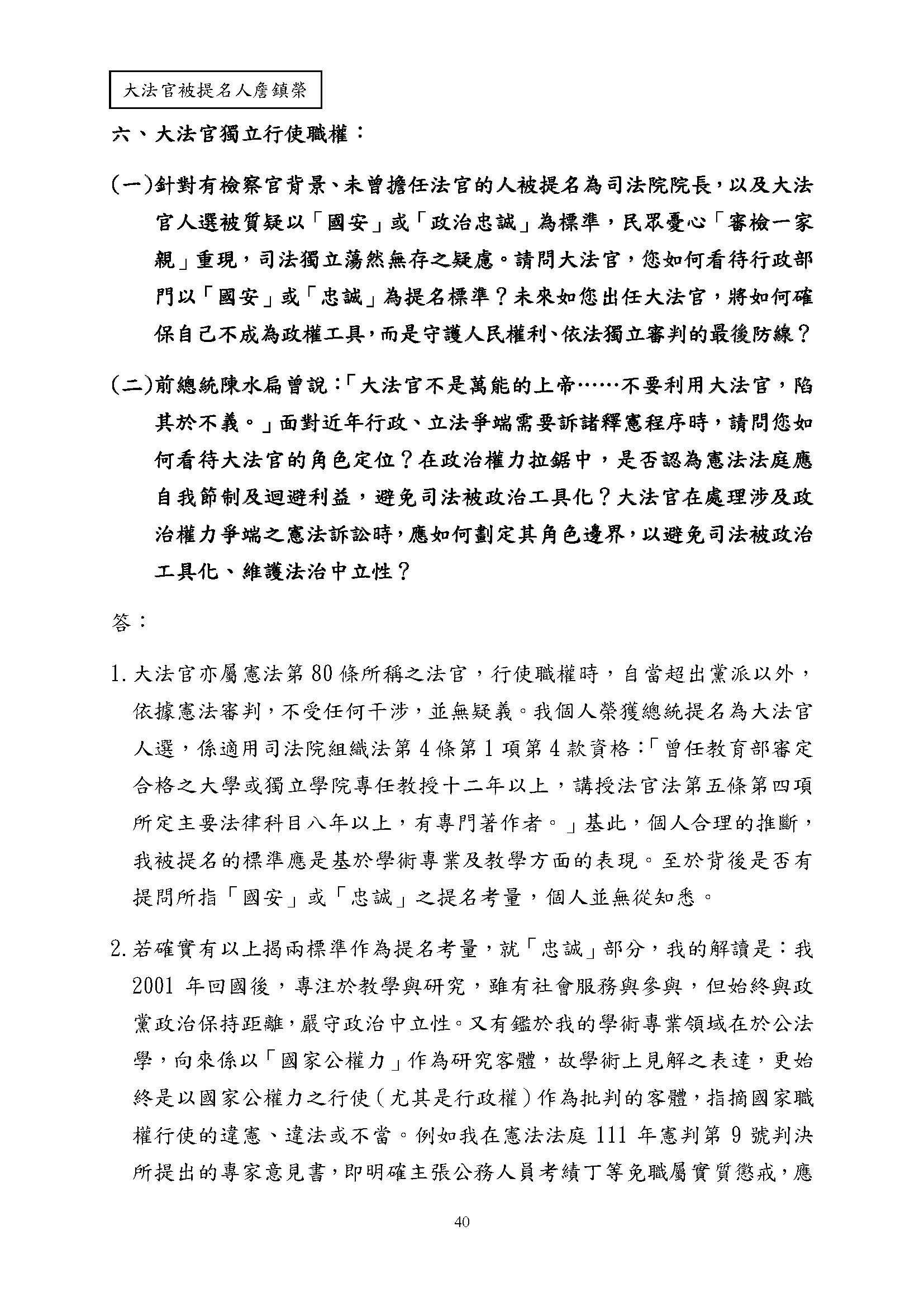 七、司法院大法官被提名人詹鎮榮書面資料:
