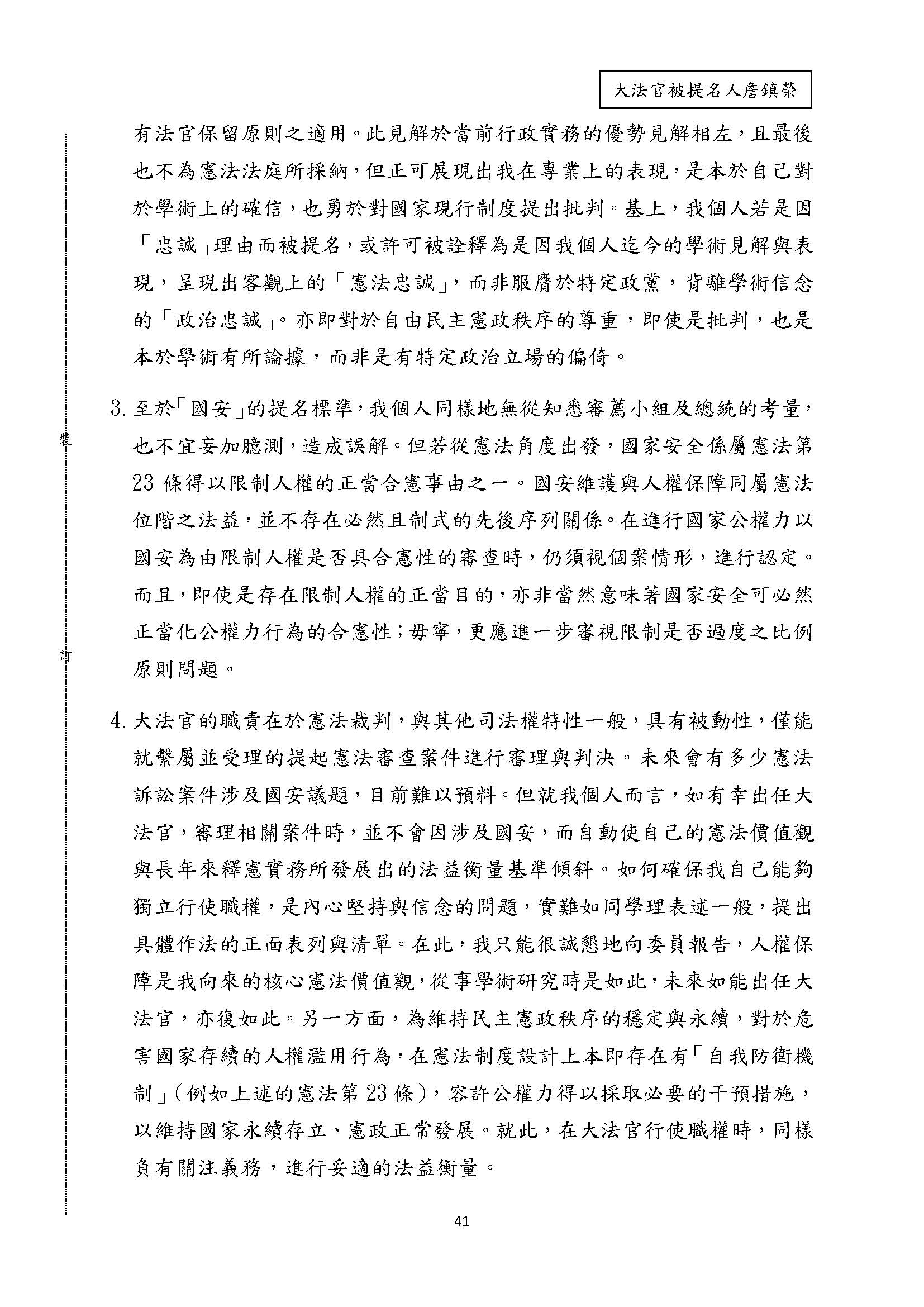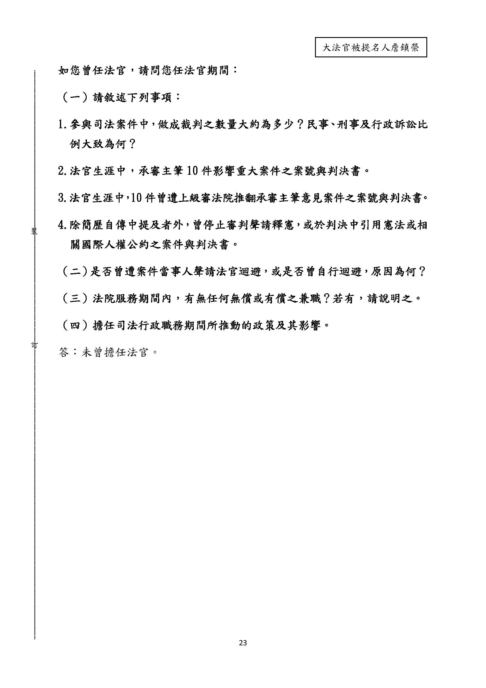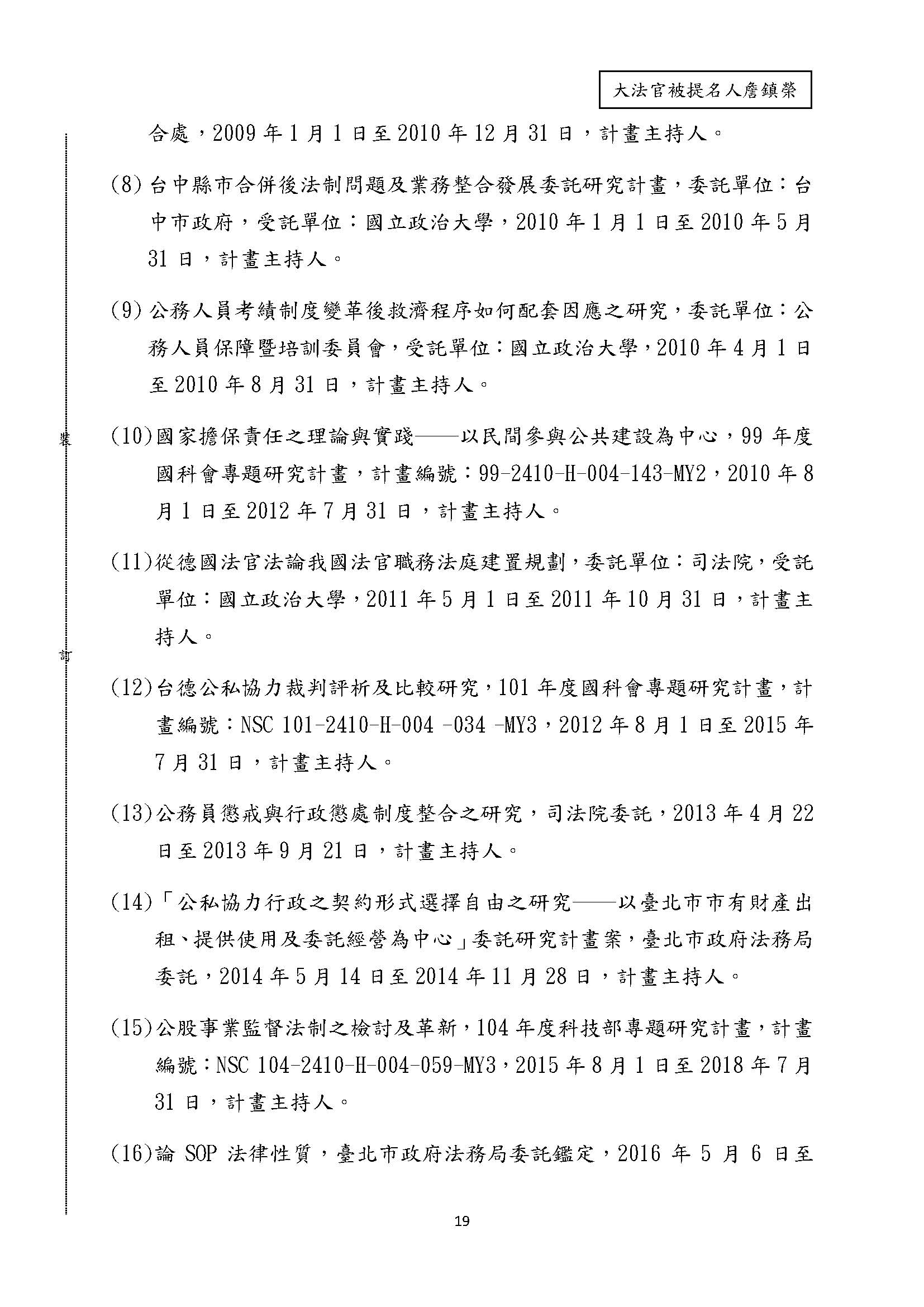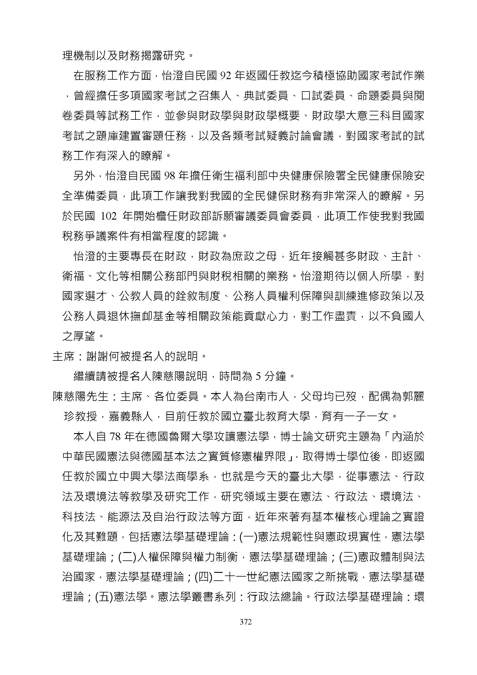 七、司法院大法官被提名人詹鎮榮書面資料: