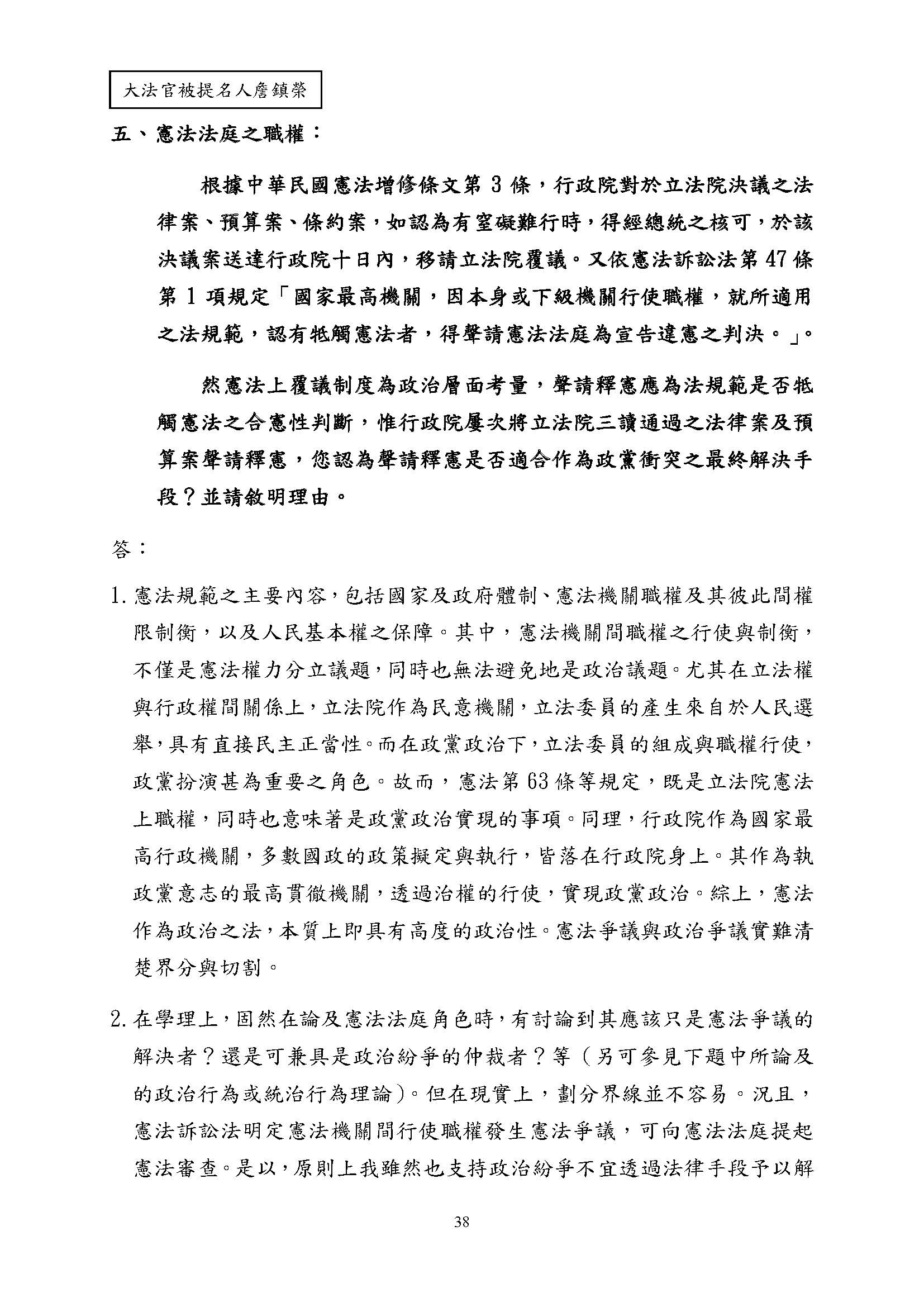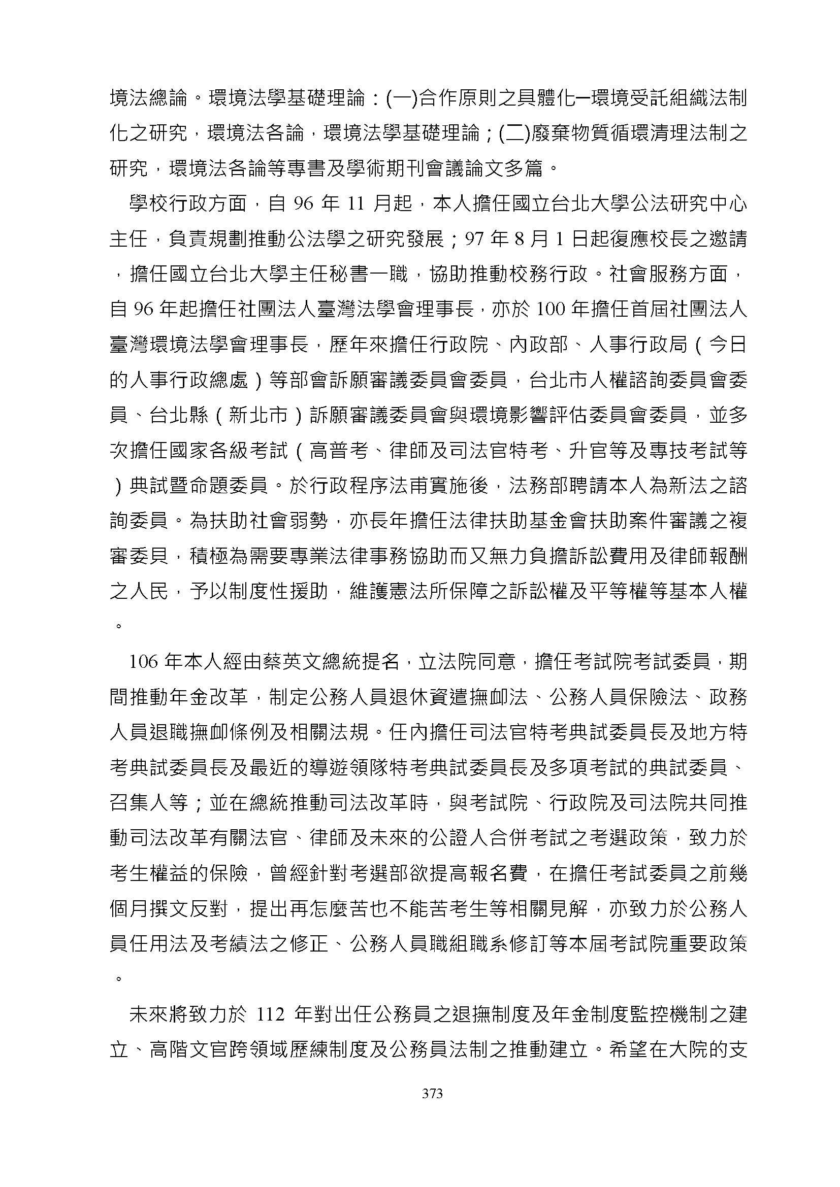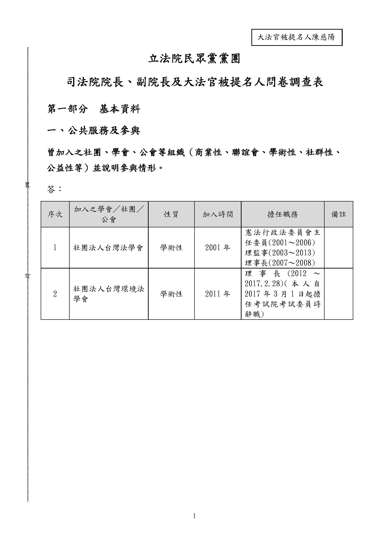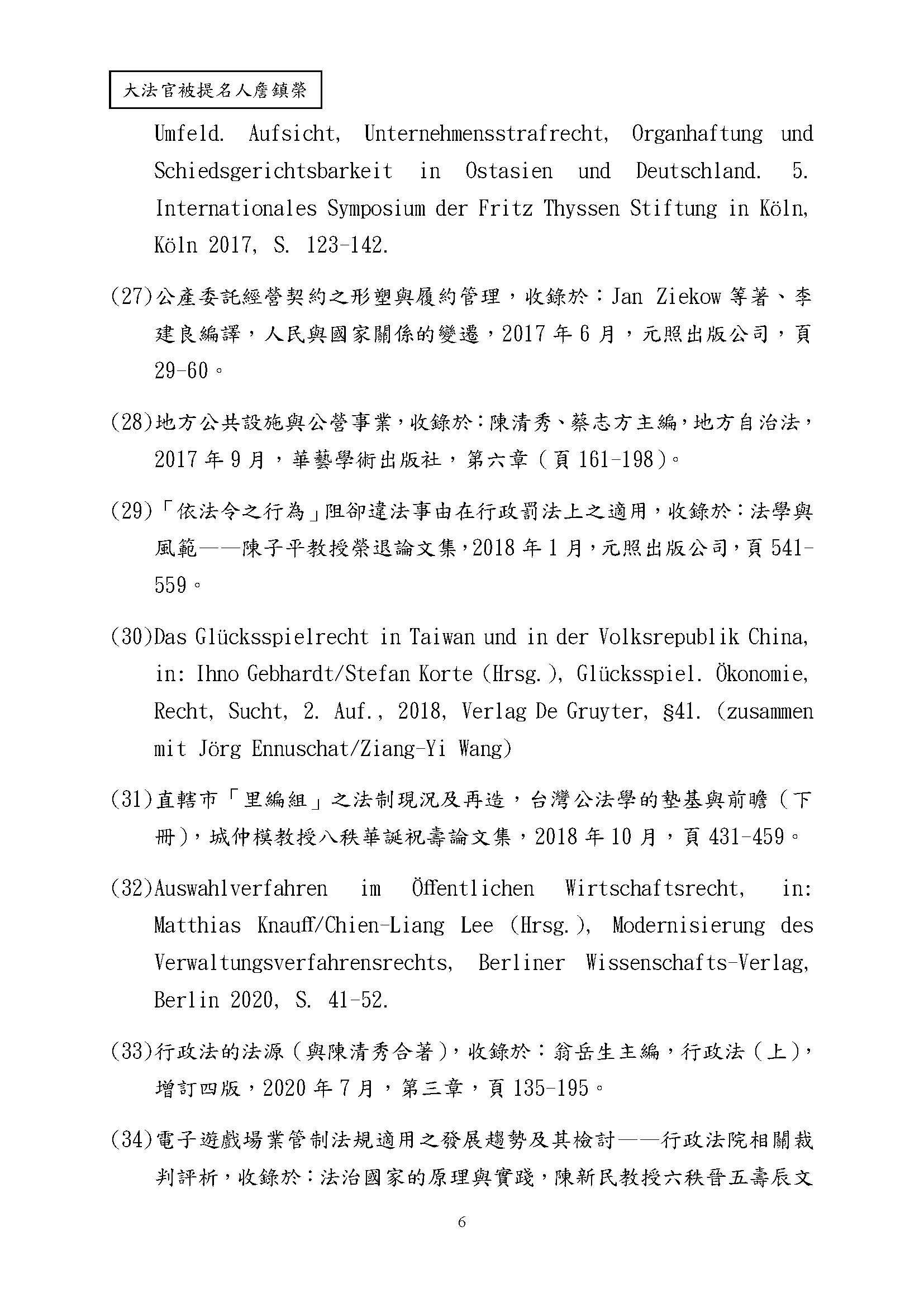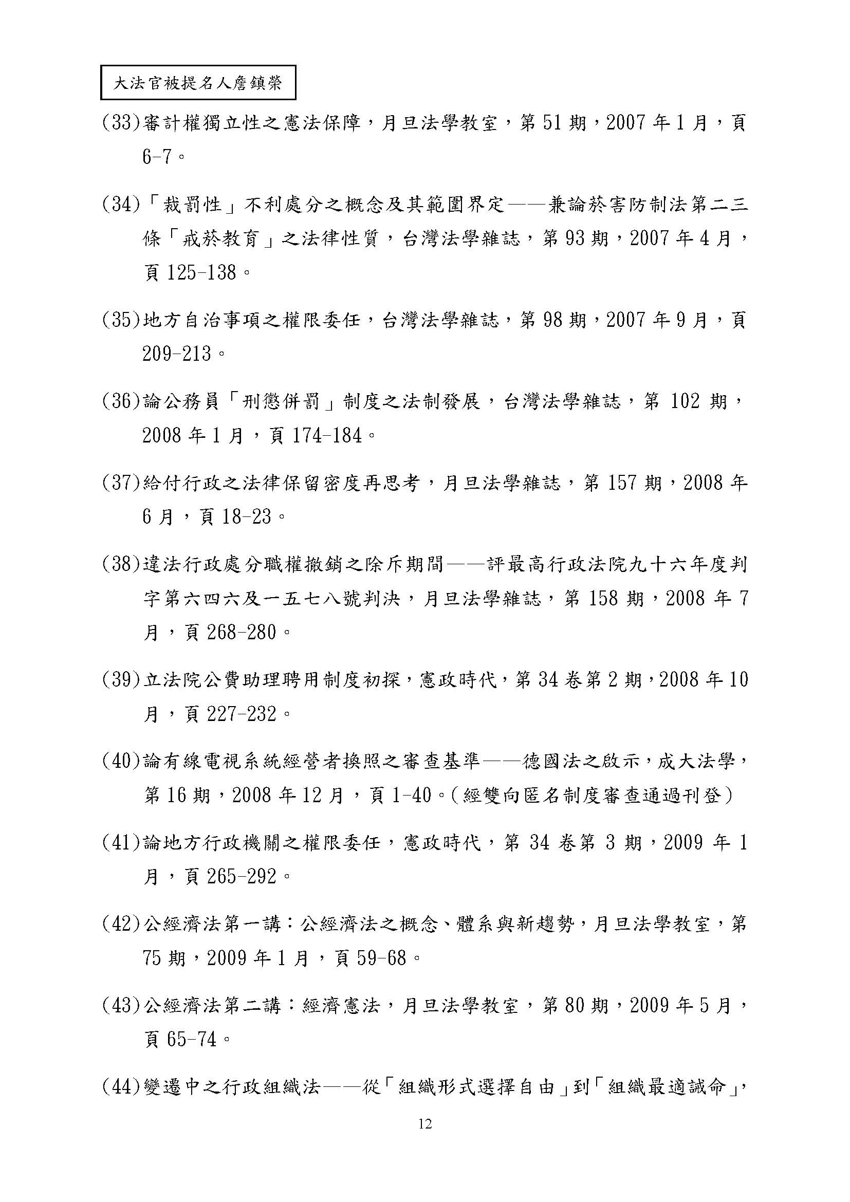 七、司法院大法官被提名人詹鎮榮書面資料: