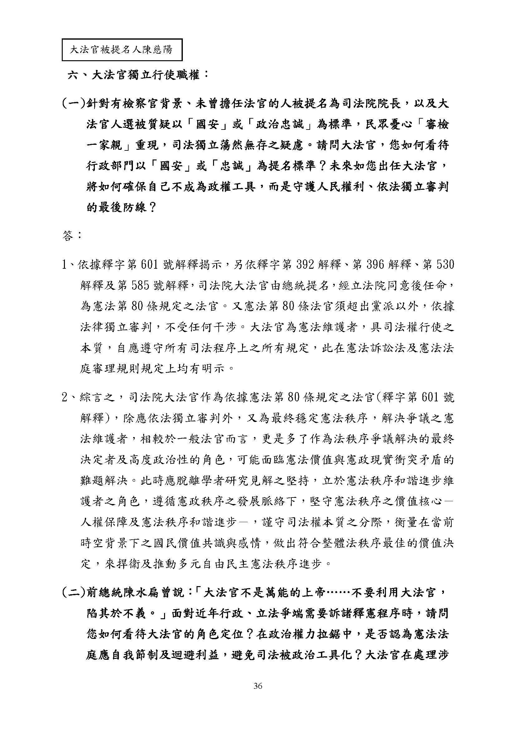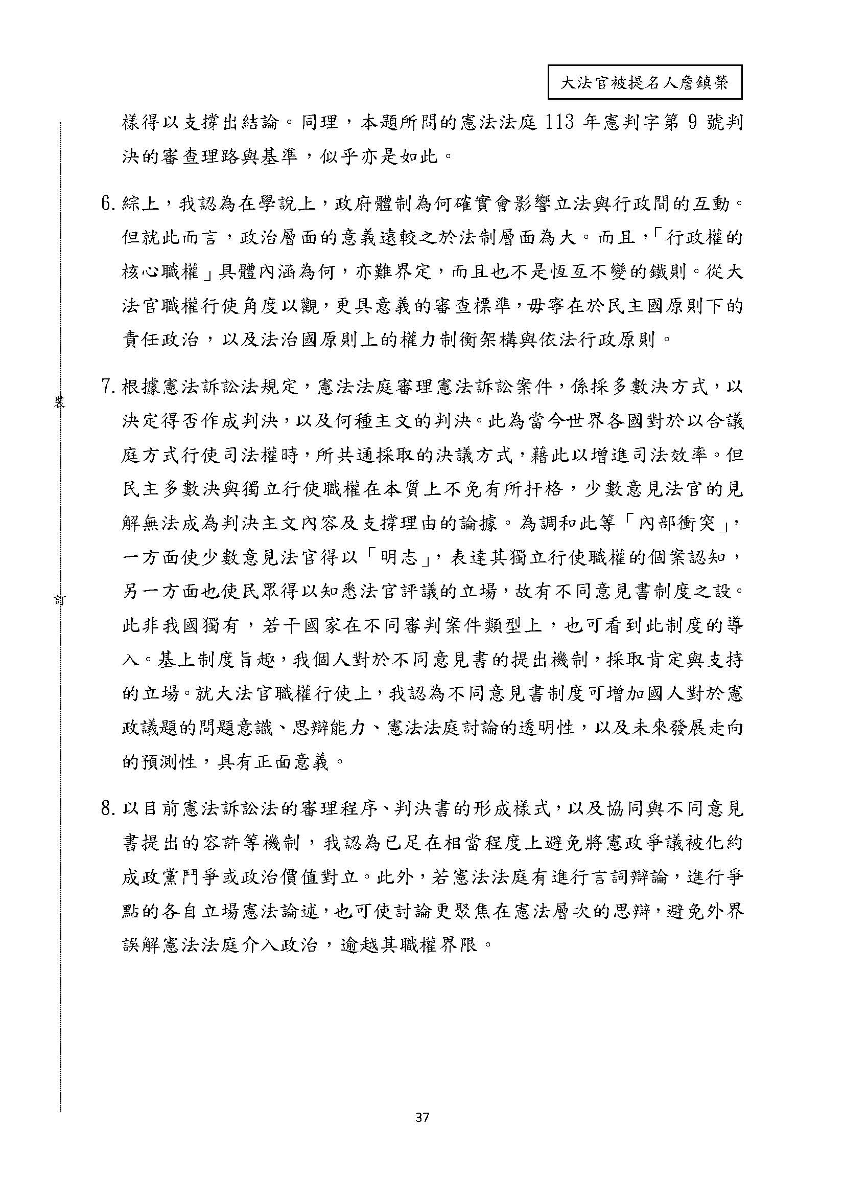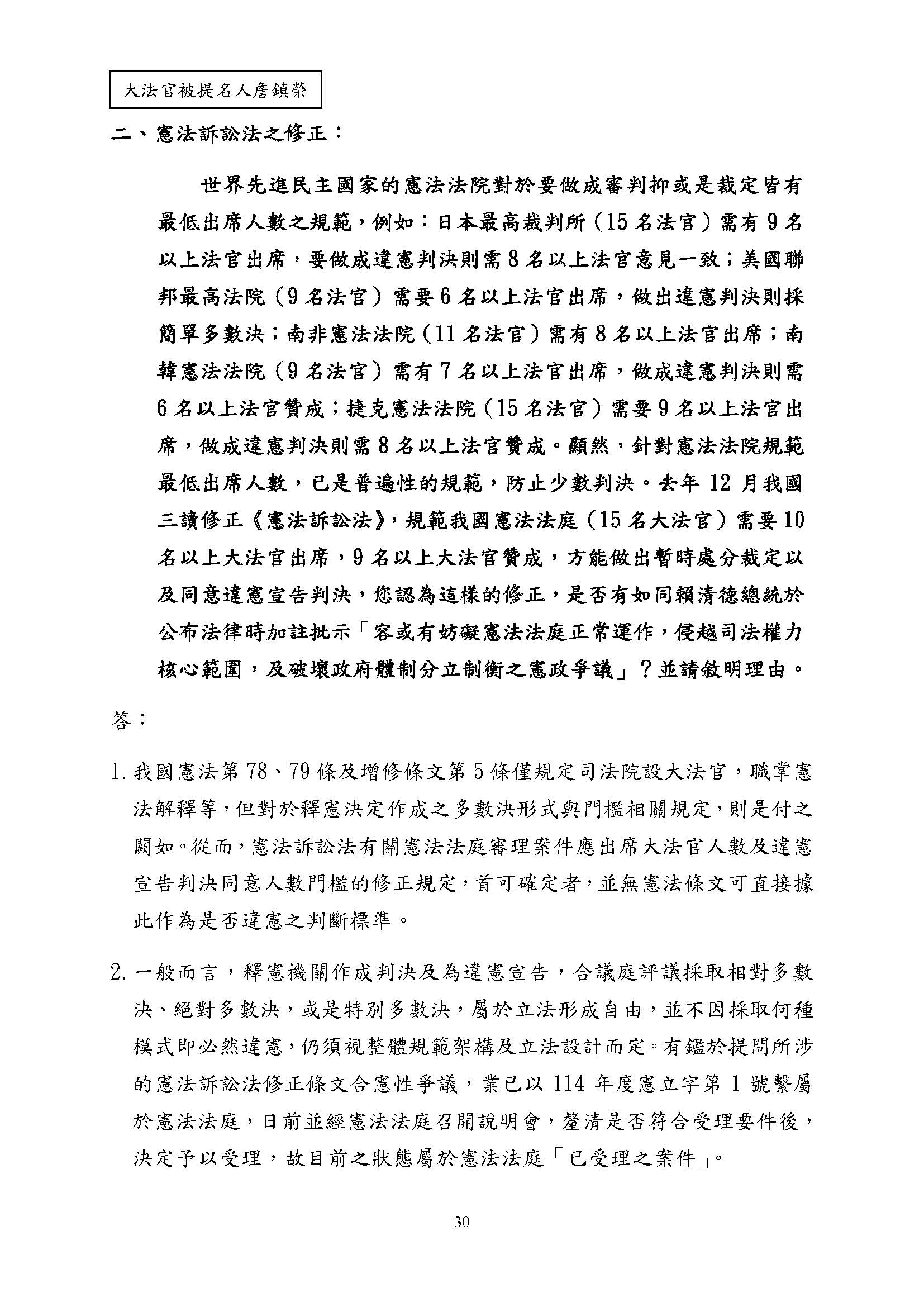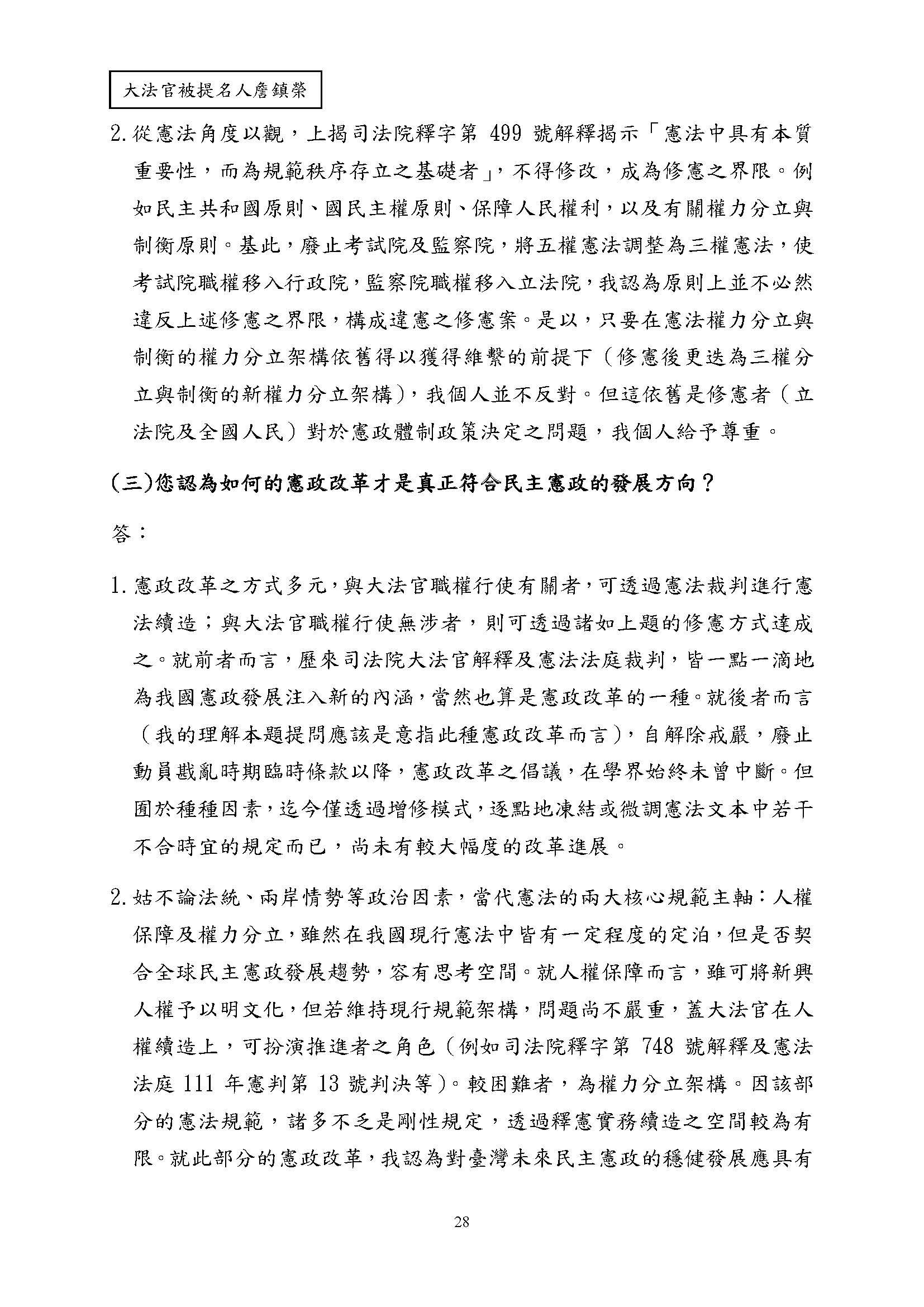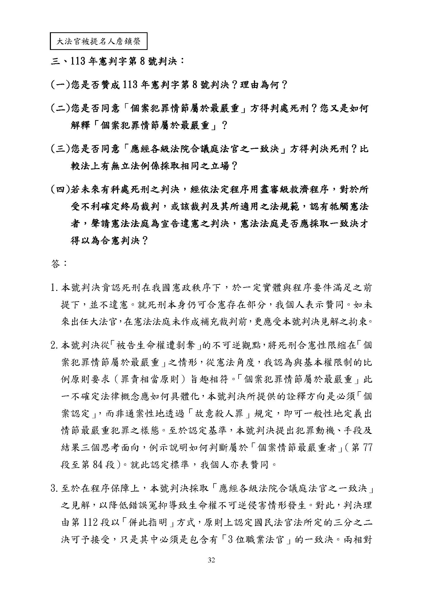 七、司法院大法官被提名人詹鎮榮書面資料: