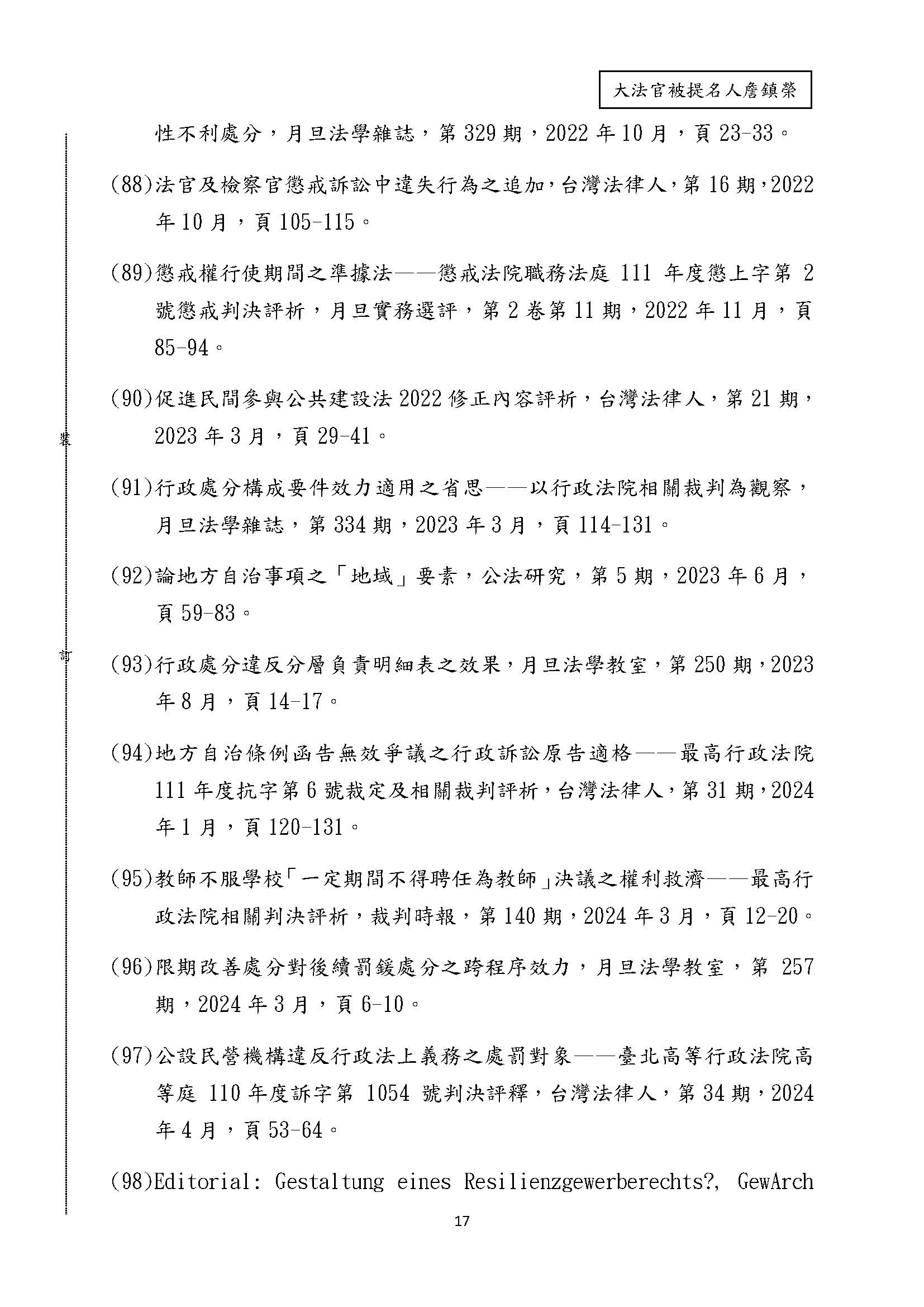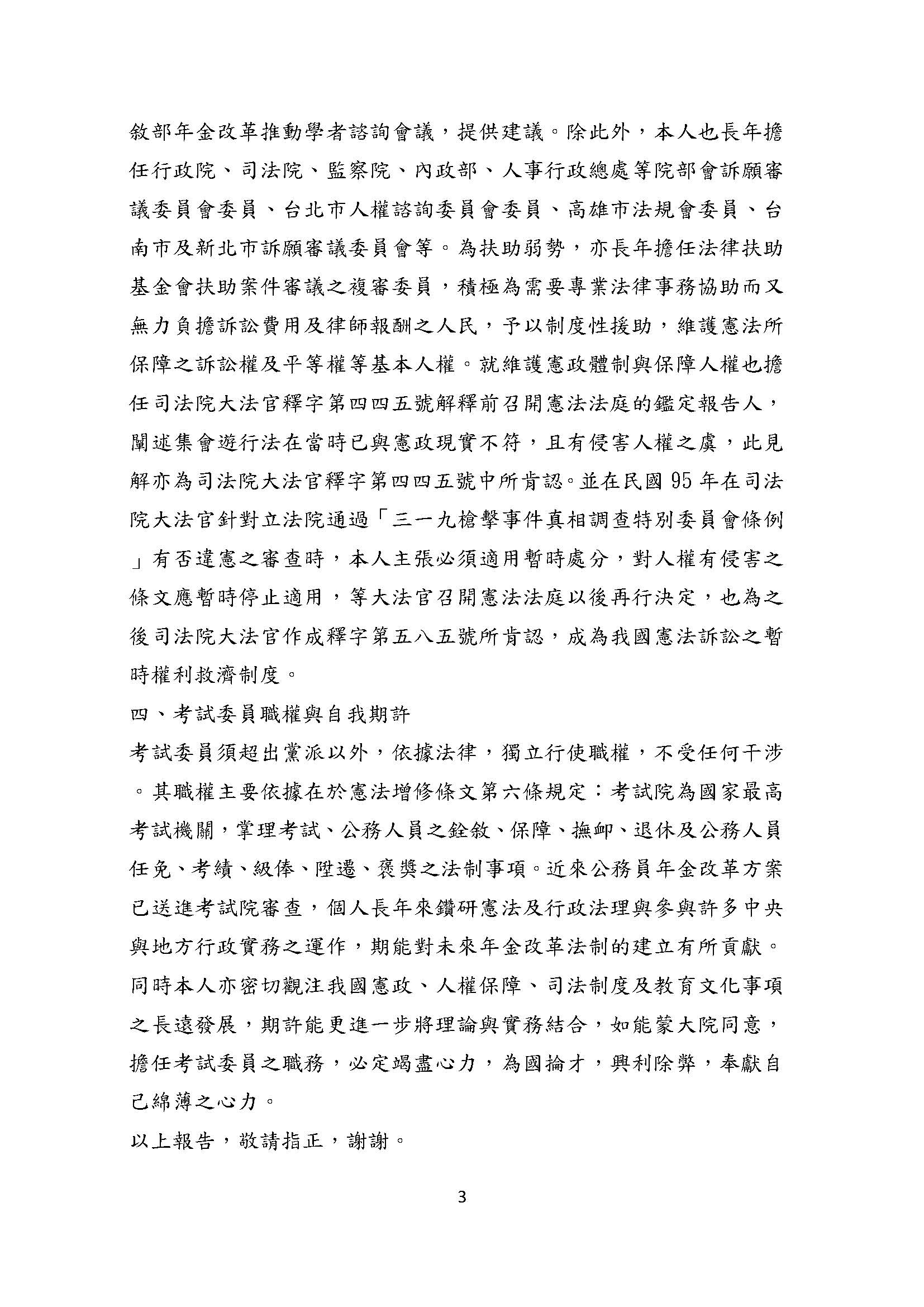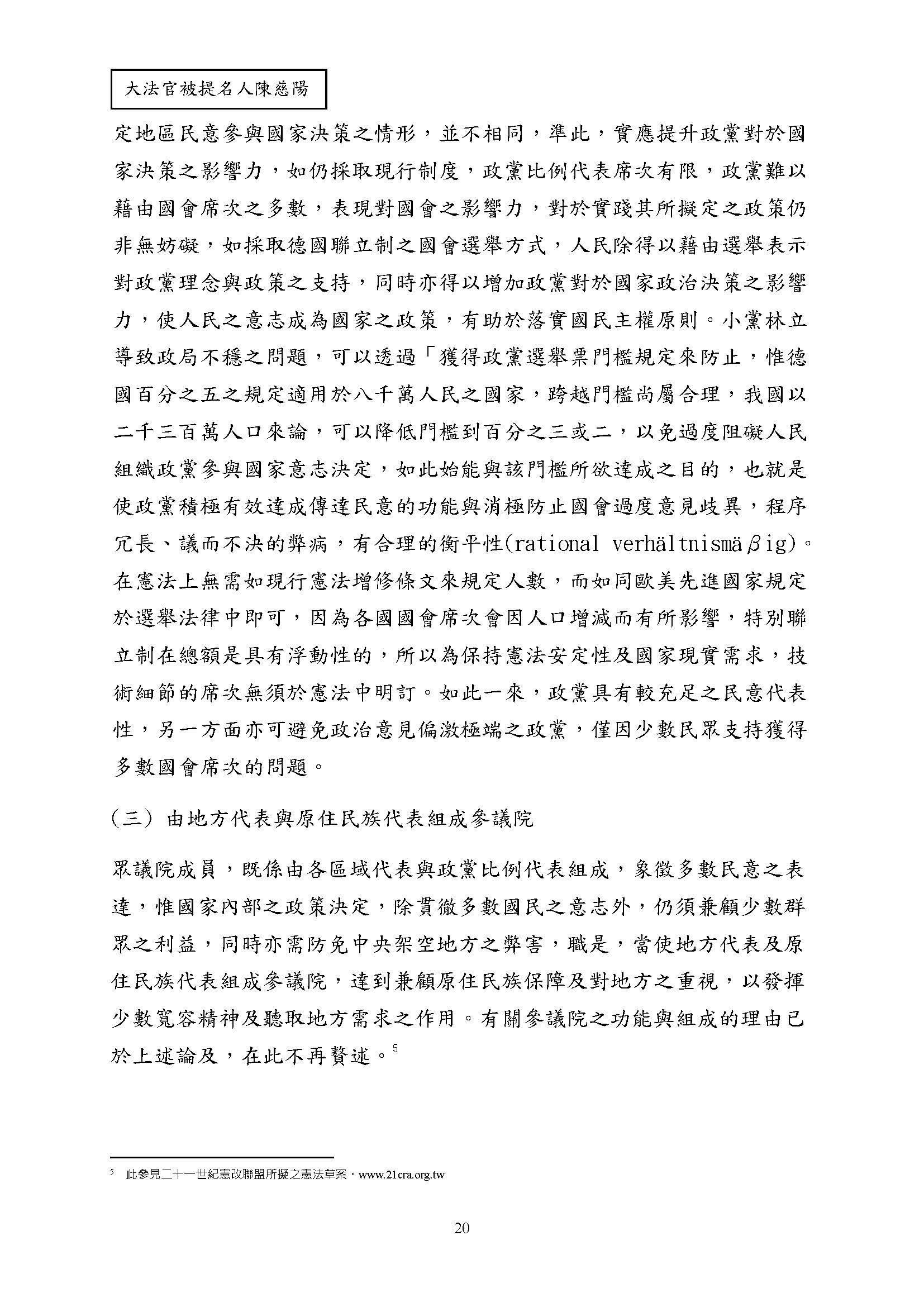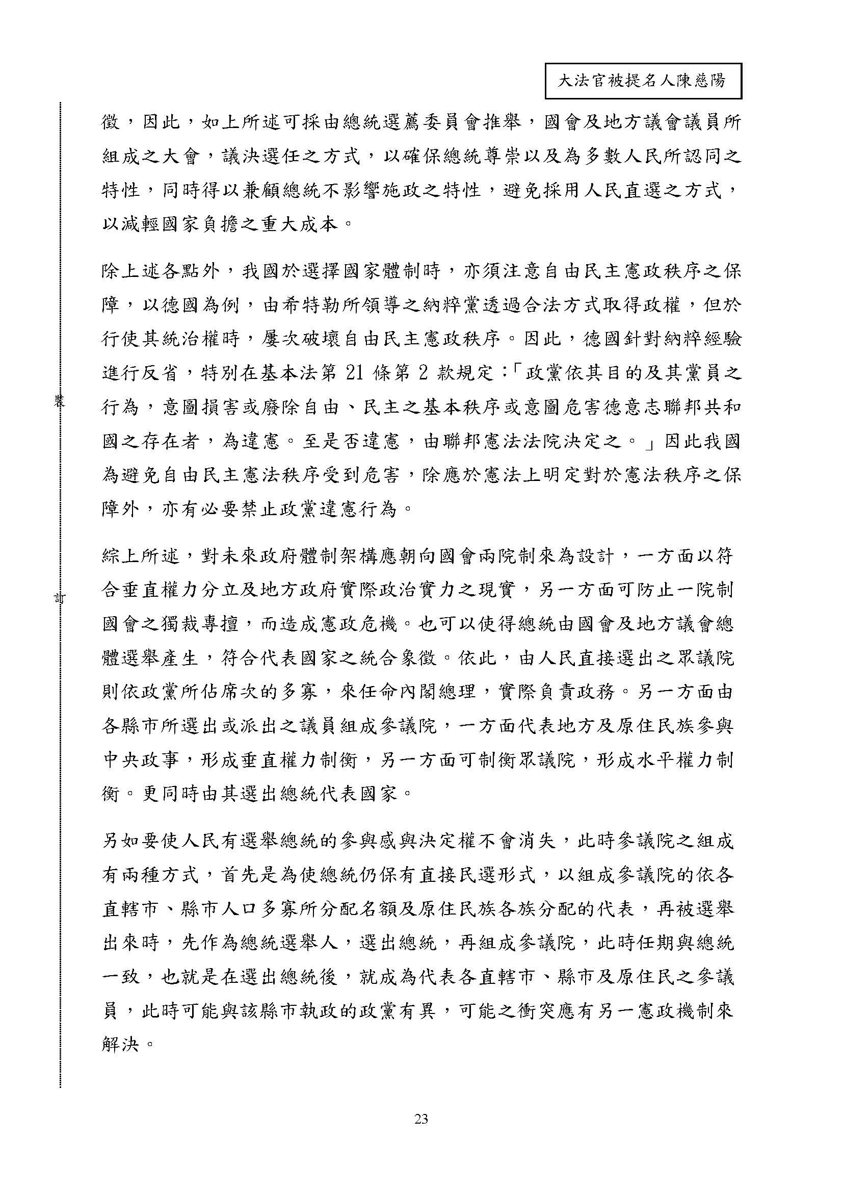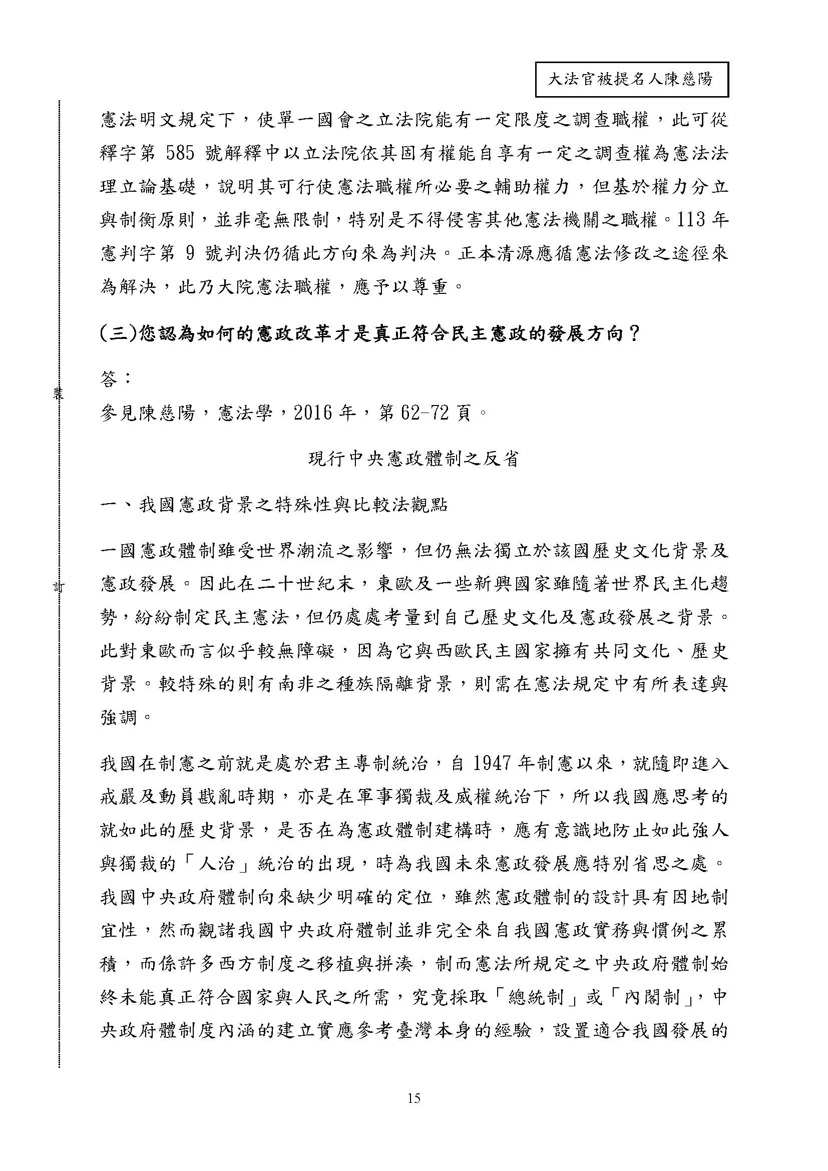 七、司法院大法官被提名人詹鎮榮書面資料: