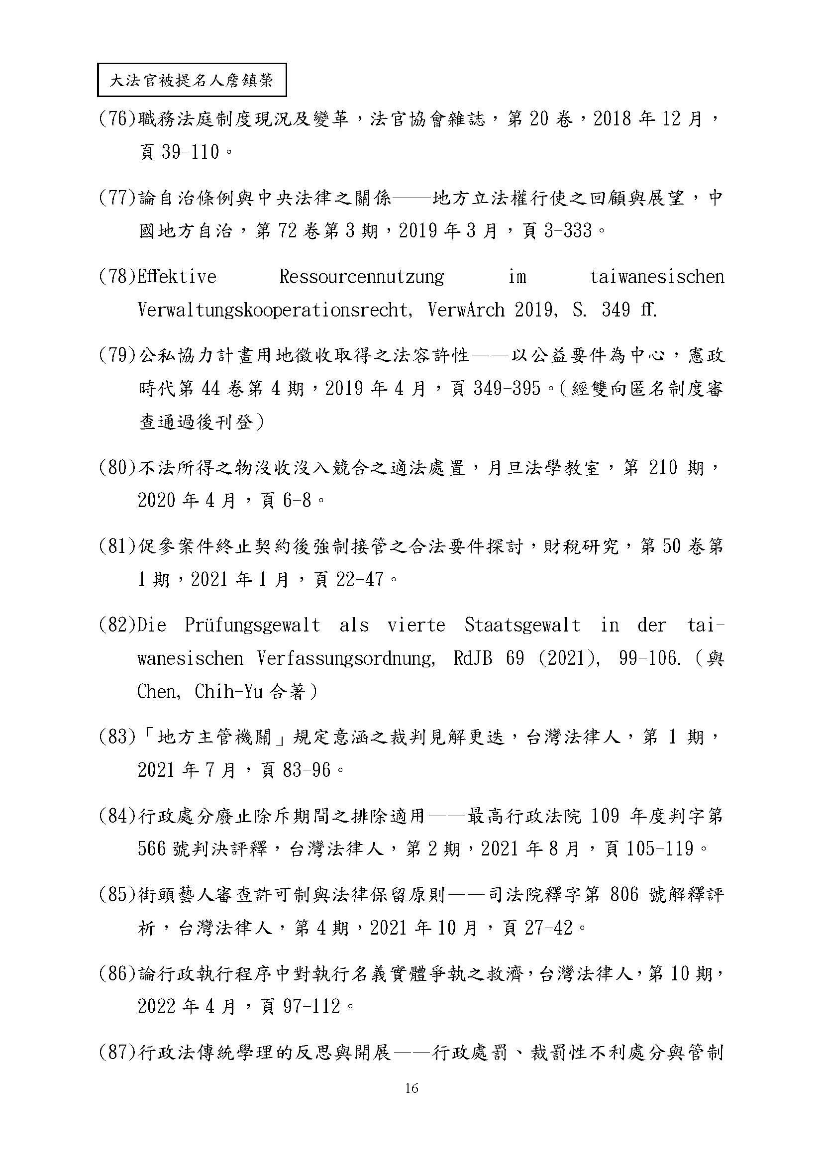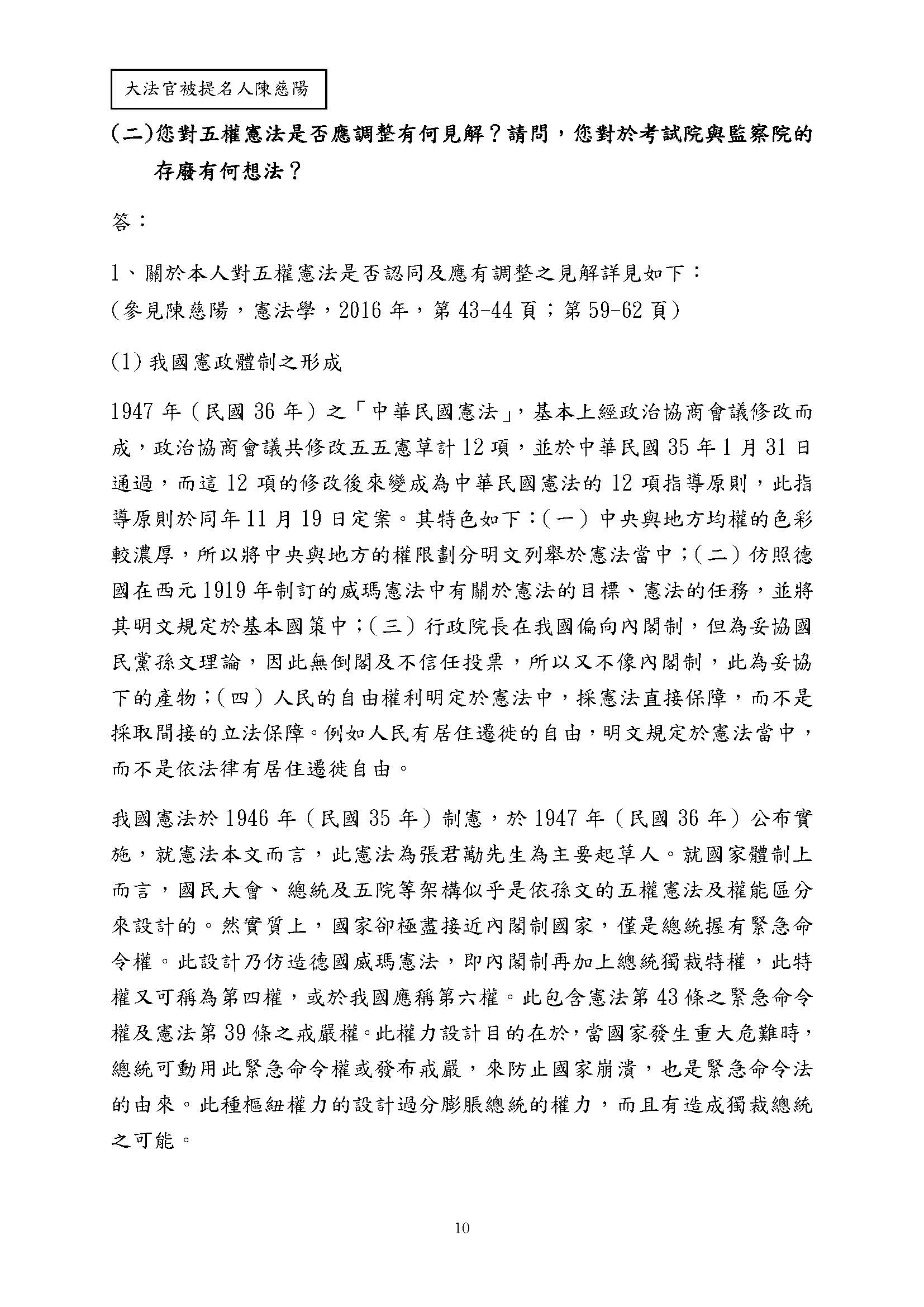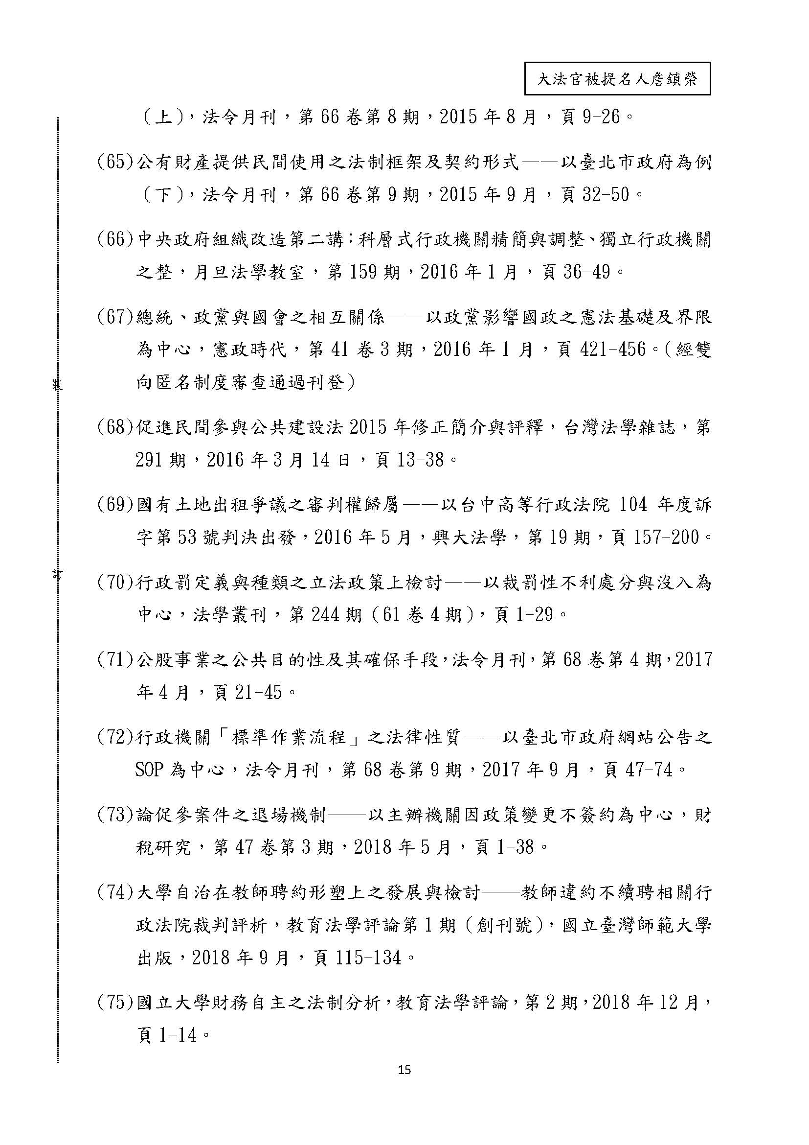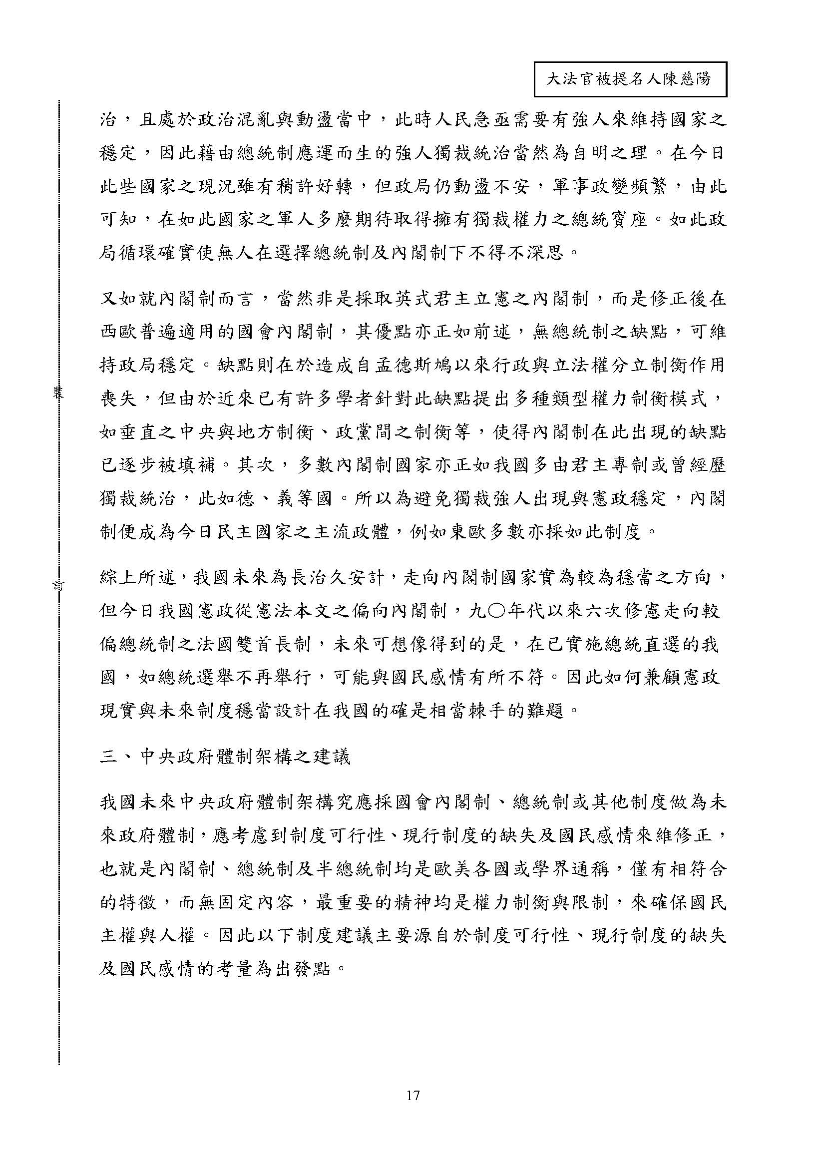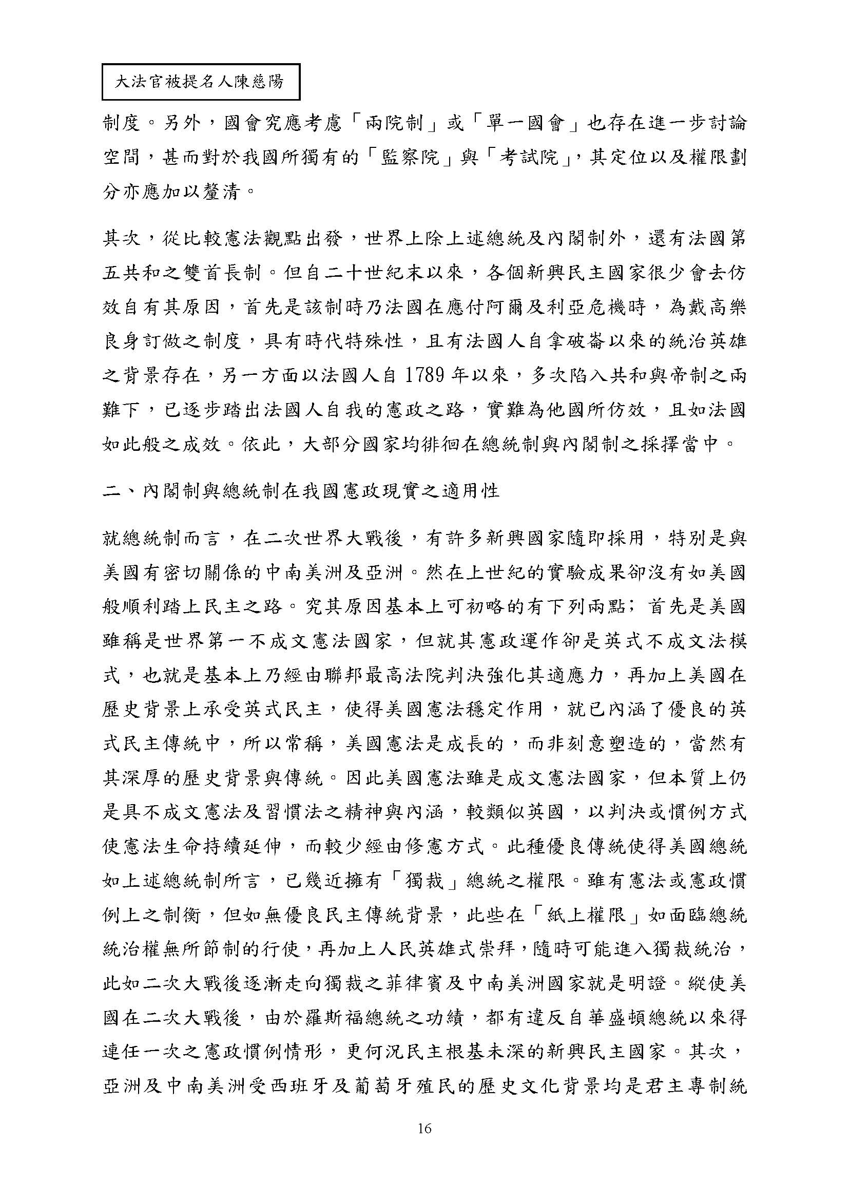 七、司法院大法官被提名人詹鎮榮書面資料: