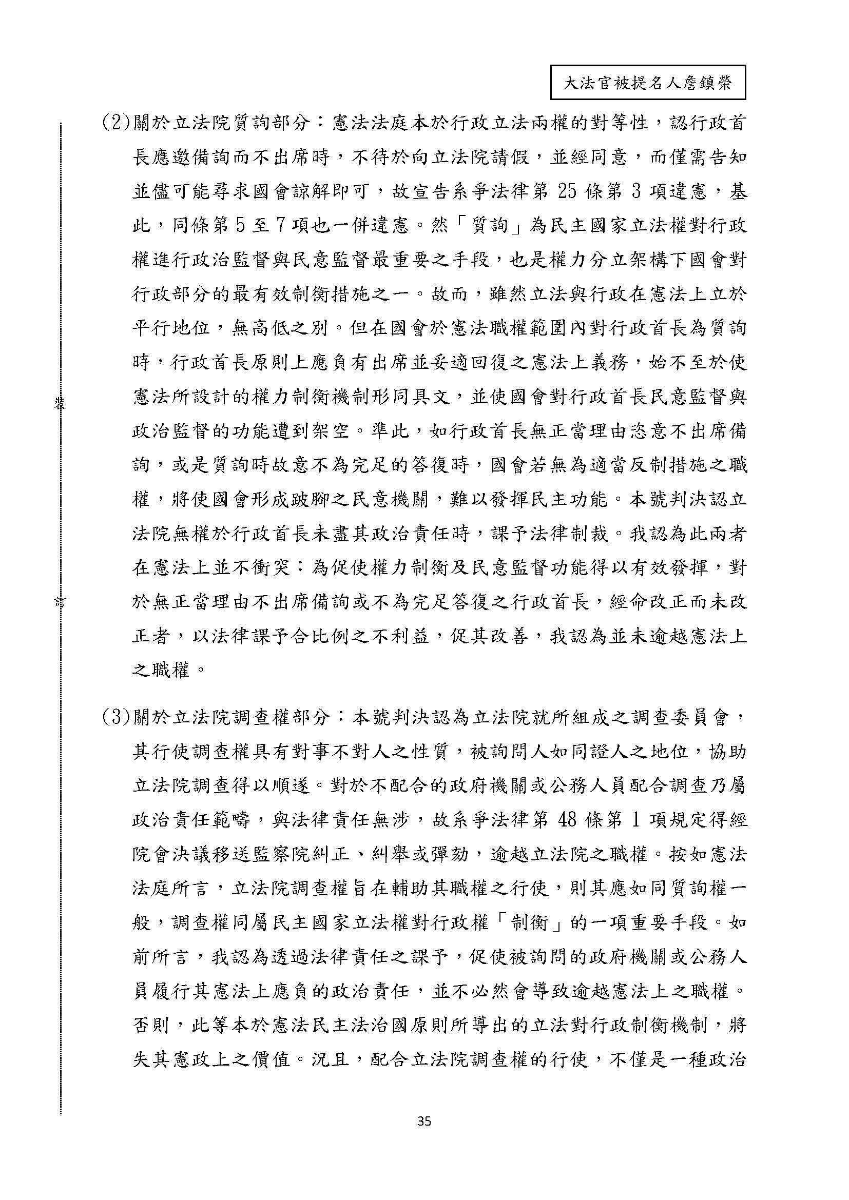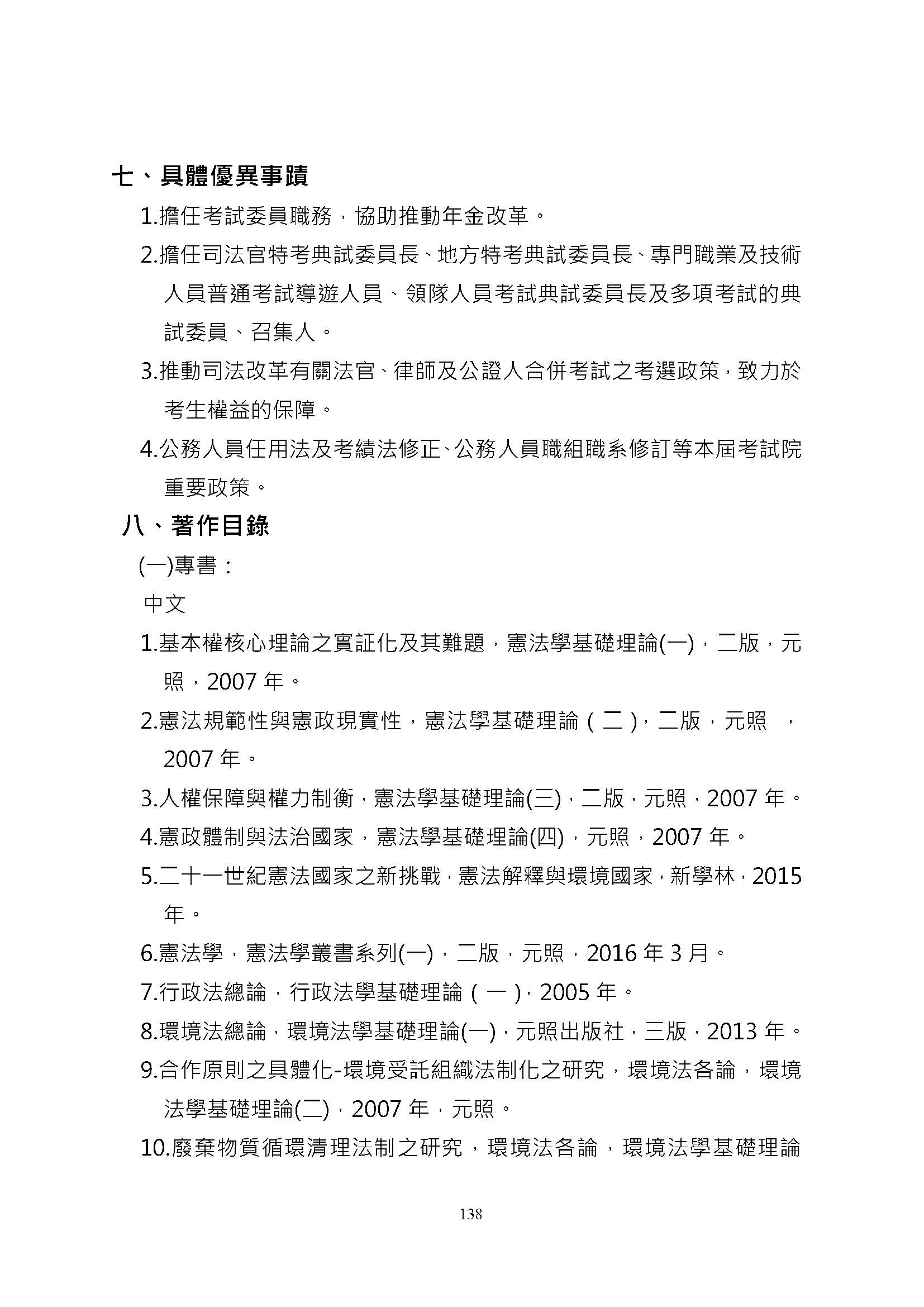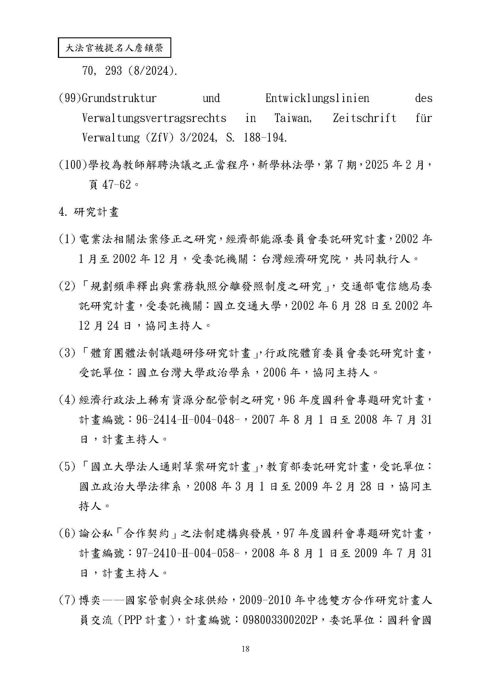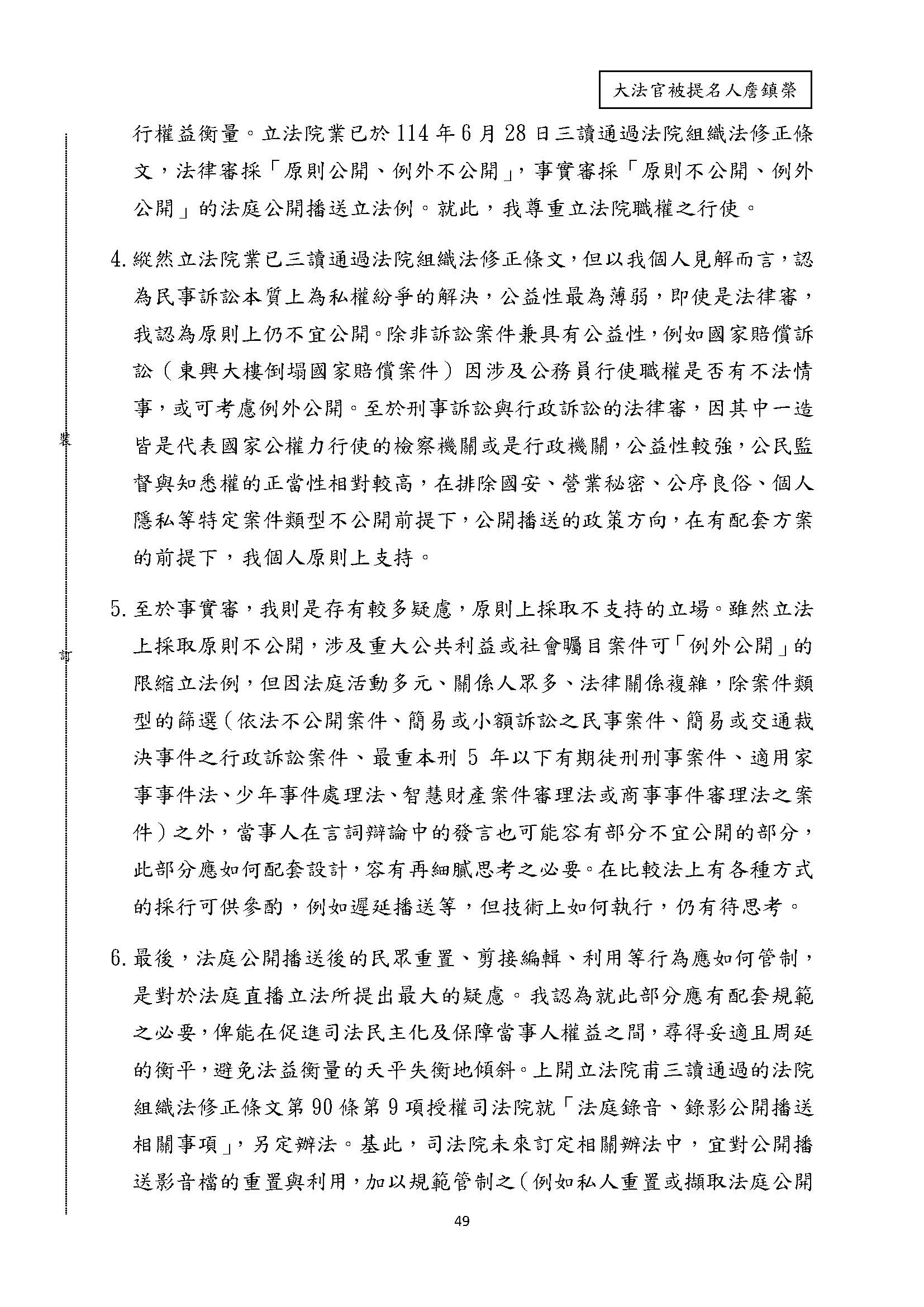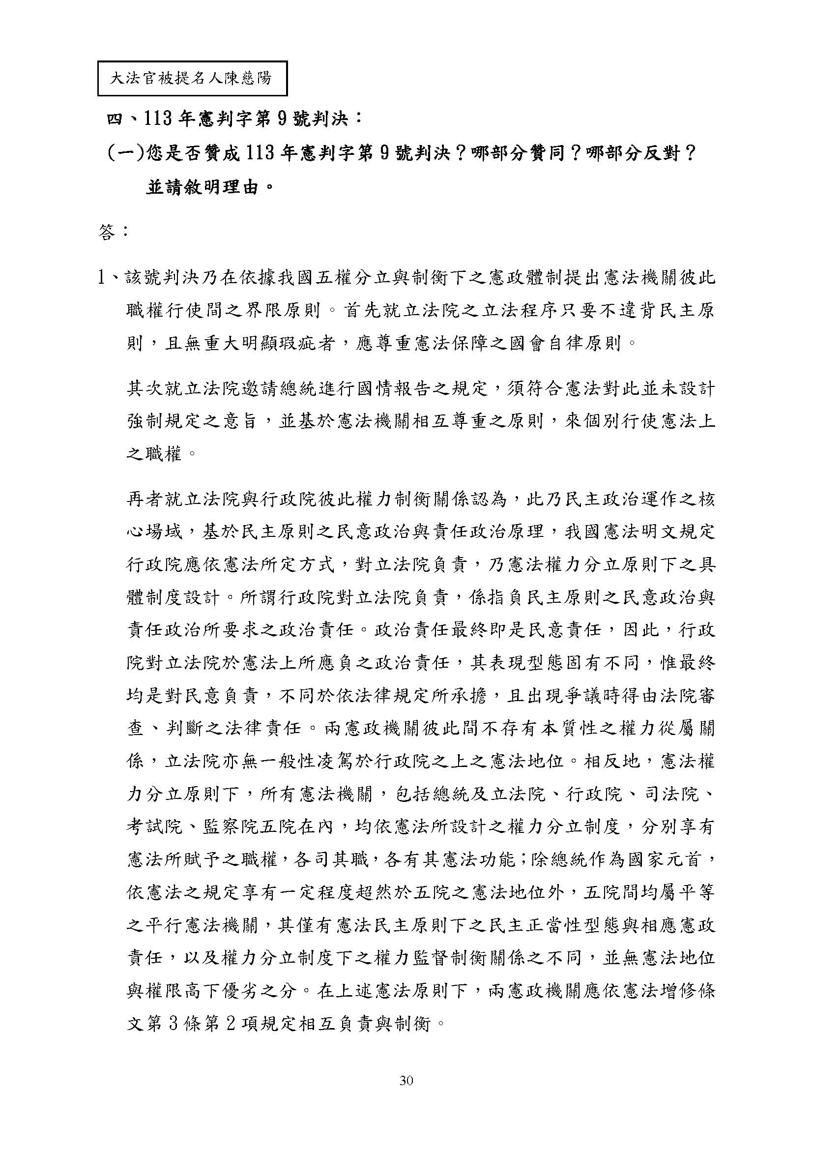 七、司法院大法官被提名人詹鎮榮書面資料: