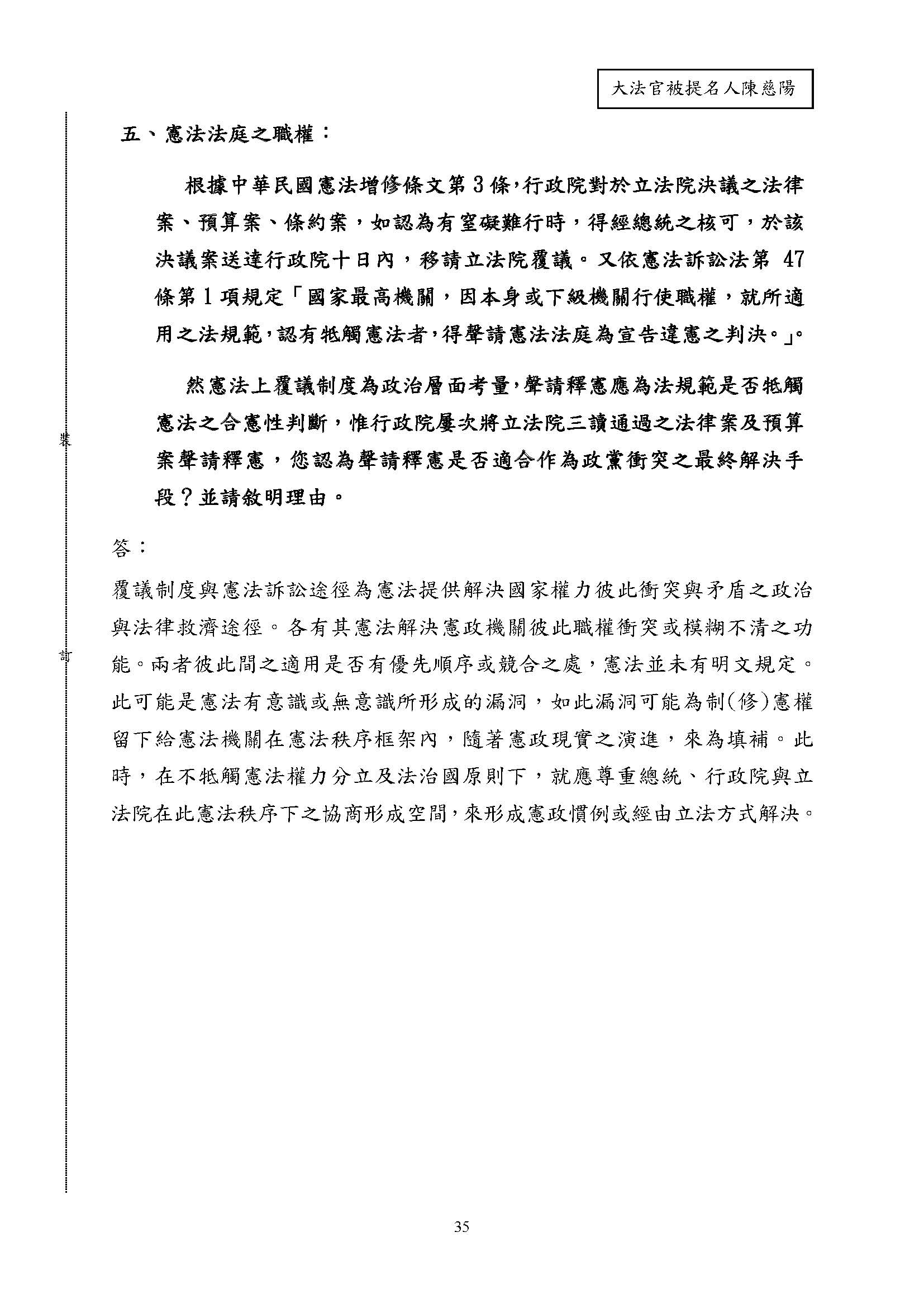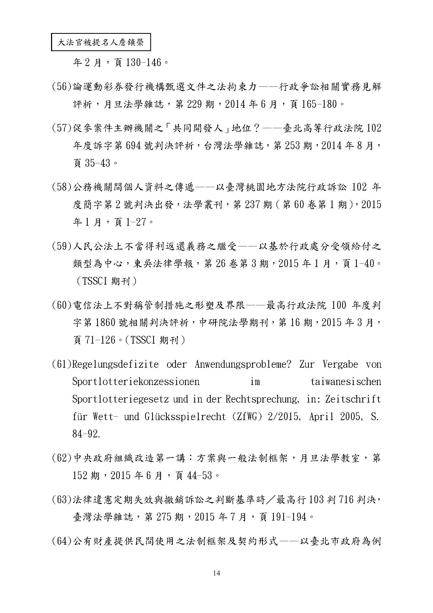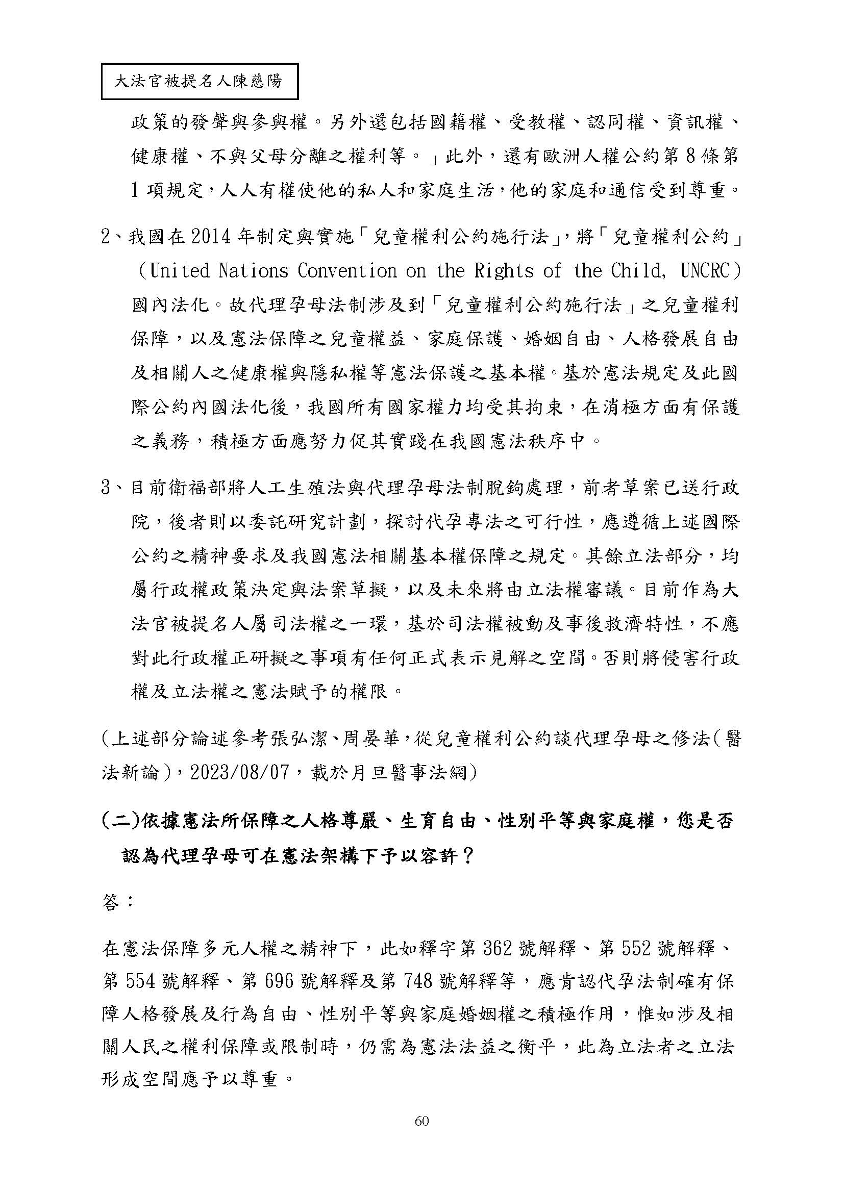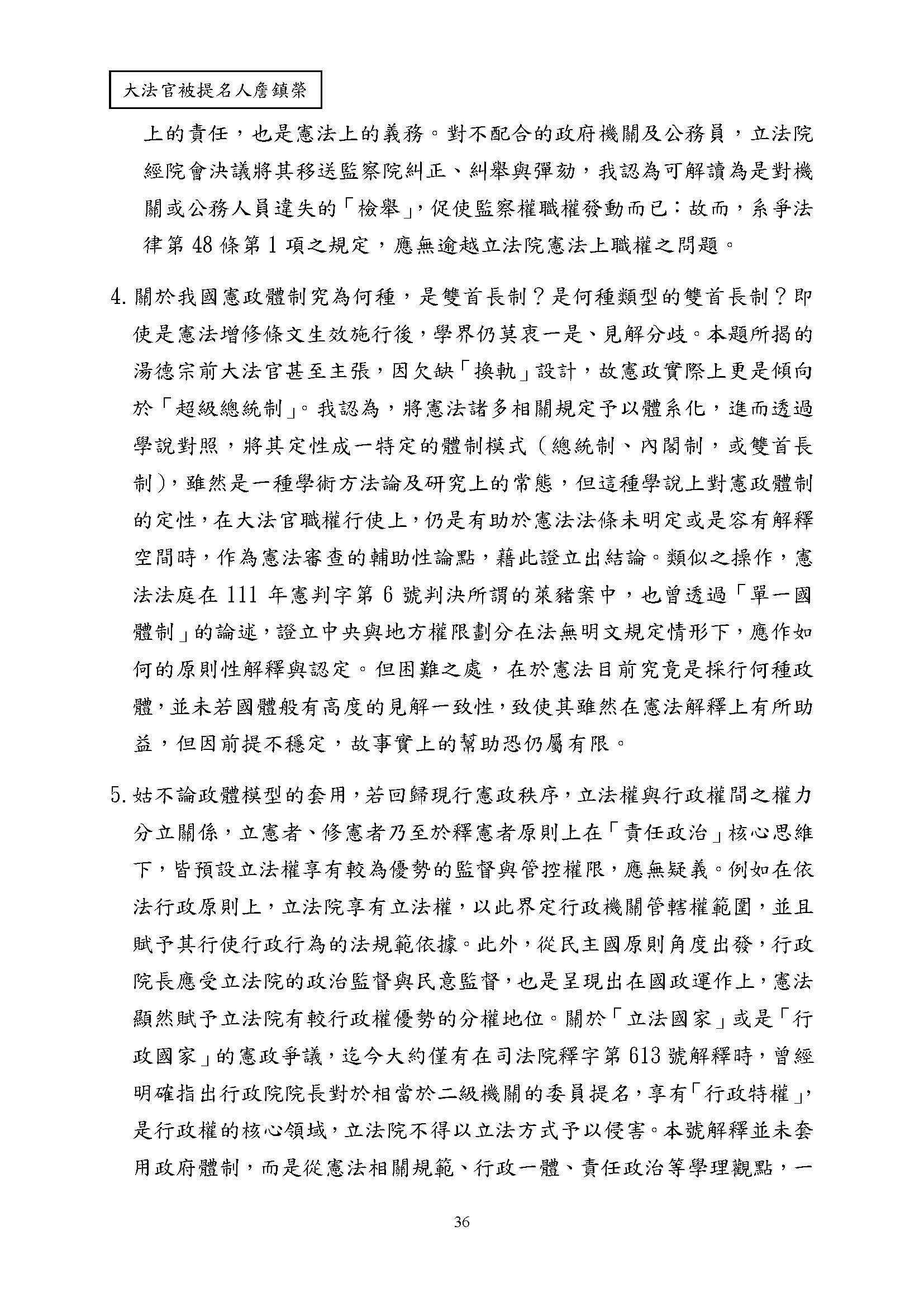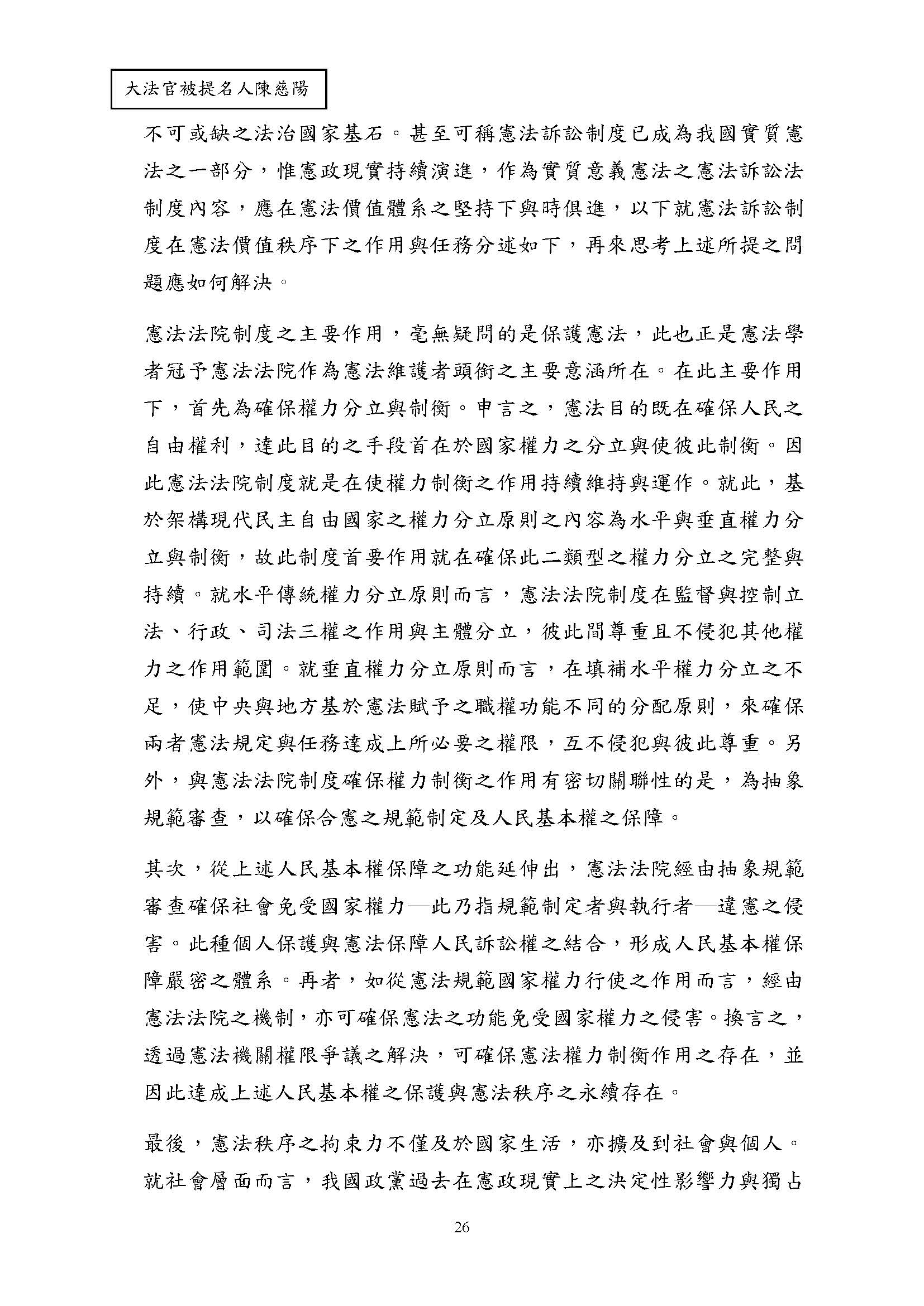 七、司法院大法官被提名人詹鎮榮書面資料: