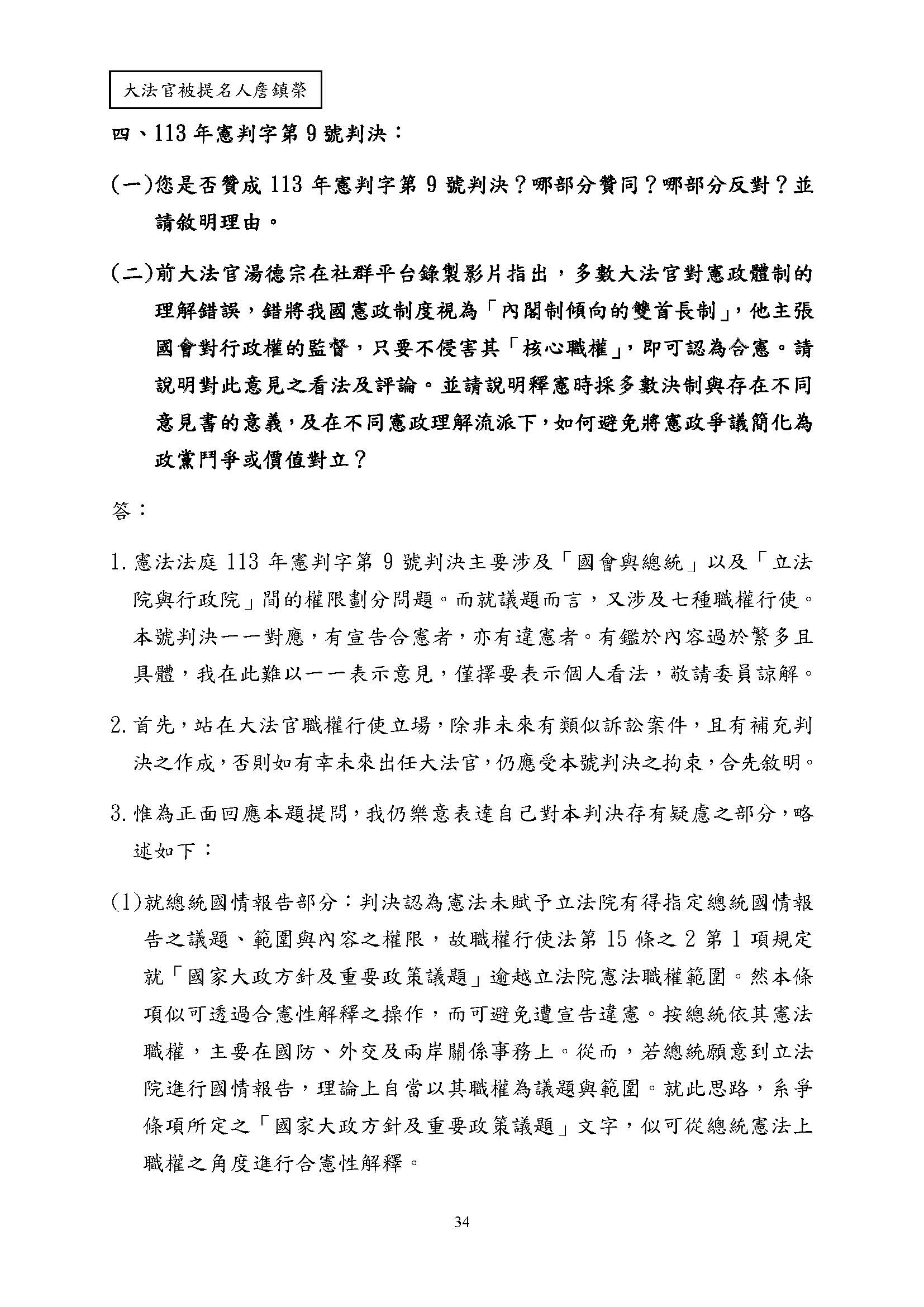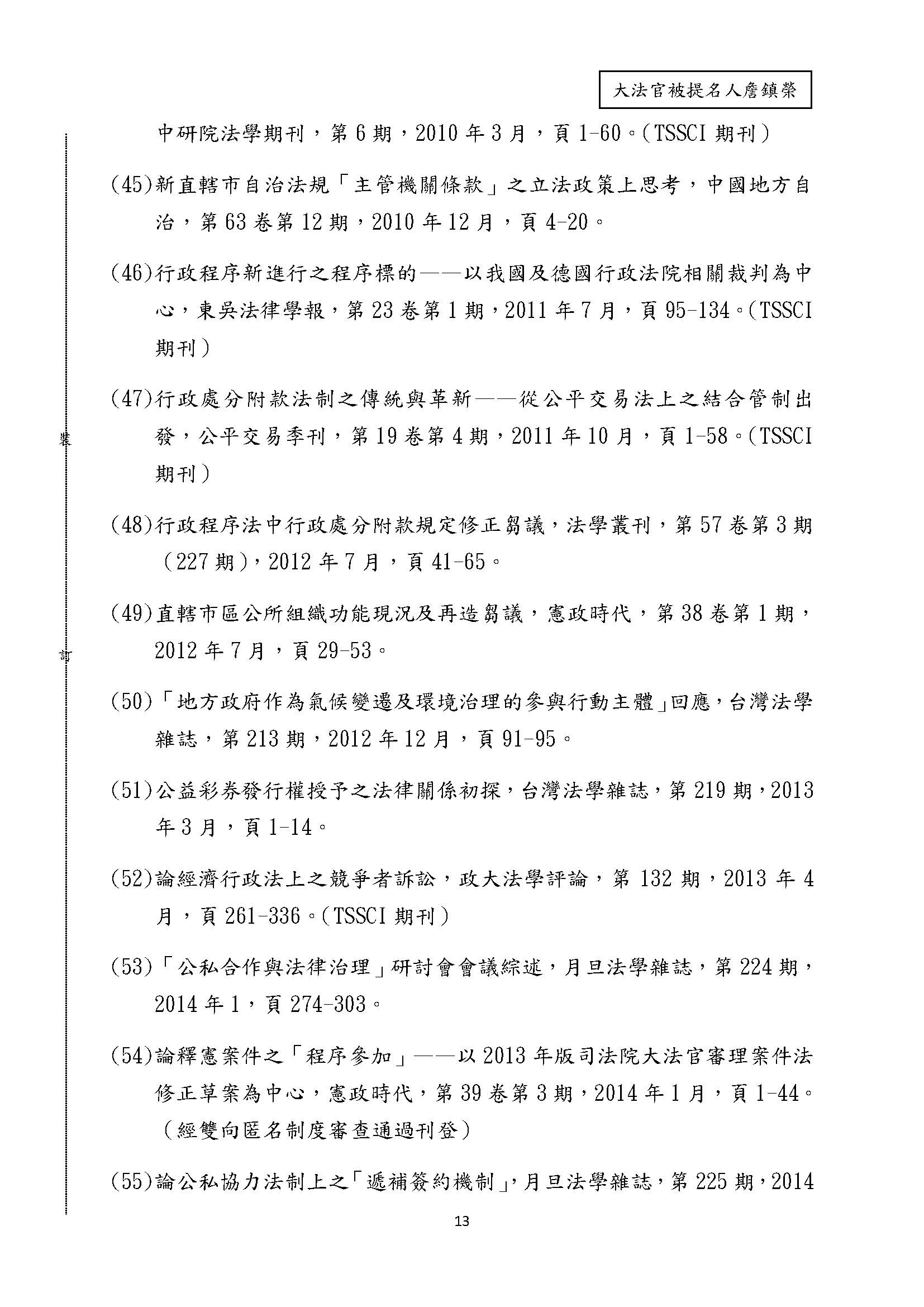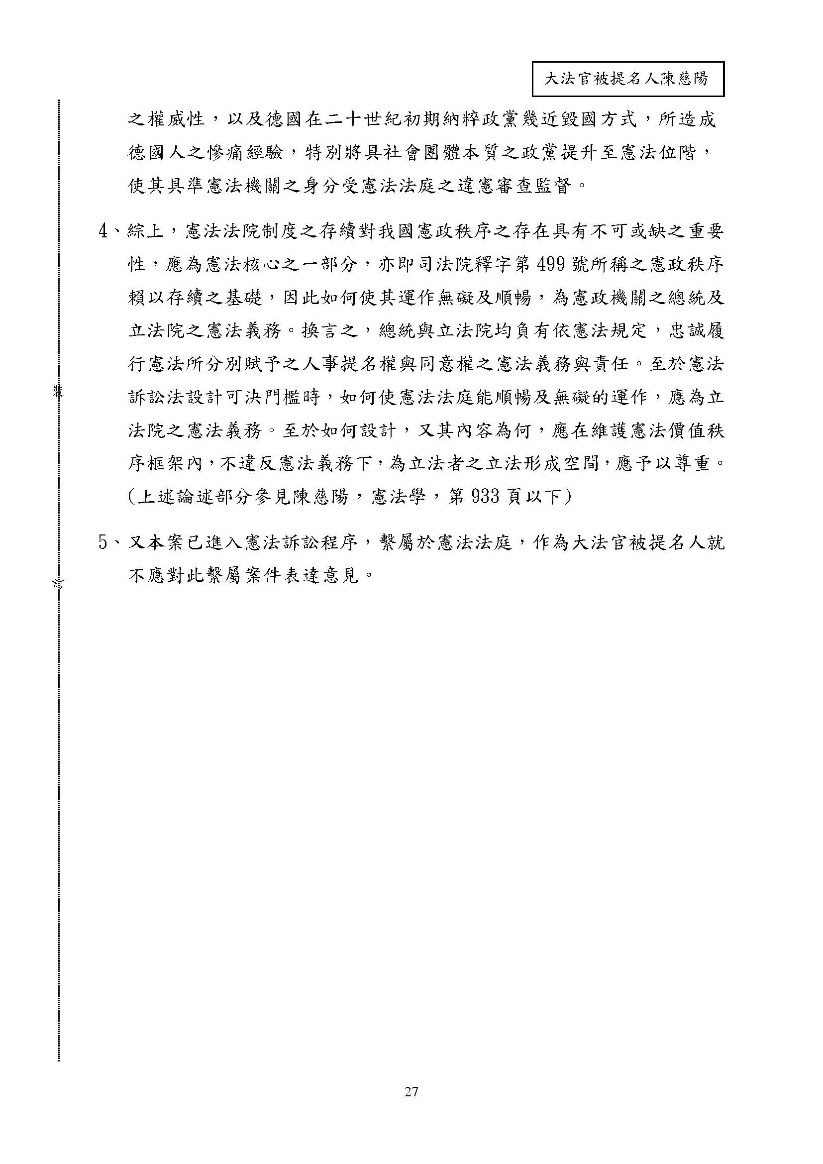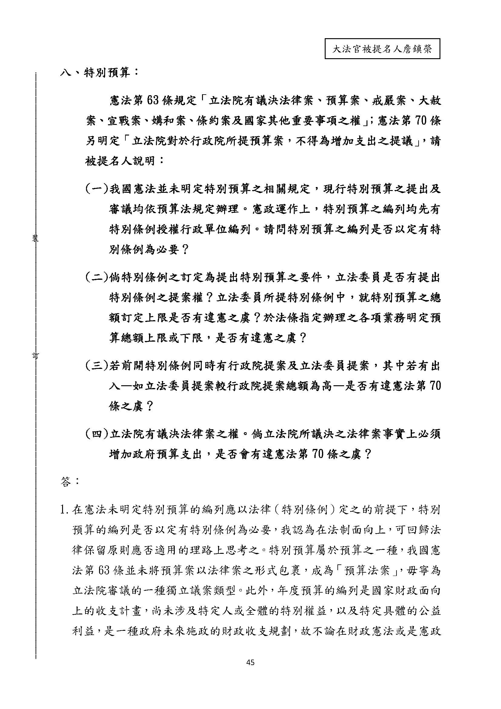七、司法院大法官被提名人詹鎮榮書面資料:
