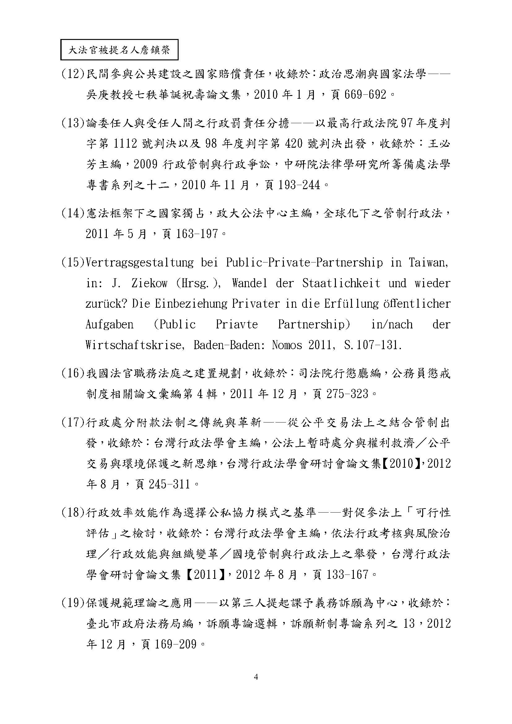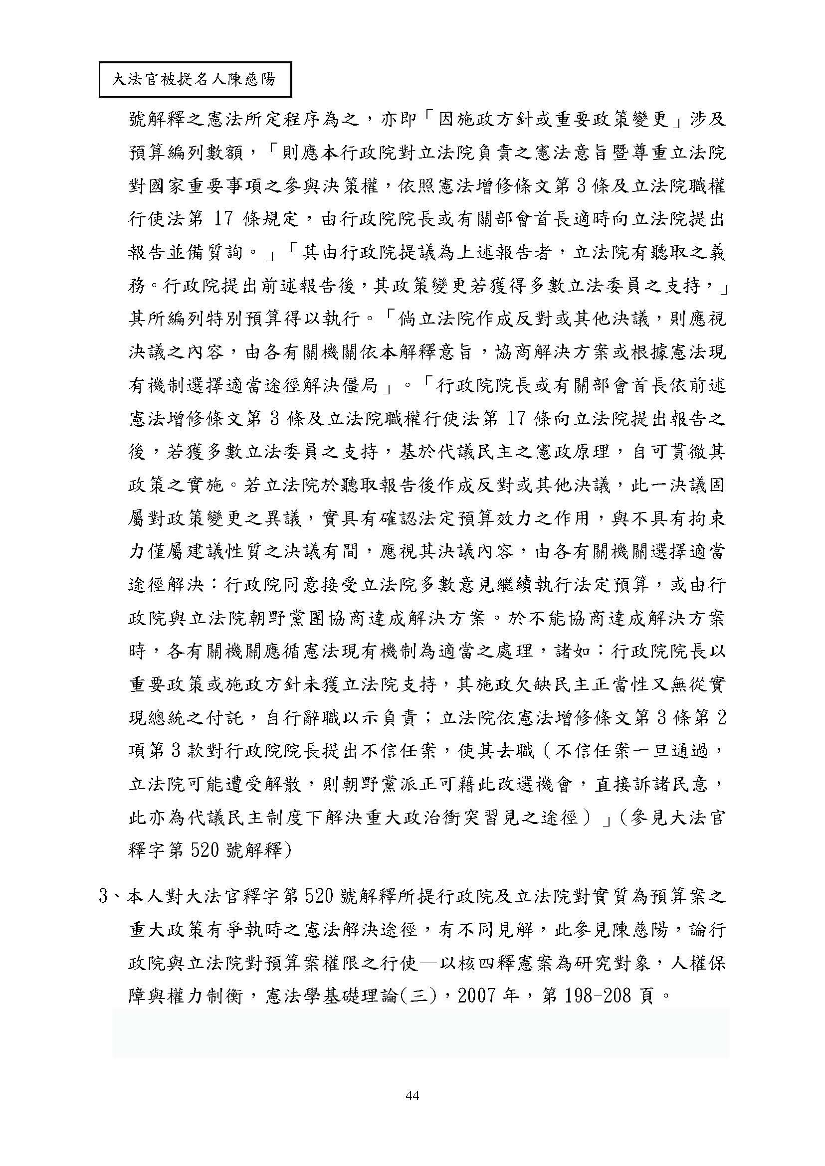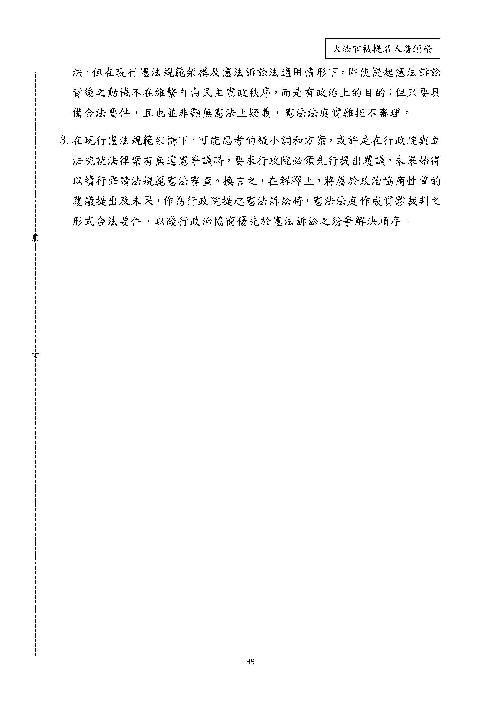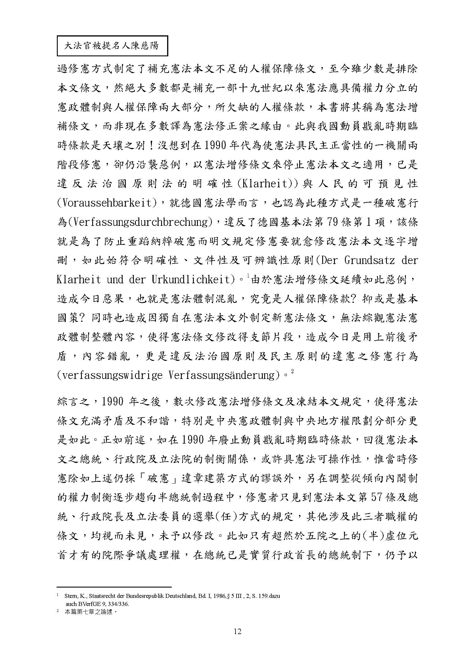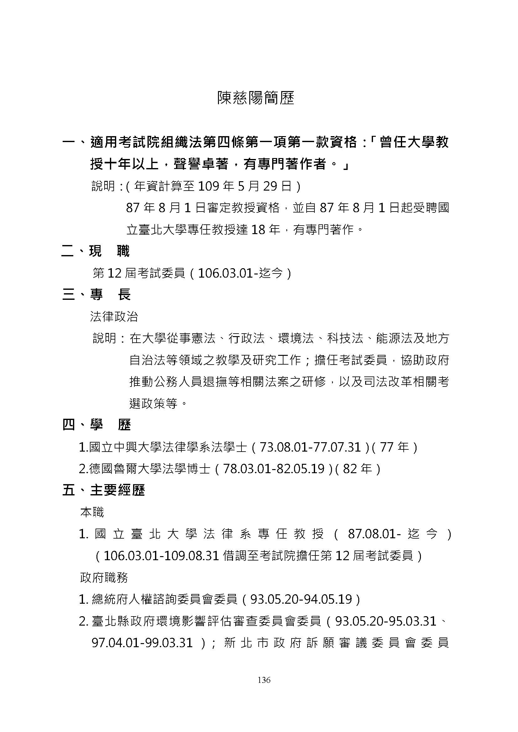 七、司法院大法官被提名人詹鎮榮書面資料: