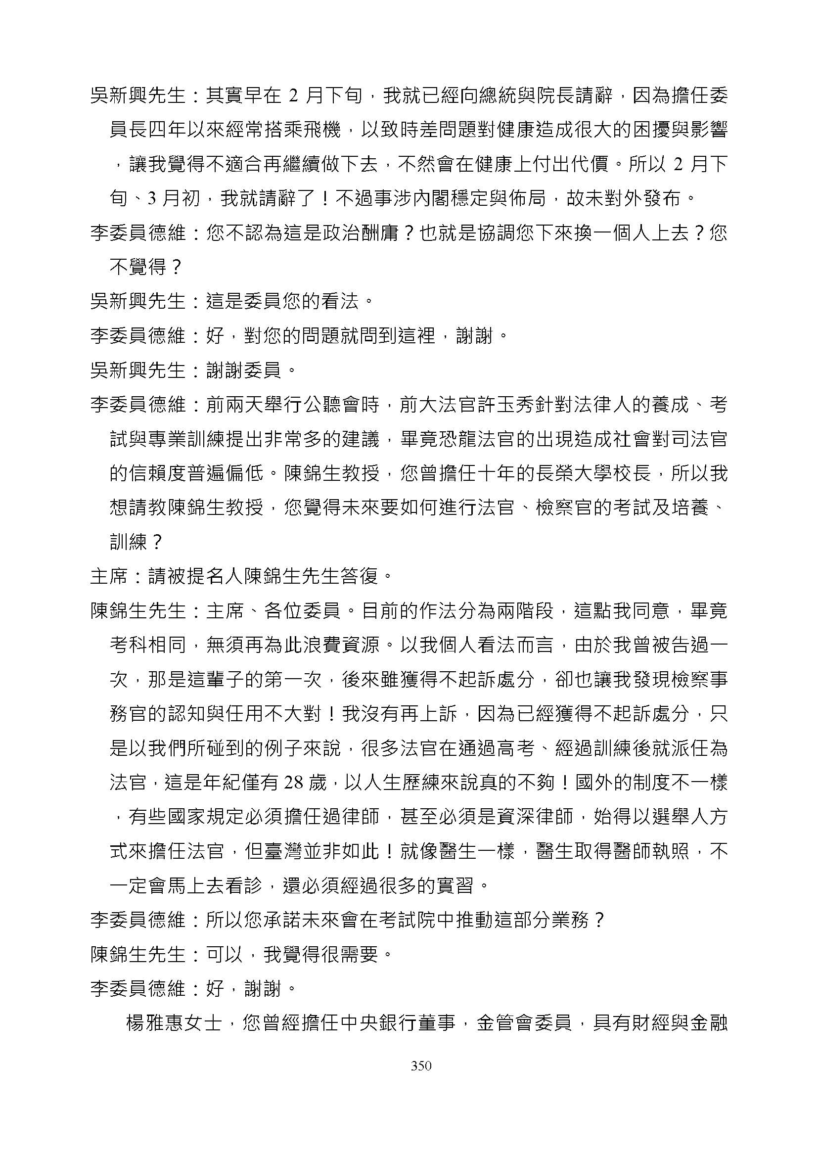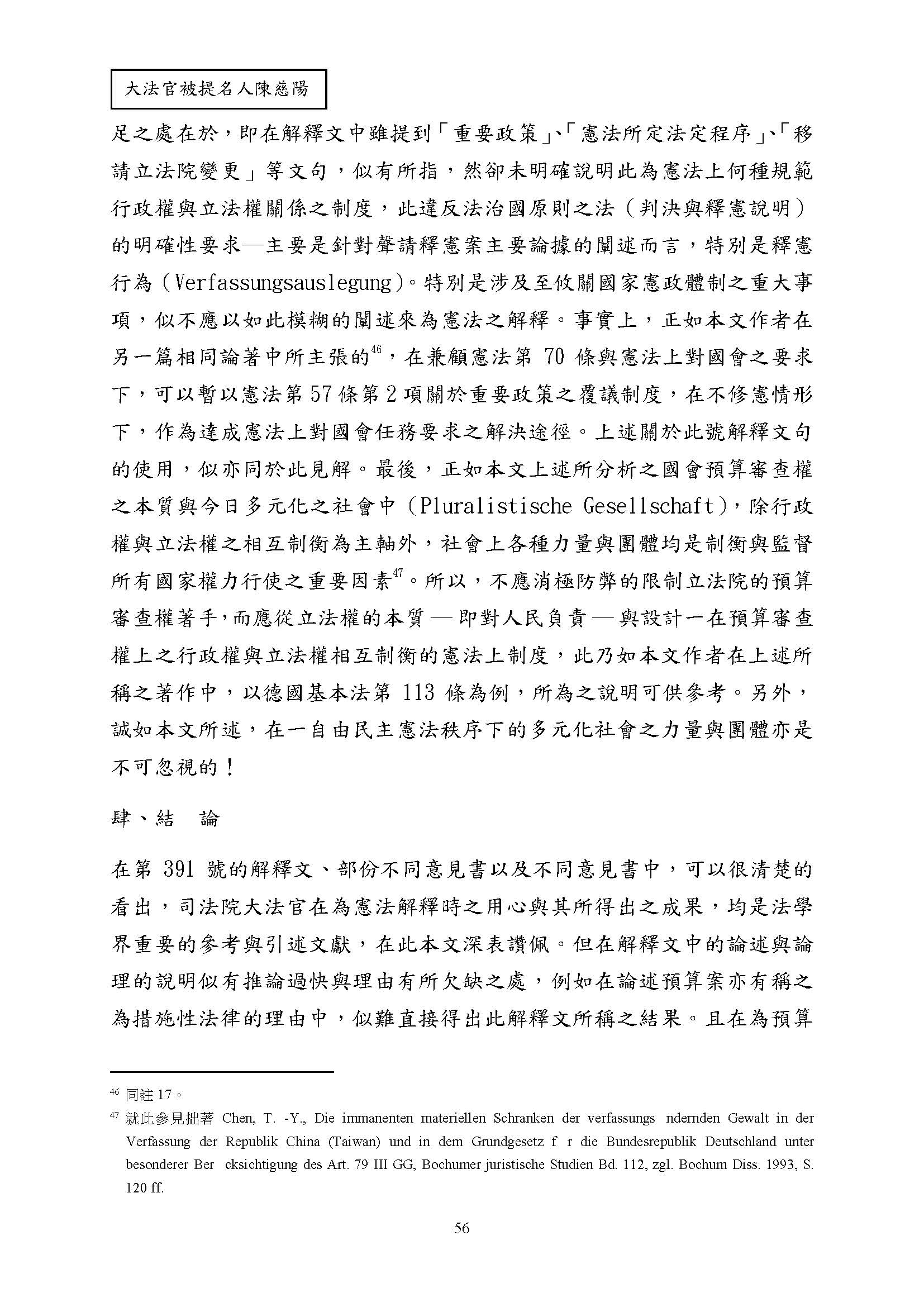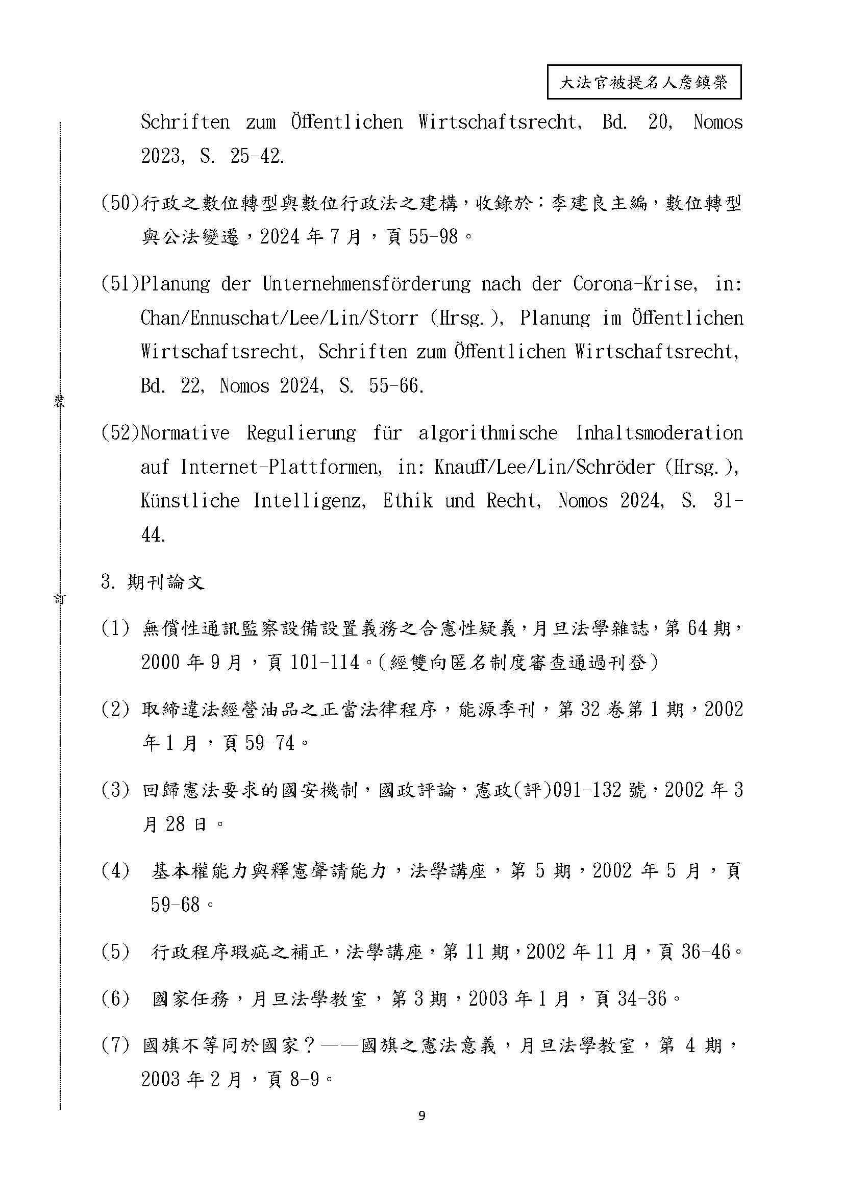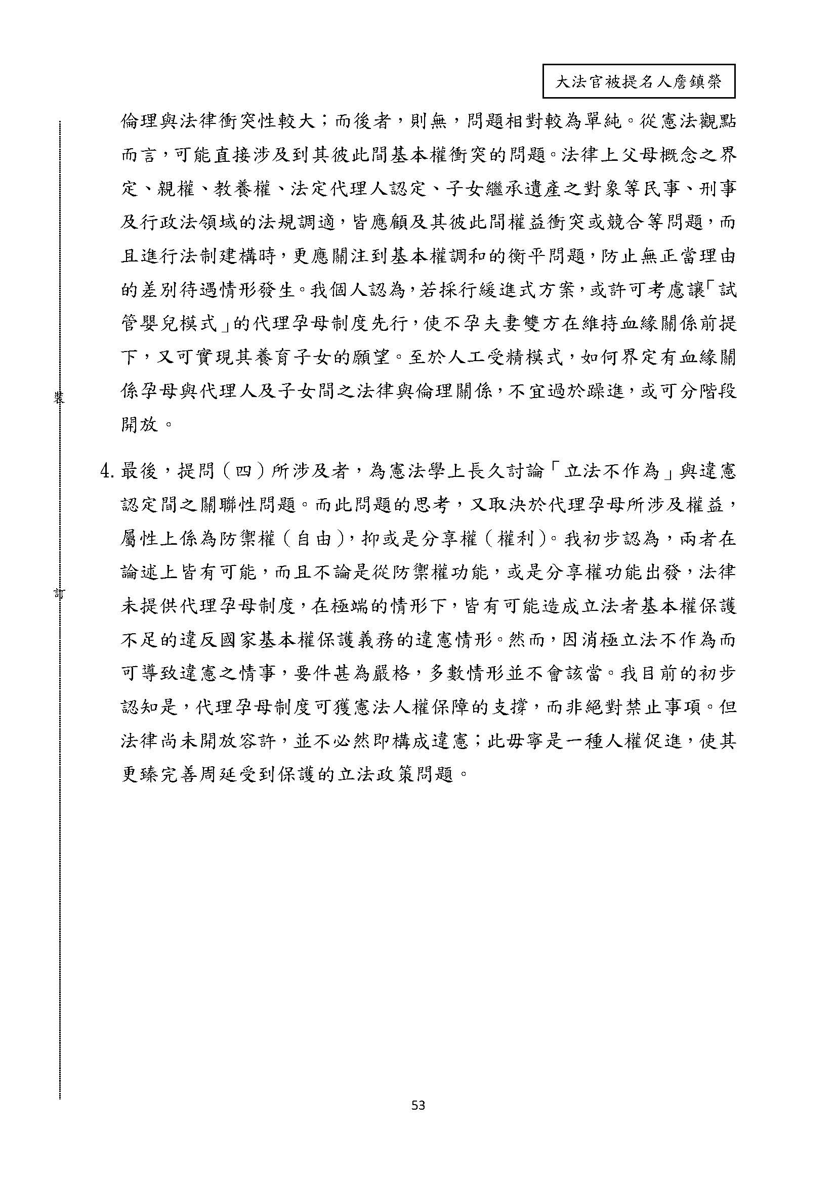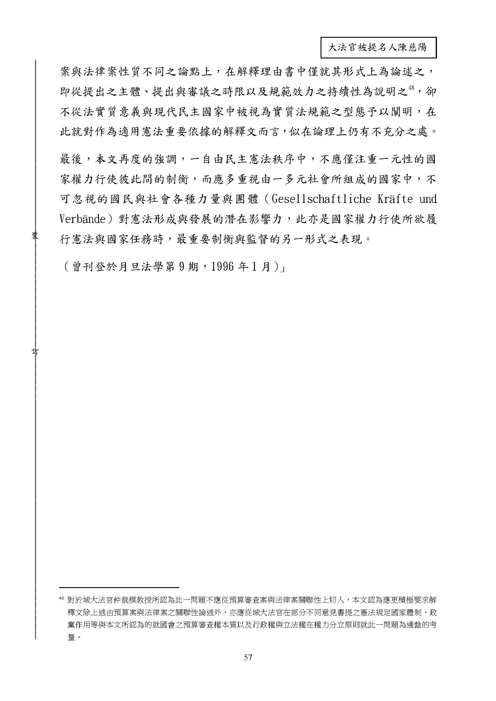 七、司法院大法官被提名人詹鎮榮書面資料: