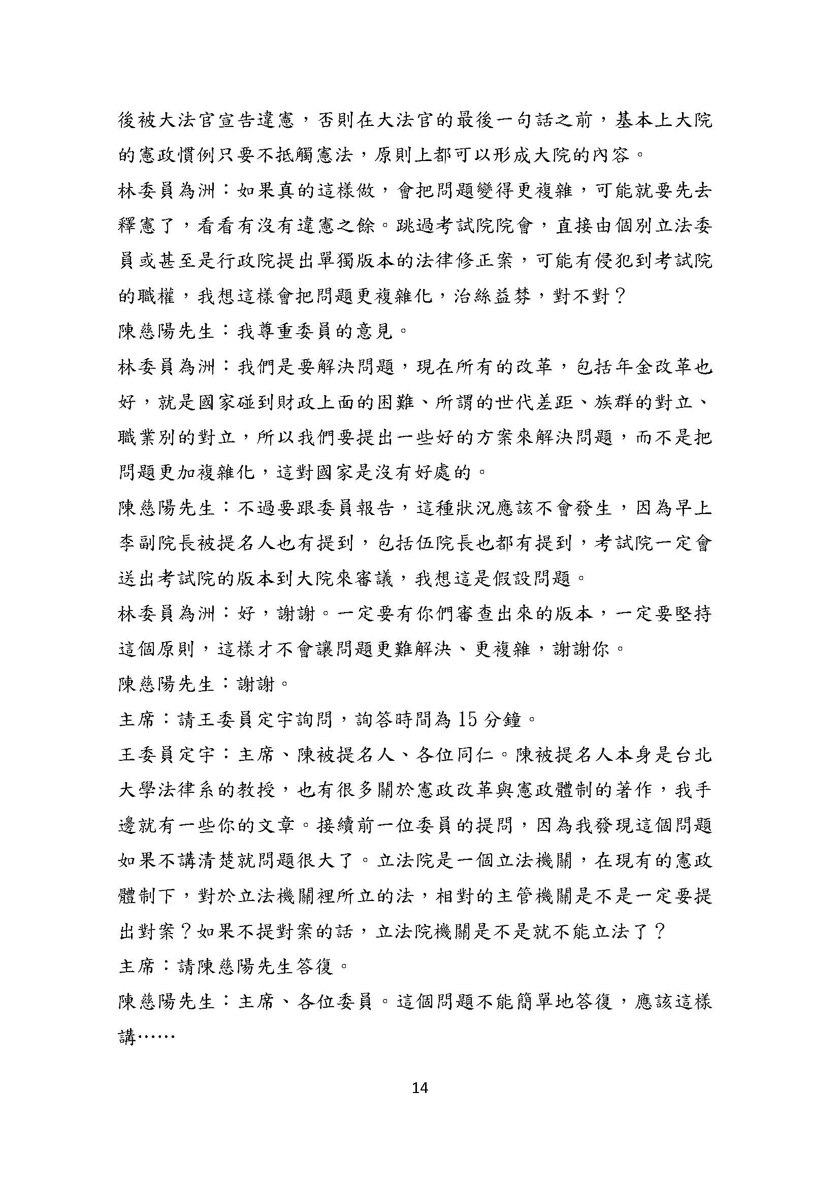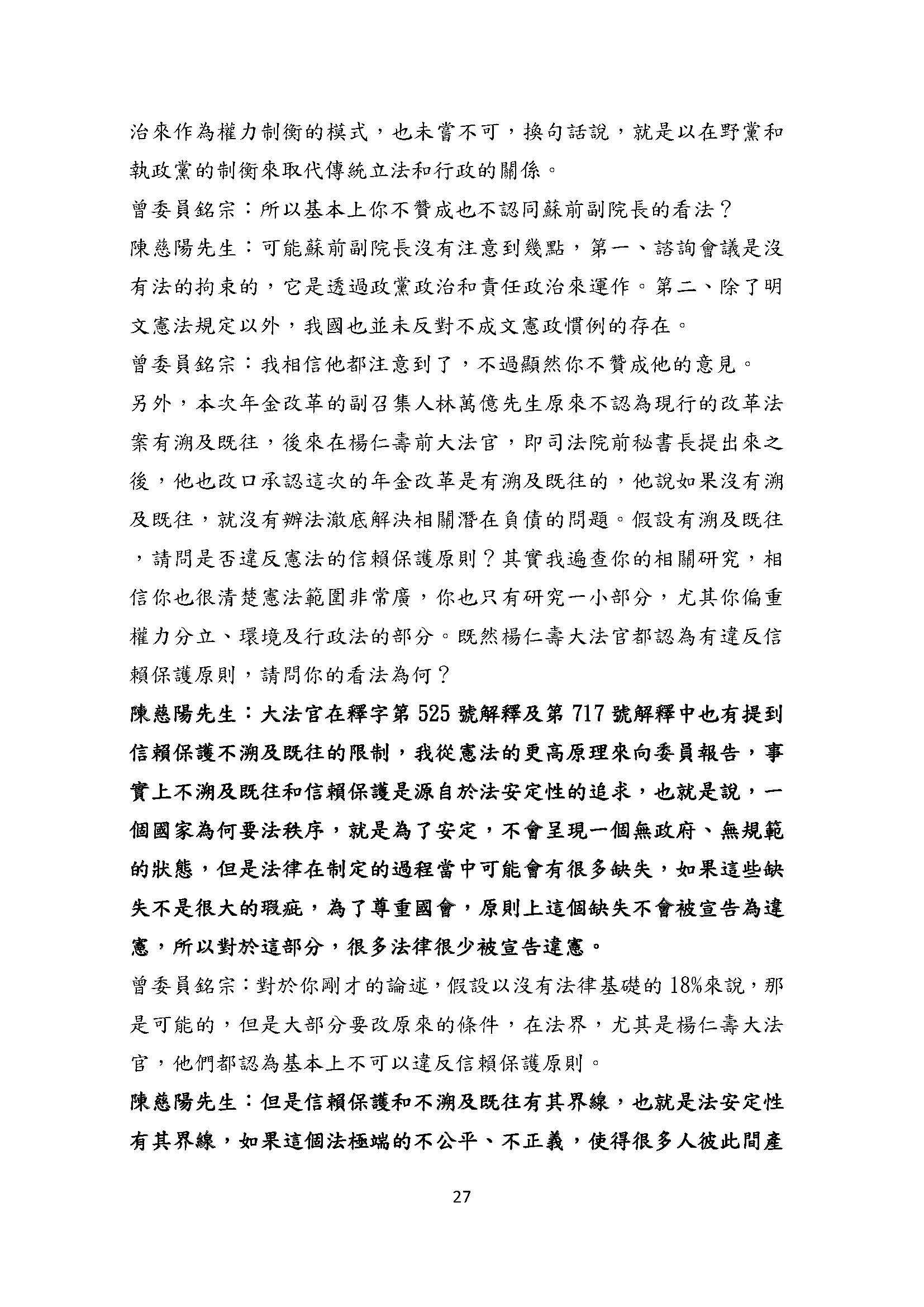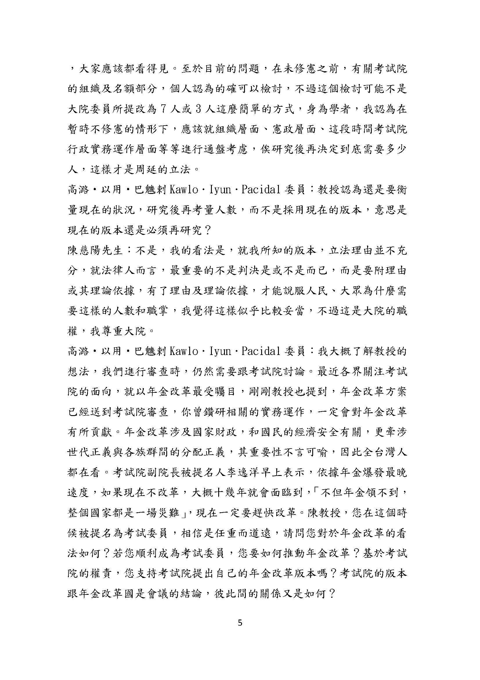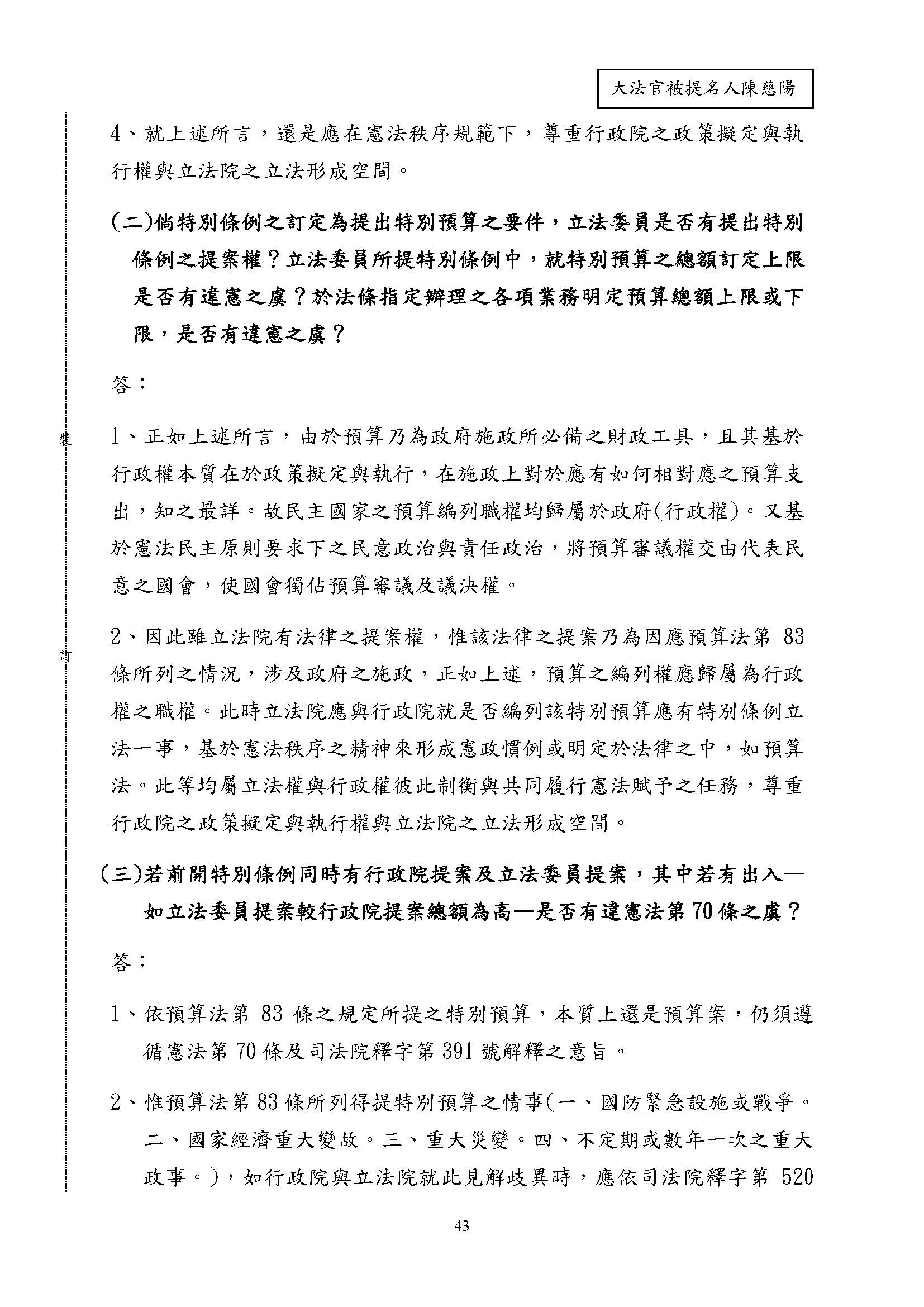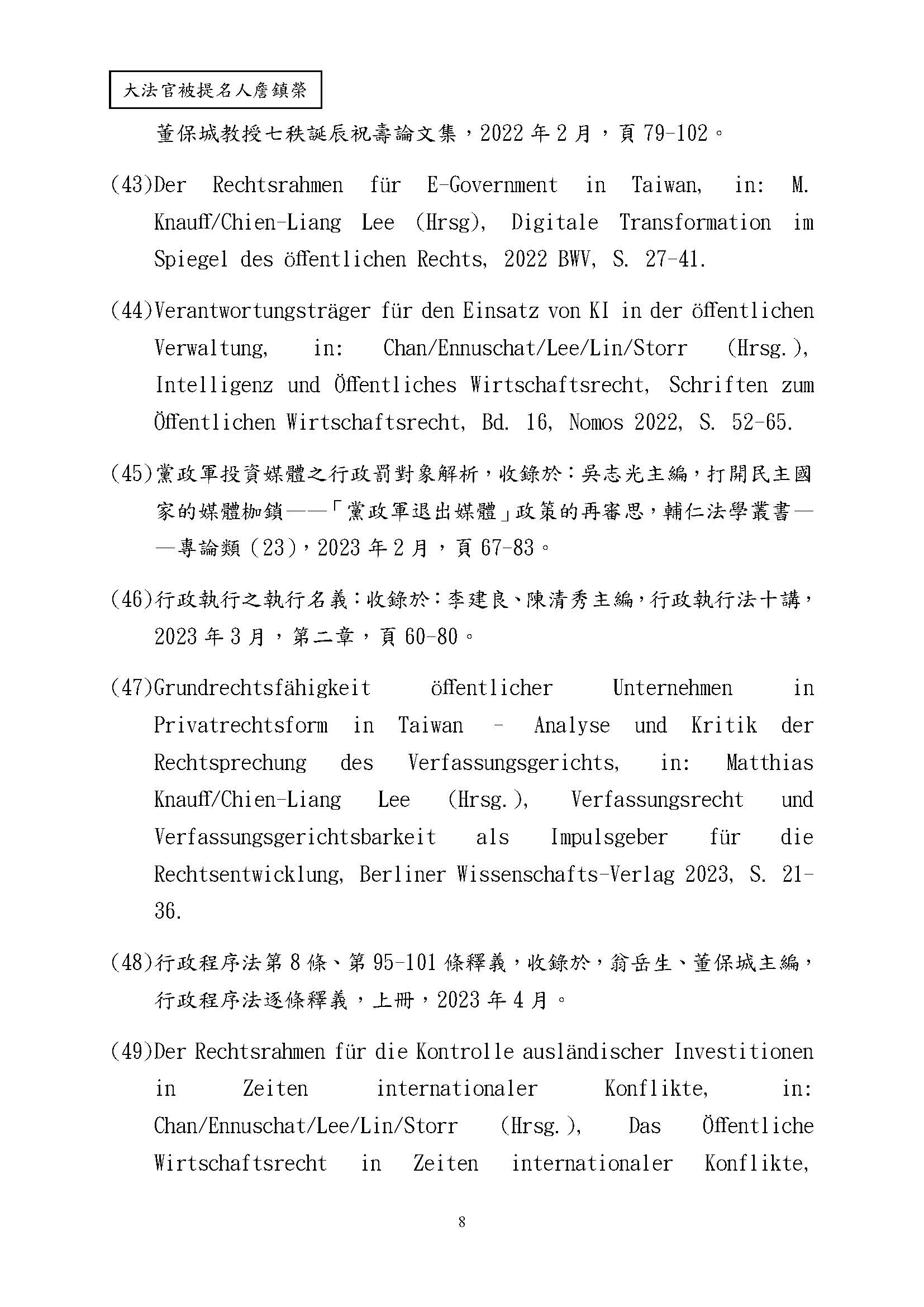 七、司法院大法官被提名人詹鎮榮書面資料: