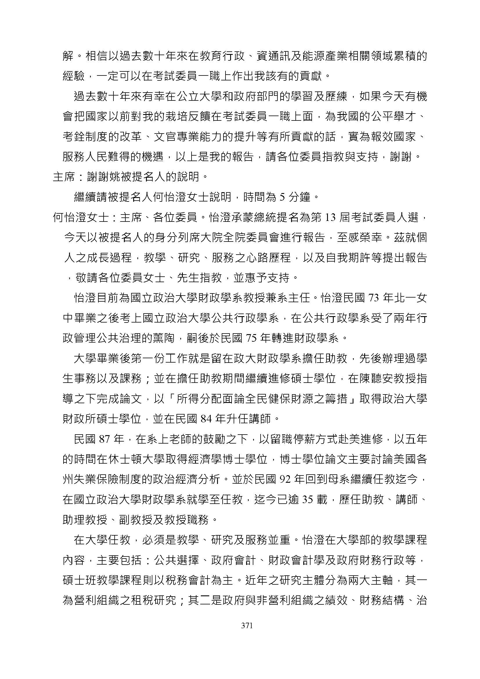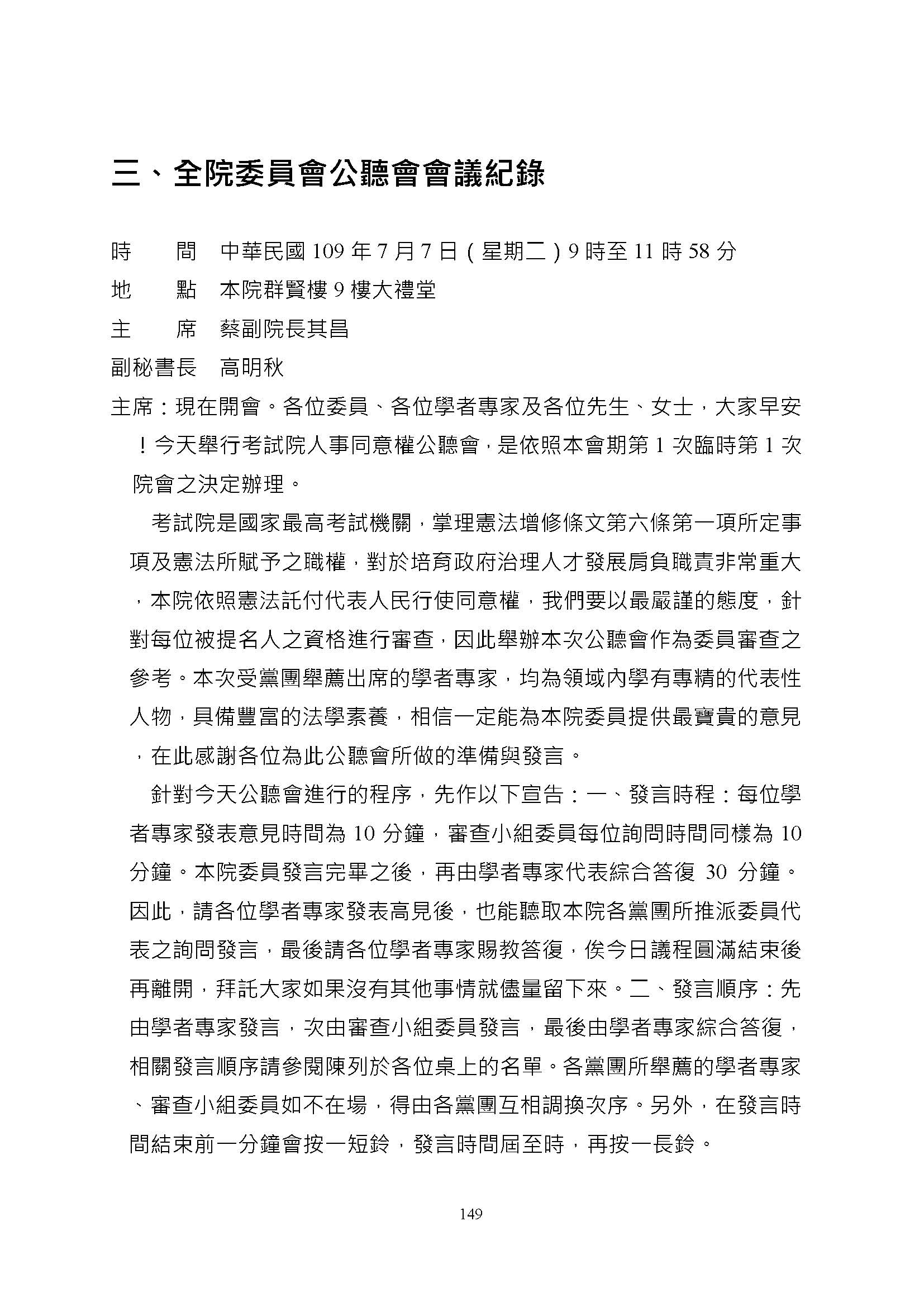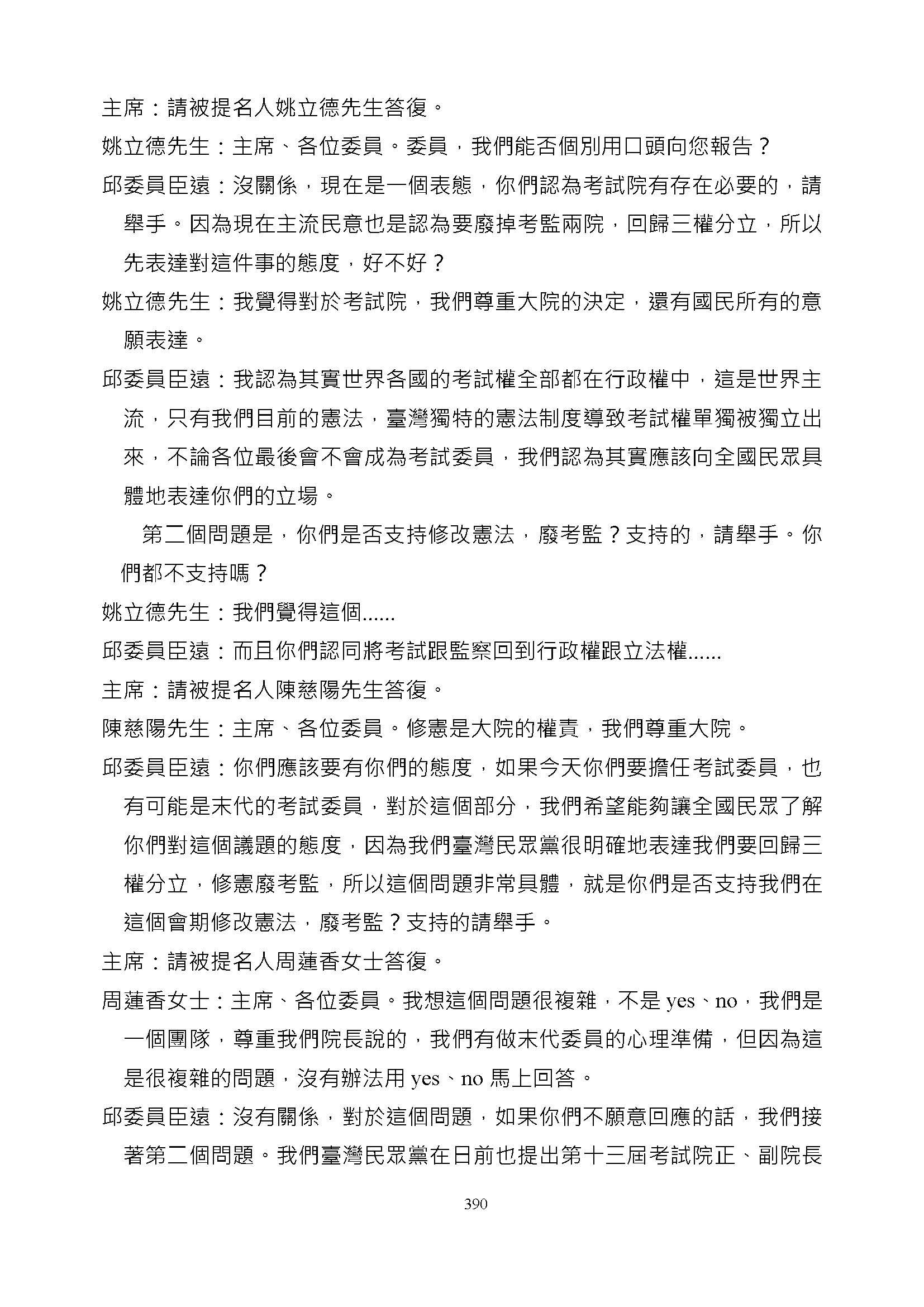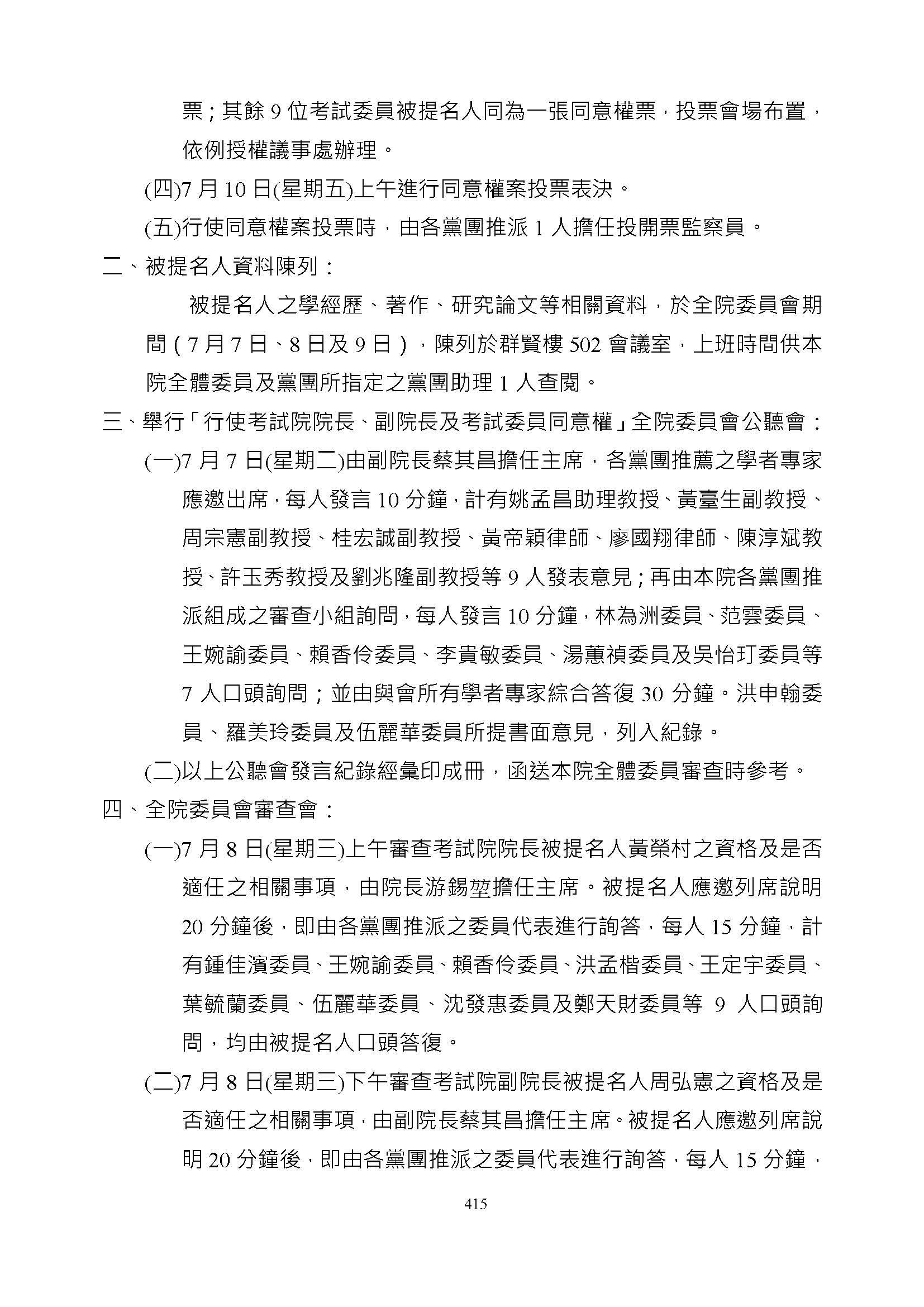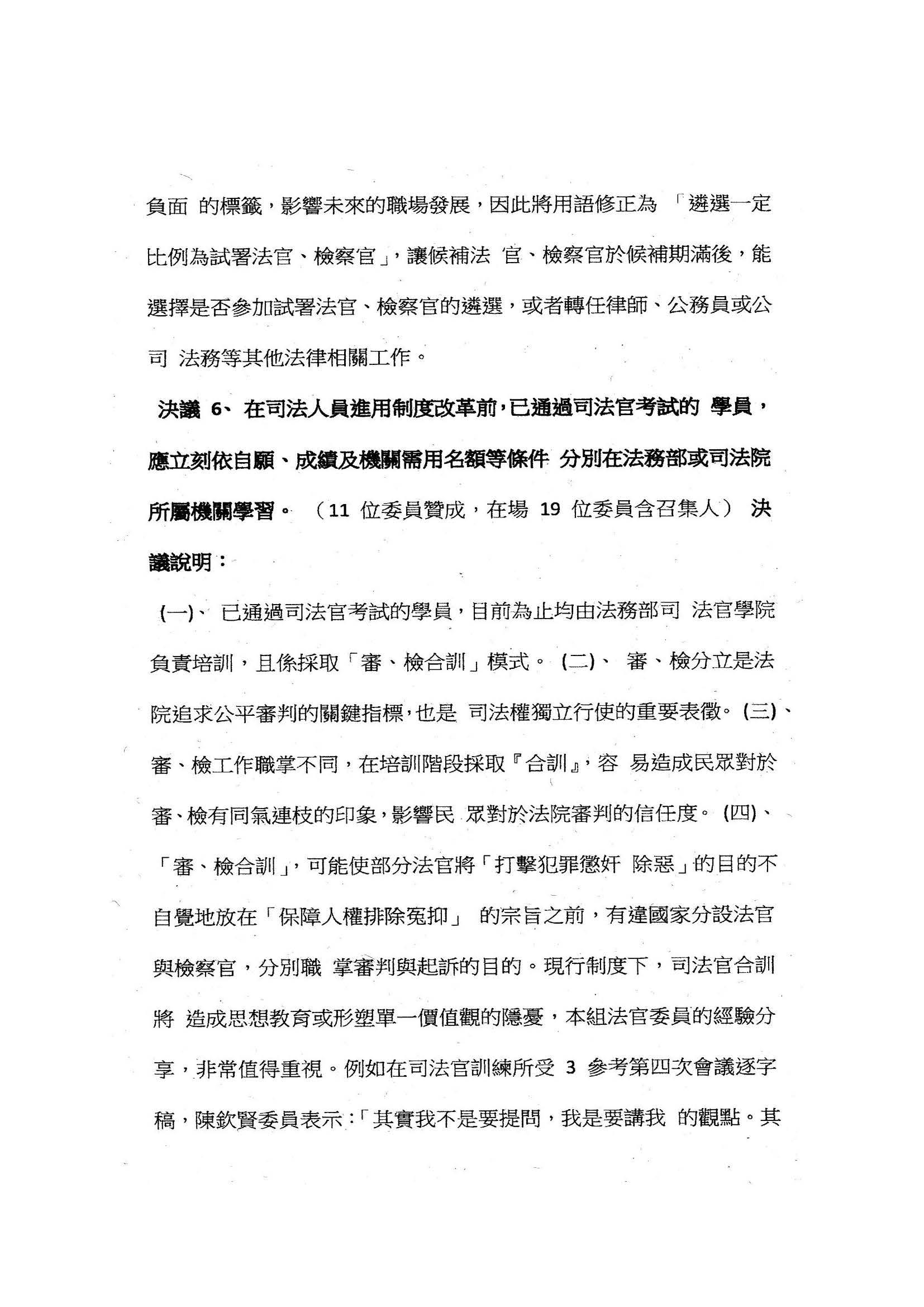 主席:報告全院委員會,針對司法院院長、副院長及五位大法官被提名人之資格及是否適任相關事項,均已審查完畢。本案作以下決議:提報院會,以記名投票表決。現在散會。