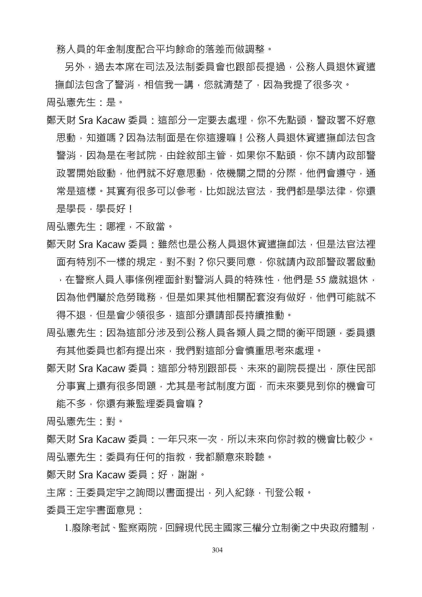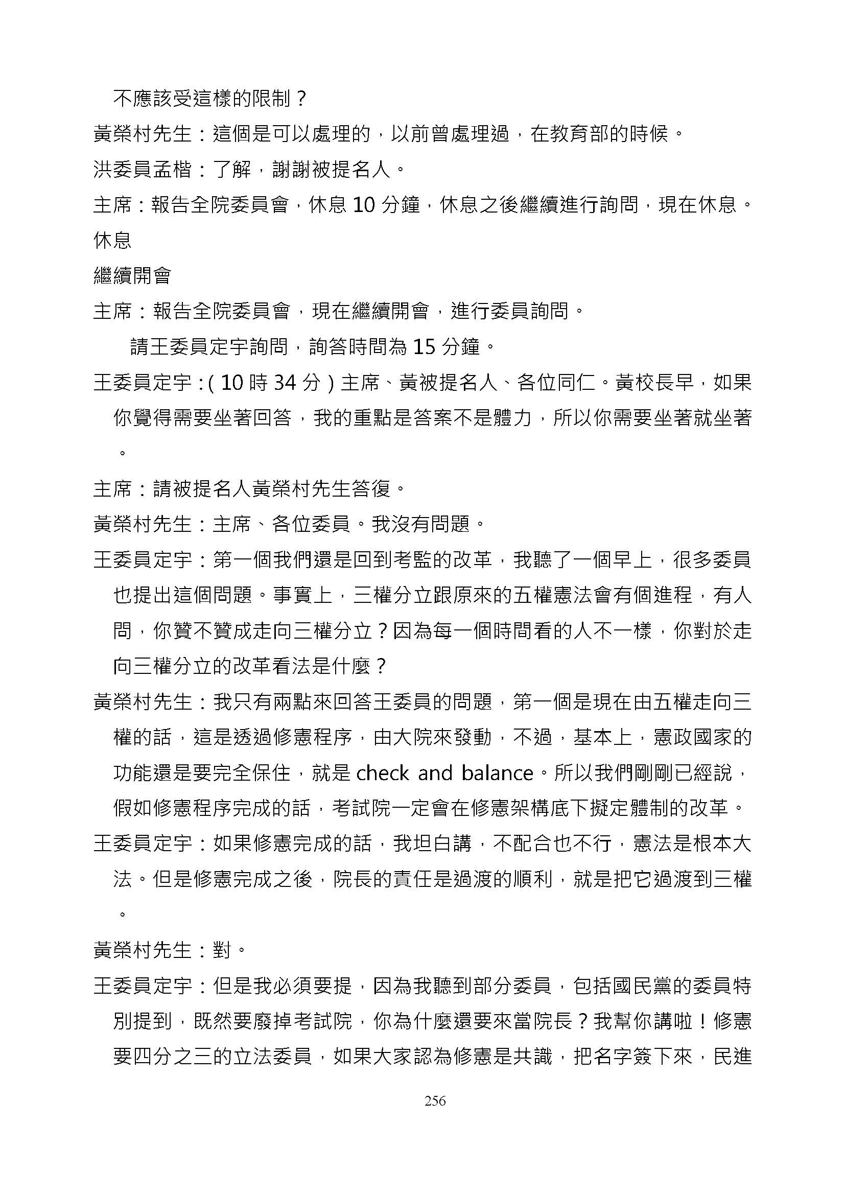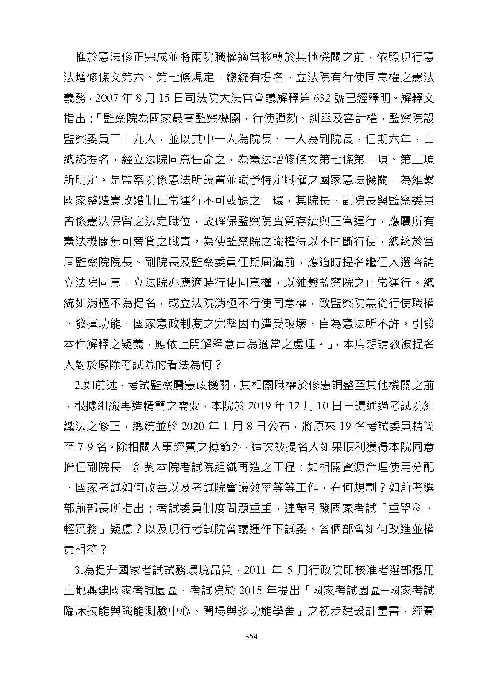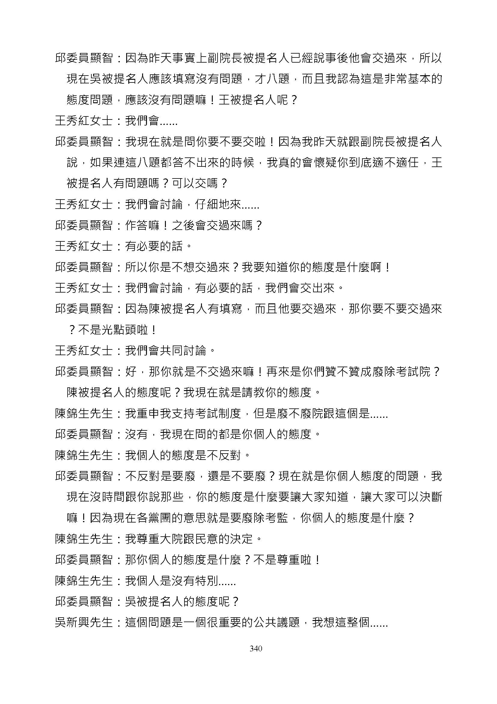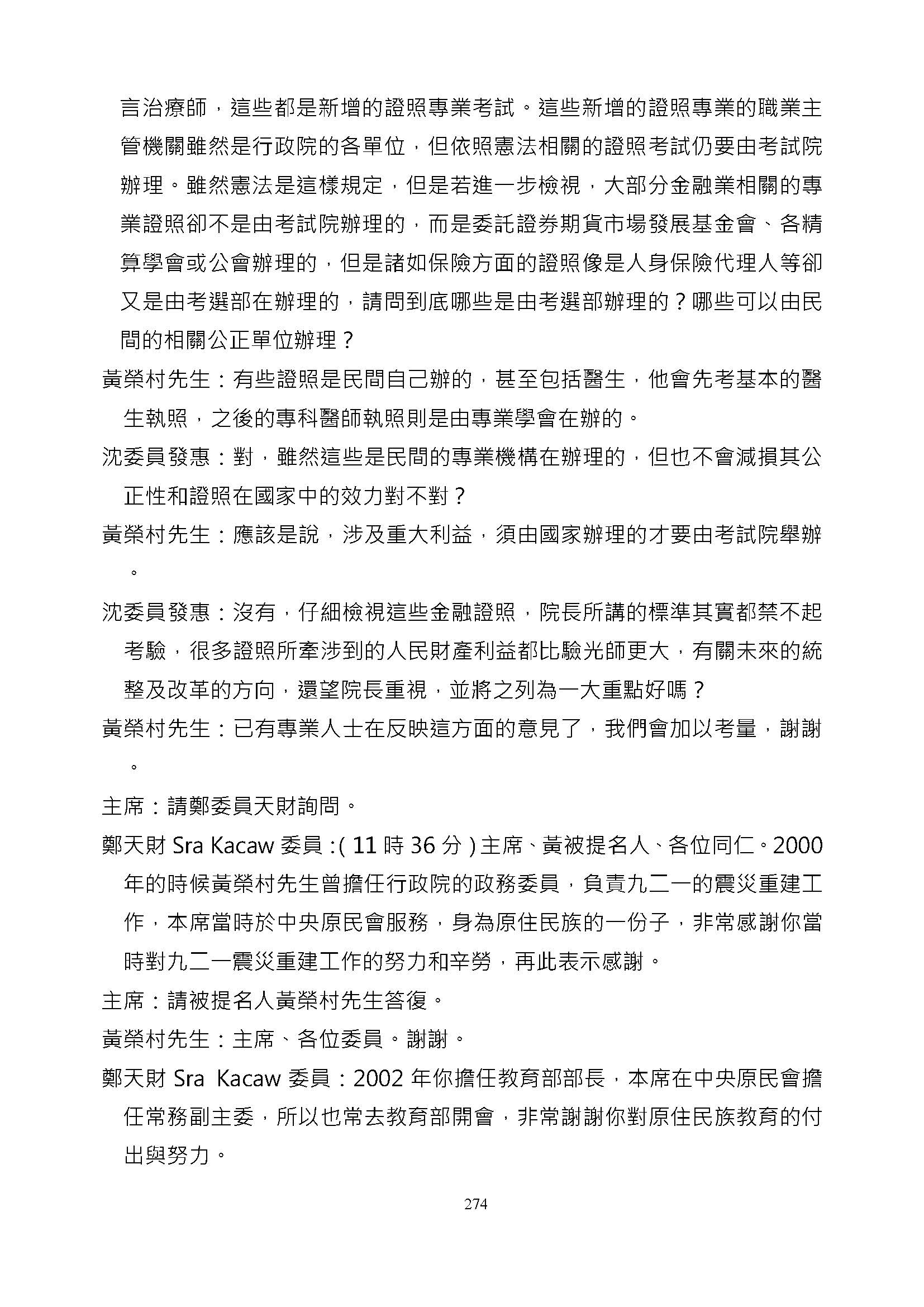 主席:報告全院委員會,針對司法院院長、副院長及五位大法官被提名人之資格及是否適任相關事項,均已審查完畢。本案作以下決議:提報院會,以記名投票表決。現在散會。