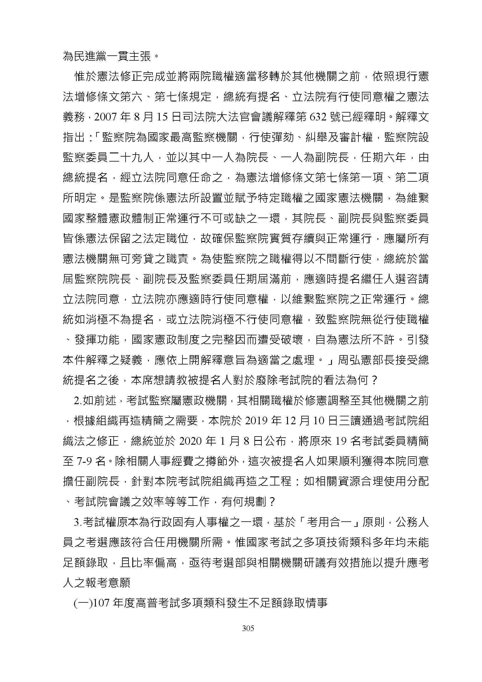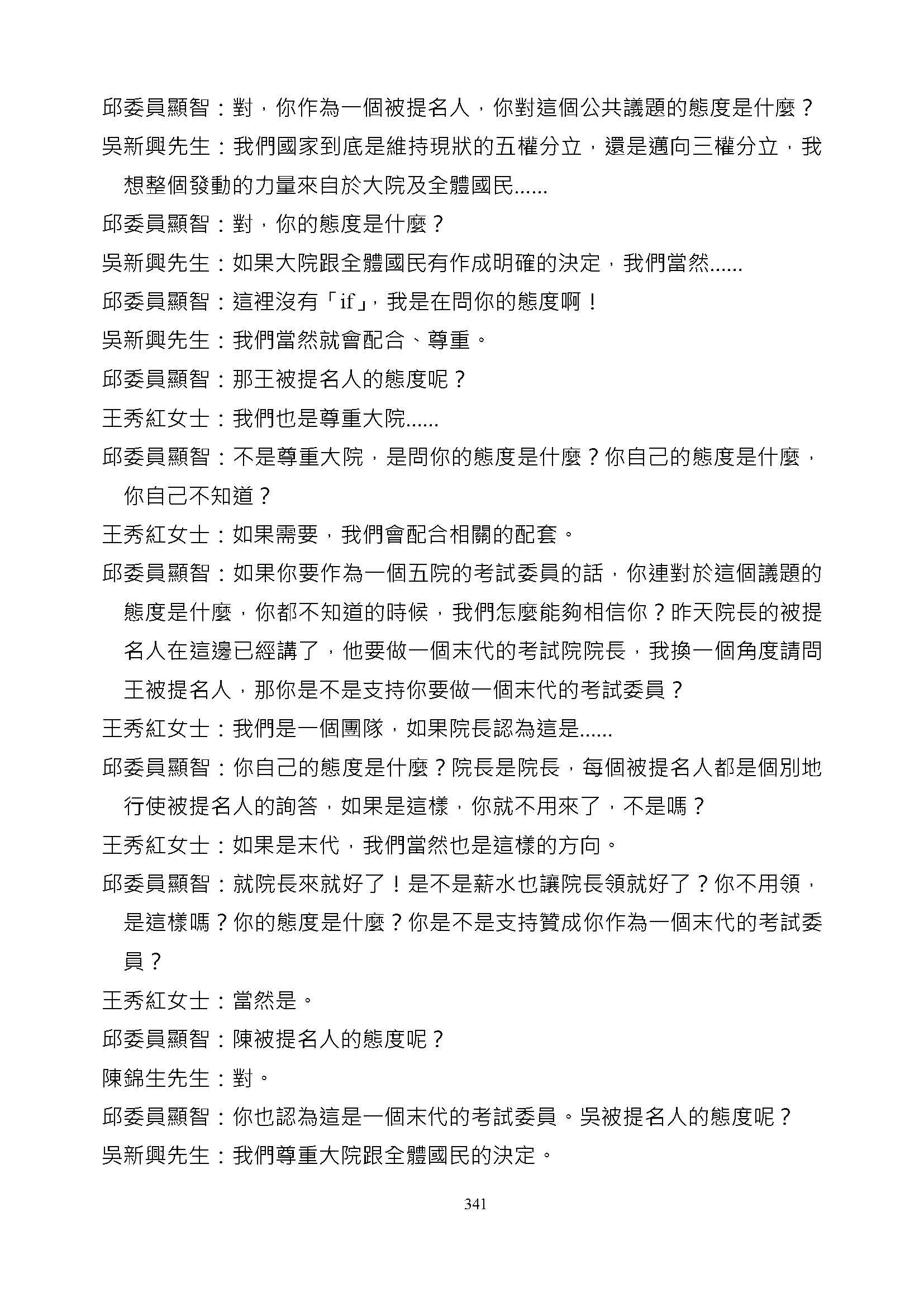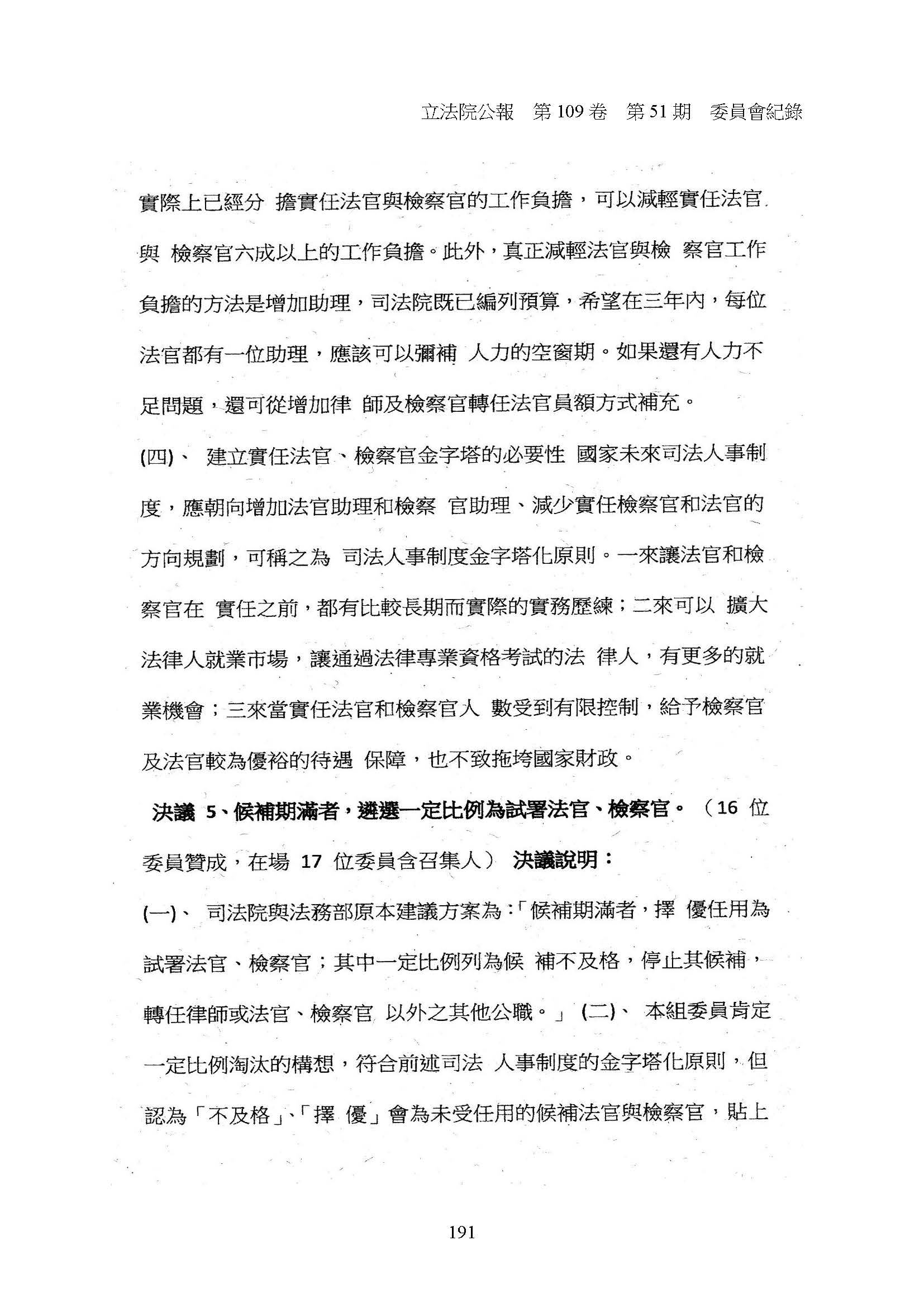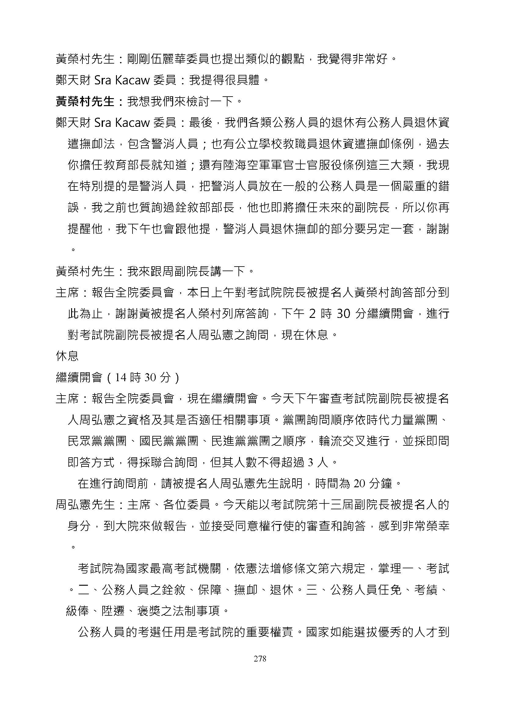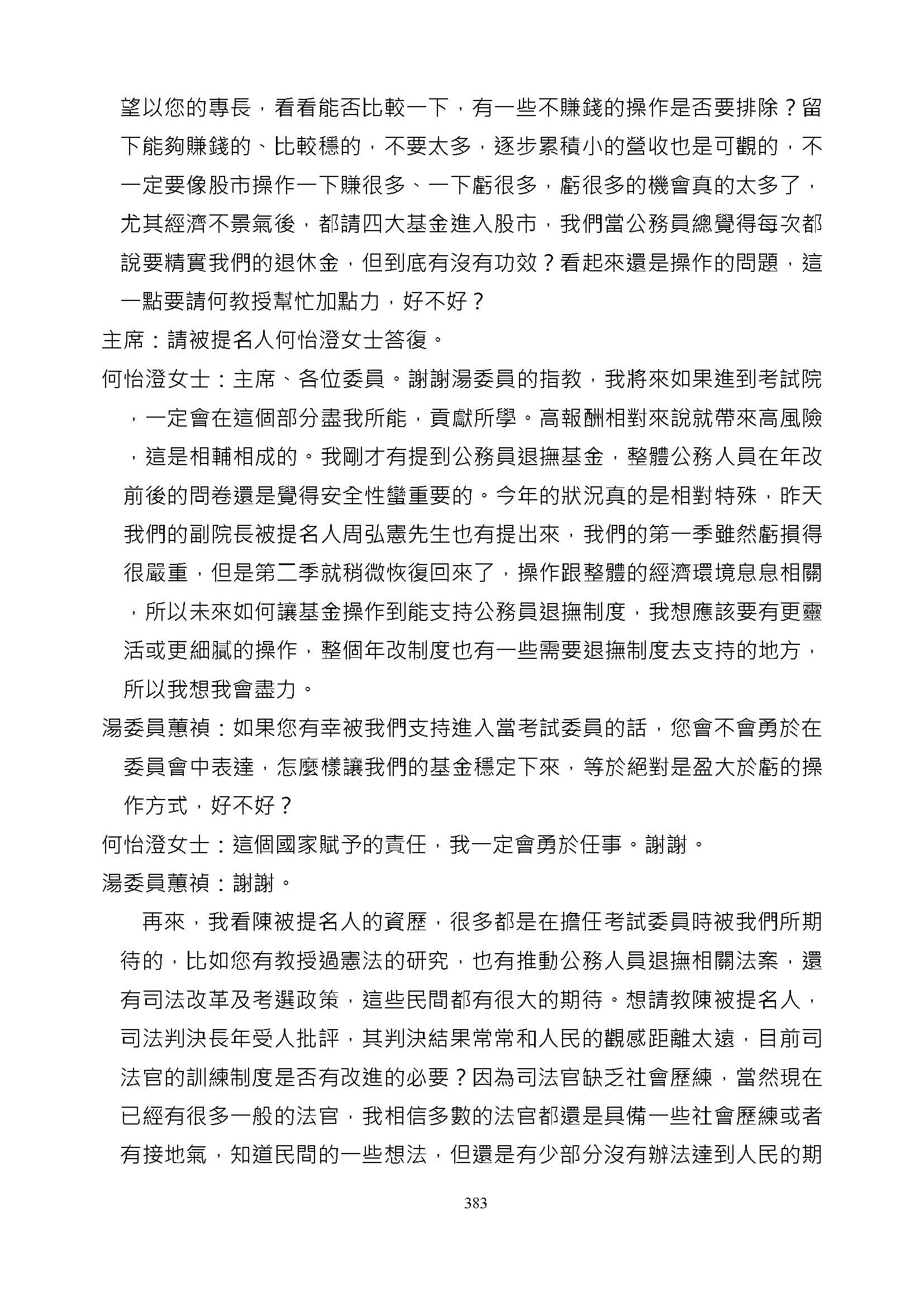 主席:報告全院委員會,針對司法院院長、副院長及五位大法官被提名人之資格及是否適任相關事項,均已審查完畢。本案作以下決議:提報院會,以記名投票表決。現在散會。