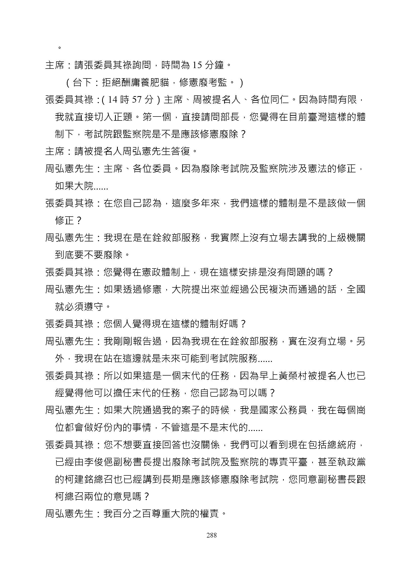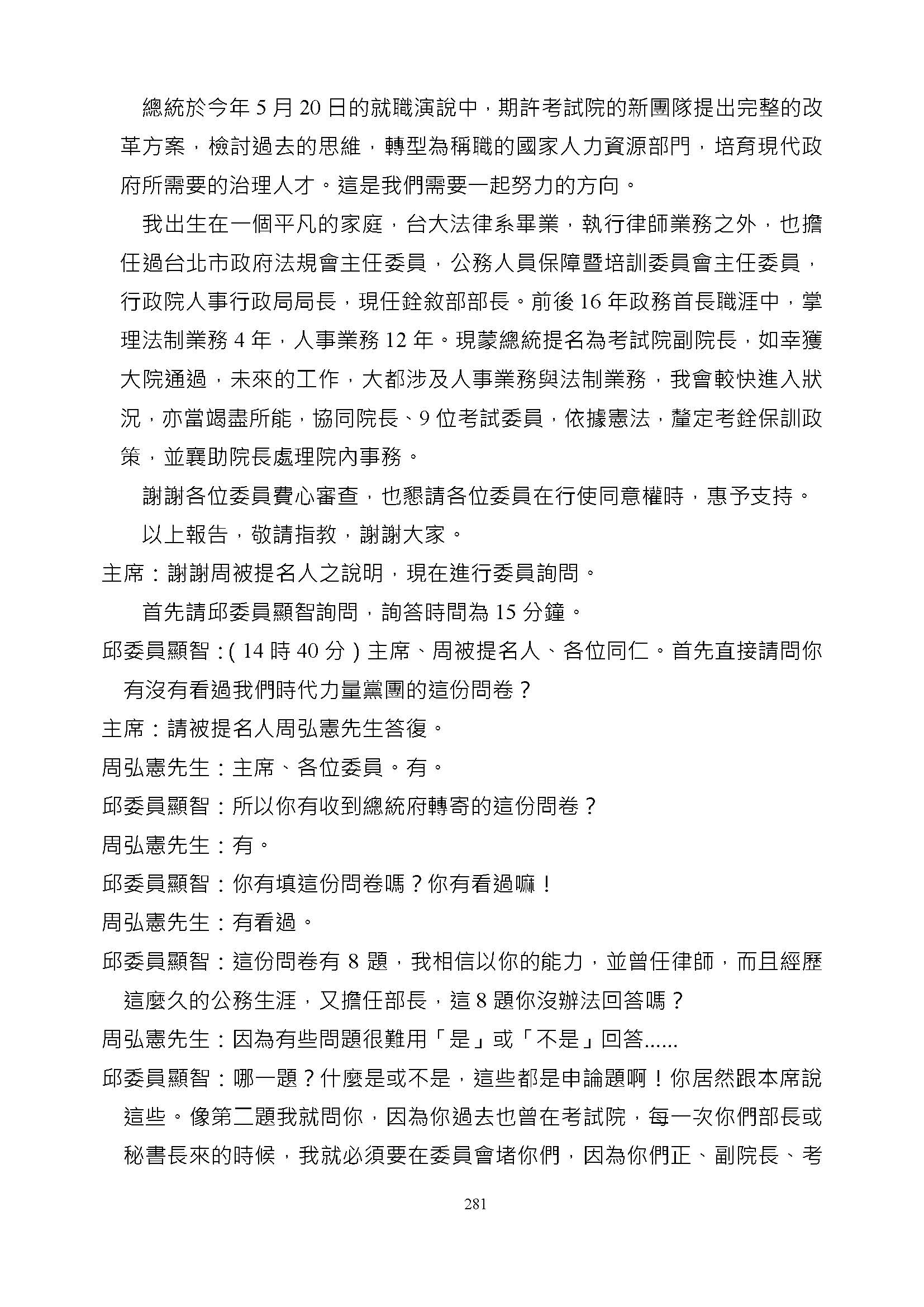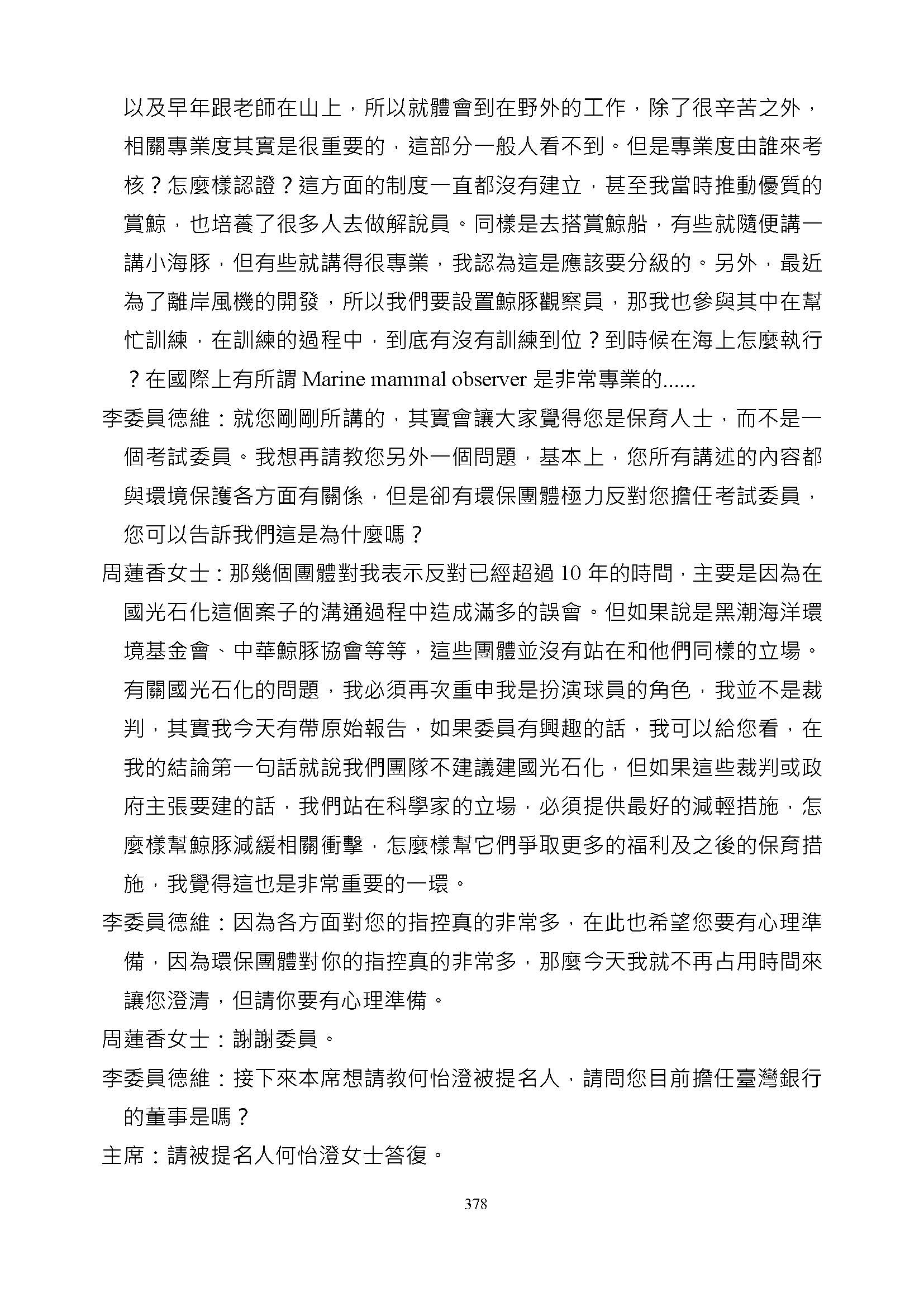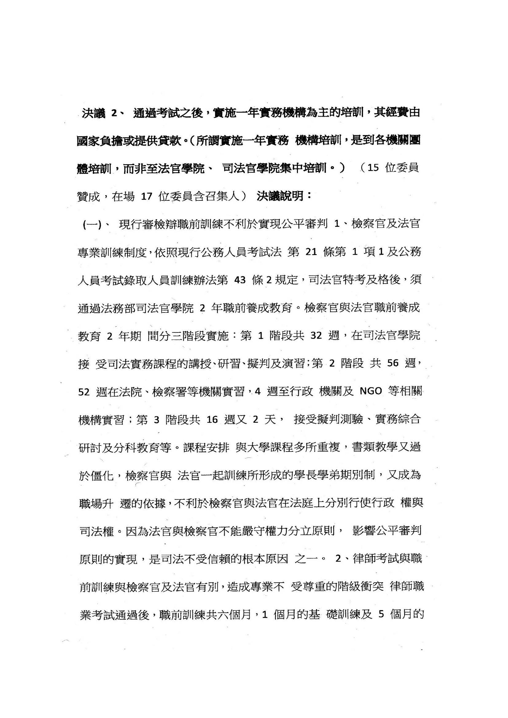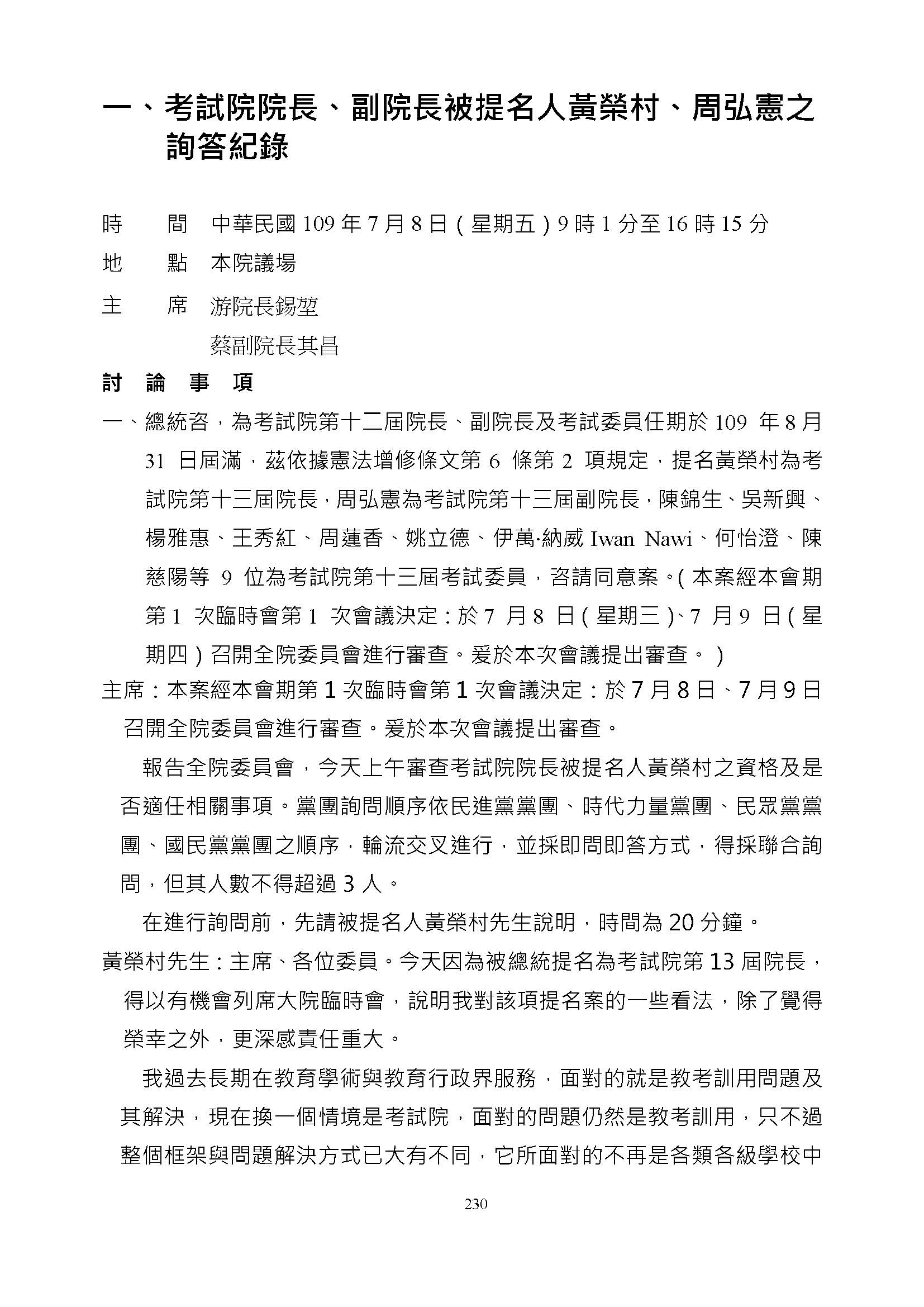 主席:報告全院委員會,針對司法院院長、副院長及五位大法官被提名人之資格及是否適任相關事項,均已審查完畢。本案作以下決議:提報院會,以記名投票表決。現在散會。