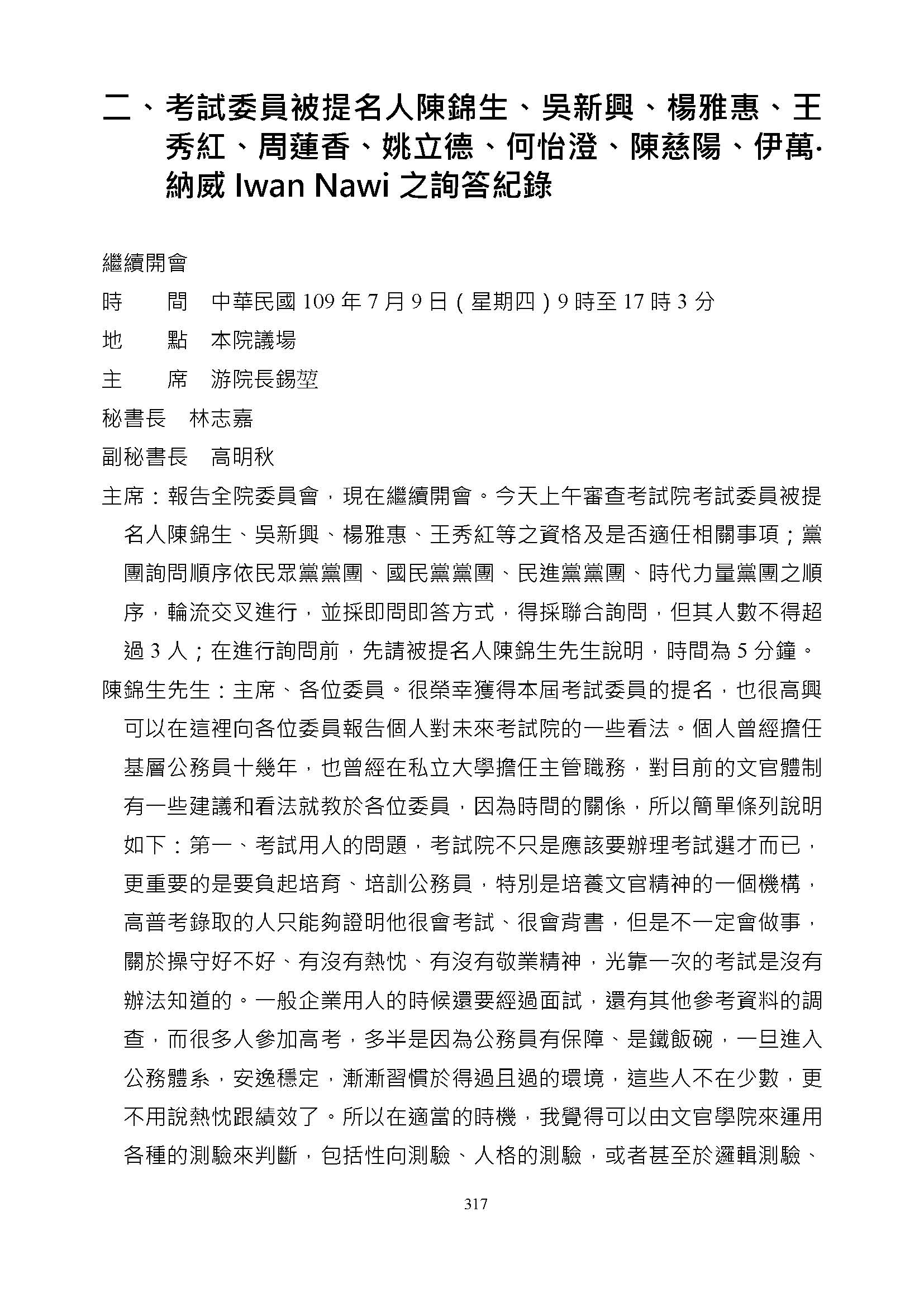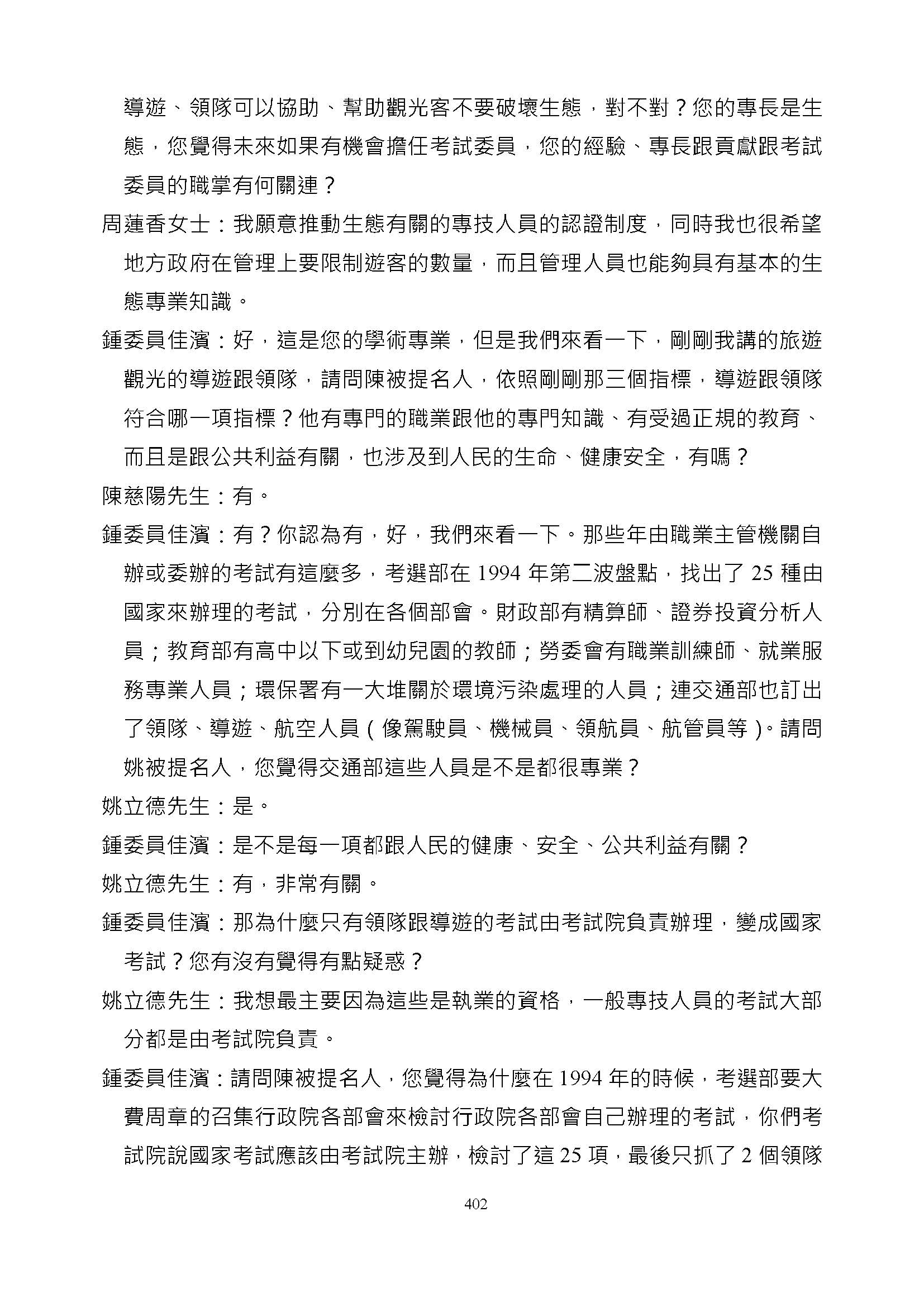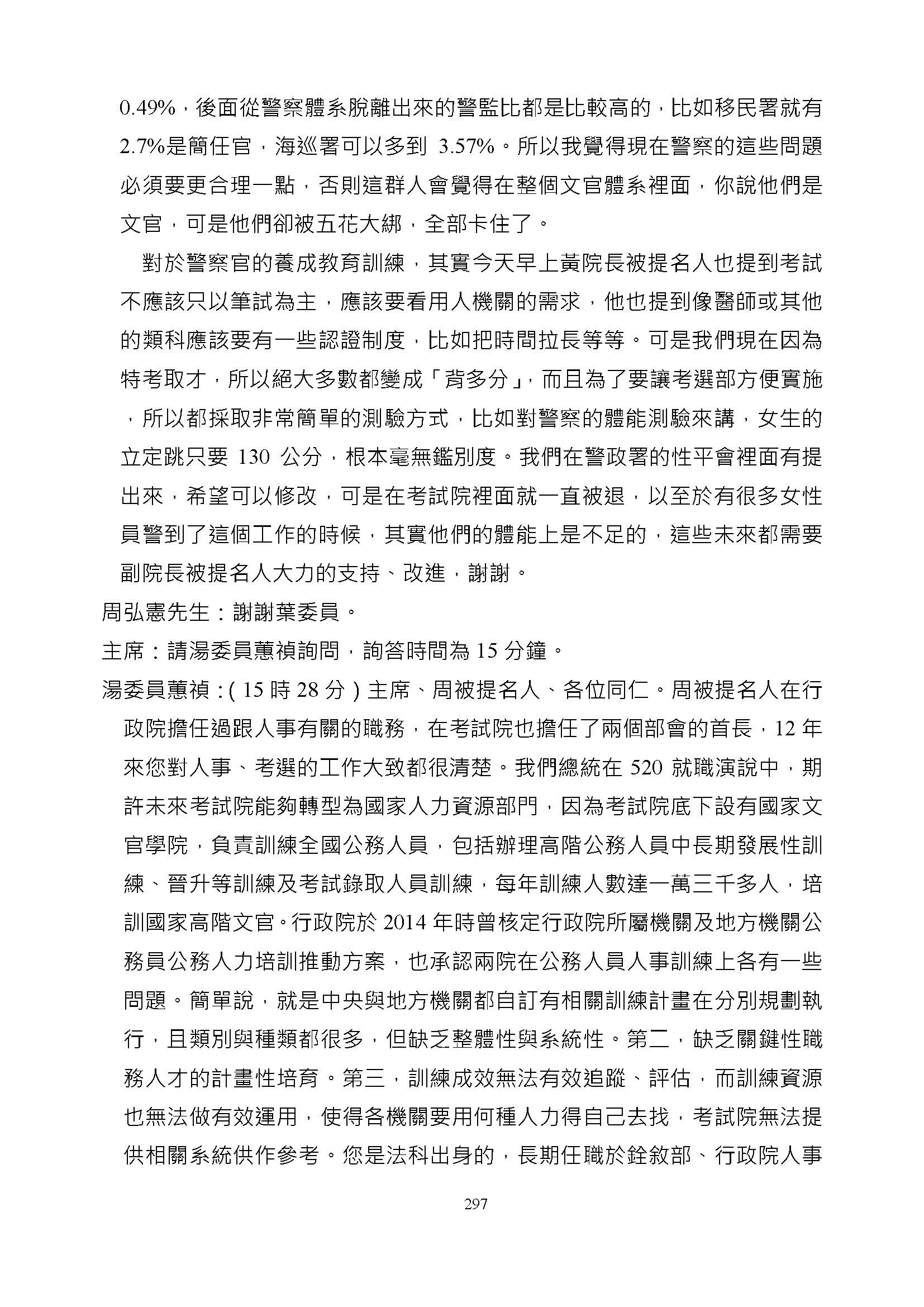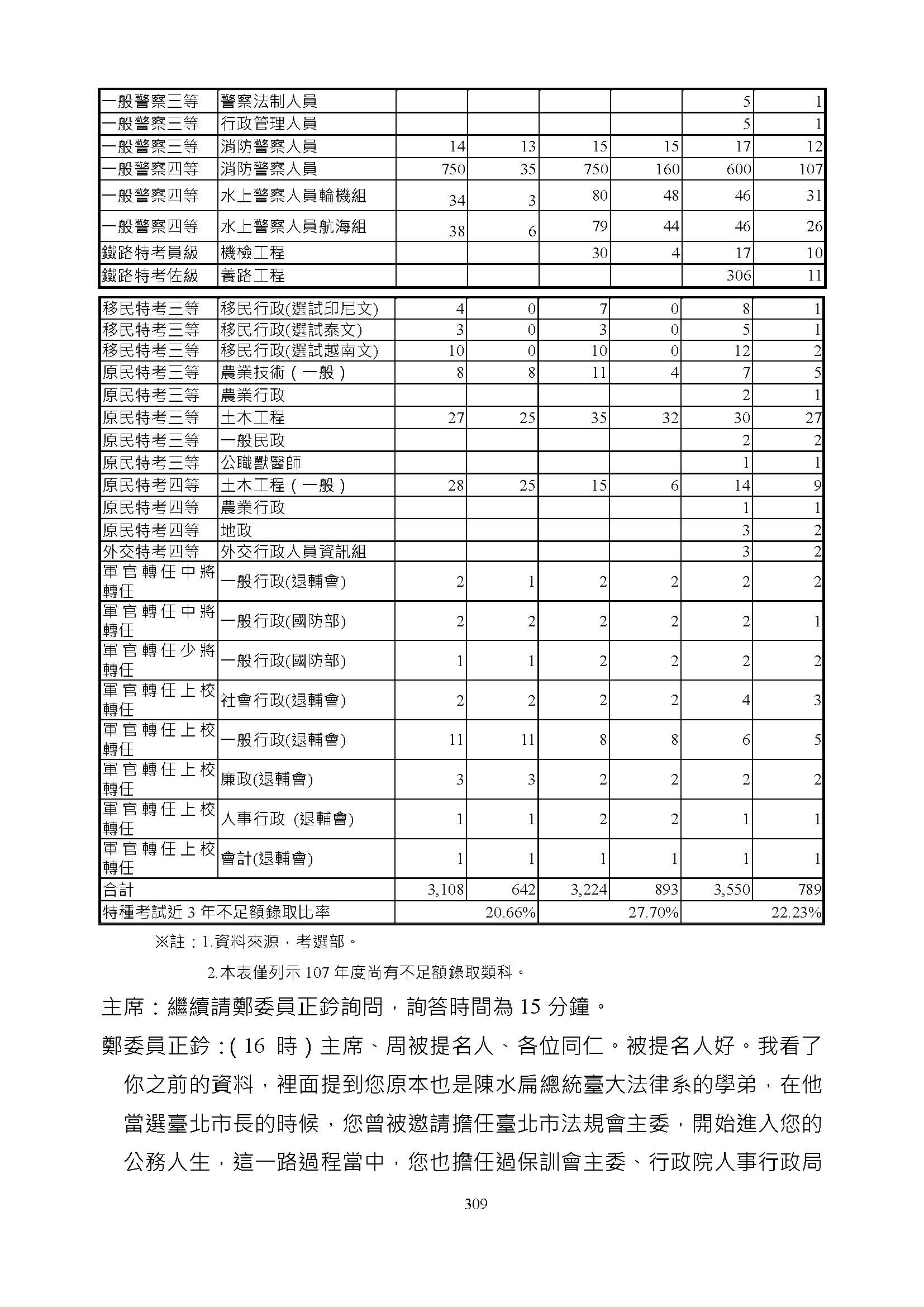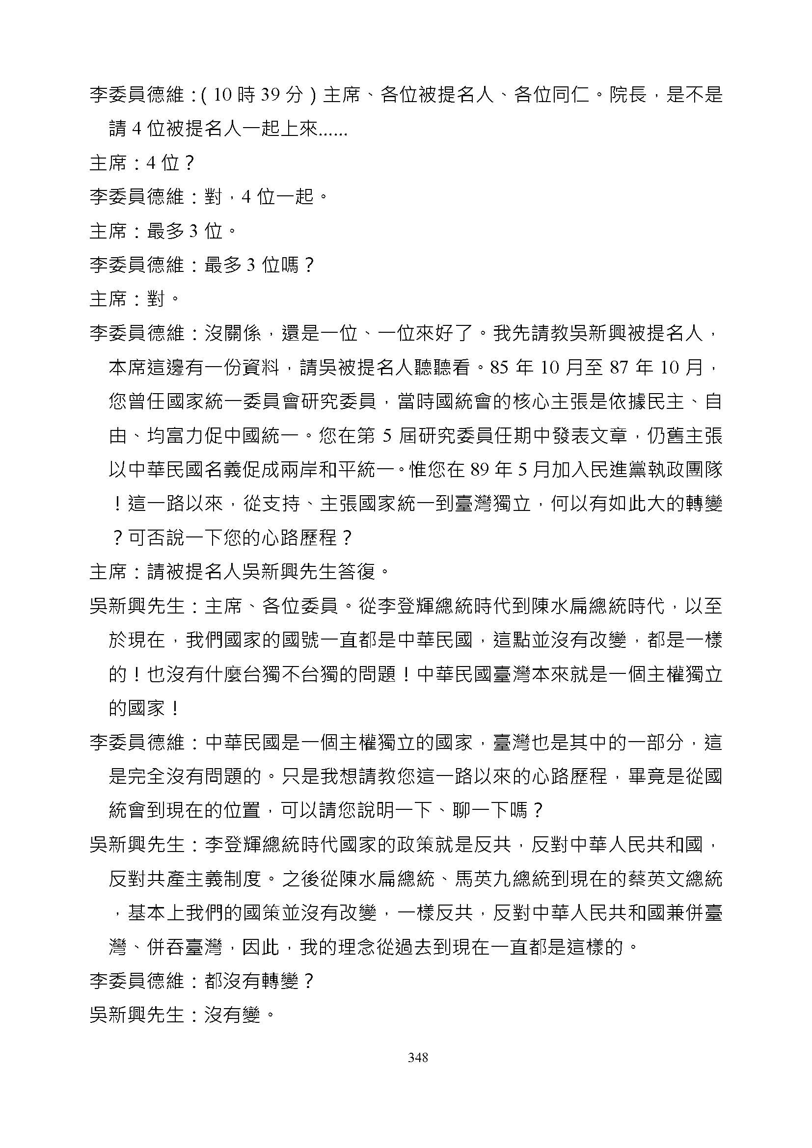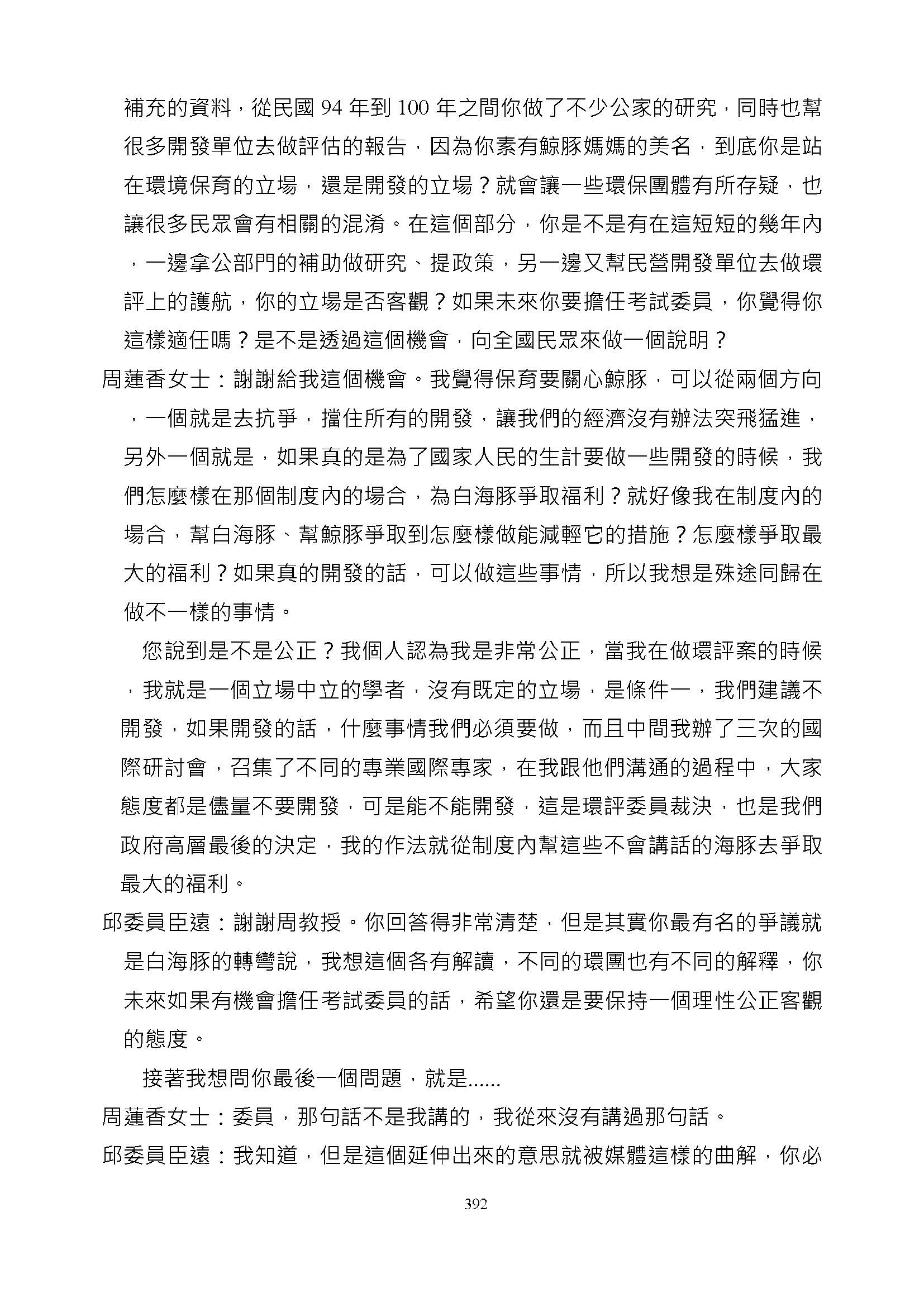 主席:報告全院委員會,針對司法院院長、副院長及五位大法官被提名人之資格及是否適任相關事項,均已審查完畢。本案作以下決議:提報院會,以記名投票表決。現在散會。