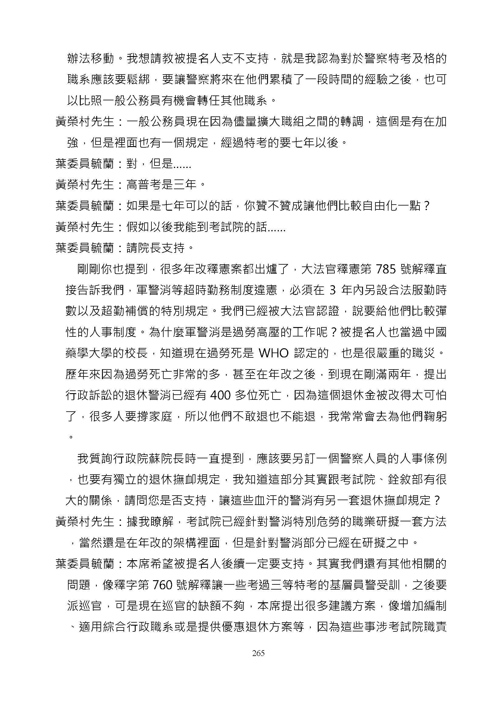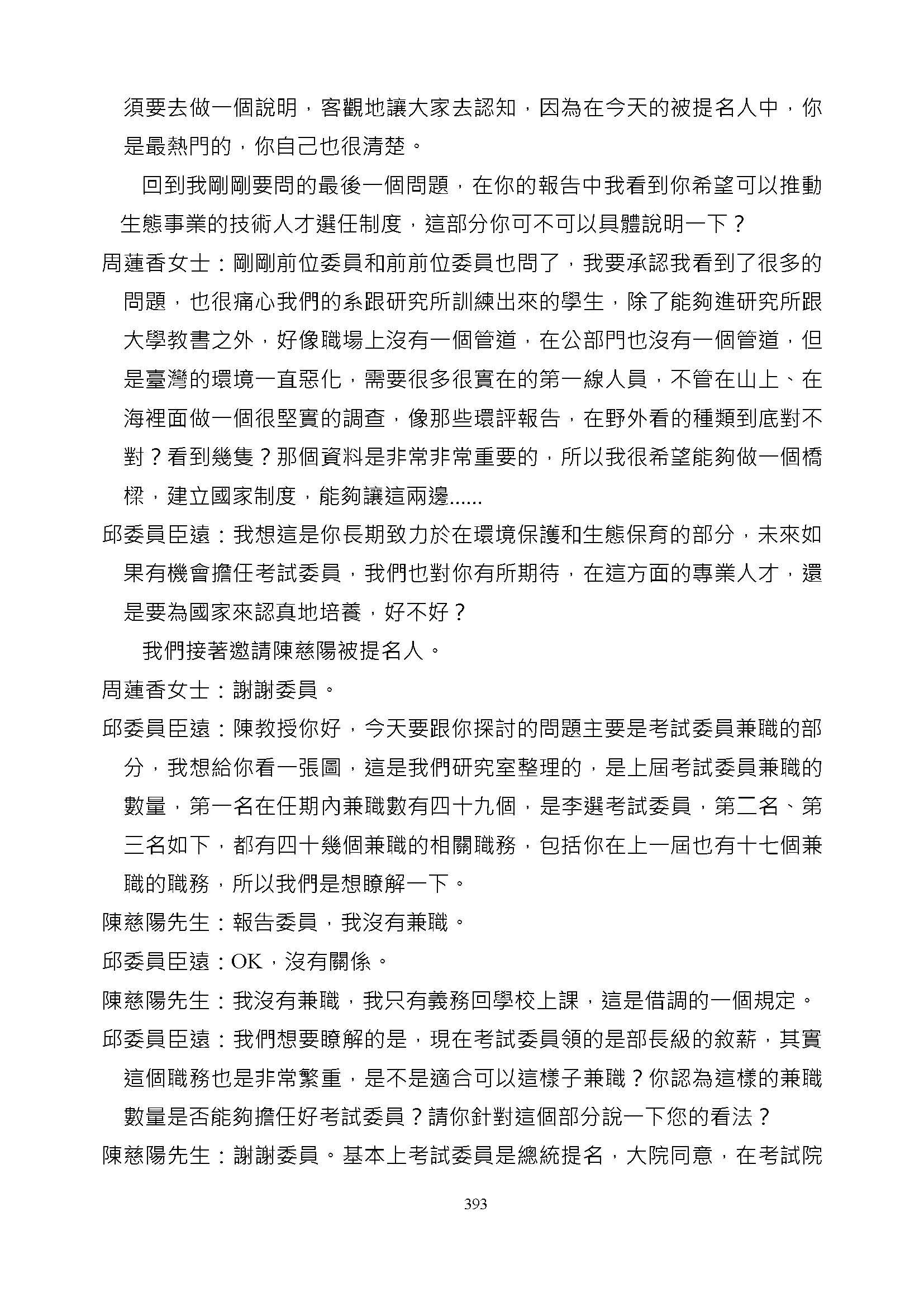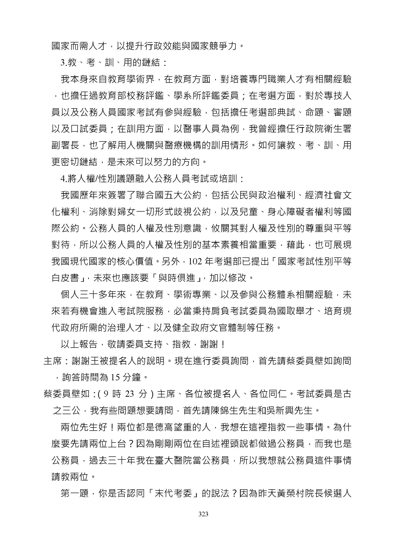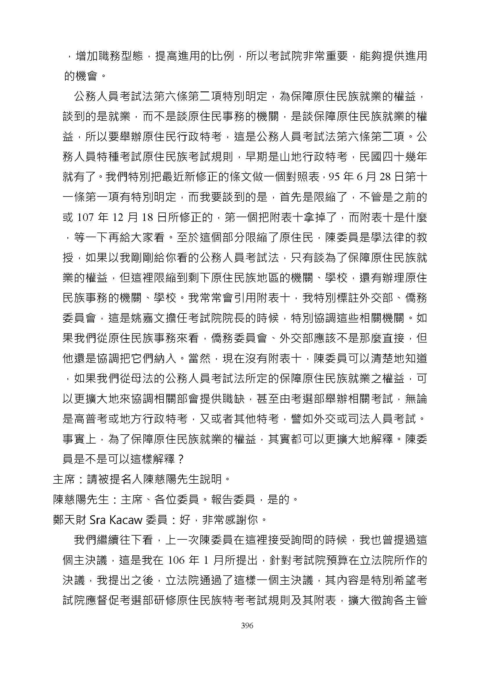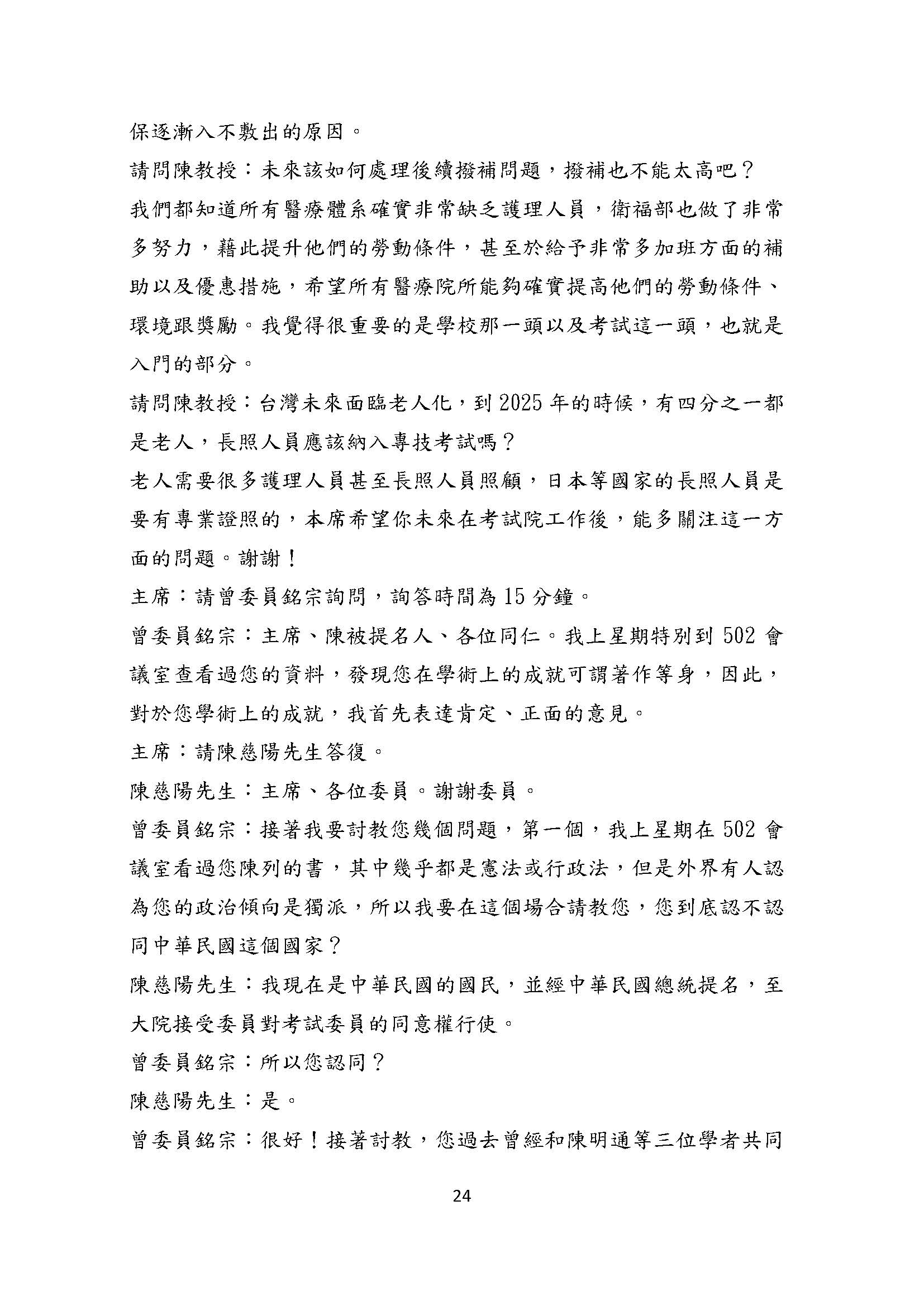 主席:報告全院委員會,針對司法院院長、副院長及五位大法官被提名人之資格及是否適任相關事項,均已審查完畢。本案作以下決議:提報院會,以記名投票表決。現在散會。