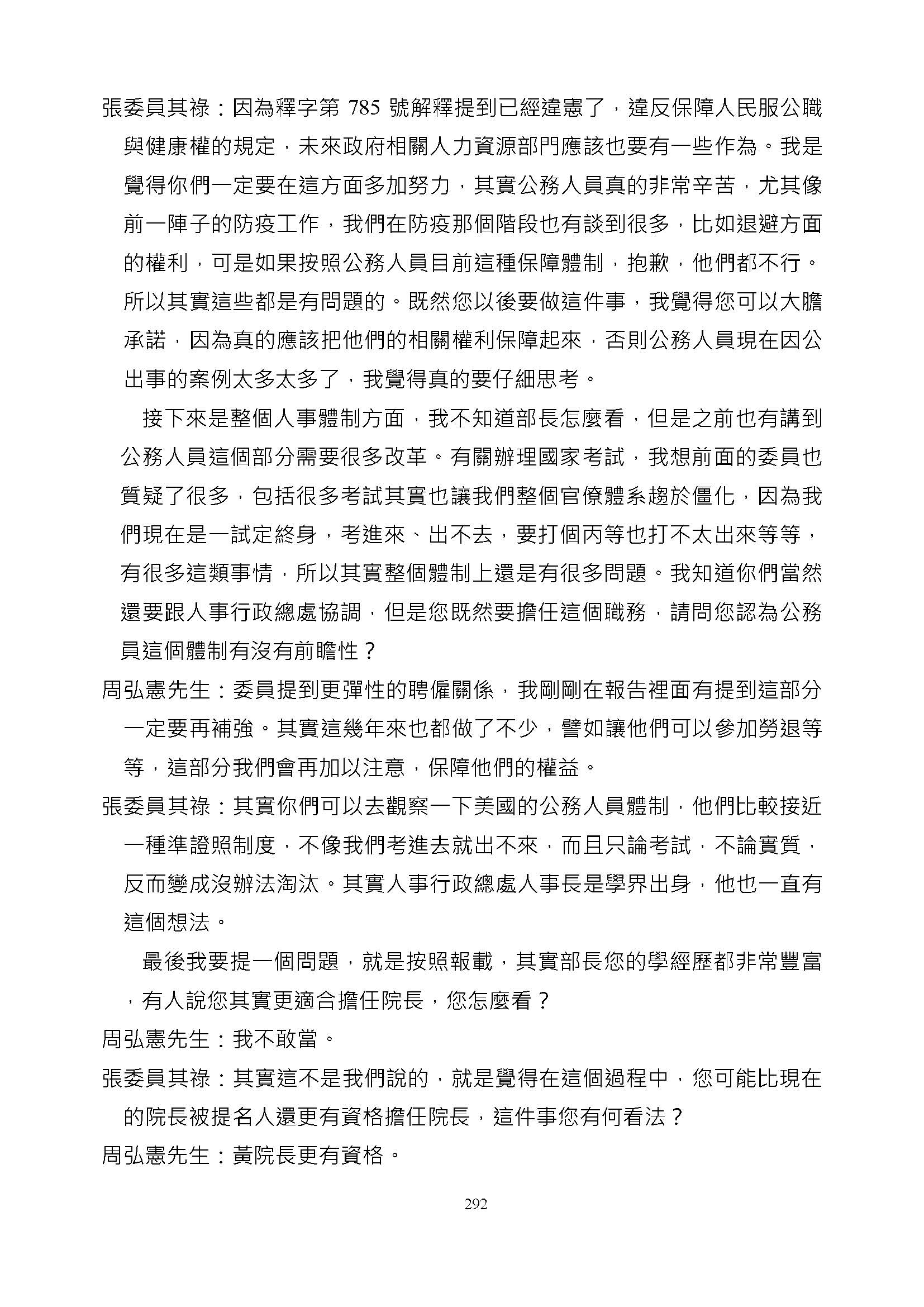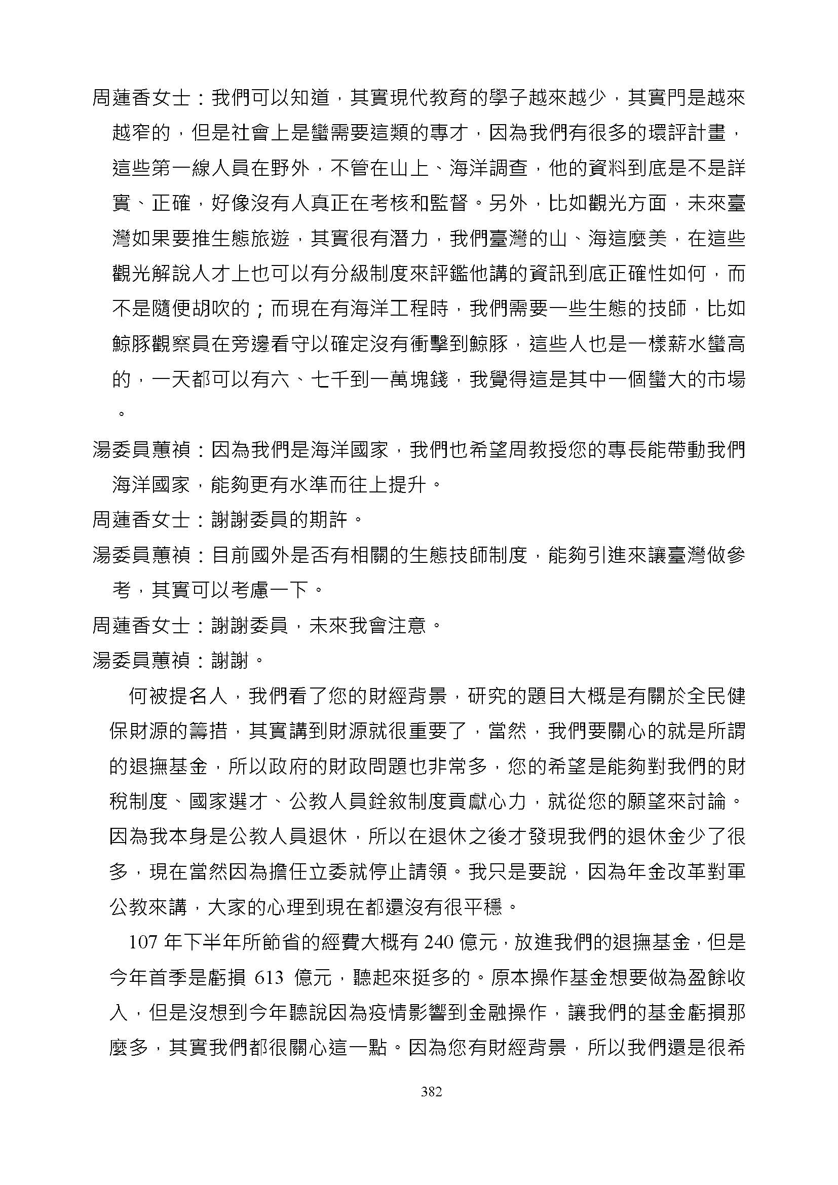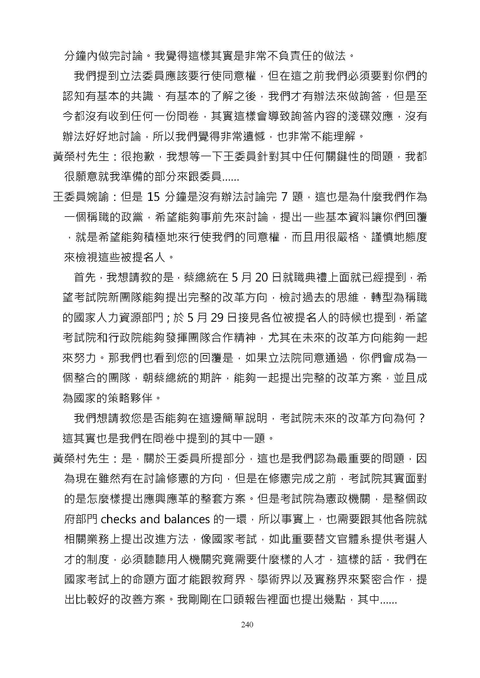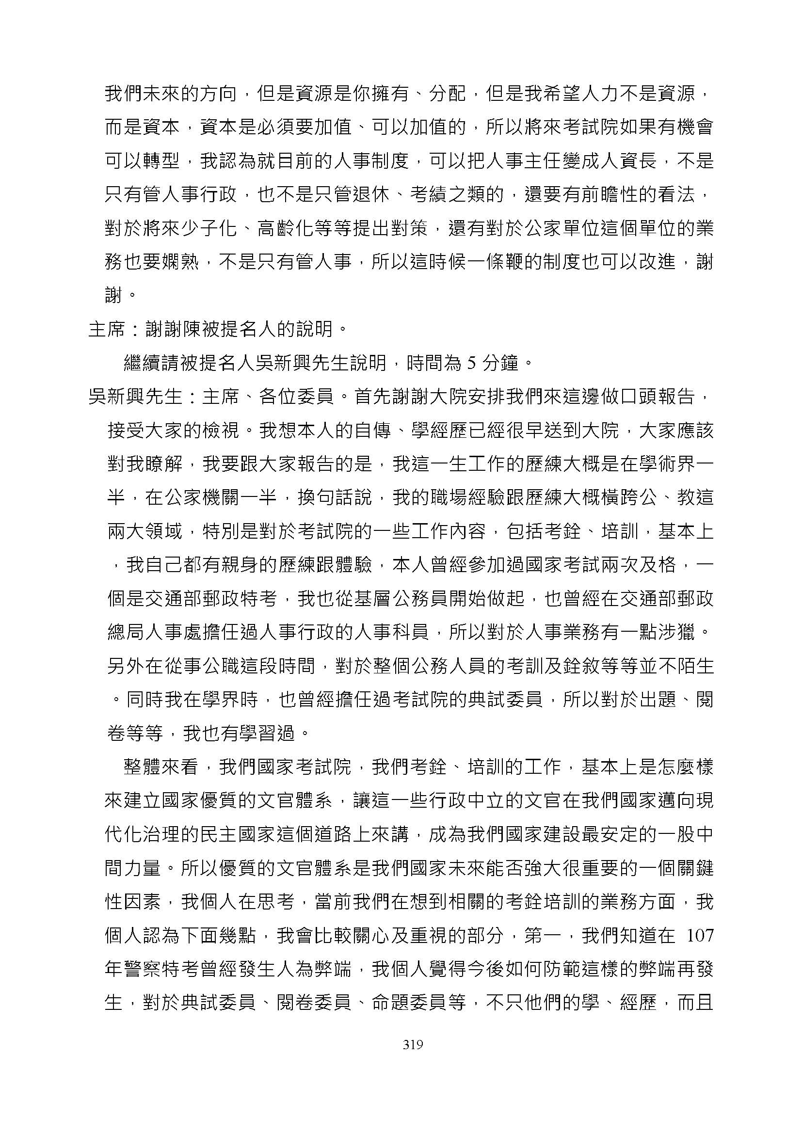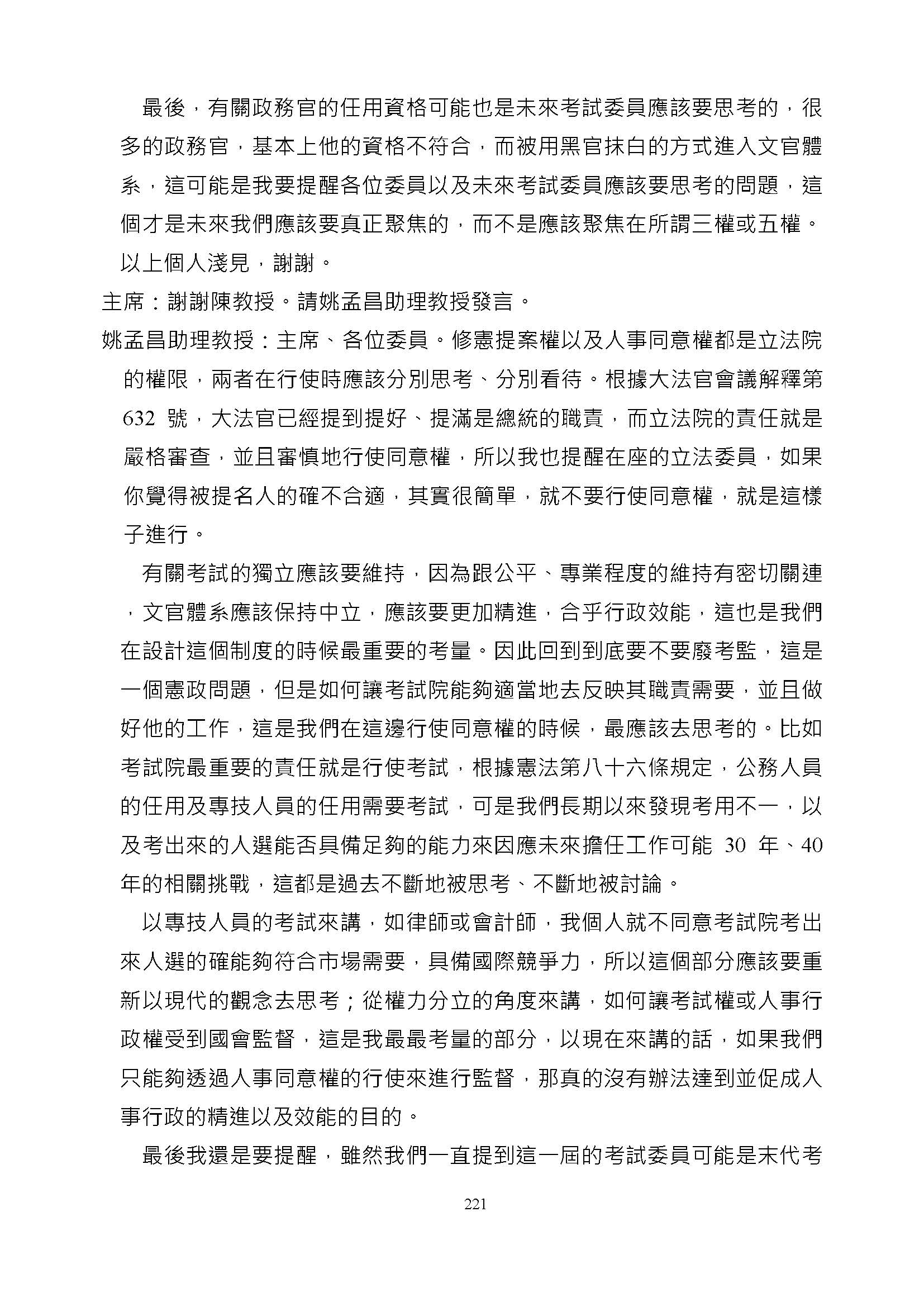 主席:報告全院委員會,針對司法院院長、副院長及五位大法官被提名人之資格及是否適任相關事項,均已審查完畢。本案作以下決議:提報院會,以記名投票表決。現在散會。