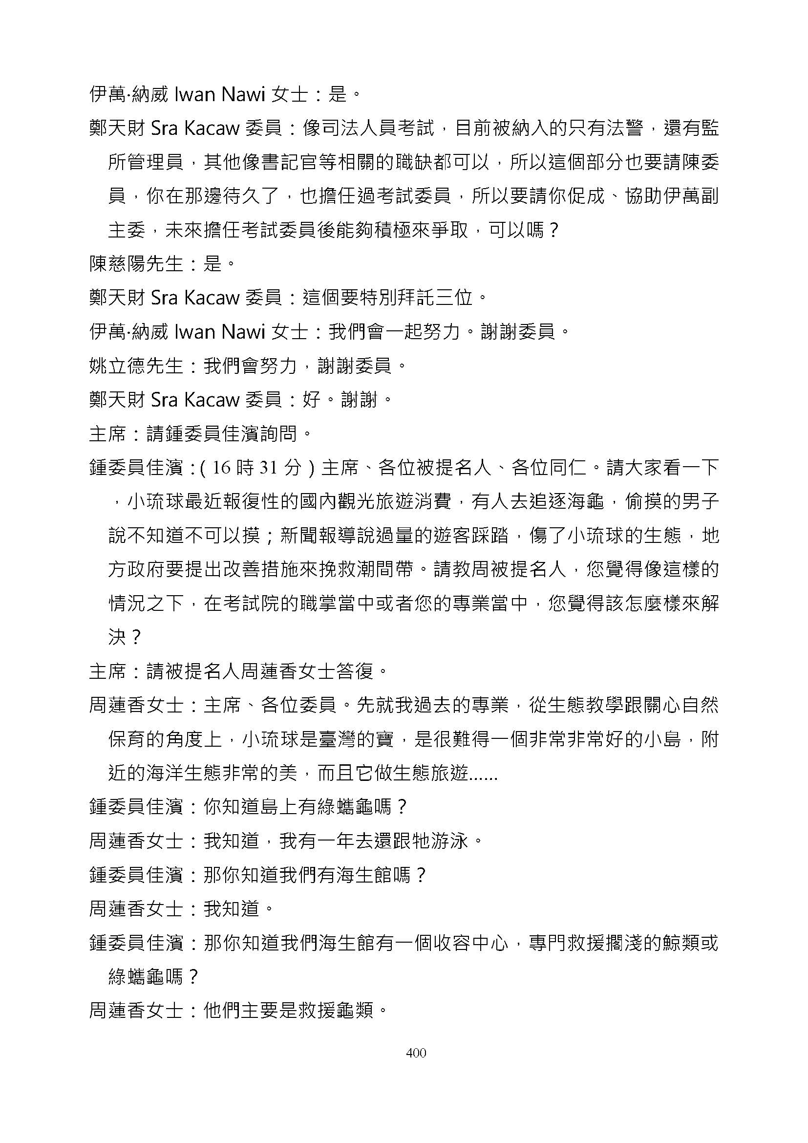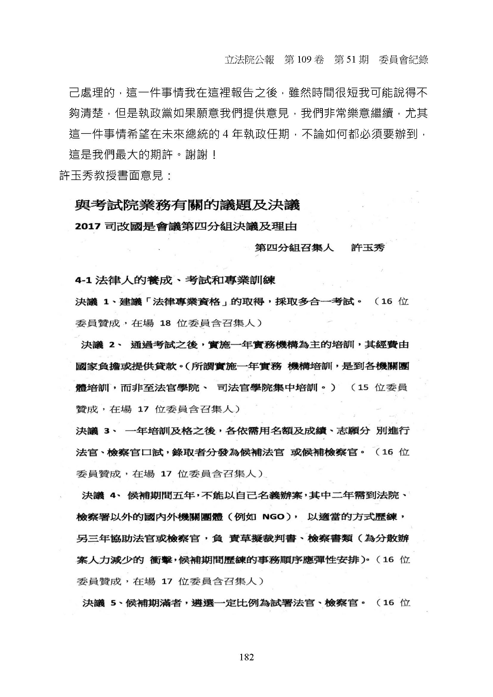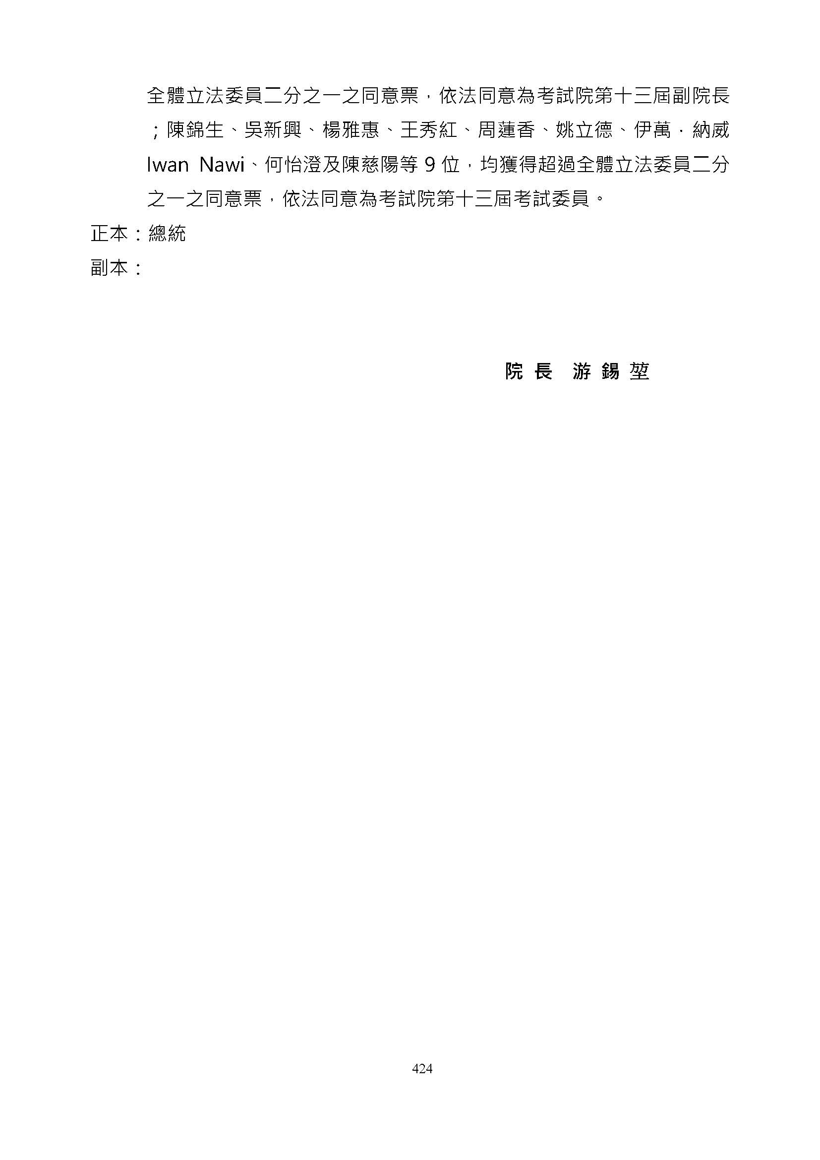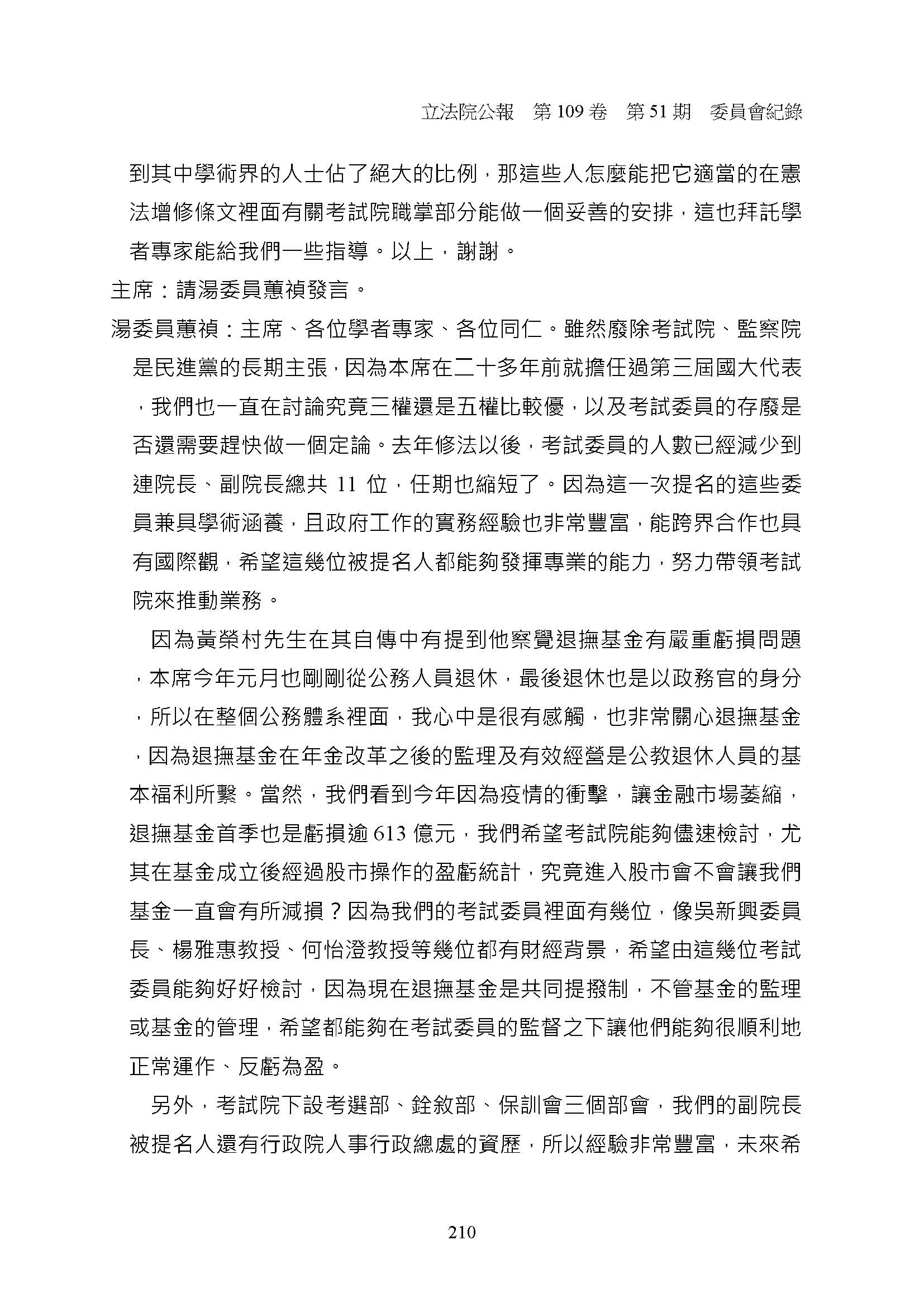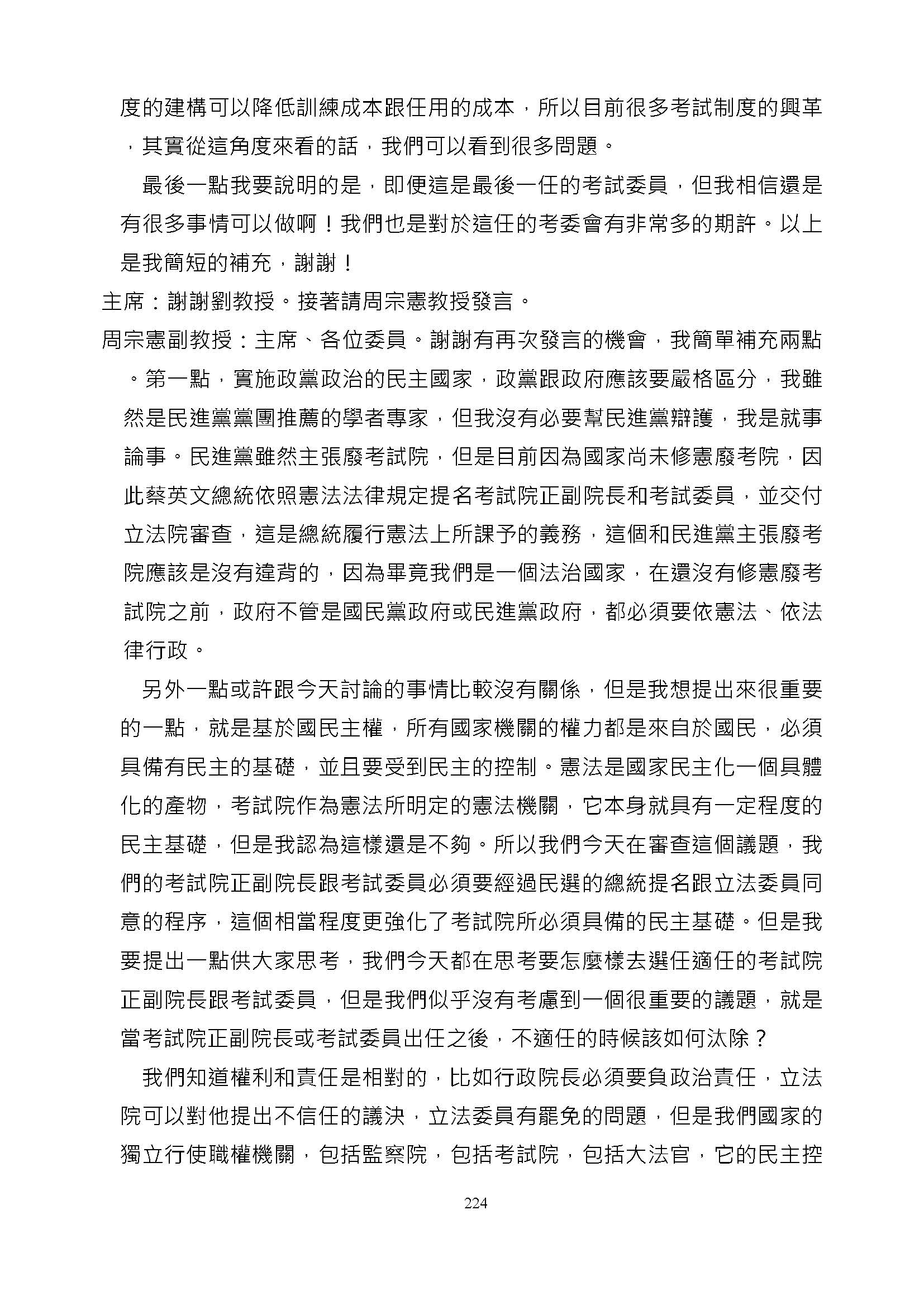 主席:報告全院委員會,針對司法院院長、副院長及五位大法官被提名人之資格及是否適任相關事項,均已審查完畢。本案作以下決議:提報院會,以記名投票表決。現在散會。