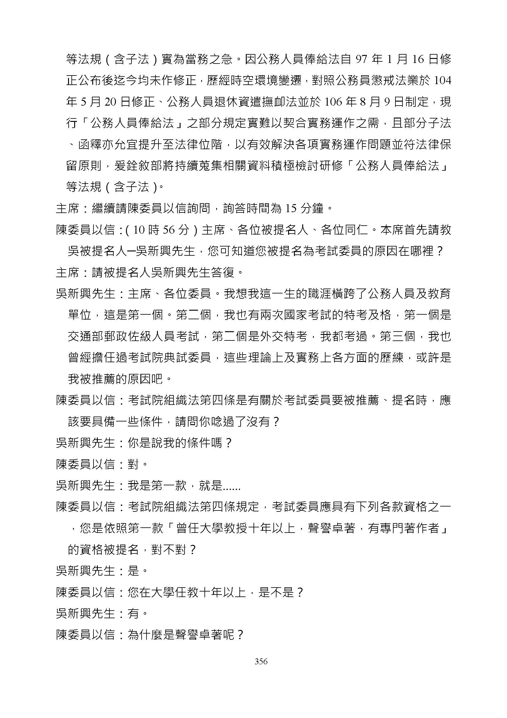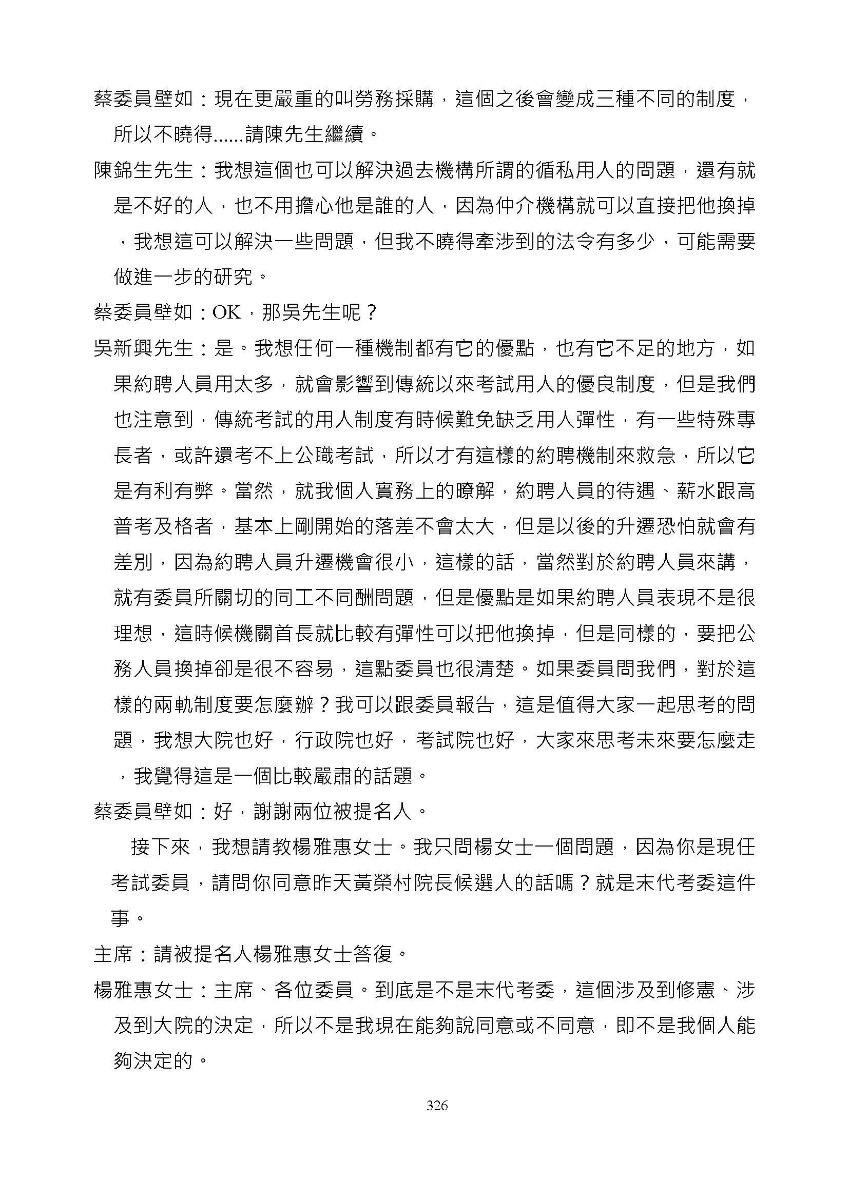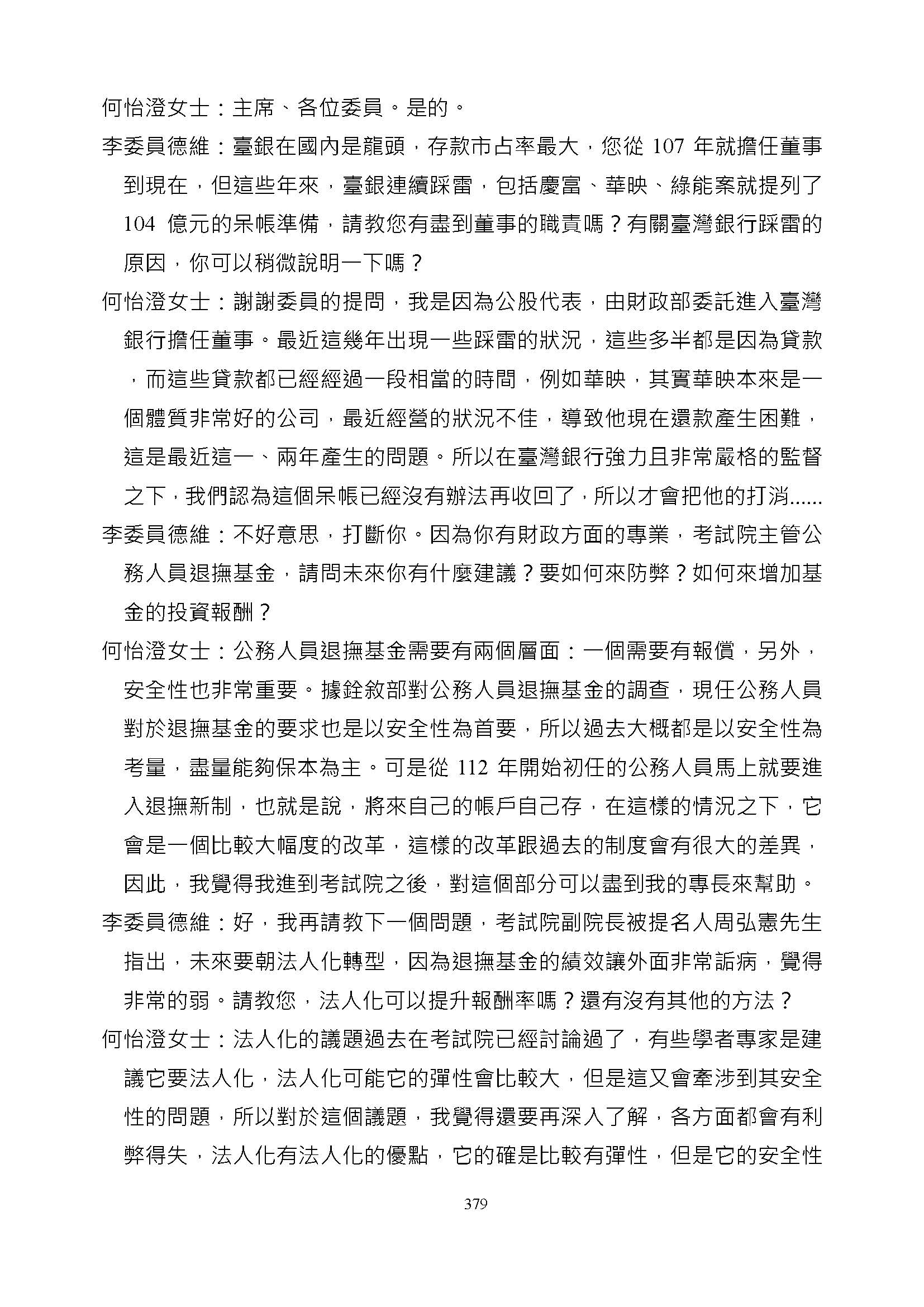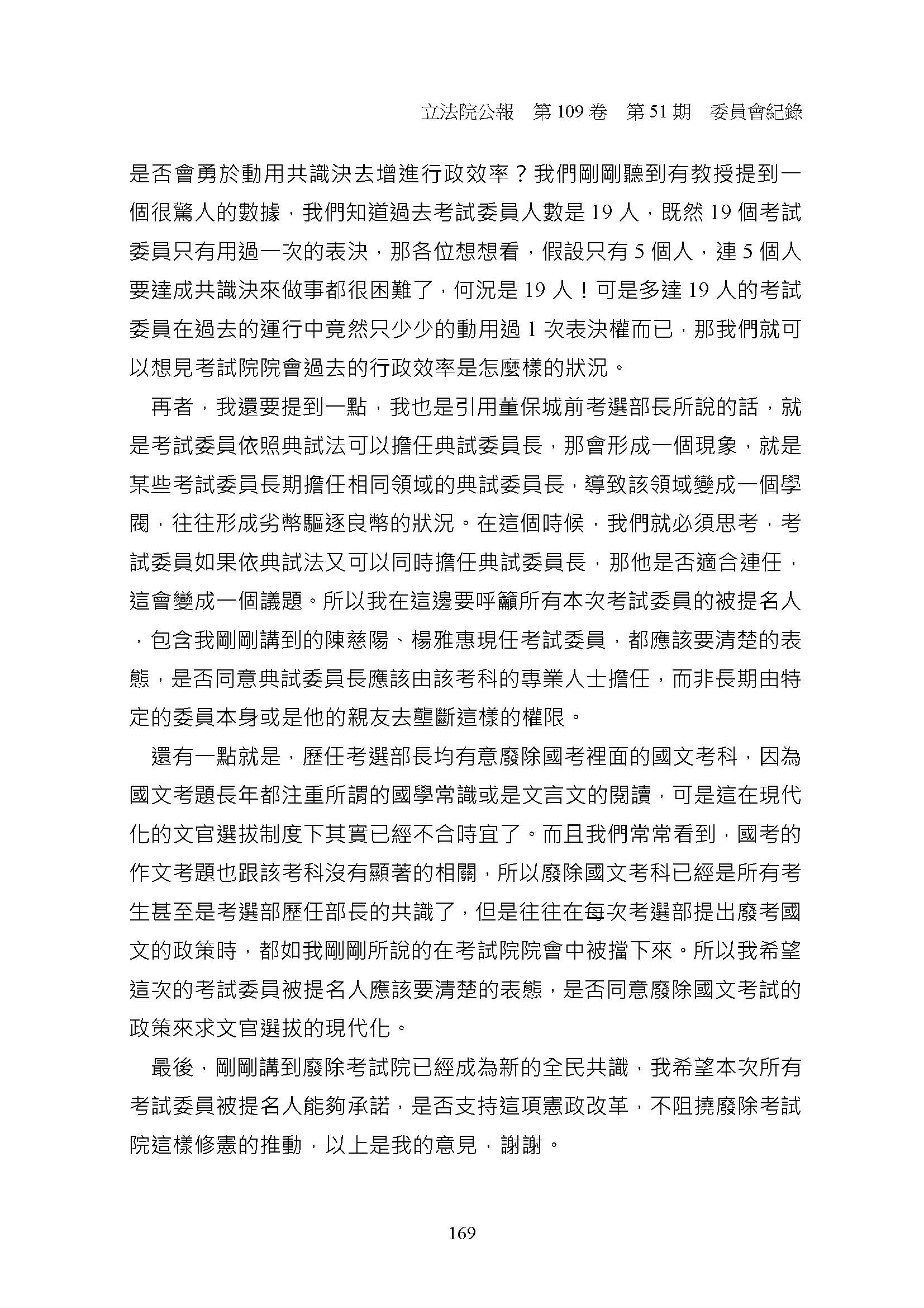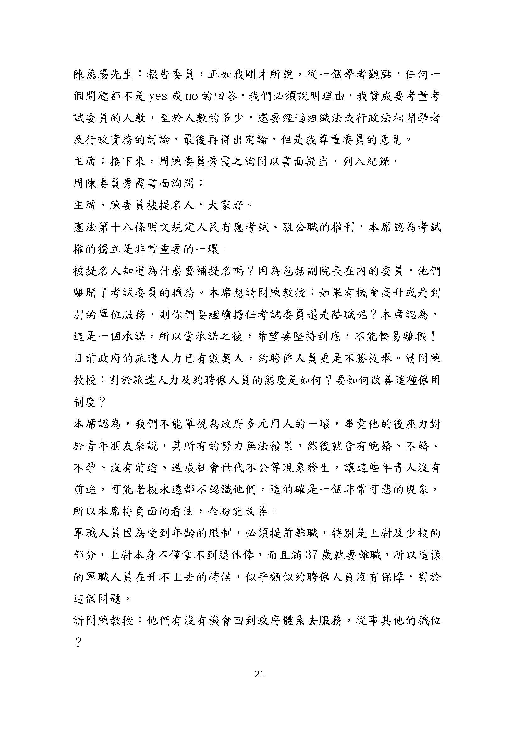 主席:報告全院委員會,針對司法院院長、副院長及五位大法官被提名人之資格及是否適任相關事項,均已審查完畢。本案作以下決議:提報院會,以記名投票表決。現在散會。