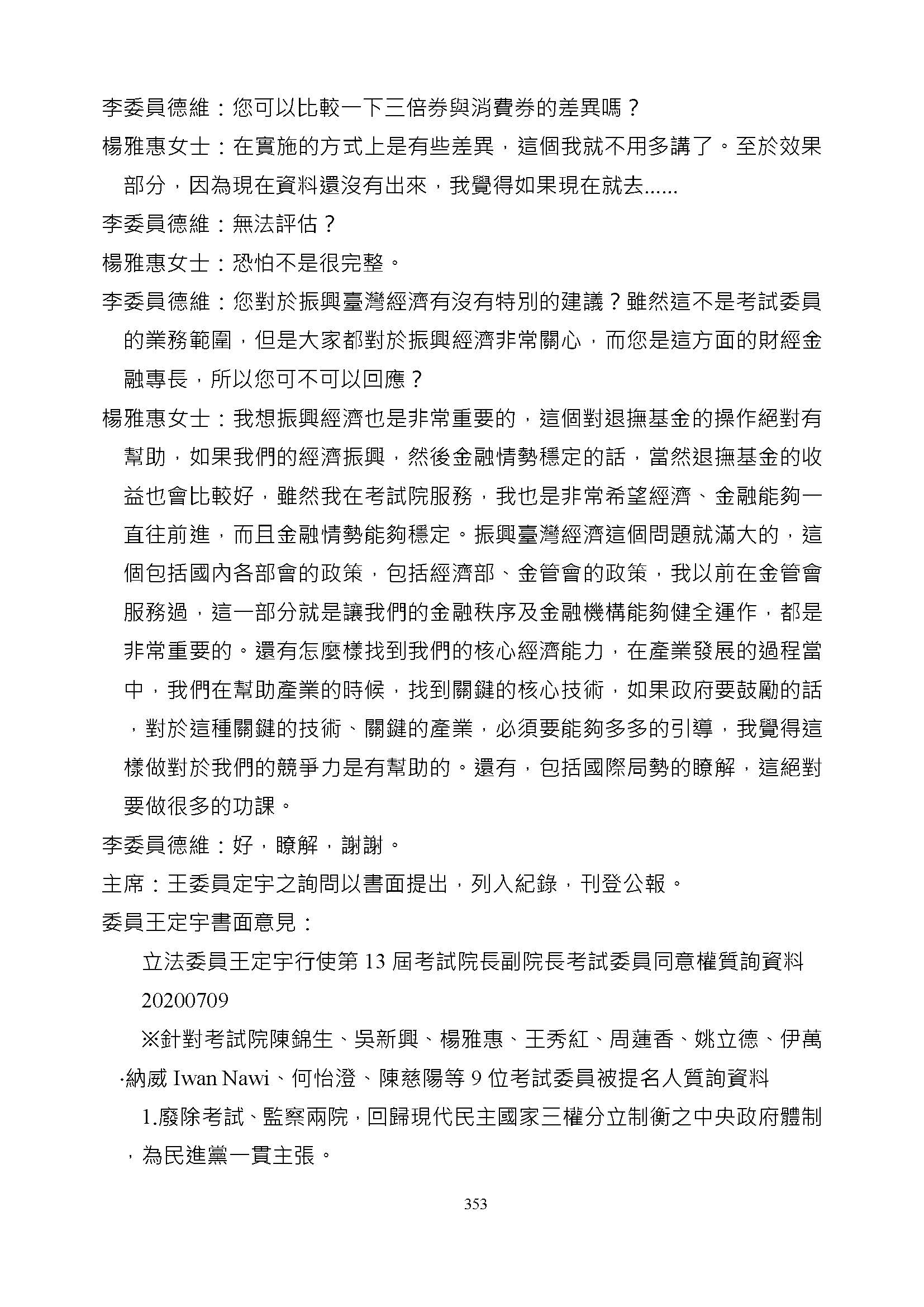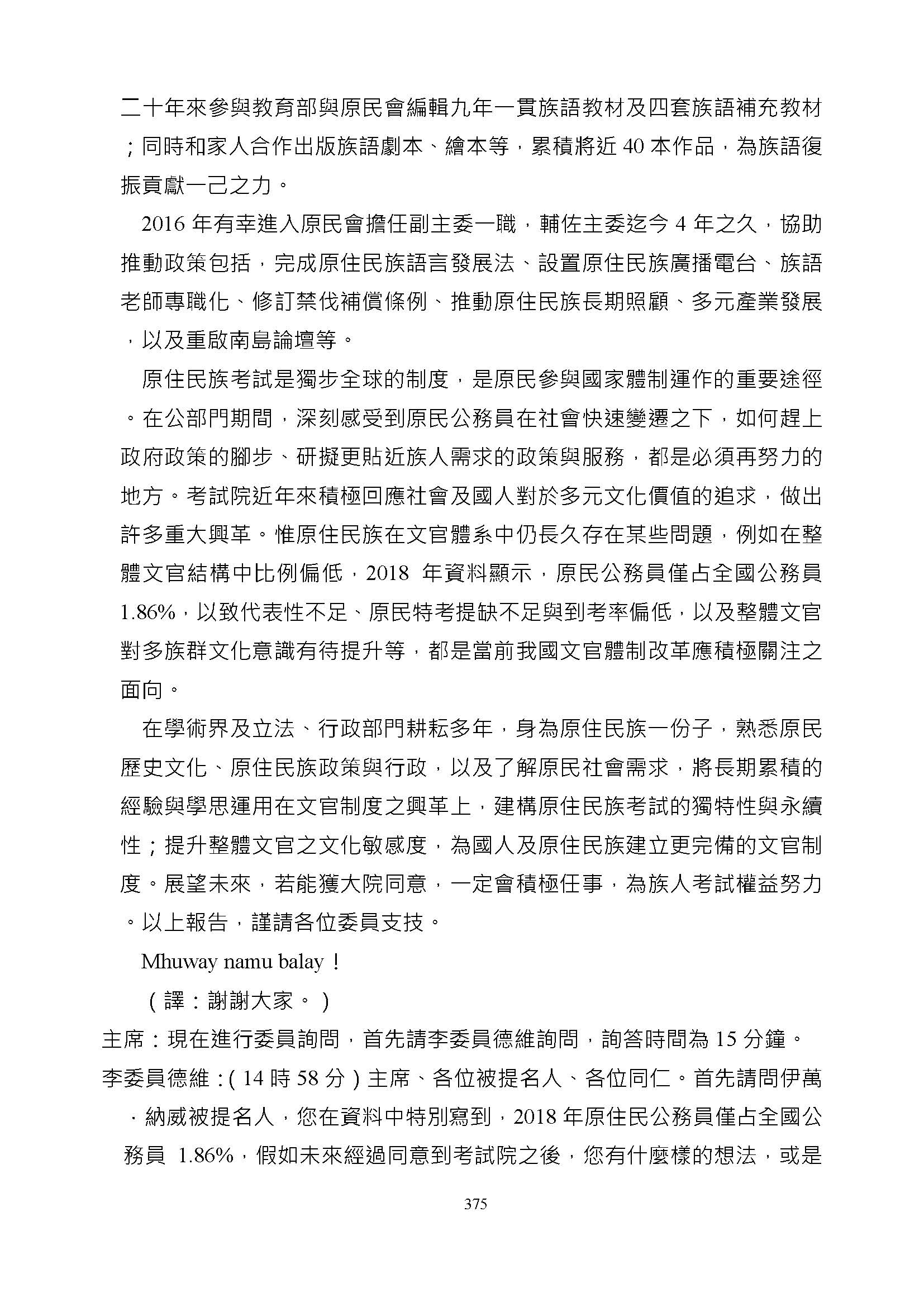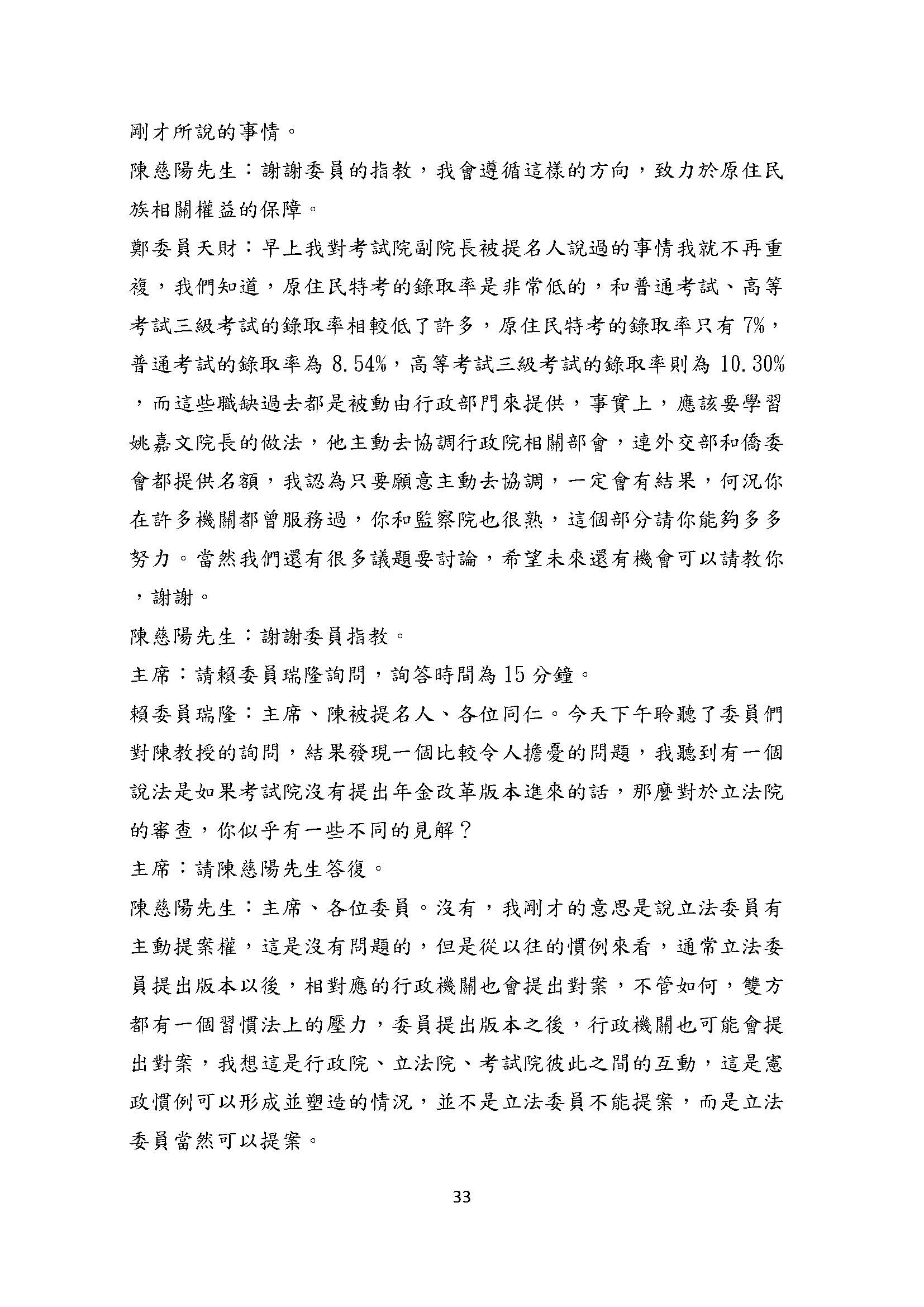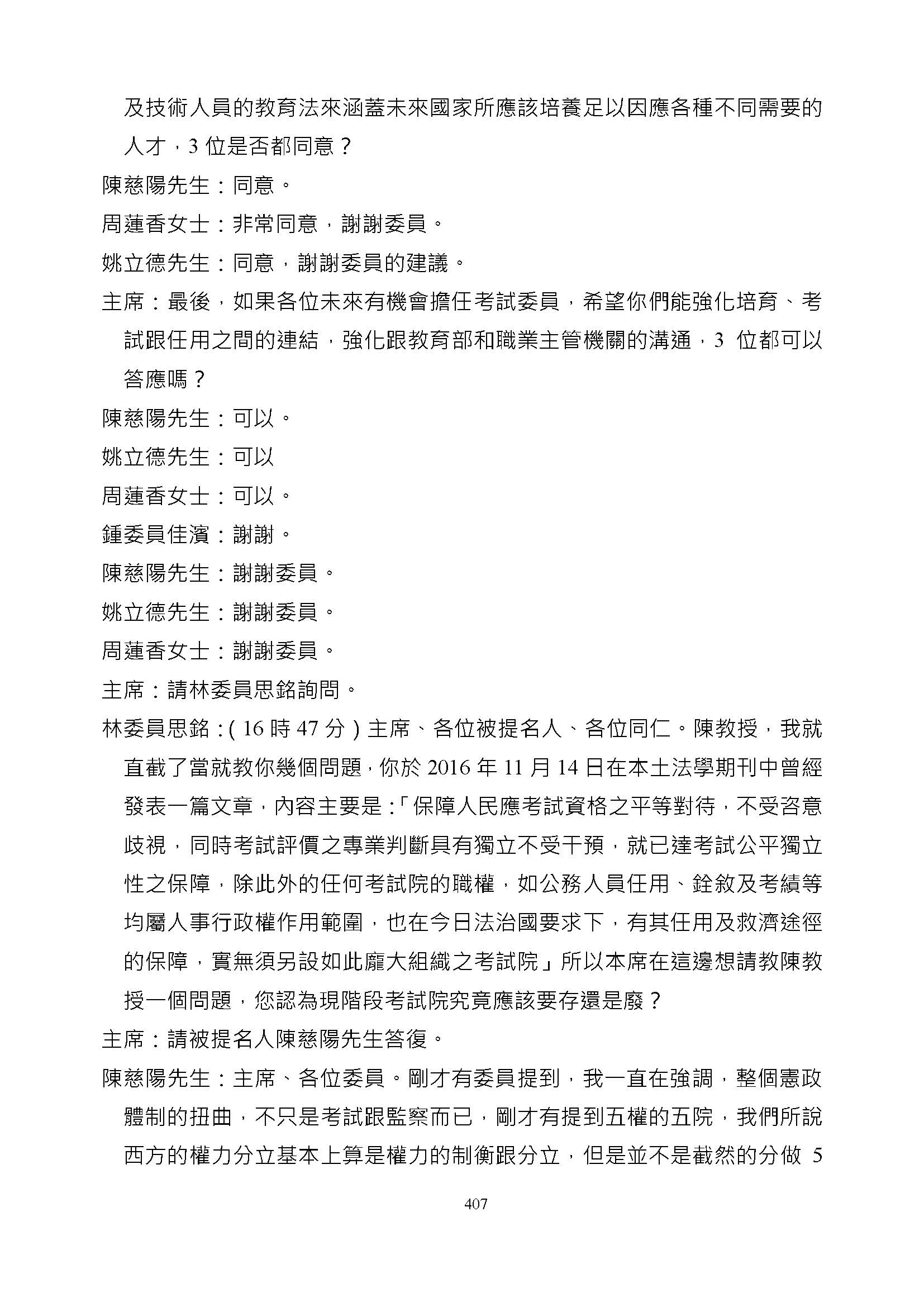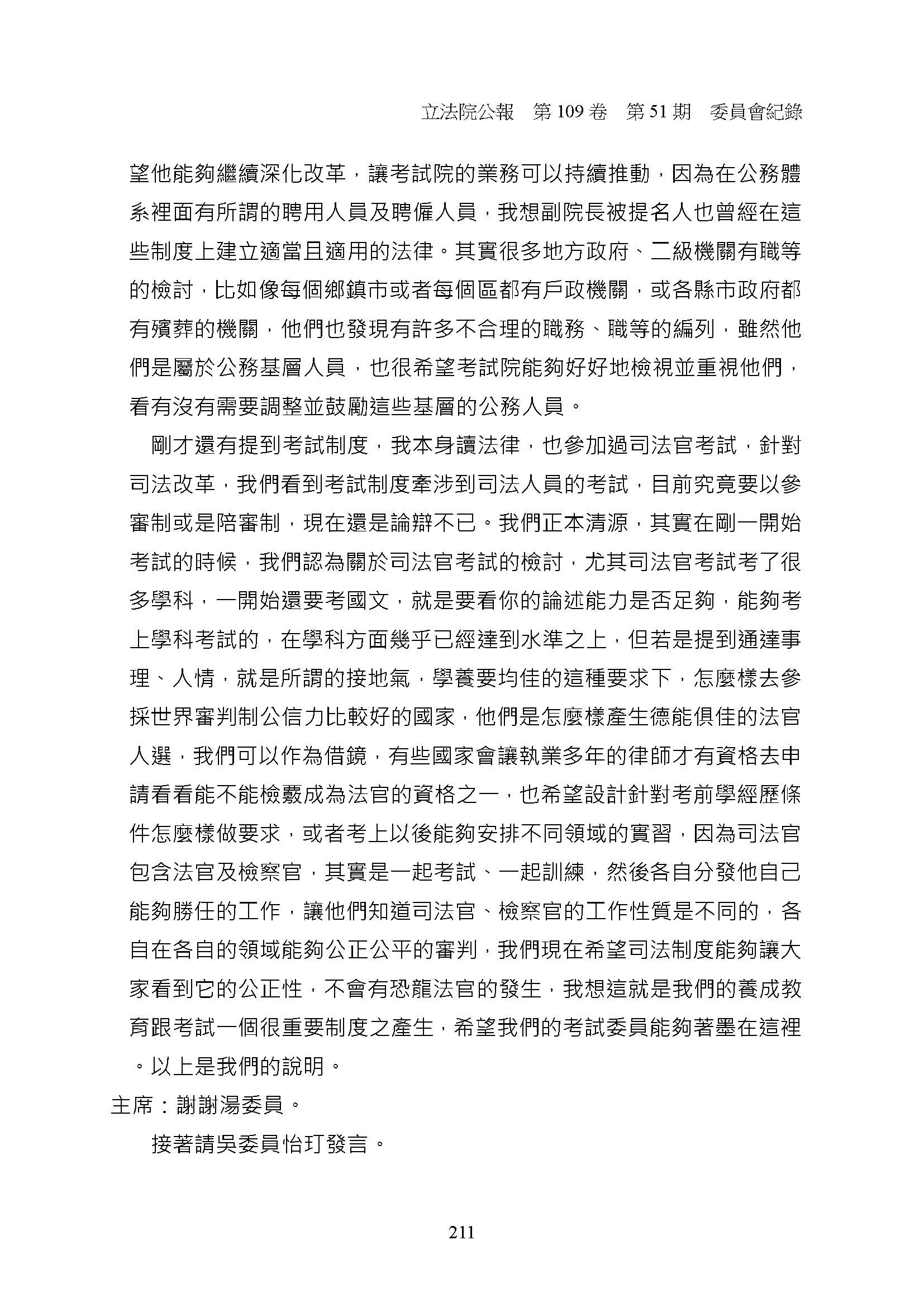 主席:報告全院委員會,針對司法院院長、副院長及五位大法官被提名人之資格及是否適任相關事項,均已審查完畢。本案作以下決議:提報院會,以記名投票表決。現在散會。