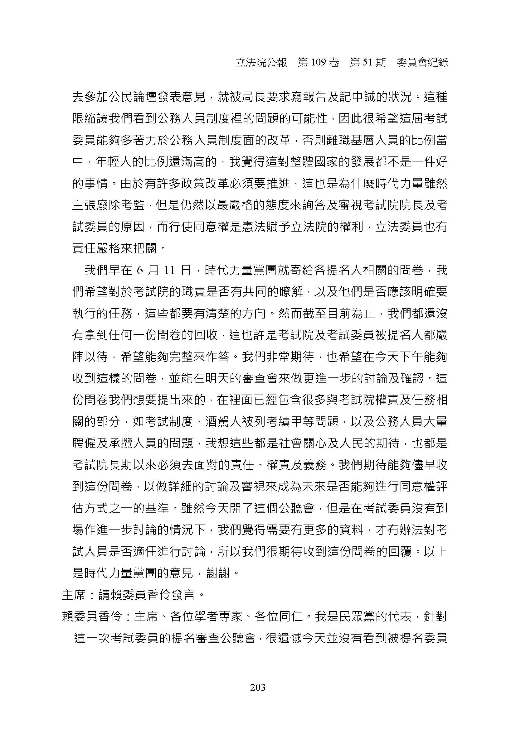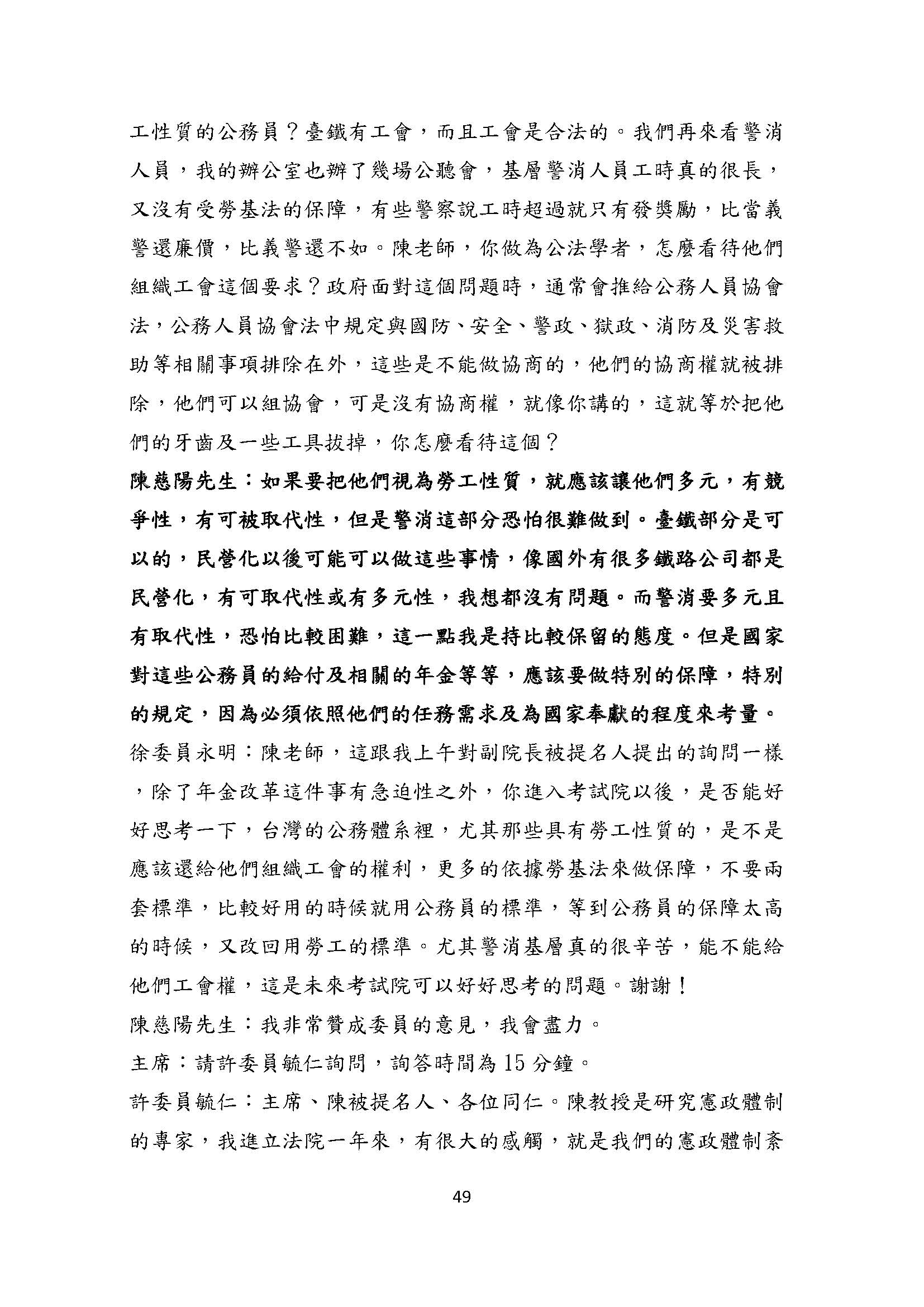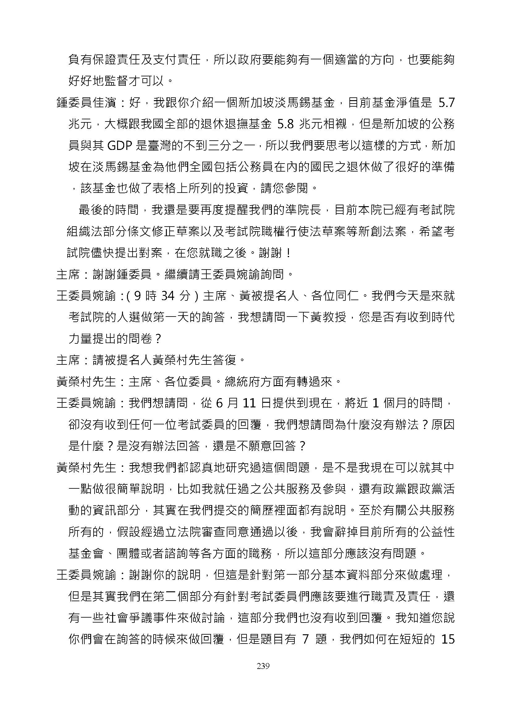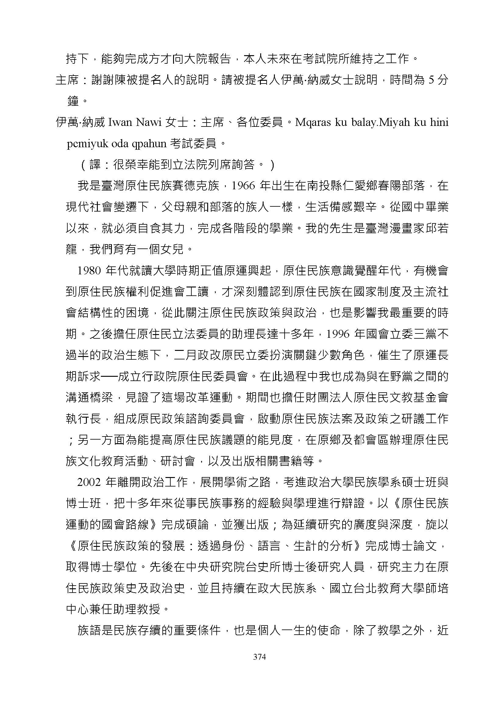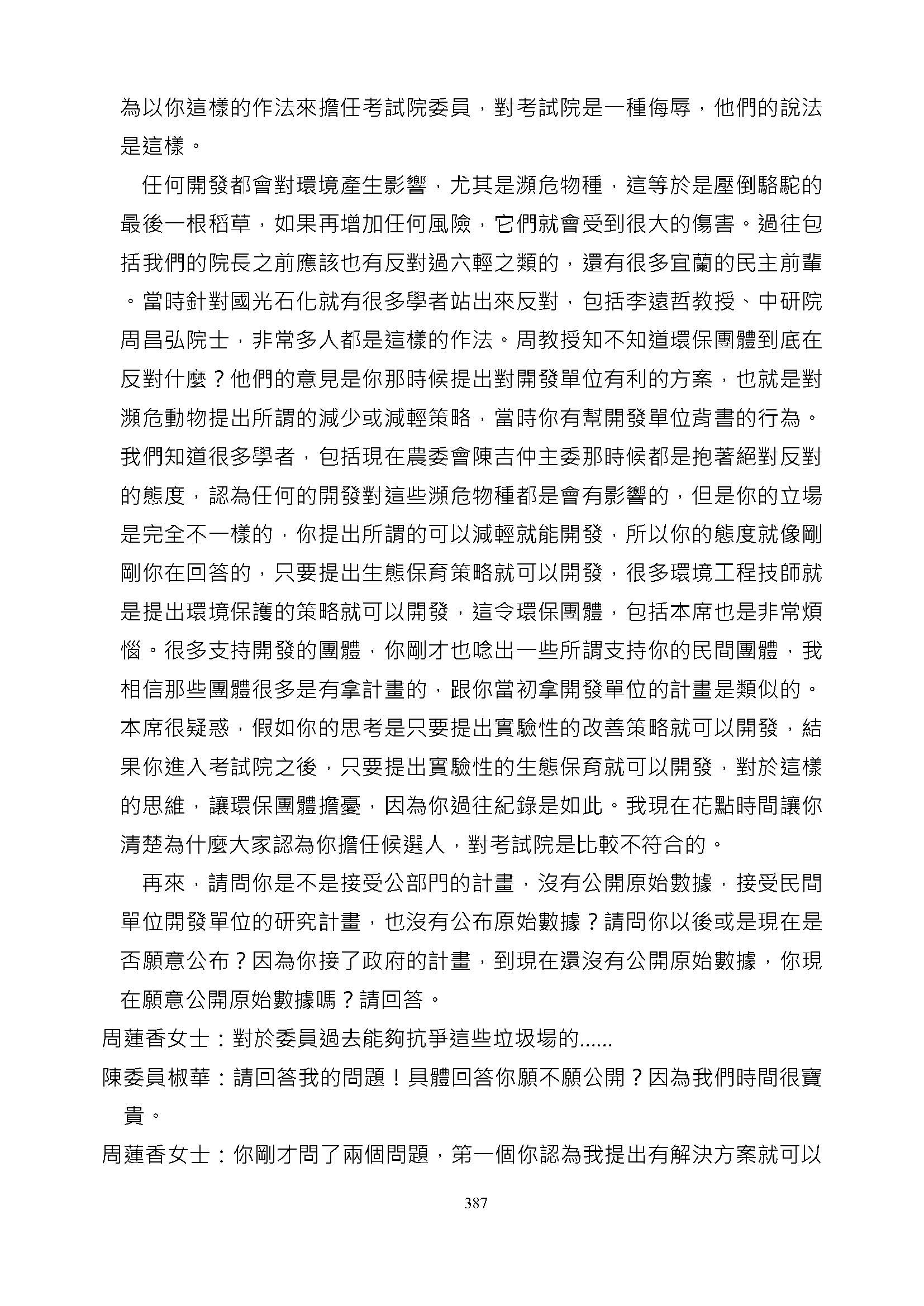 主席:報告全院委員會,針對司法院院長、副院長及五位大法官被提名人之資格及是否適任相關事項,均已審查完畢。本案作以下決議:提報院會,以記名投票表決。現在散會。