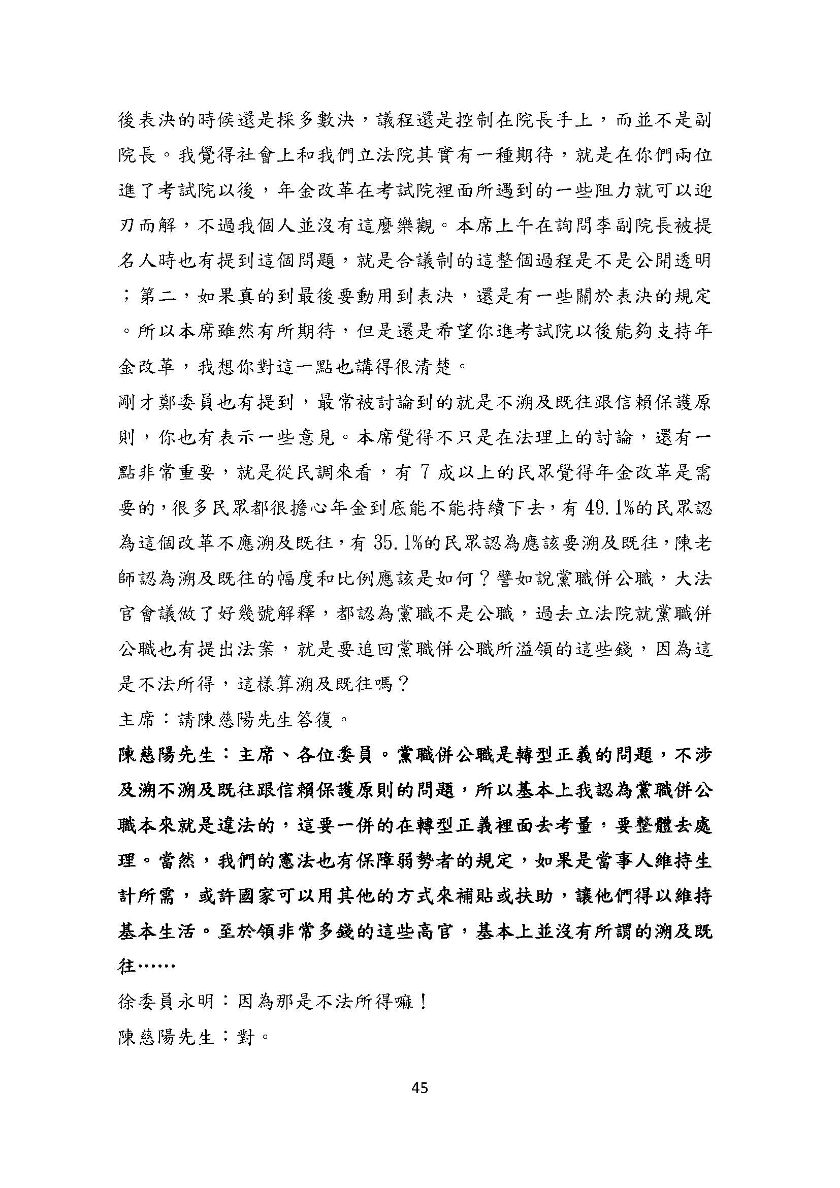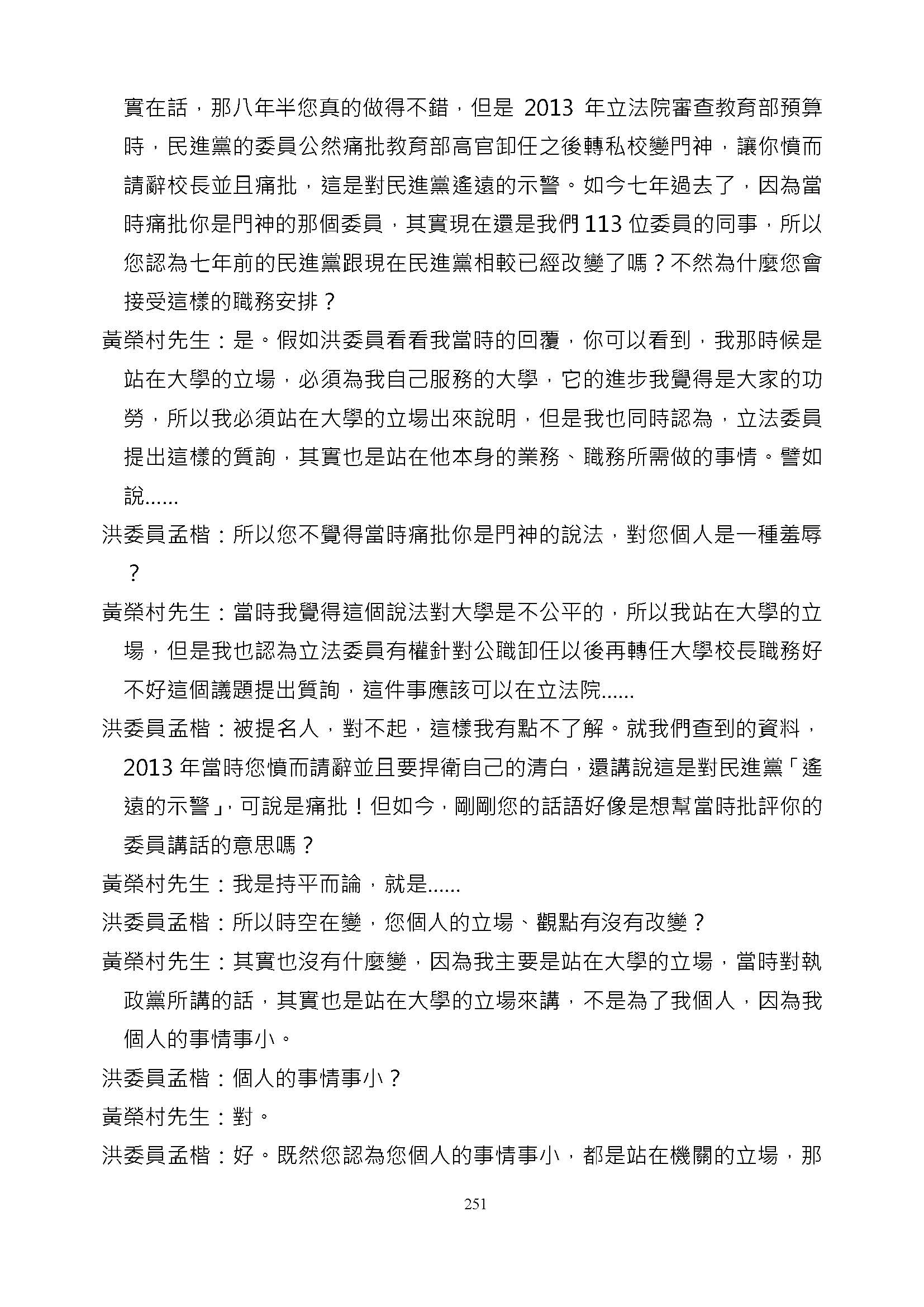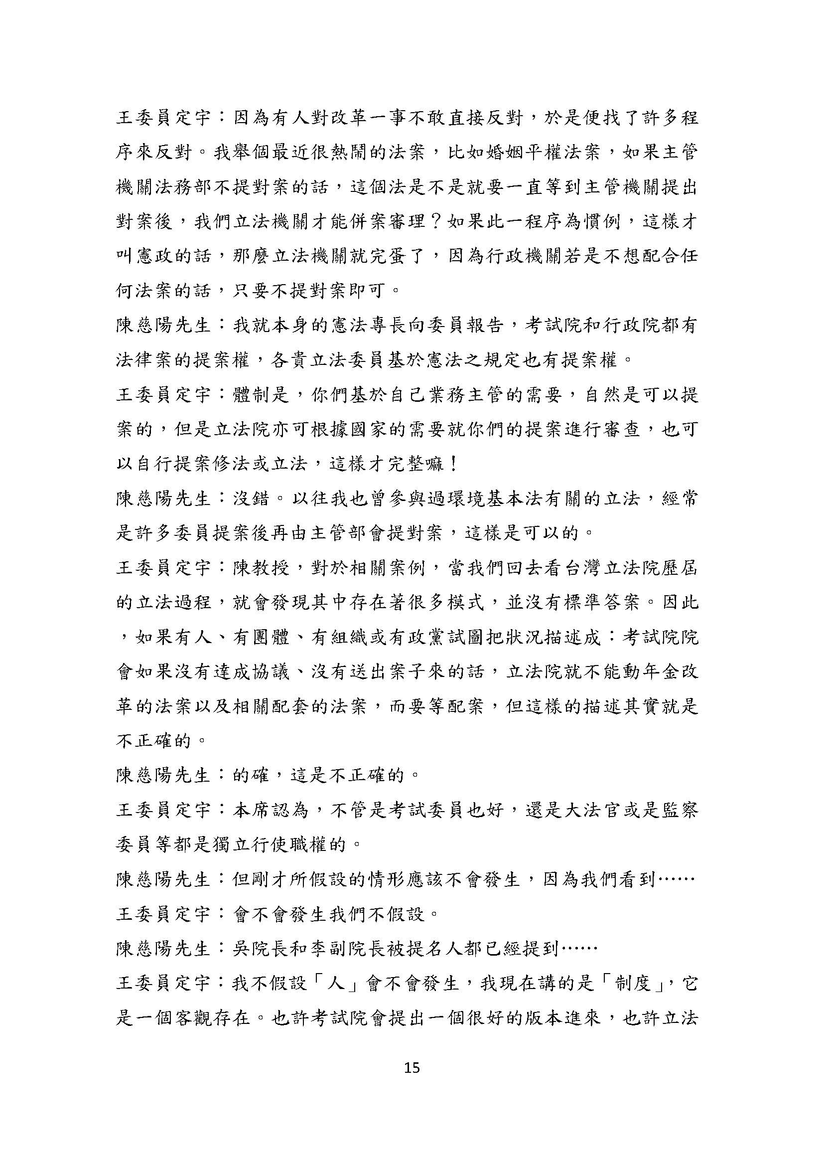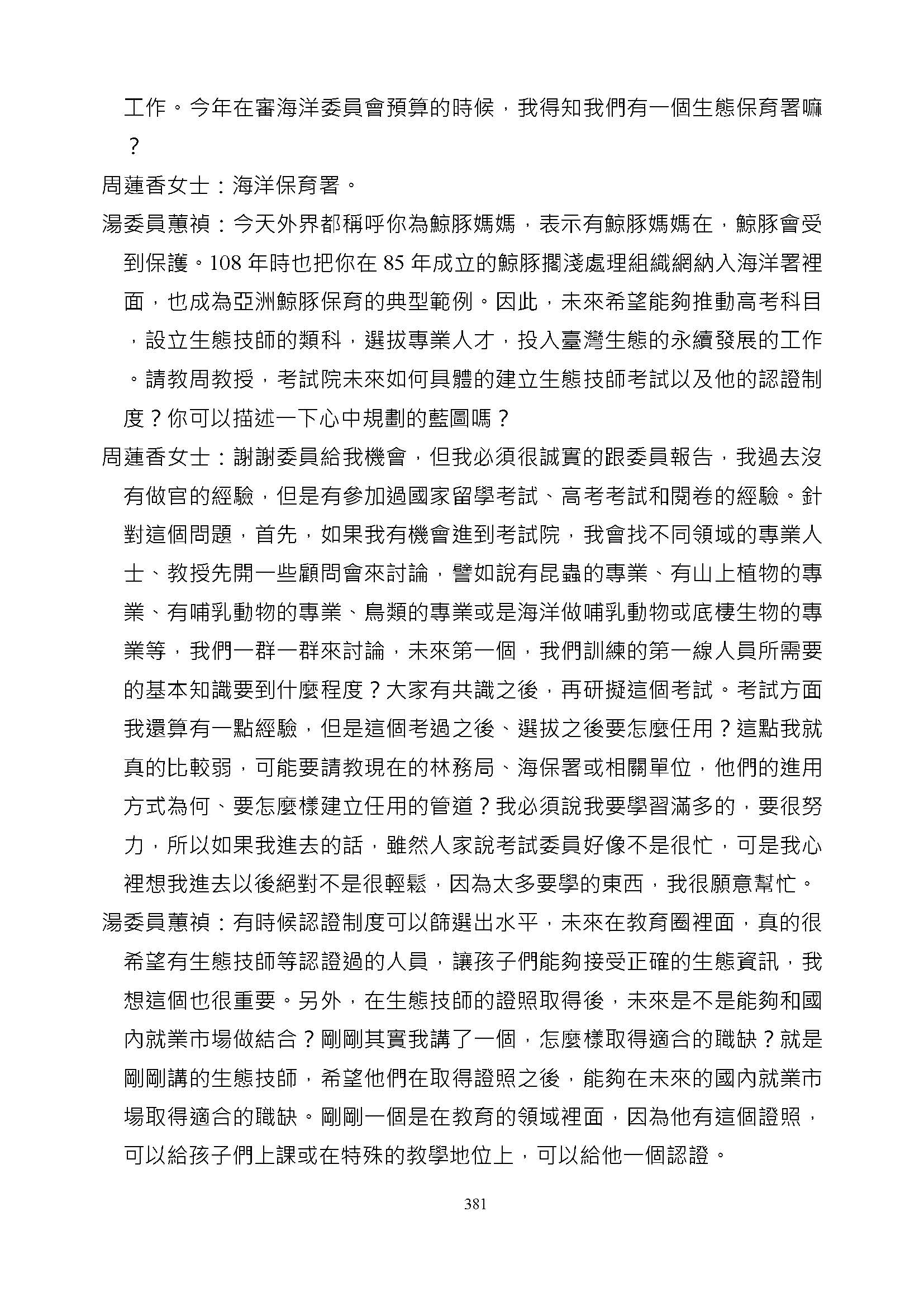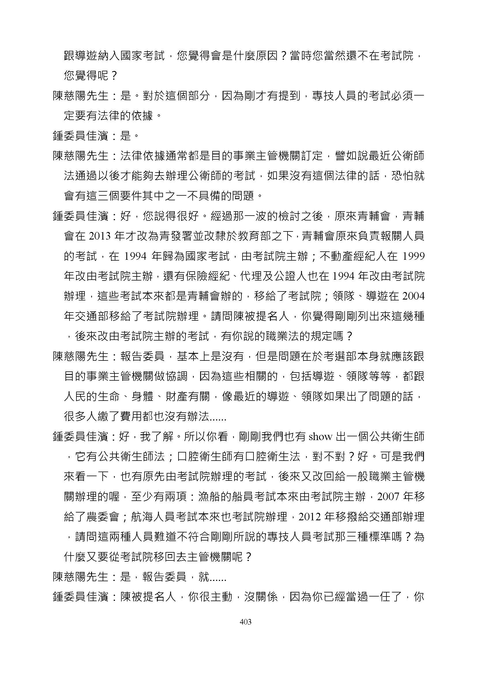 主席:報告全院委員會,針對司法院院長、副院長及五位大法官被提名人之資格及是否適任相關事項,均已審查完畢。本案作以下決議:提報院會,以記名投票表決。現在散會。