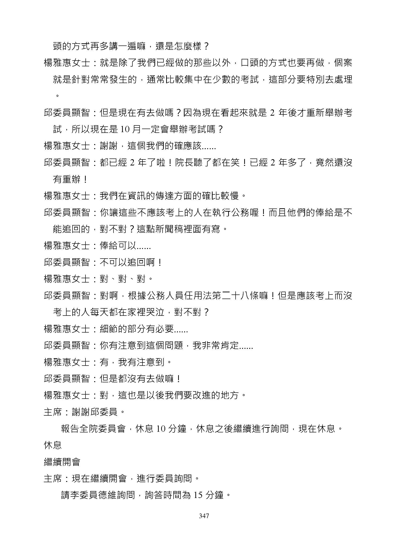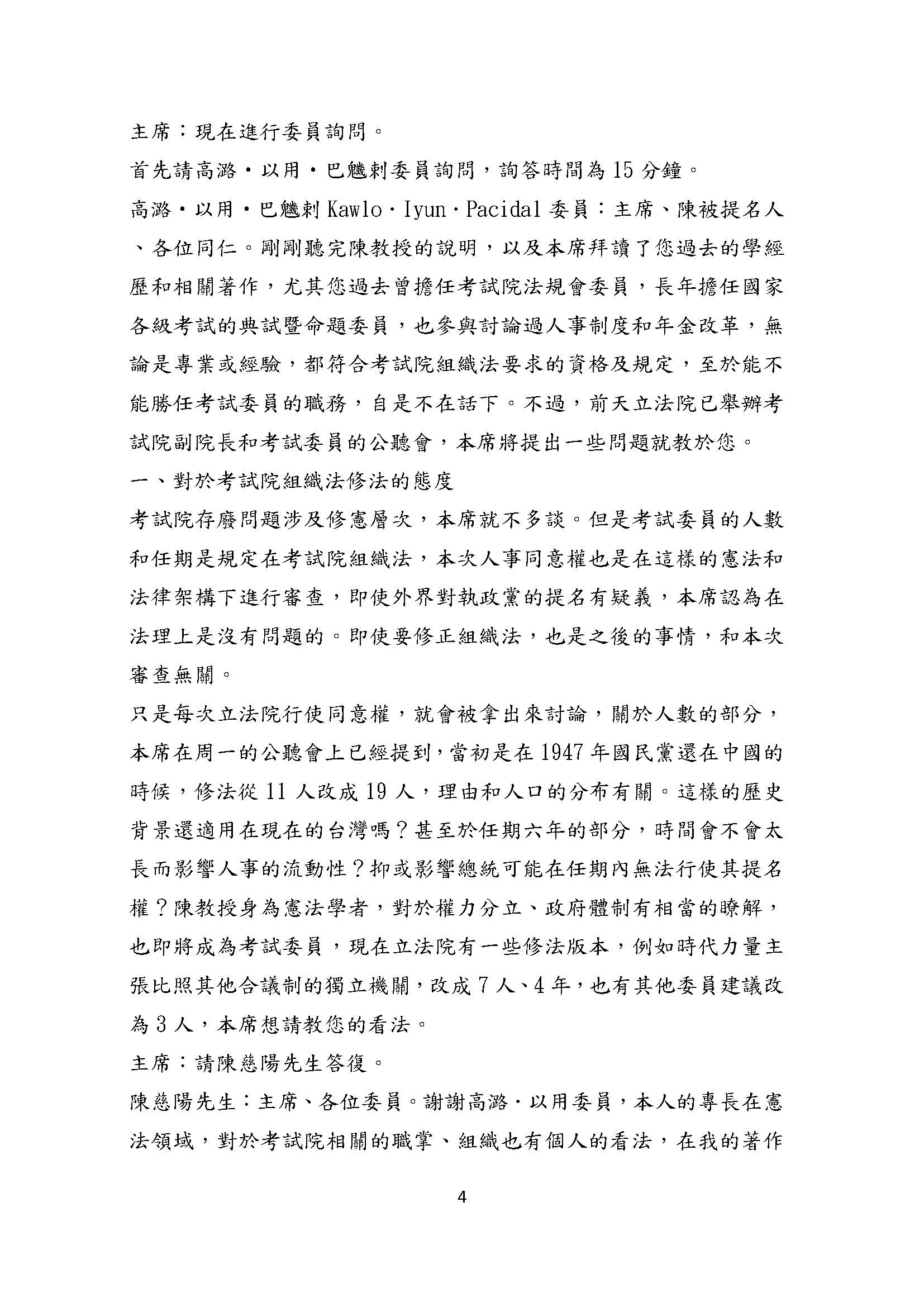 立法院第11屆第3會期第4次全院委員會會議紀錄