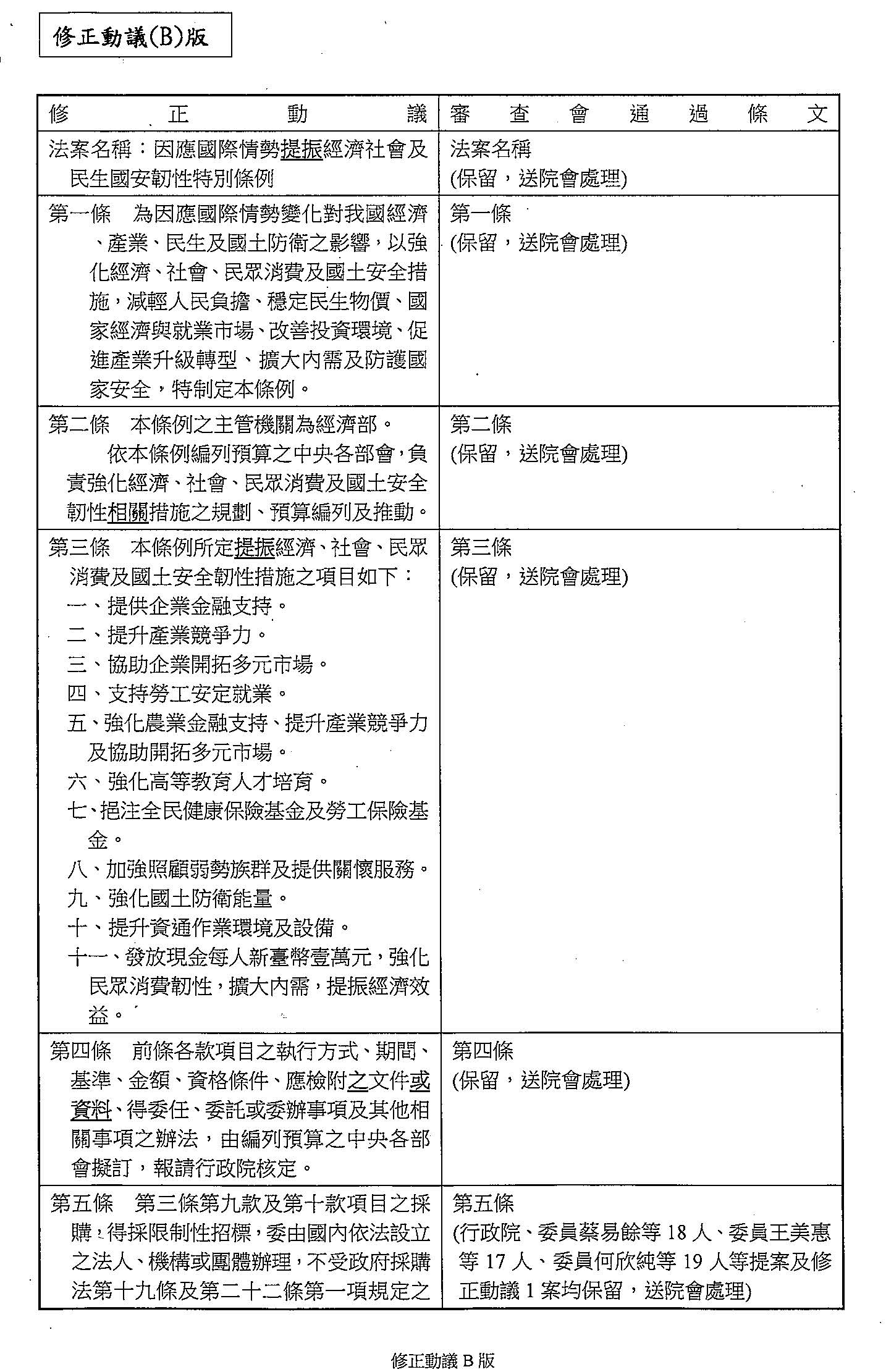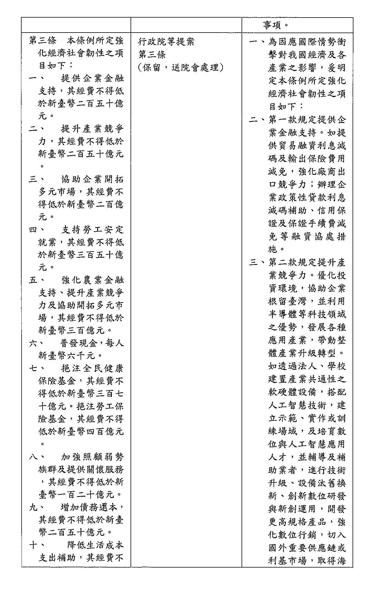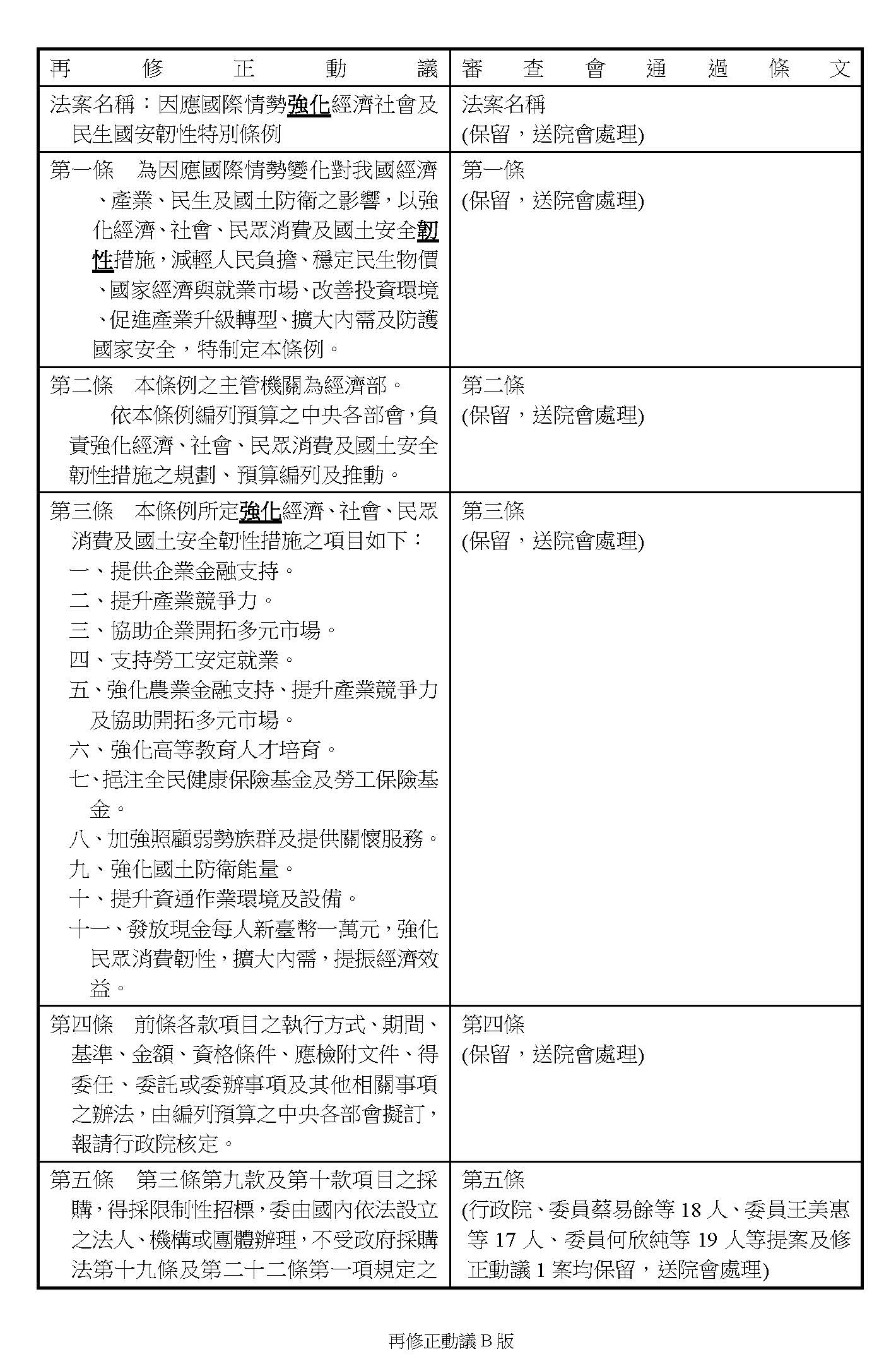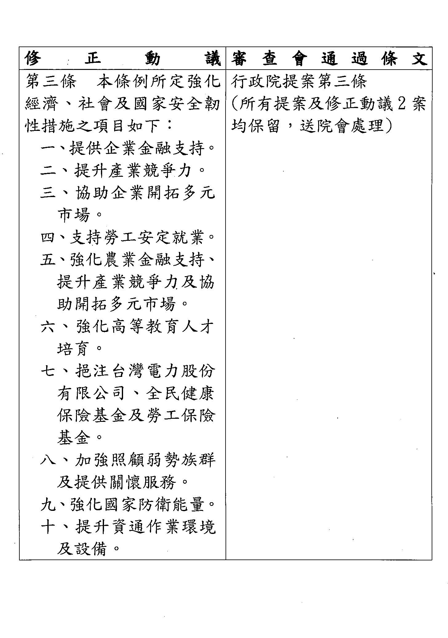 因應國際情勢強化經濟社會及民生國安韌性特別條例(三讀)