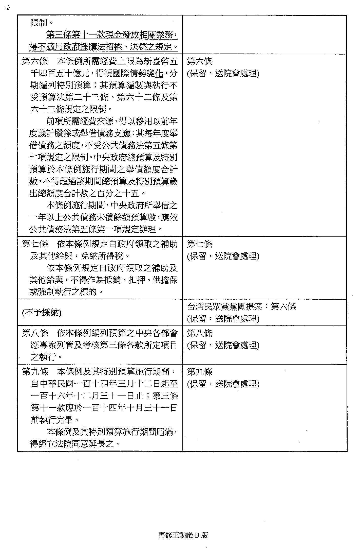 台灣民眾黨黨團再修正動議第六條