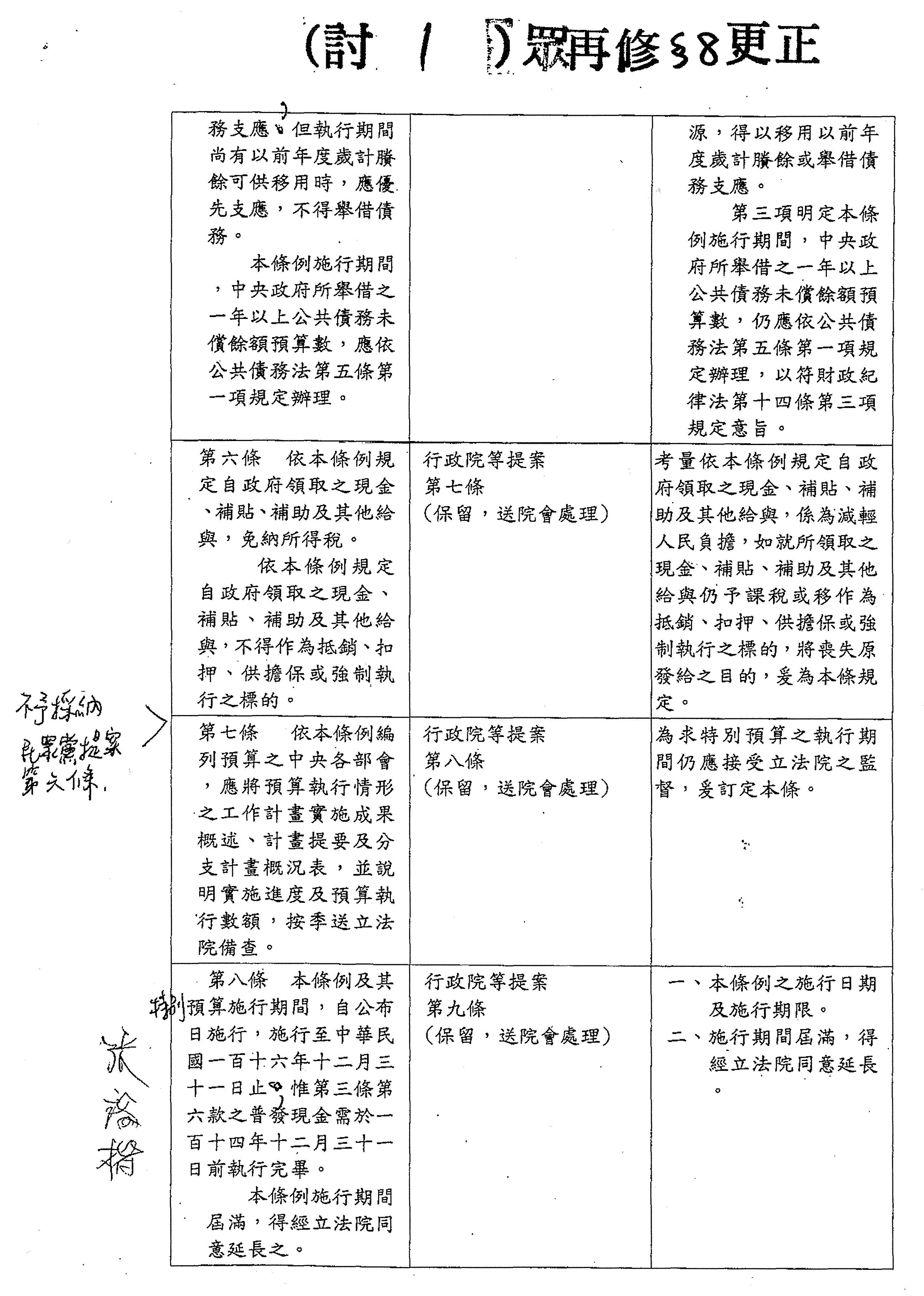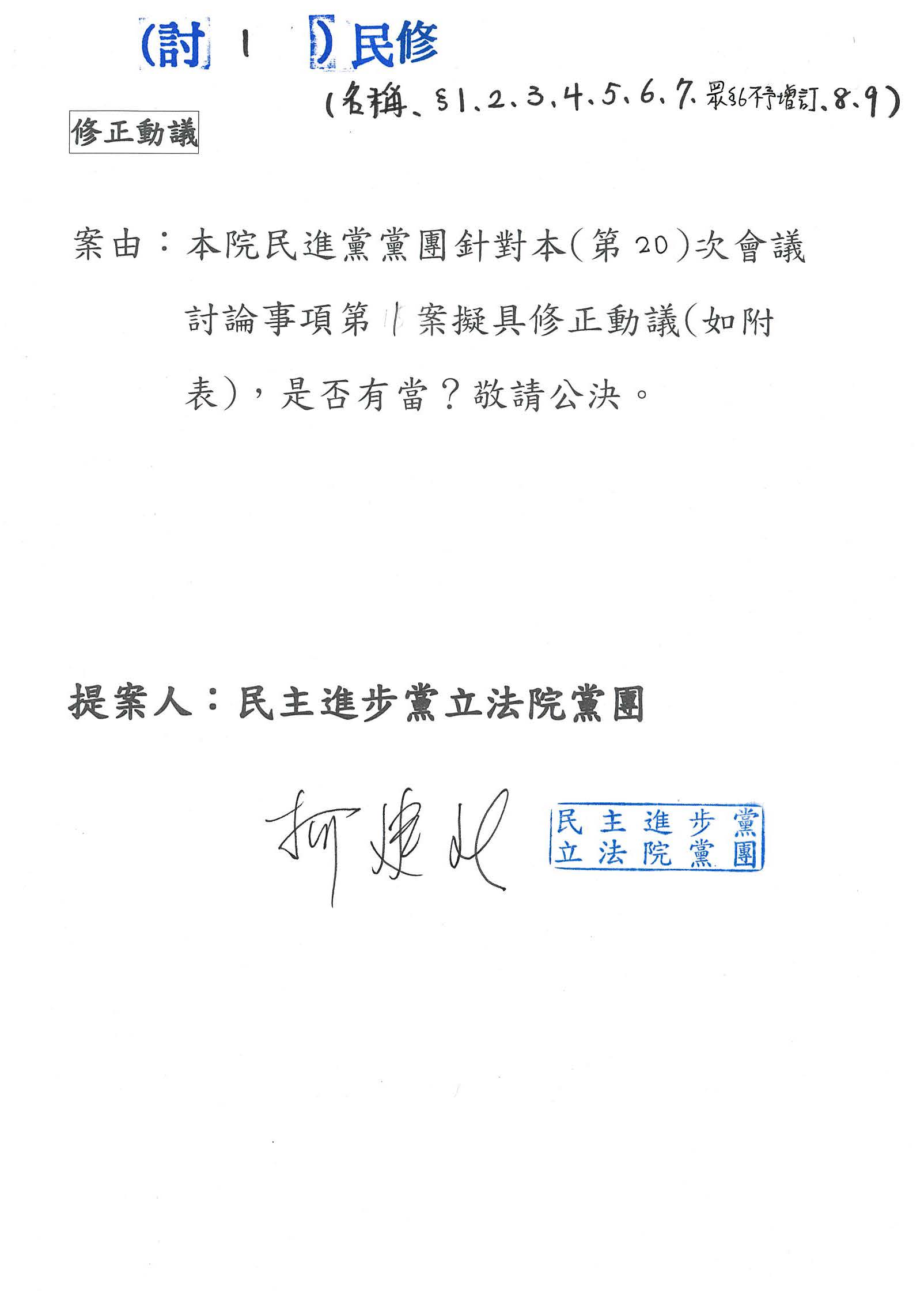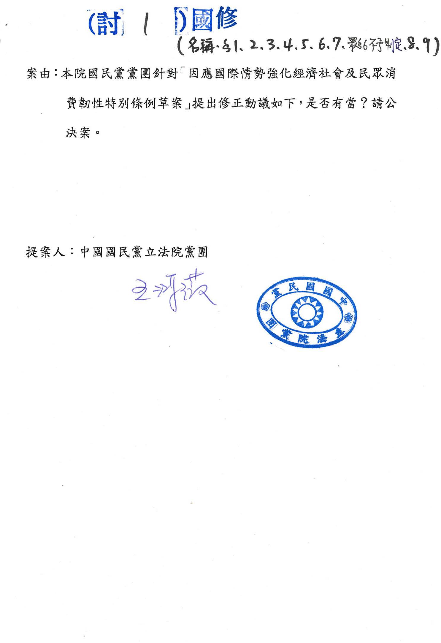 國民黨黨團提案: