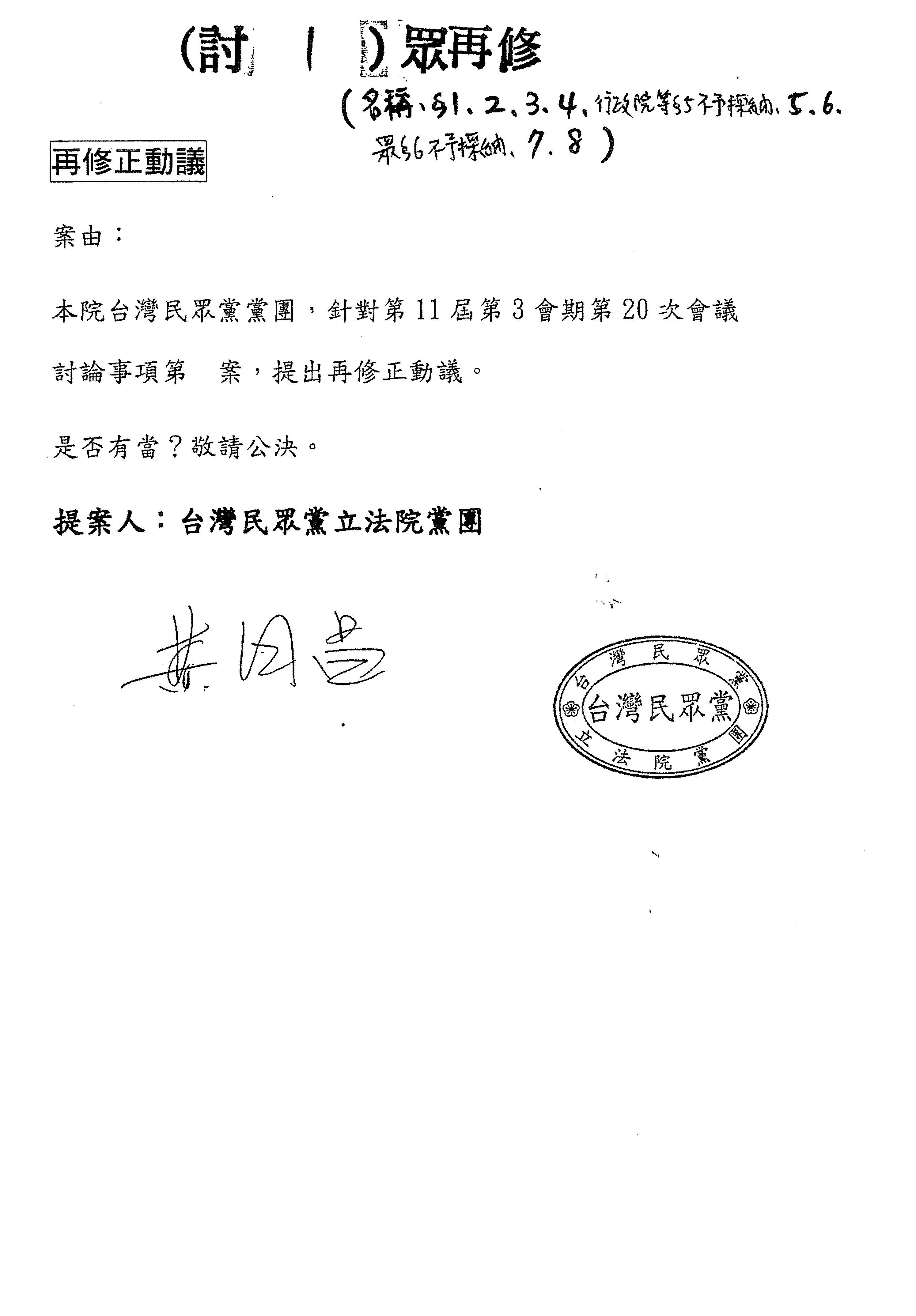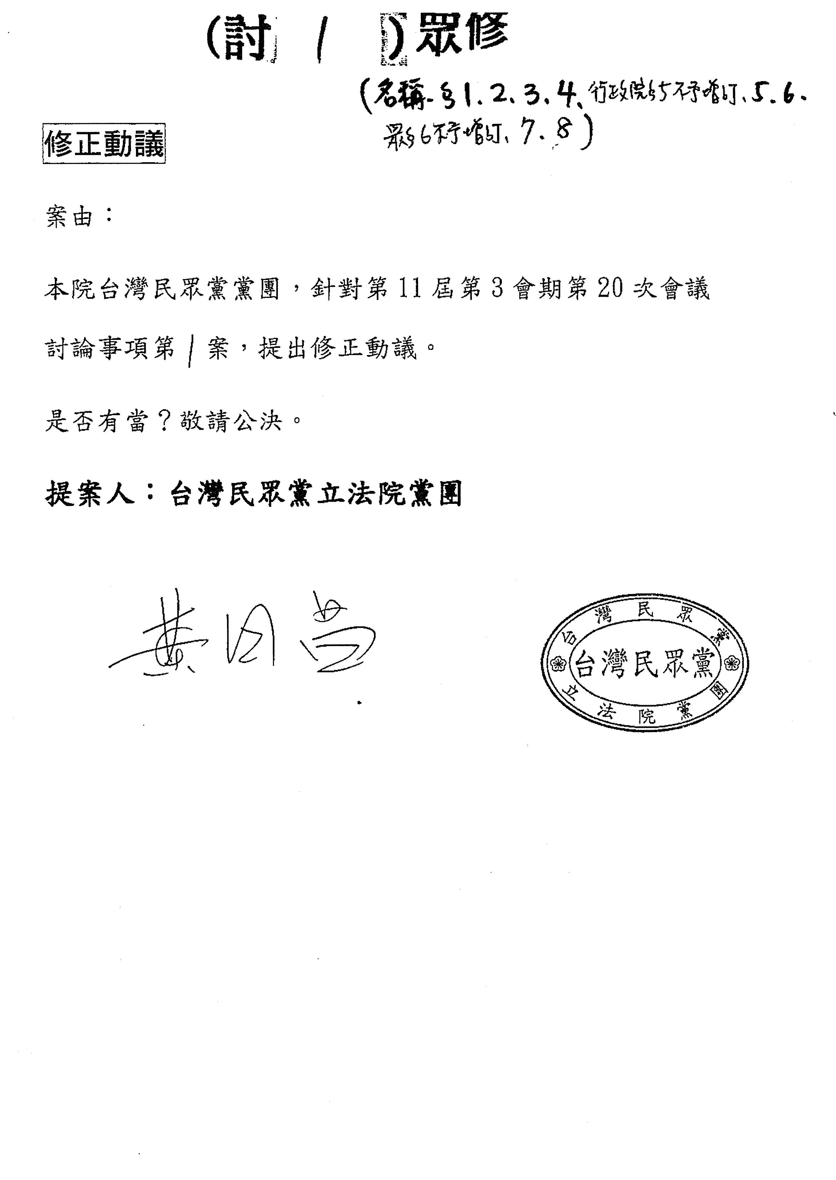 台灣民眾黨黨團再修正動議第七條