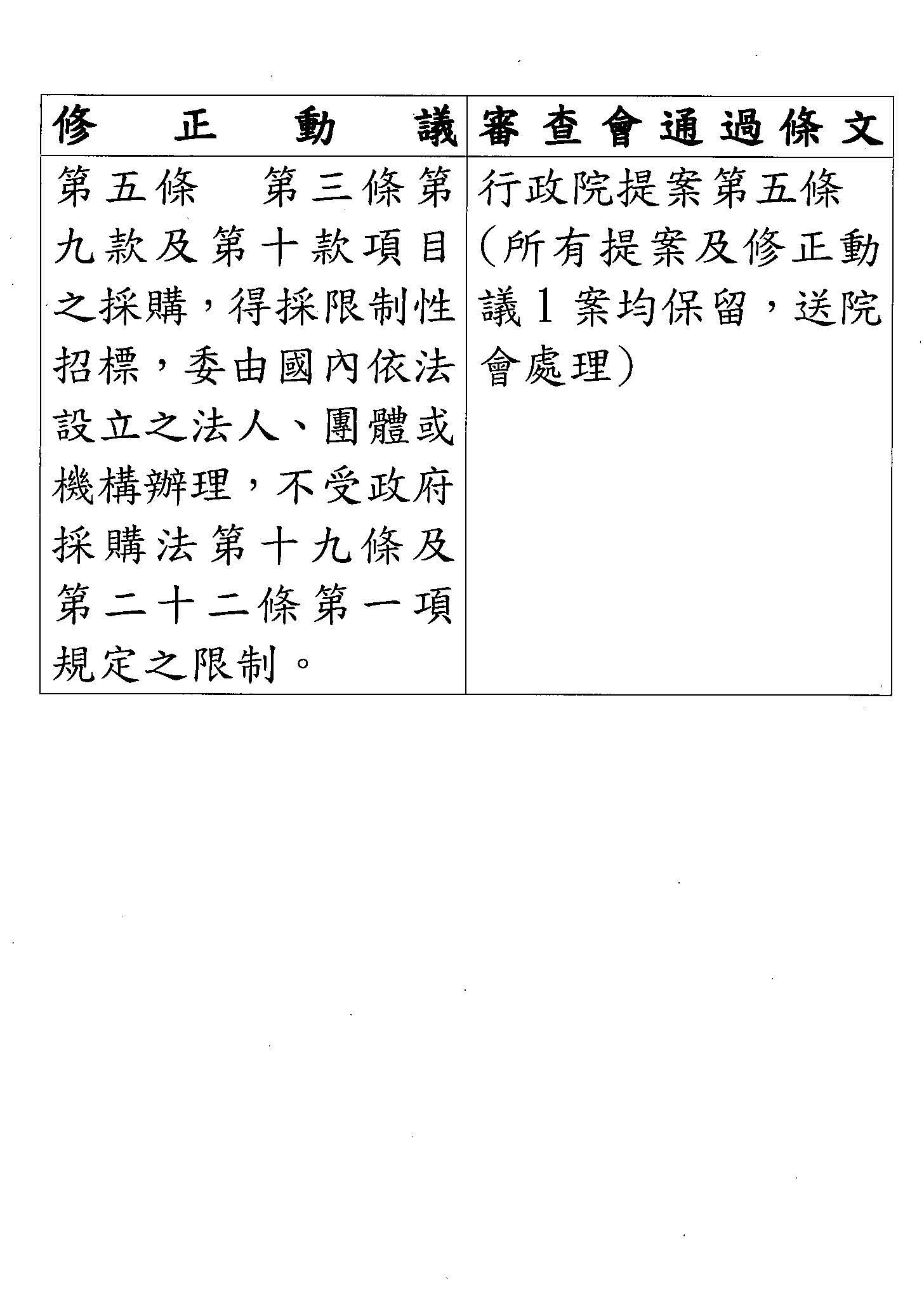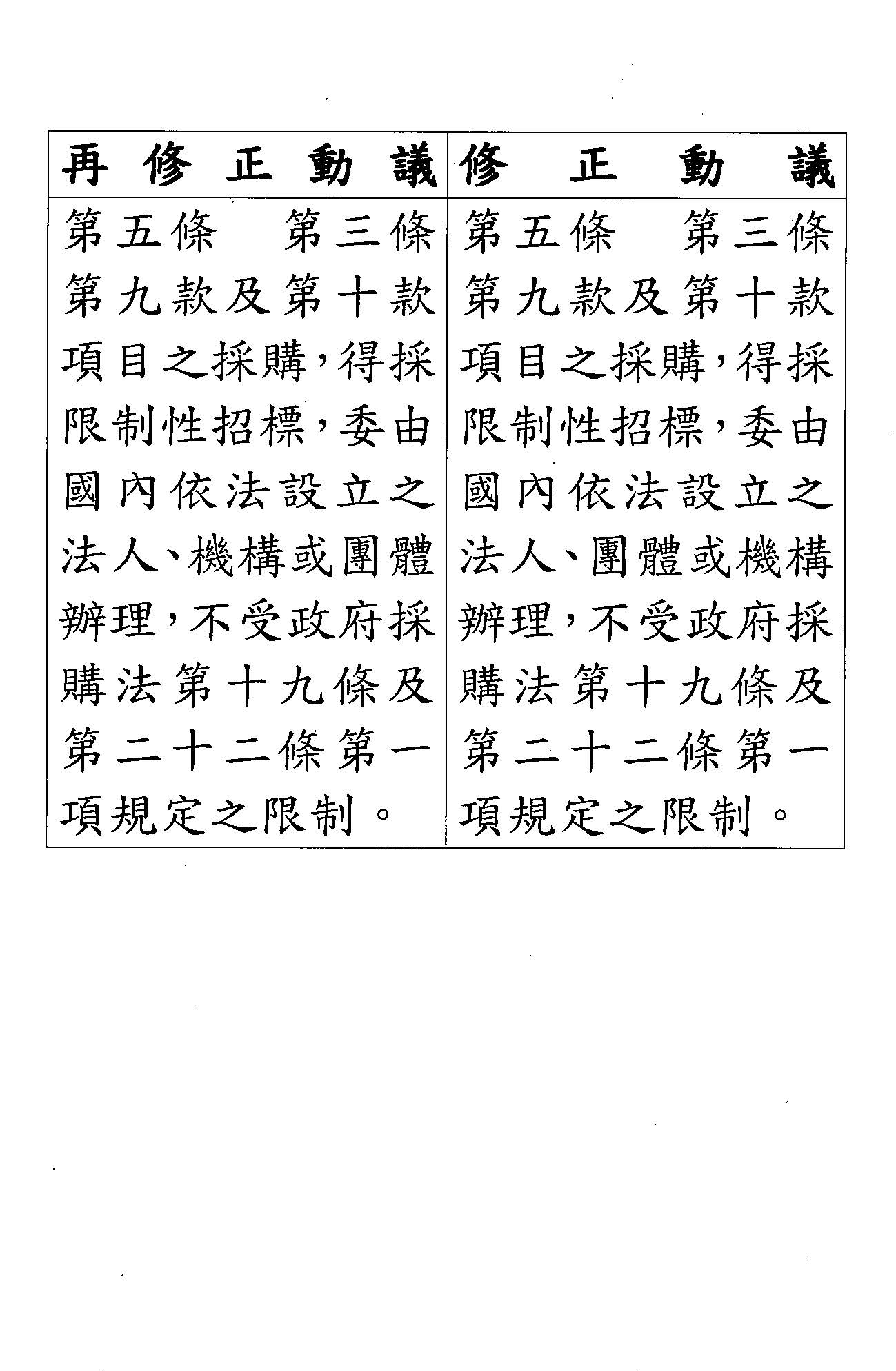 台灣民眾黨黨團再修正動議第五條