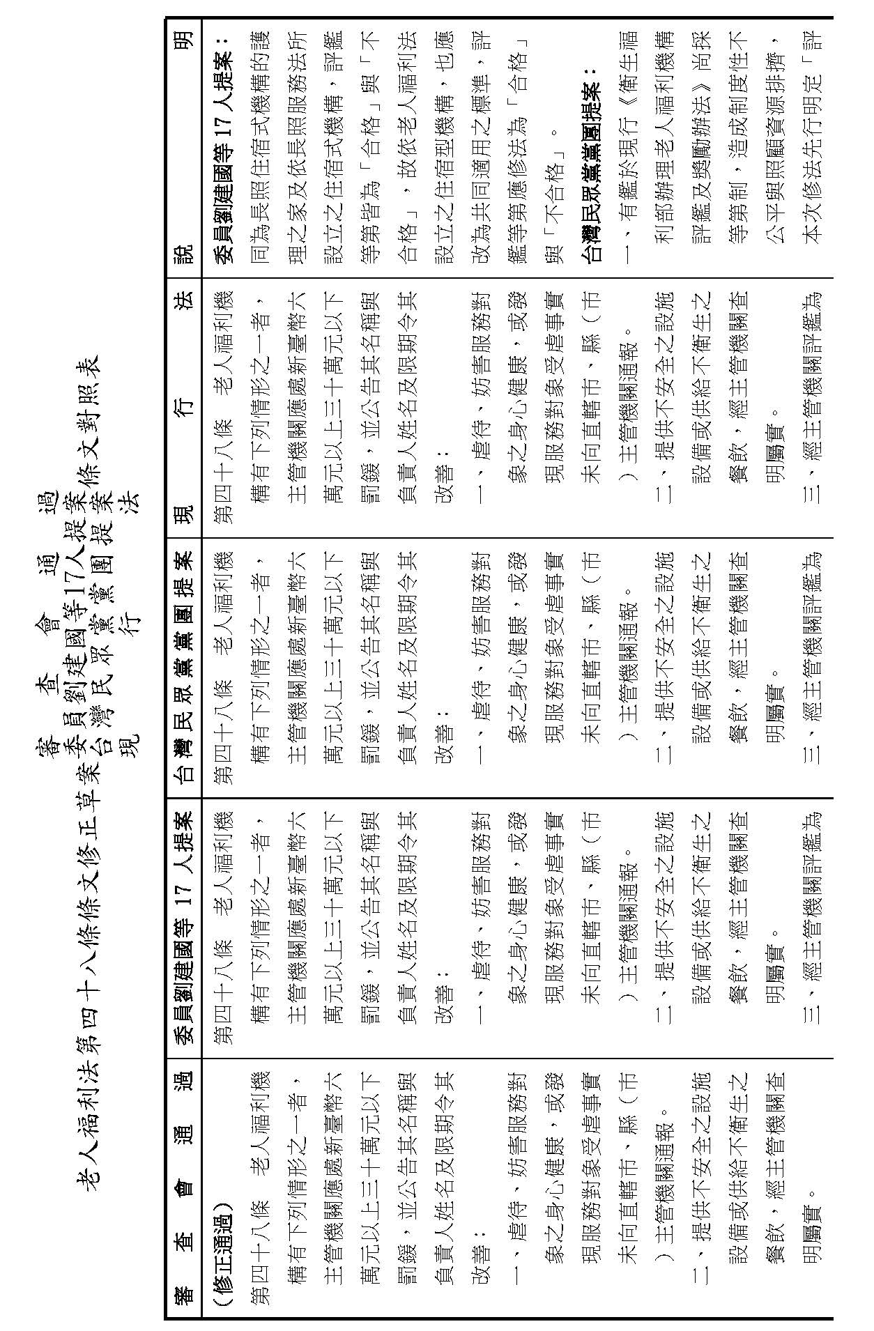 陳委員昭姿:(9時33分)主席、各位同事,還有2樓大安區的朋友。今天老人福利法第四十八條修正案三讀通過,這是一個非常基礎卻也非常重要的改變。台灣民眾黨之所以提出這樣的修法,就是為了導正目前老人福利機構評鑑制度跟其他長照機構有不一樣的評鑑標準。