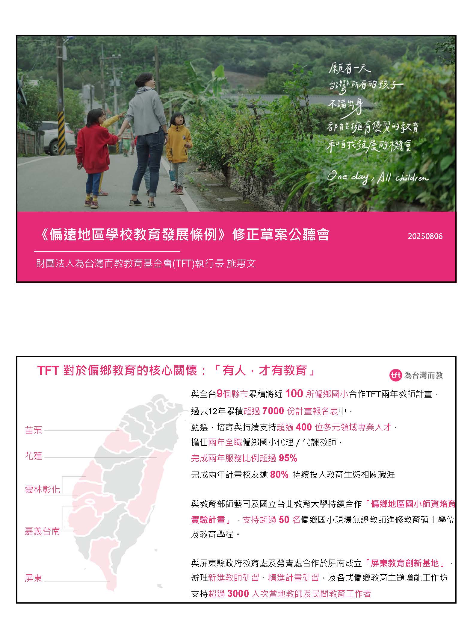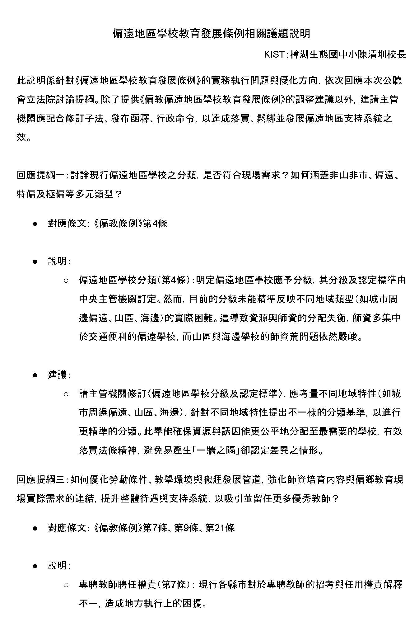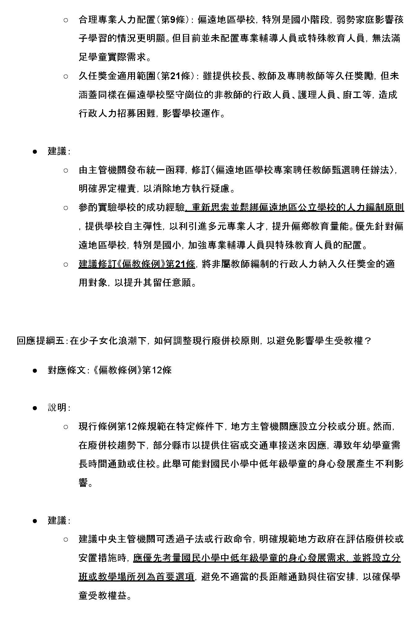 「偏遠地區學校教育發展條例修正草案公聽會」書面報告