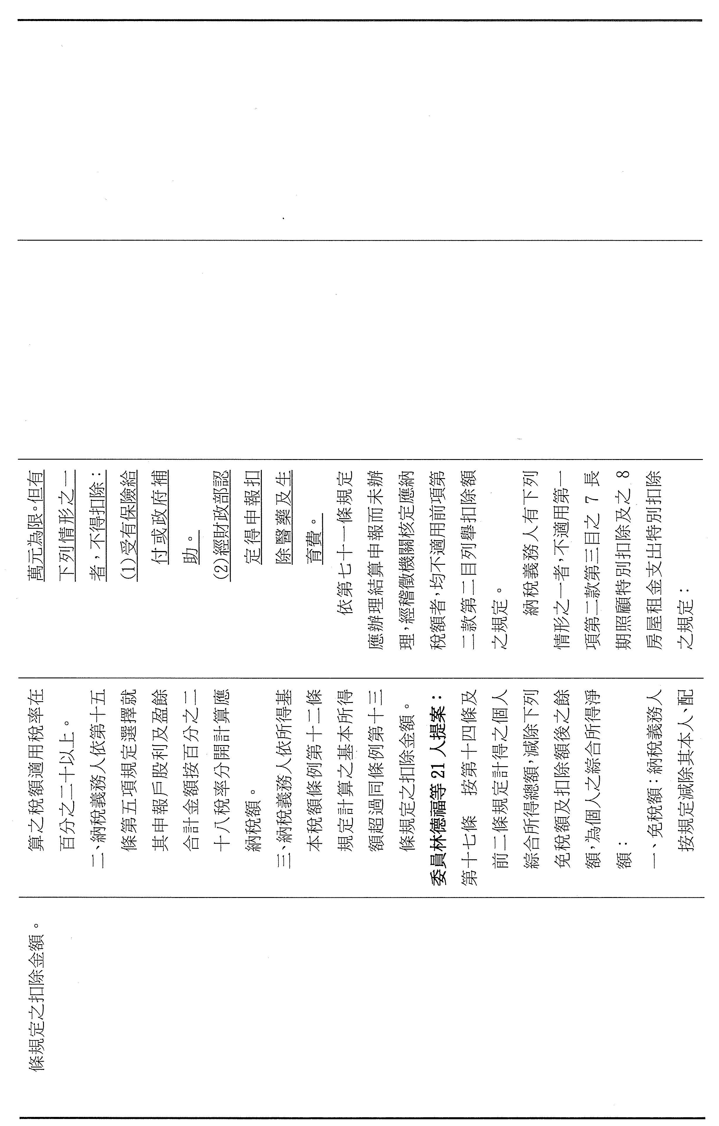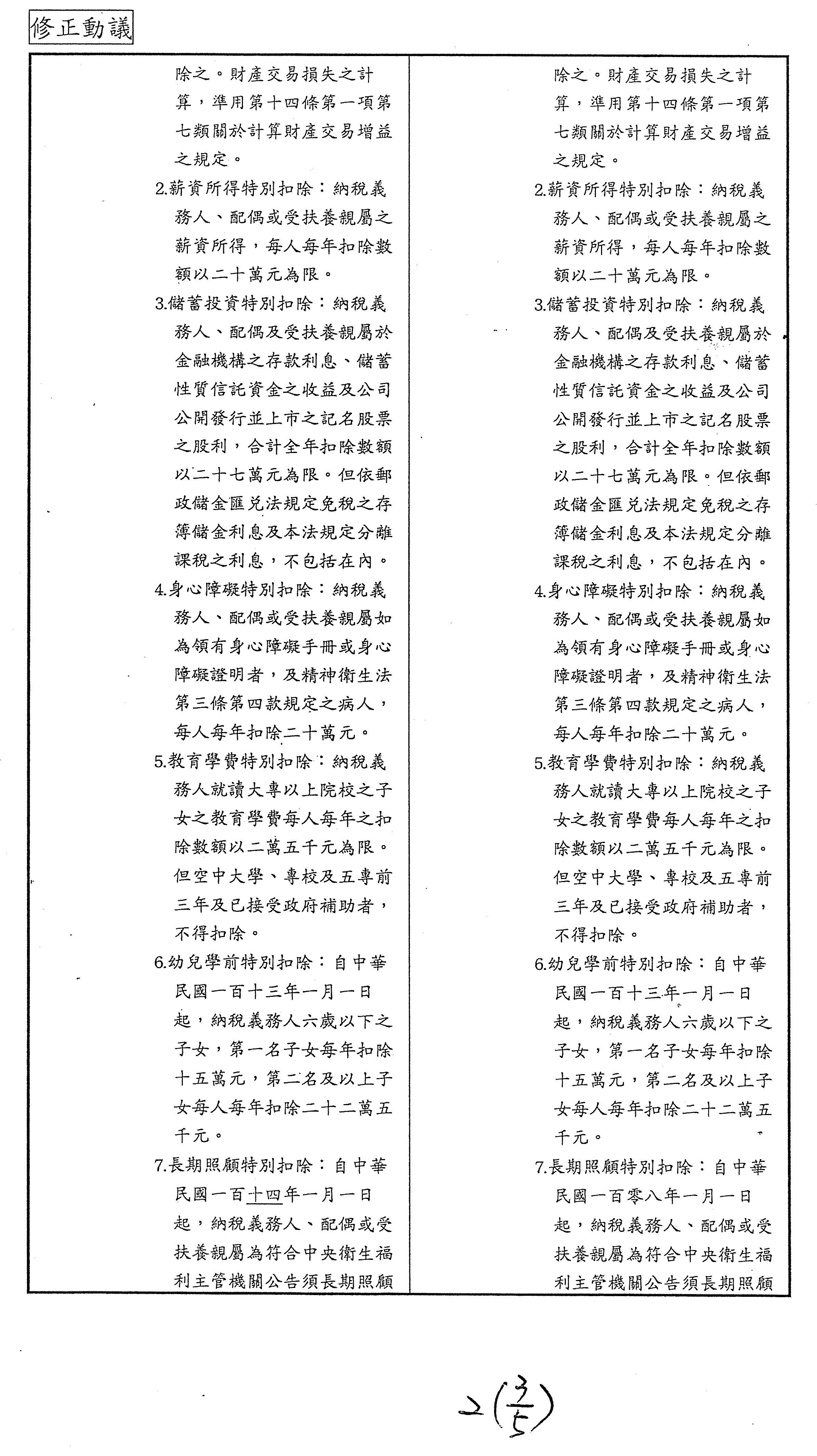 我們委員的提案有從12萬提高到20萬,或者有24萬、36萬,針對這部分待會我們也想聽財政部的意見,到底財政部斟酌整個消費者物價指數上漲的程度,特別扣除額能夠增加多少是最適當的?請財政部這邊能夠幫我們作一個非常精算的參考依據,大家彼此坐下來討論。