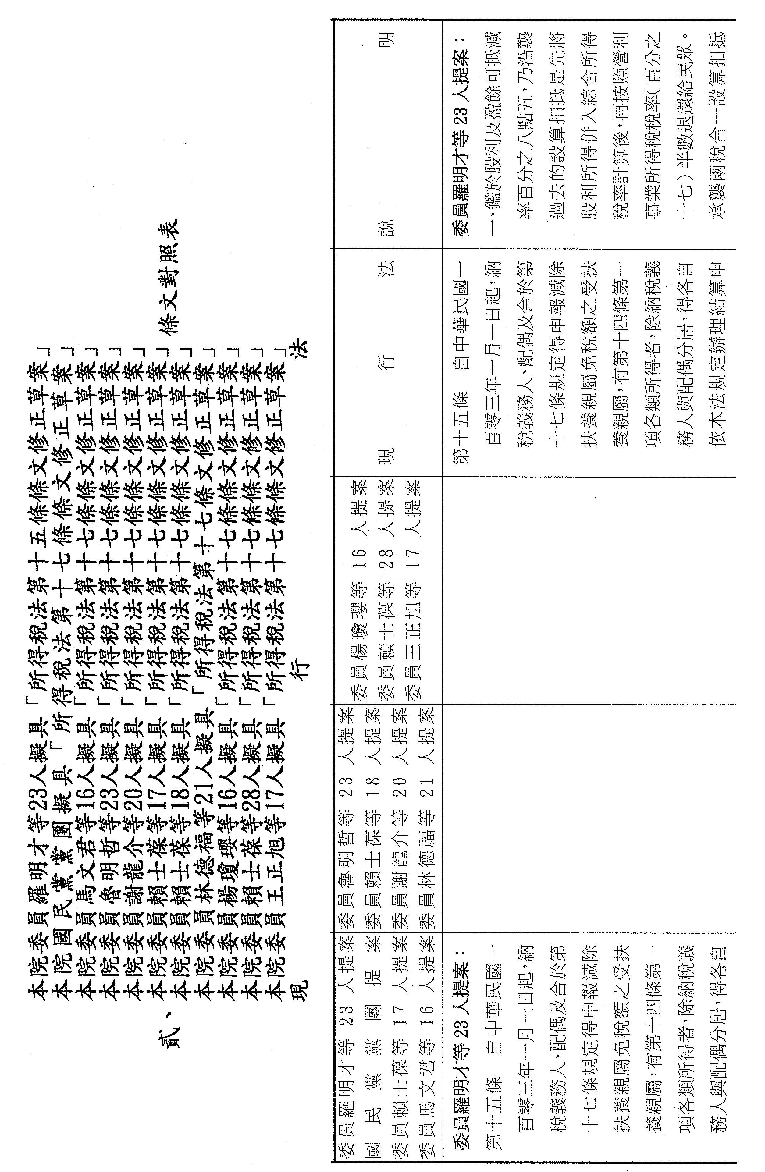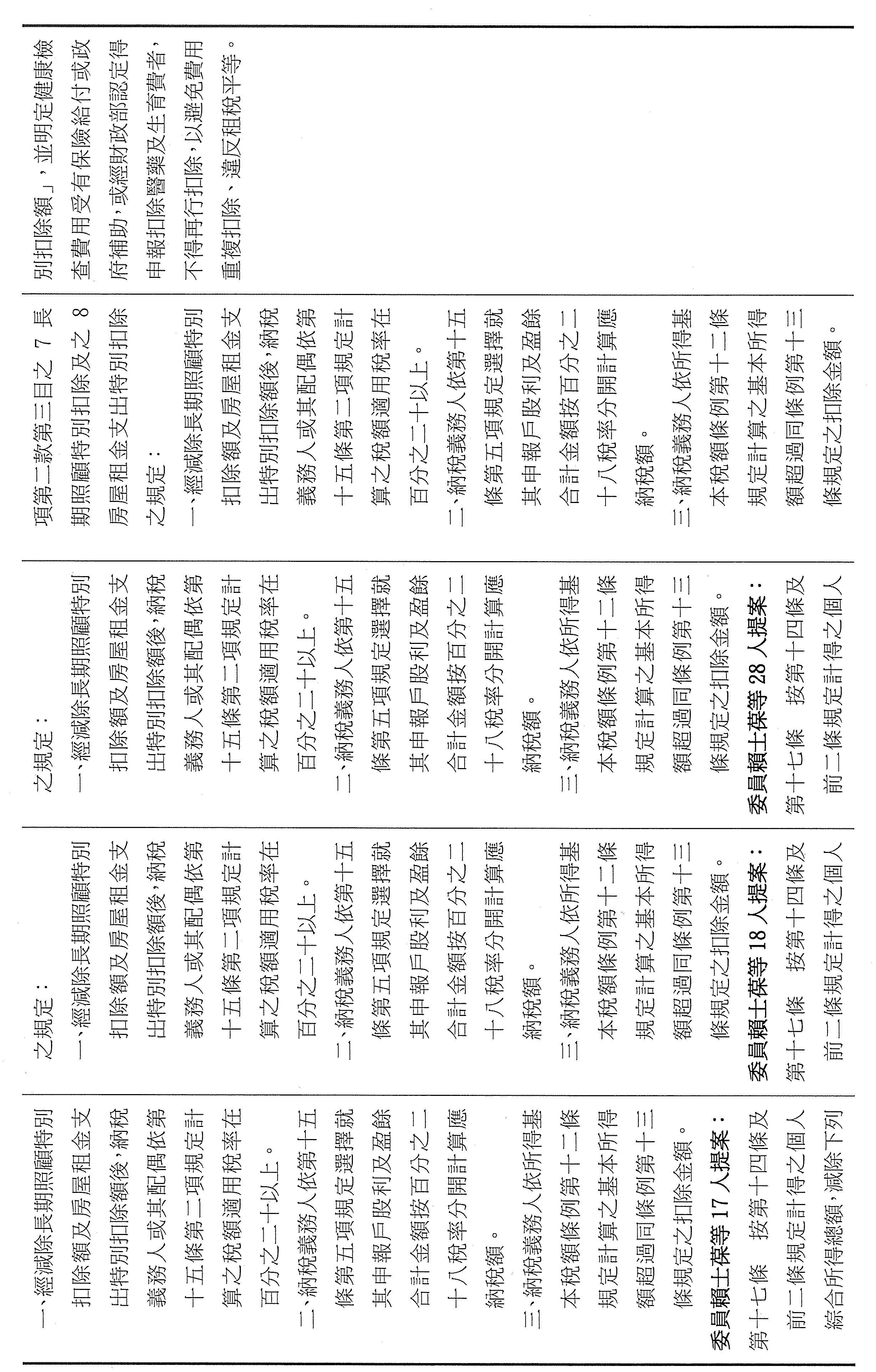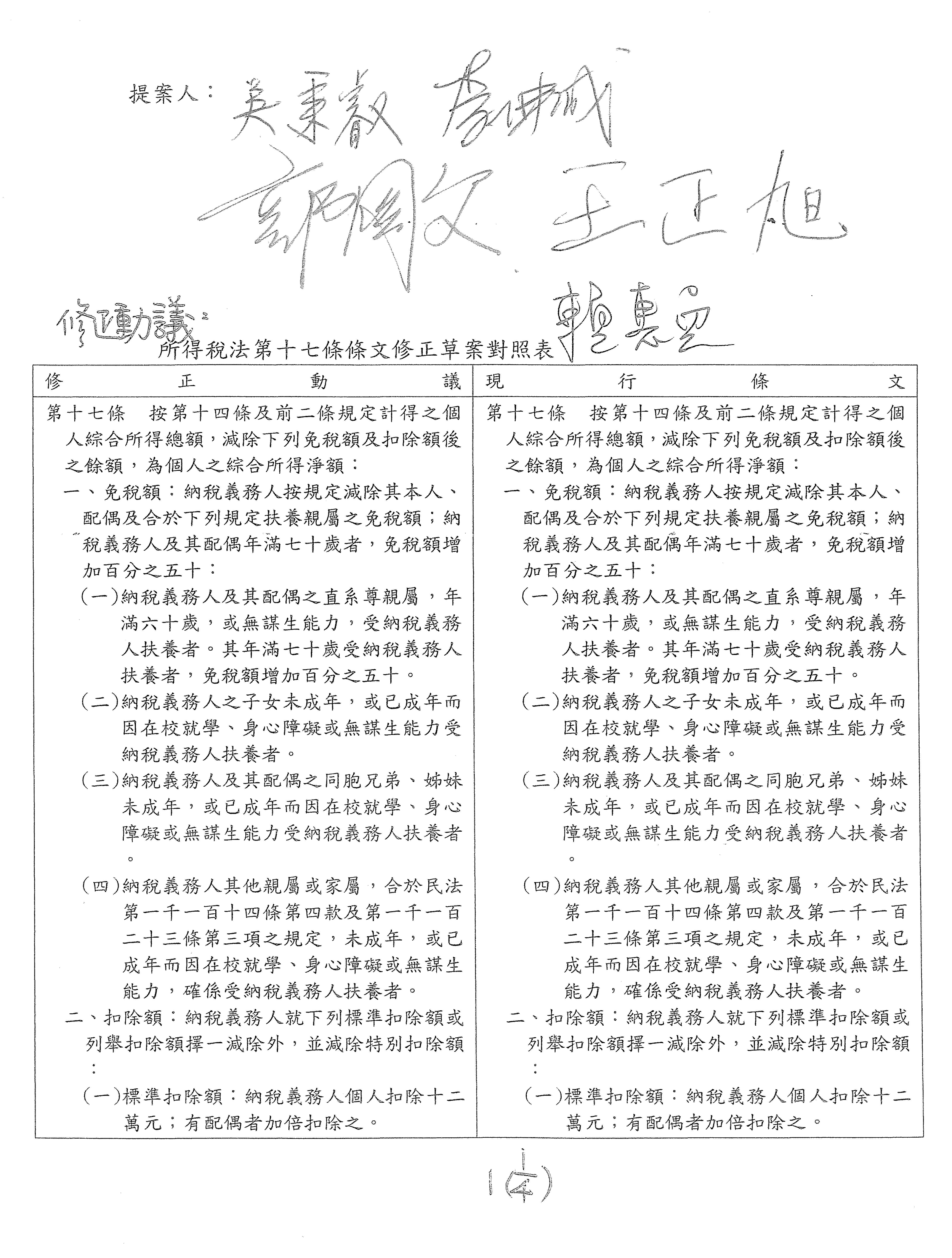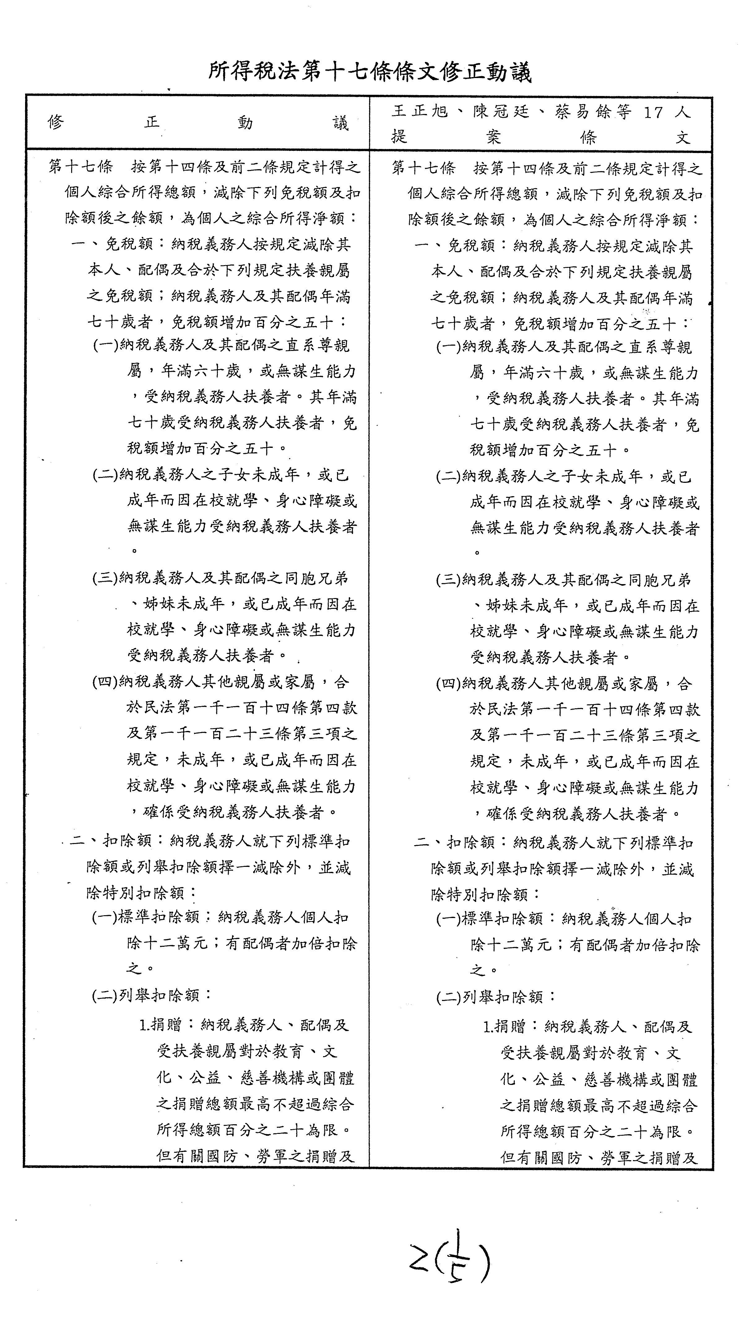 1.案由:針對所得稅法第十七條條文擬具修正動議,如下表。