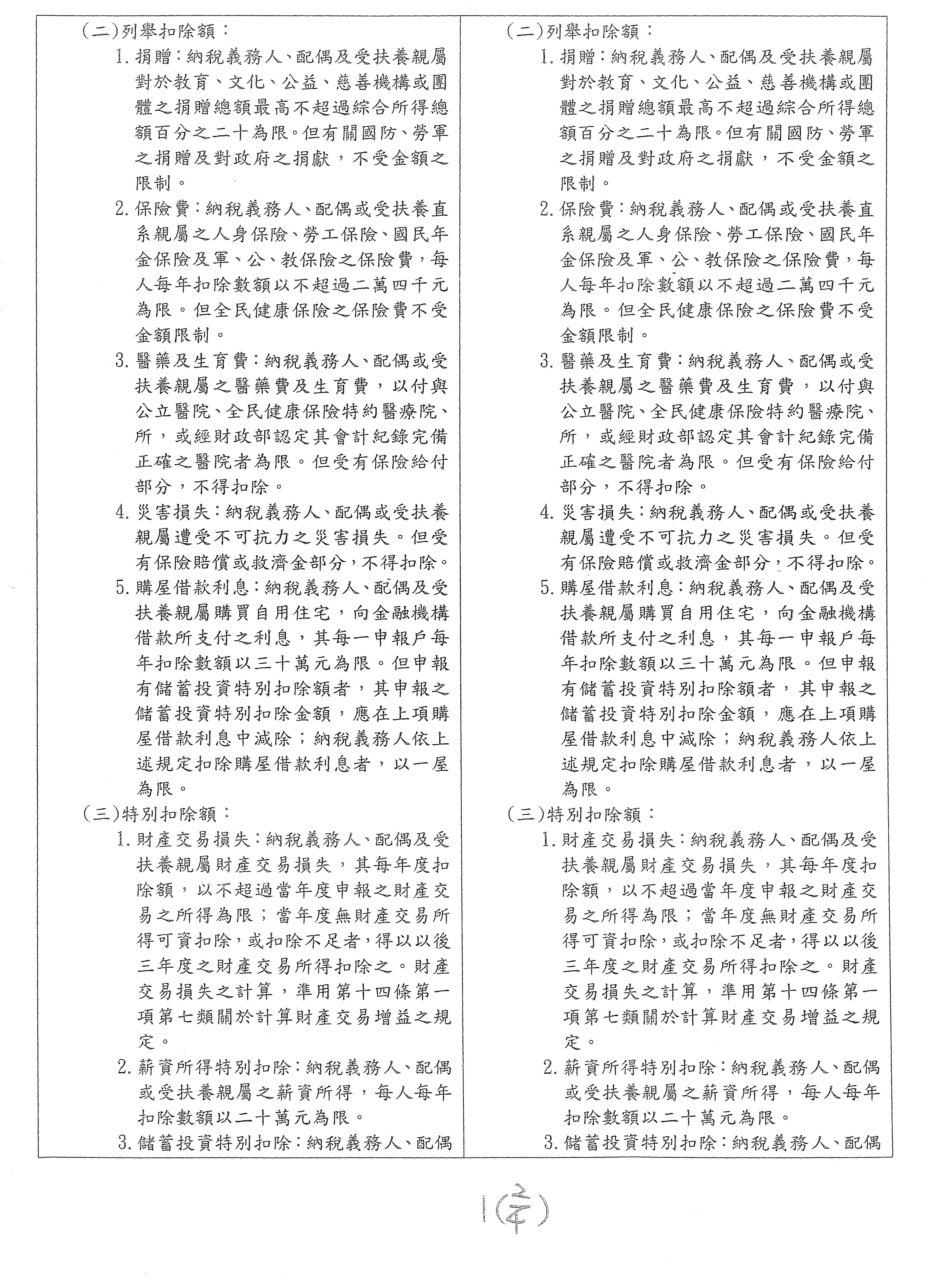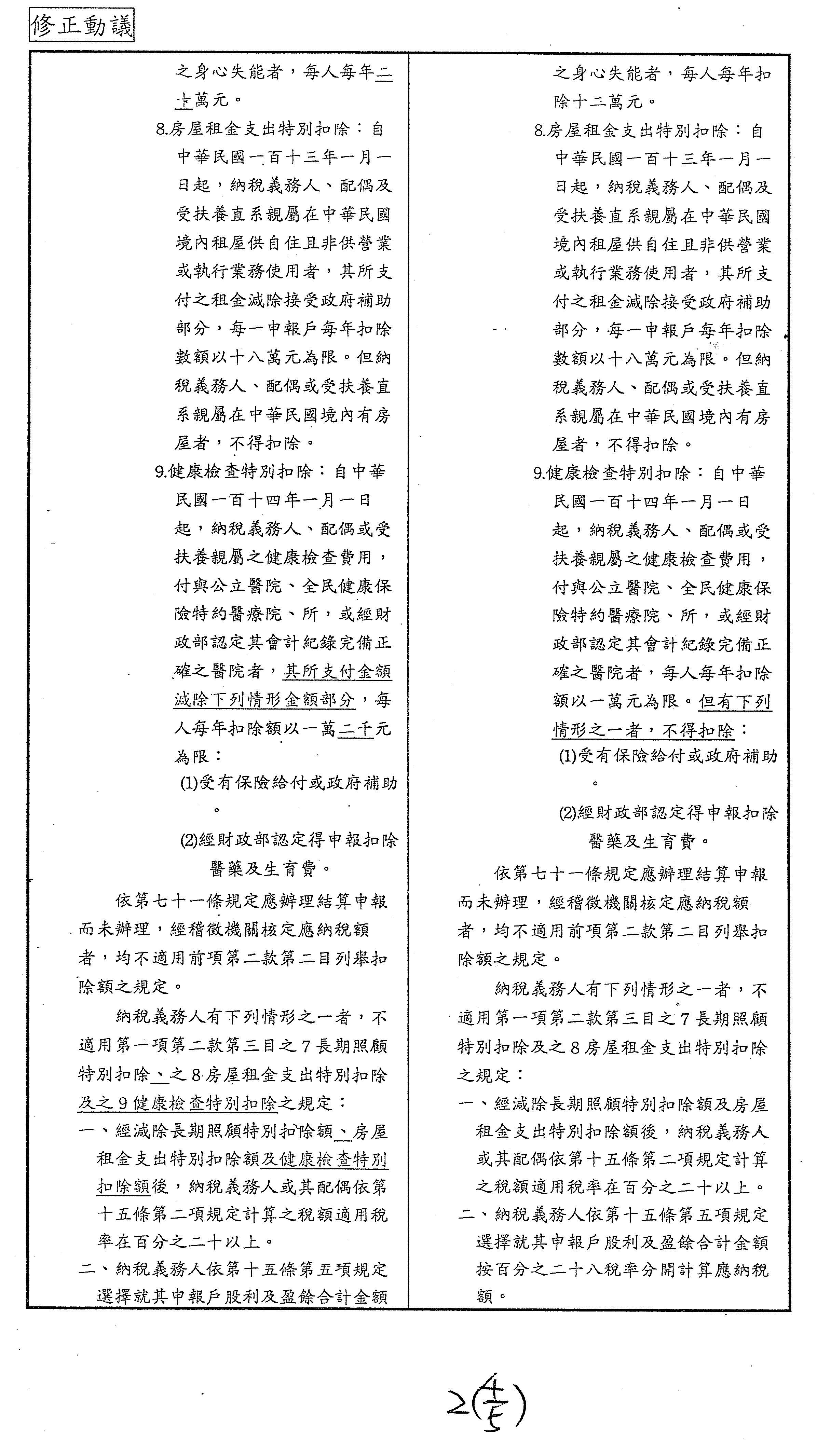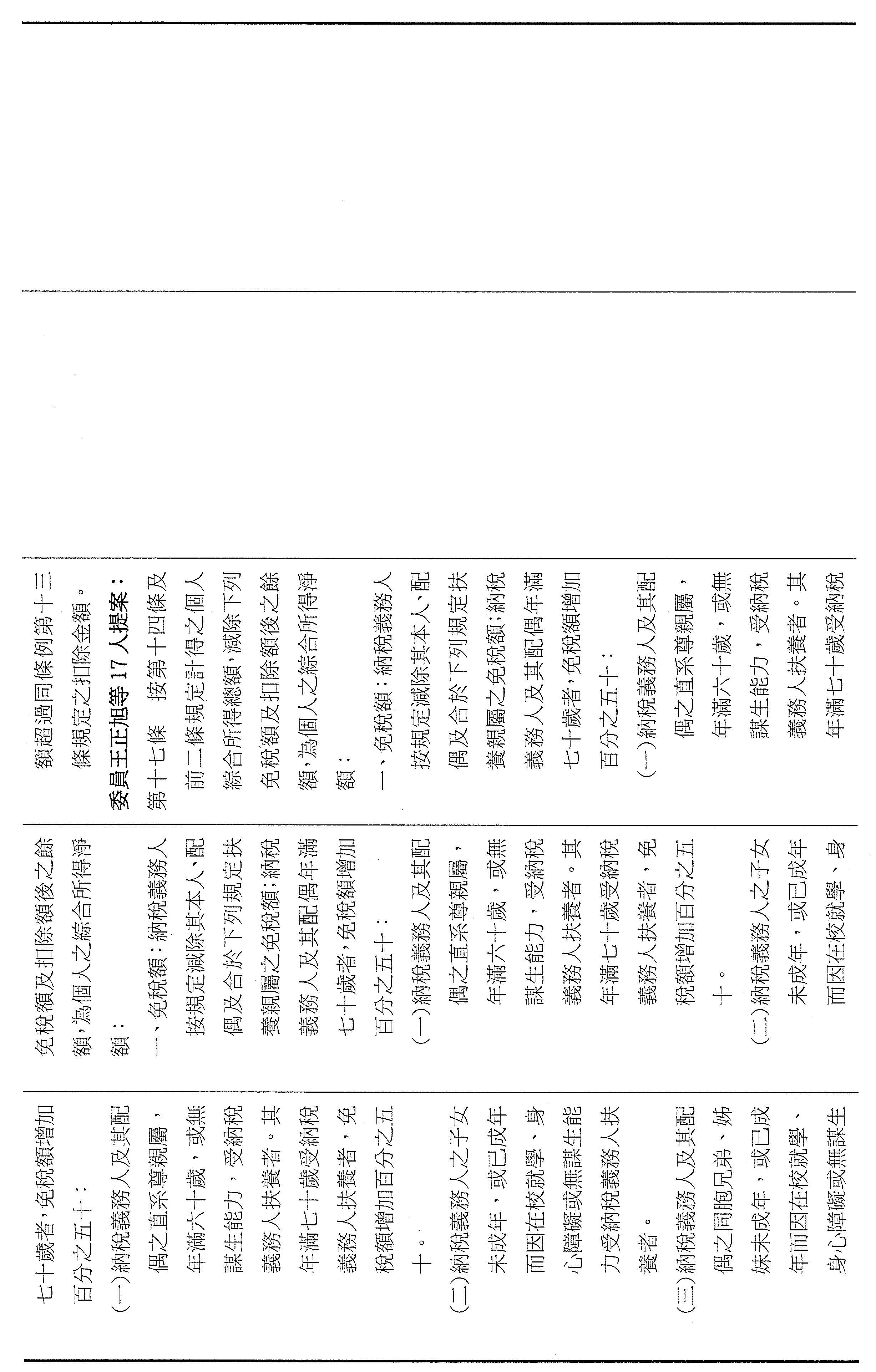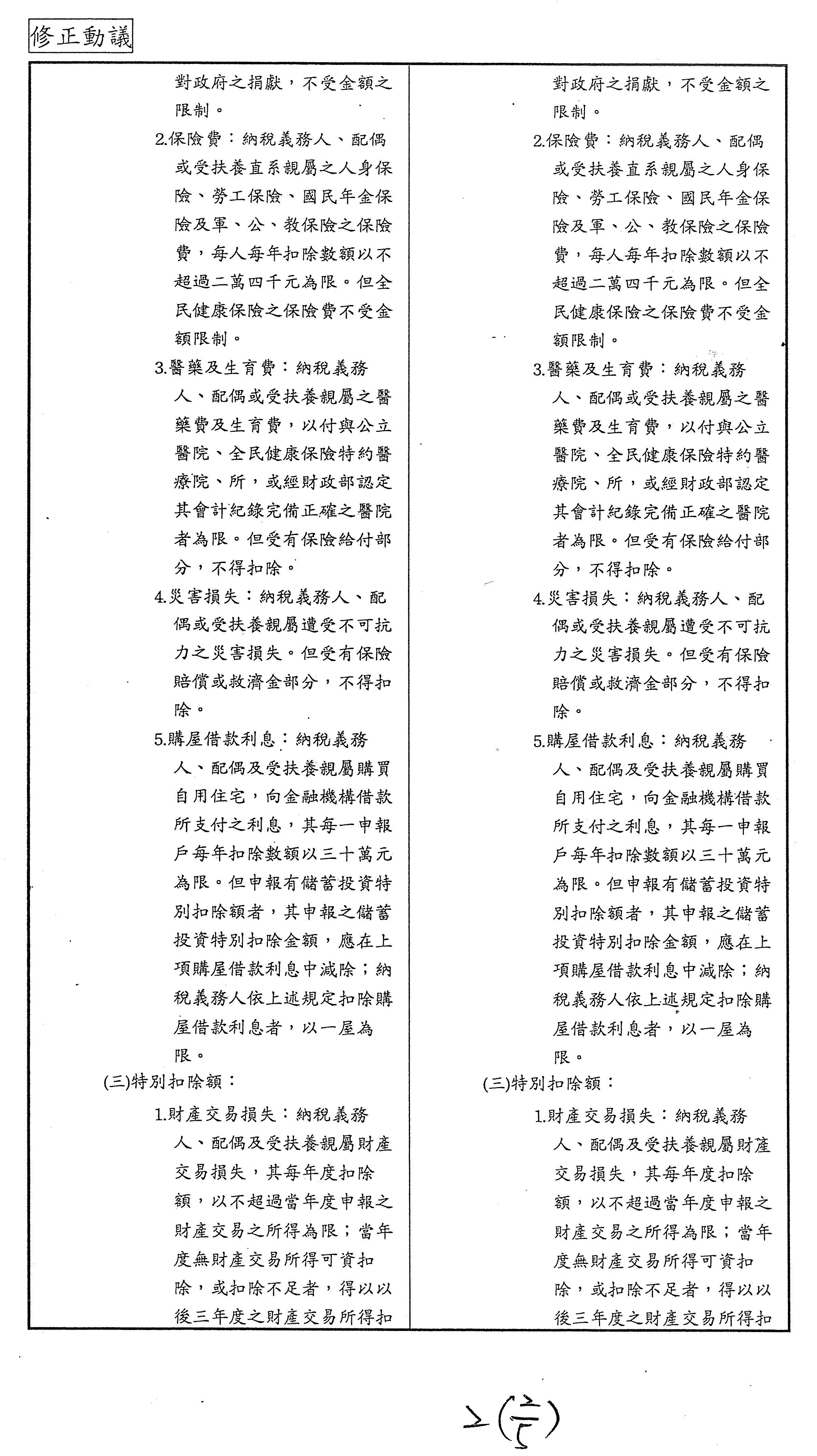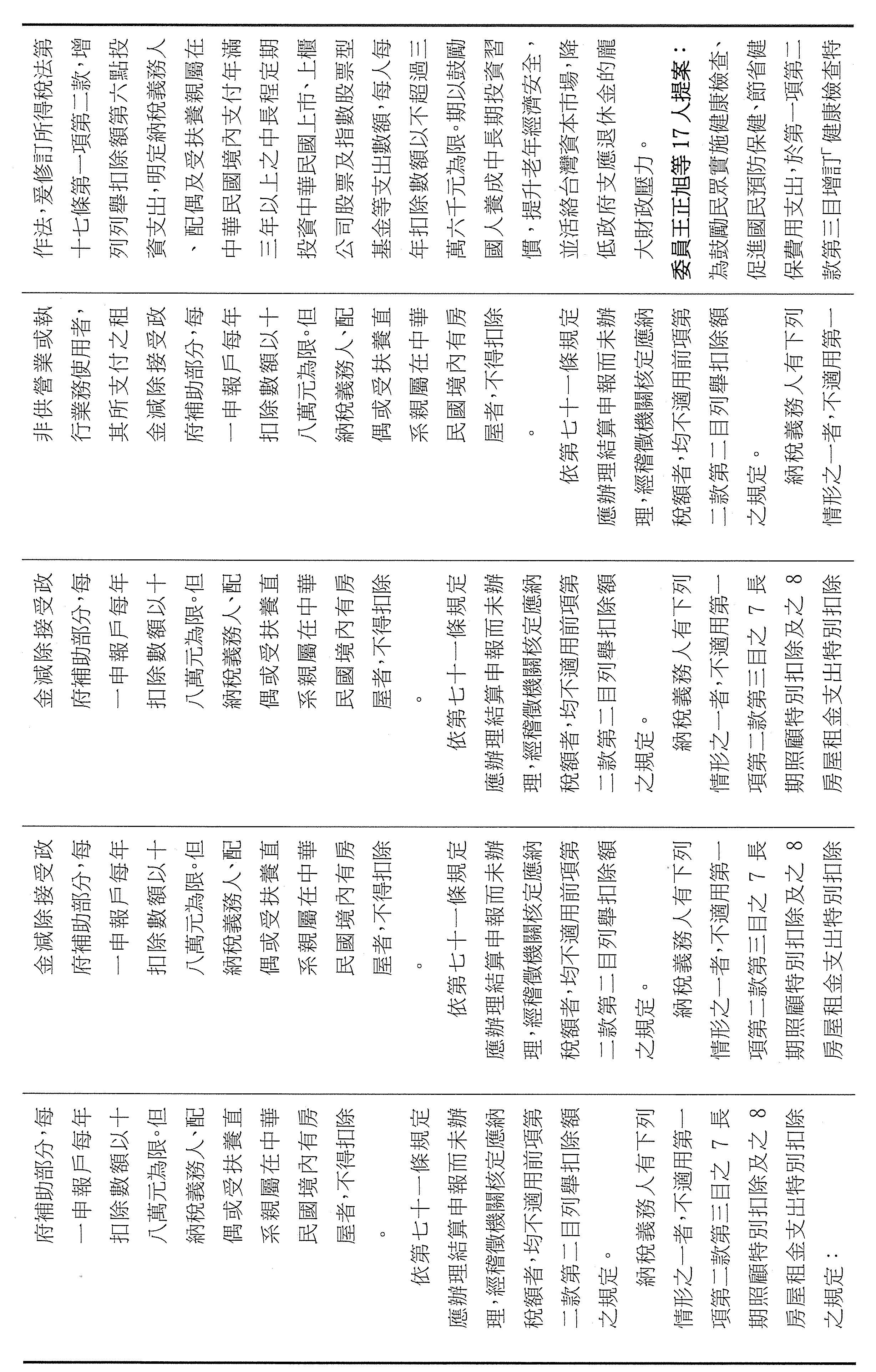 1.案由:針對所得稅法第十七條條文擬具修正動議,如下表。