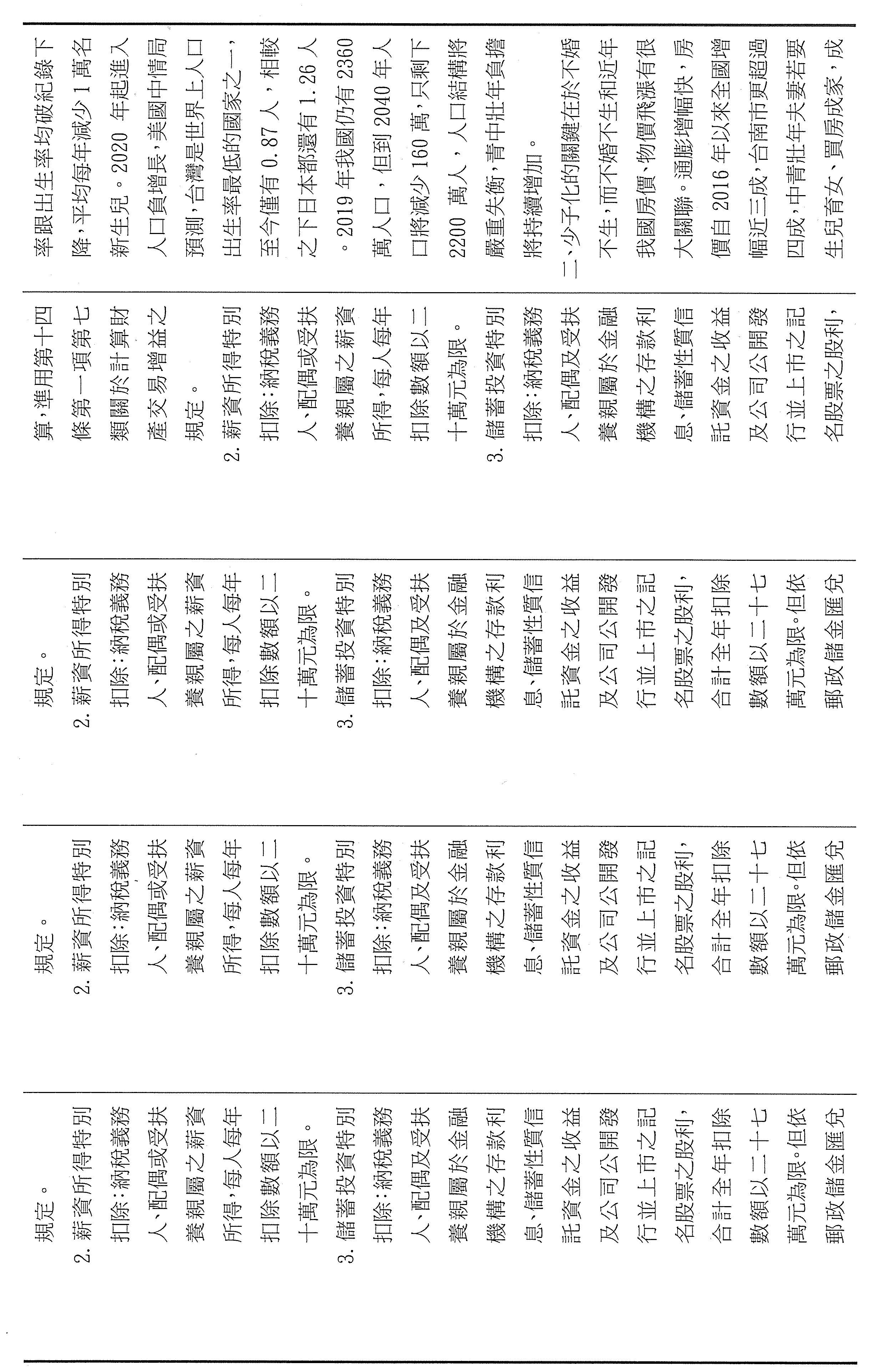 另外,有關未成年子女扶養的部分,謝龍介委員所提案的納稅義務人扶養12歲以下子女免稅額應增加50%,這部分是為因應少子化問題,對於國家未來的發展,我們的出生率一直降低,如何鼓勵年輕人生孩子,希望透過修法讓納稅義務人所扶養的12歲以下子女免稅額能增加50%,幫助國人敢生能養,所以這部分我想財政部也應該要用更長遠的眼光去看待這樣一個修法提案。