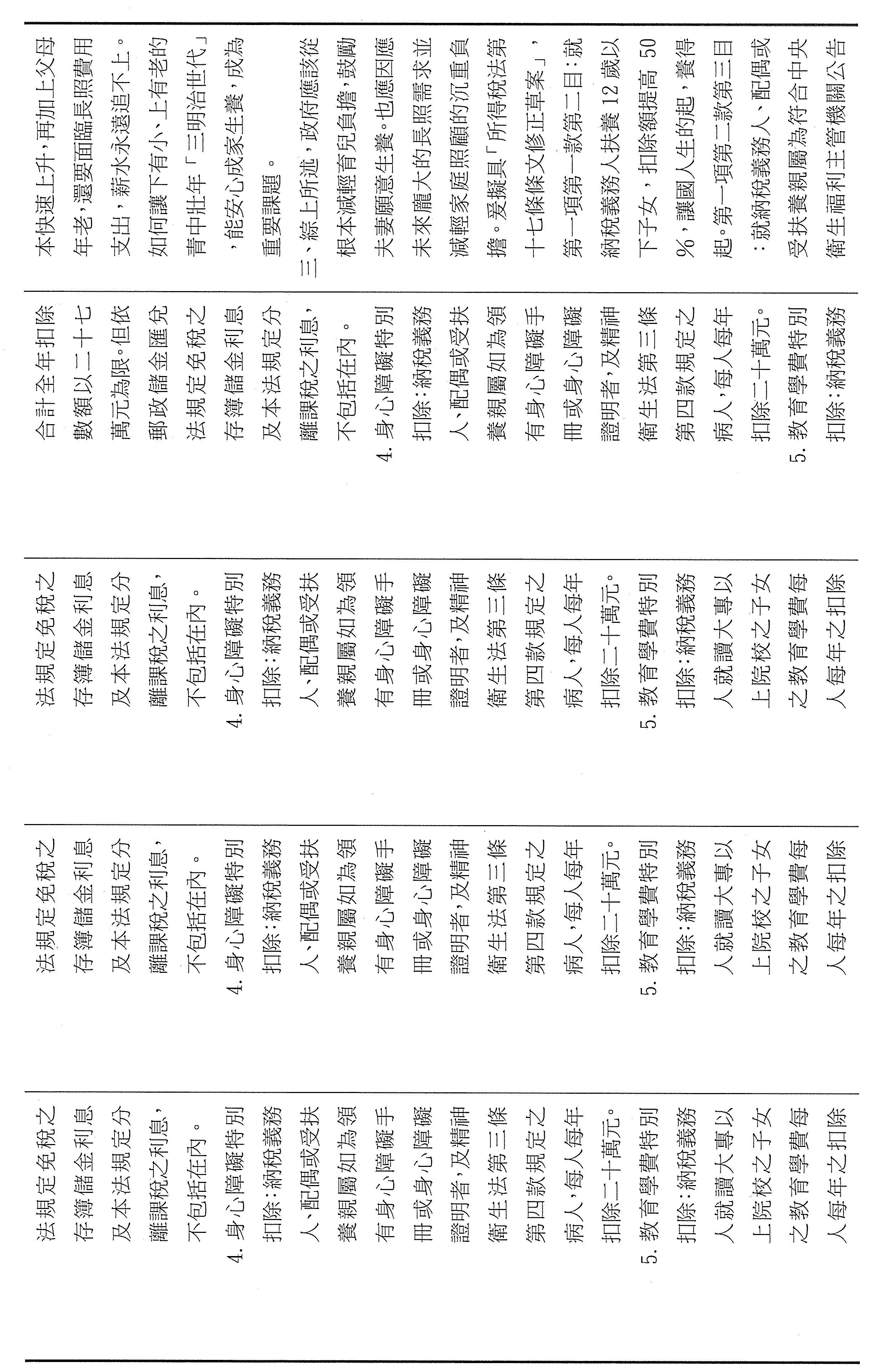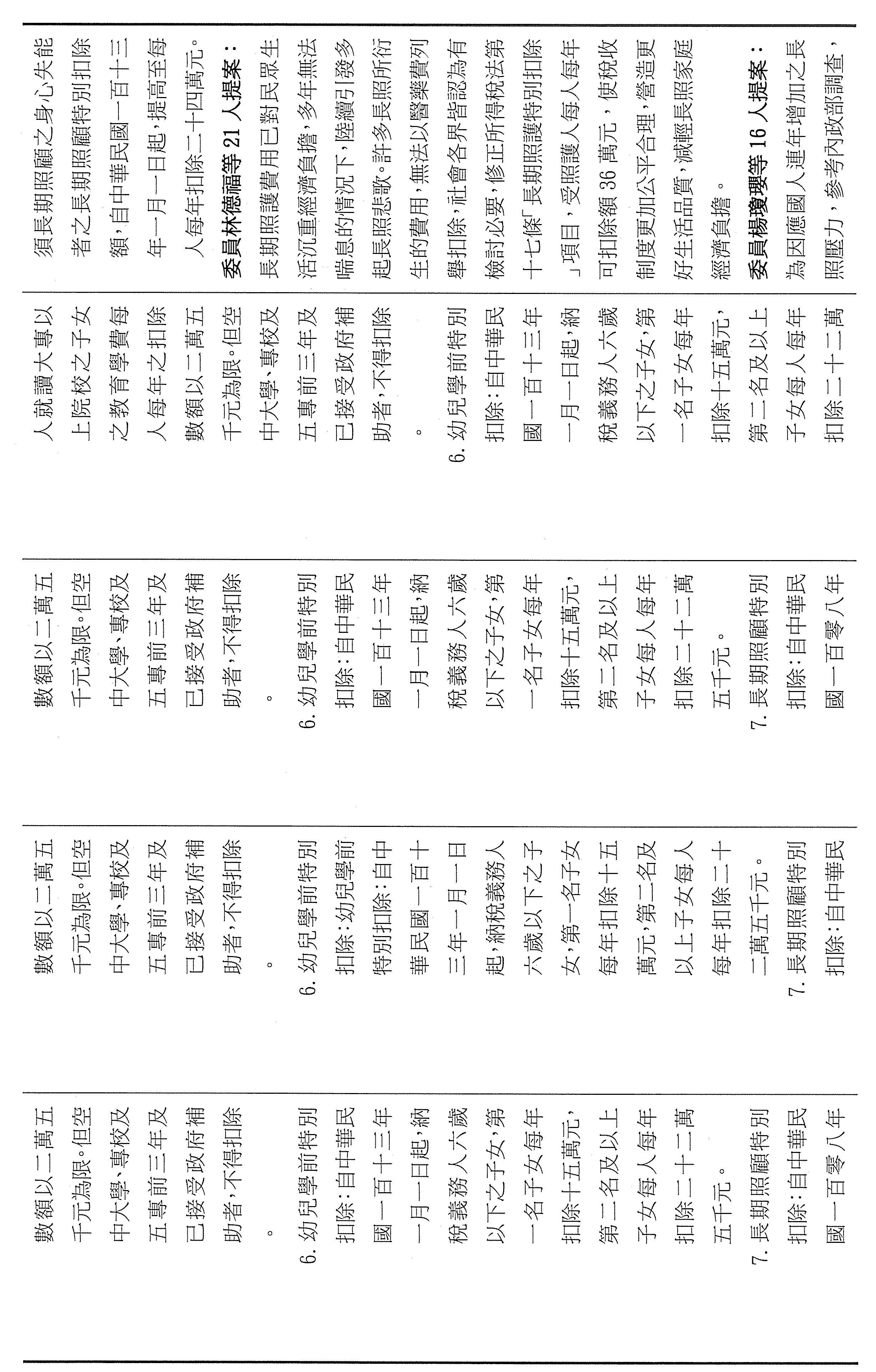 第二個部分,我們今天會提修正動議,希望提高到20萬,因為20萬是提高了8萬元的扣除額,對國家來說,整體稅損大概才35億;也就是說,影響稅損並不嚴重,但是對一個需要長照的家庭來說,留下的每一分錢都可能是他們的救命錢。所以就相關的案例,我們希望等一下提的修正動議也可以得到大家的支持。