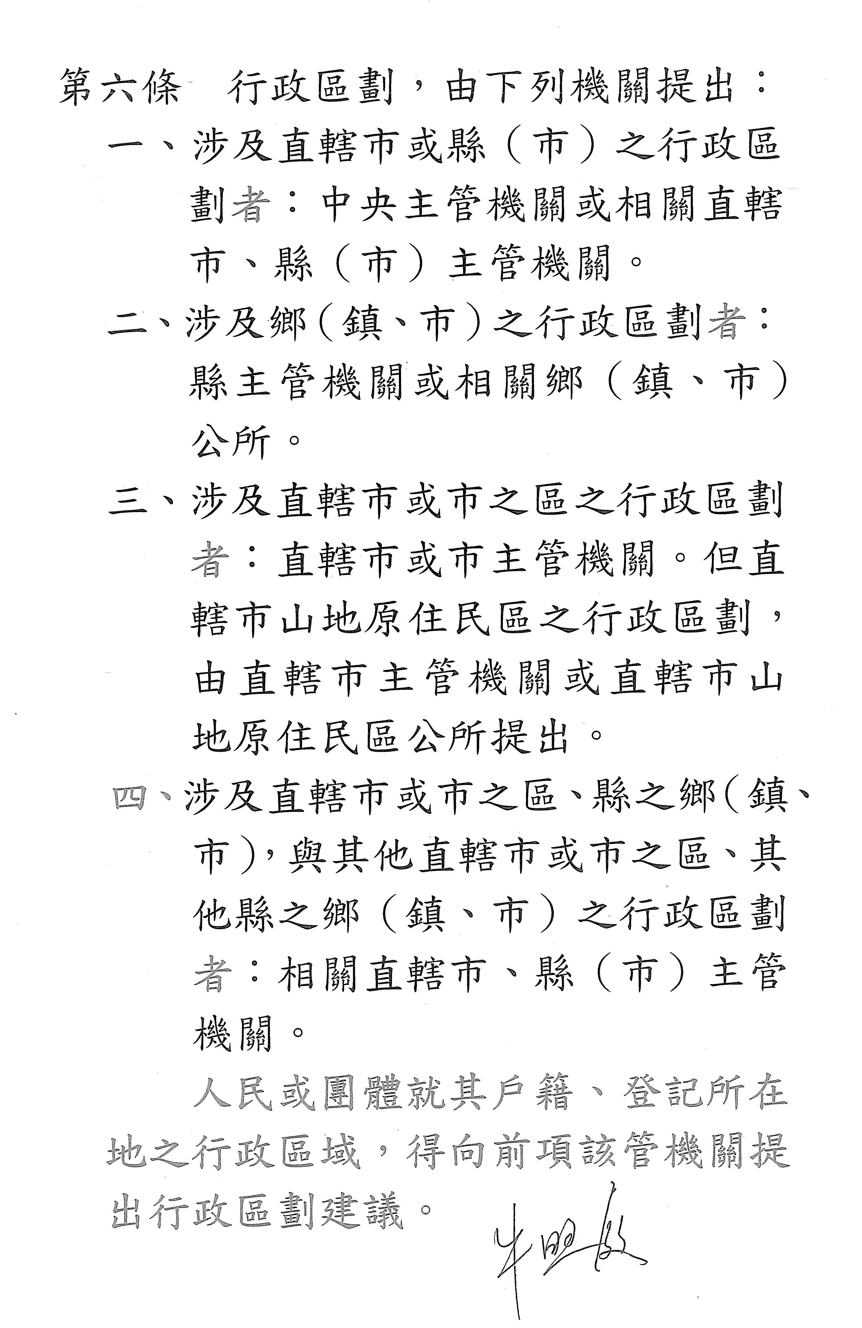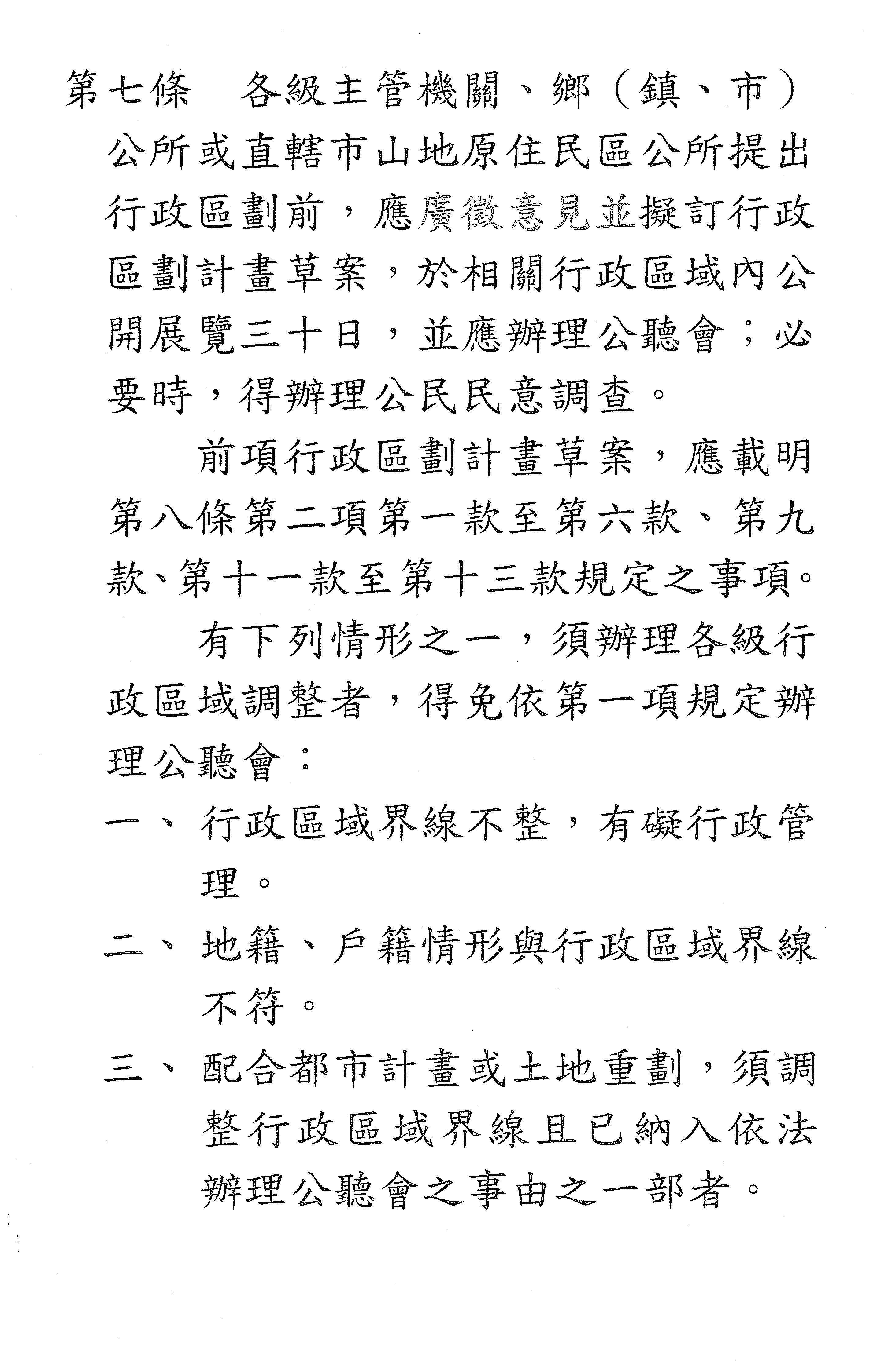 主席:我跟次長和宏陸召委說明一下,我們這樣寫體例基本上是參照都更條例,因為我覺得行政區劃等等,它其實跟人民的生活滿密切相關的,所以我覺得把這個東西寫進去是比較完整的,當然你講說既有的,包含部長信箱等等,它都可以受理,但我覺得在強度上跟專門性上有一些些落差。