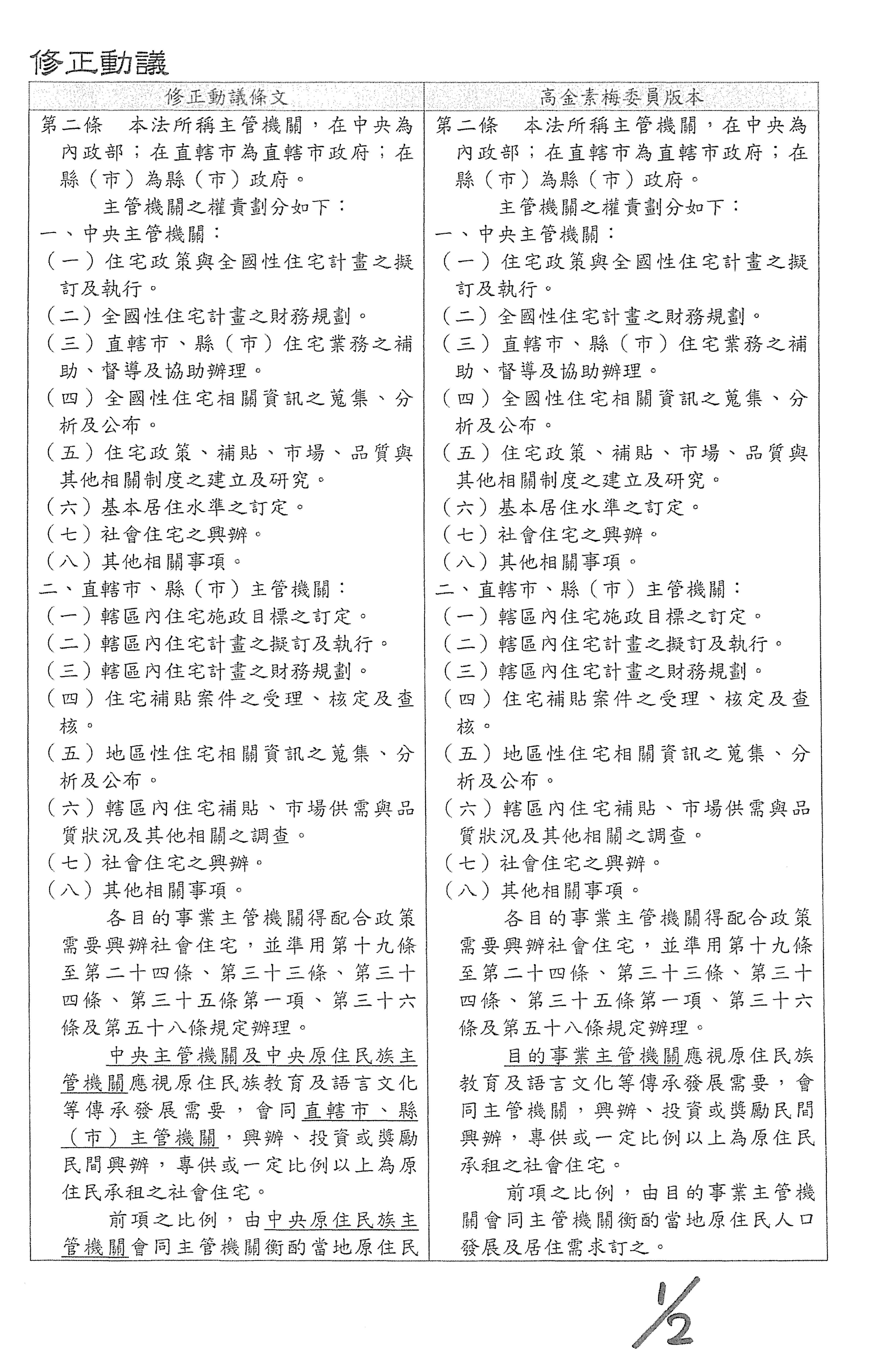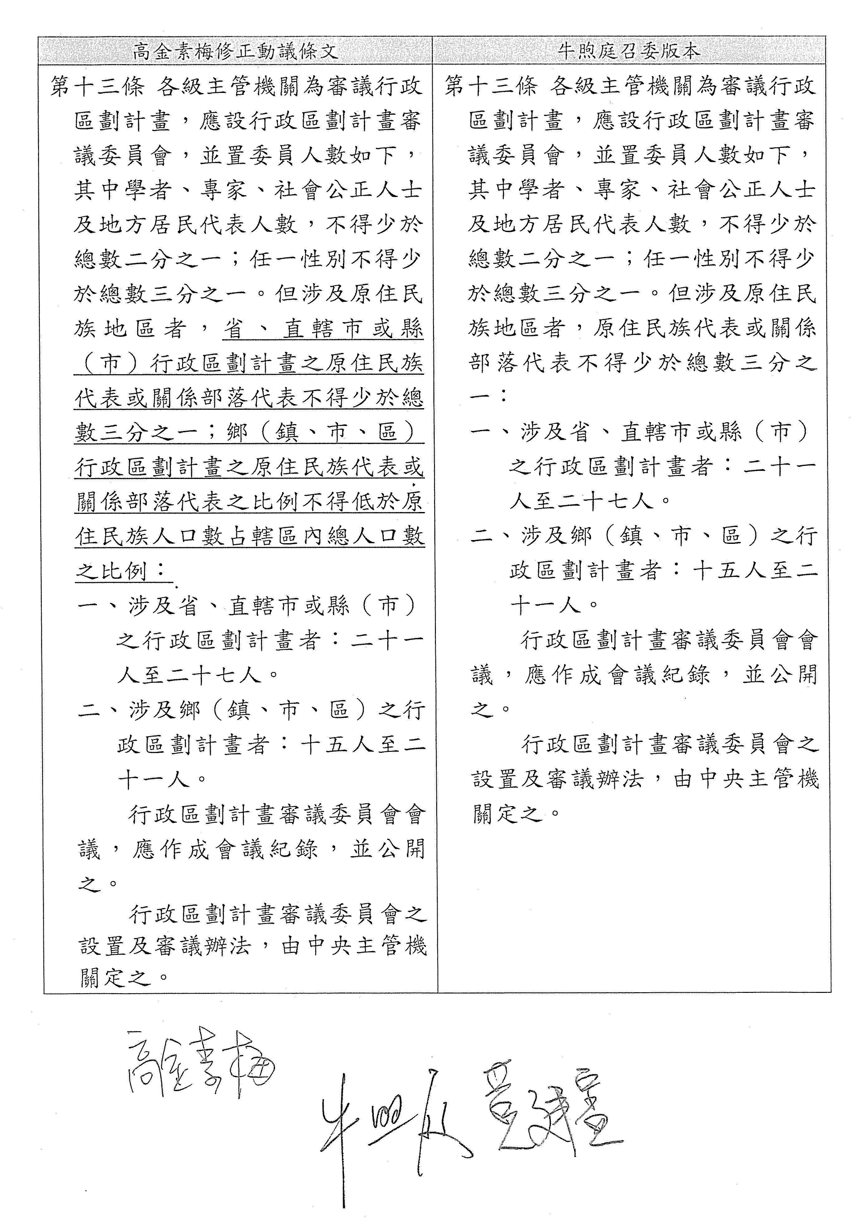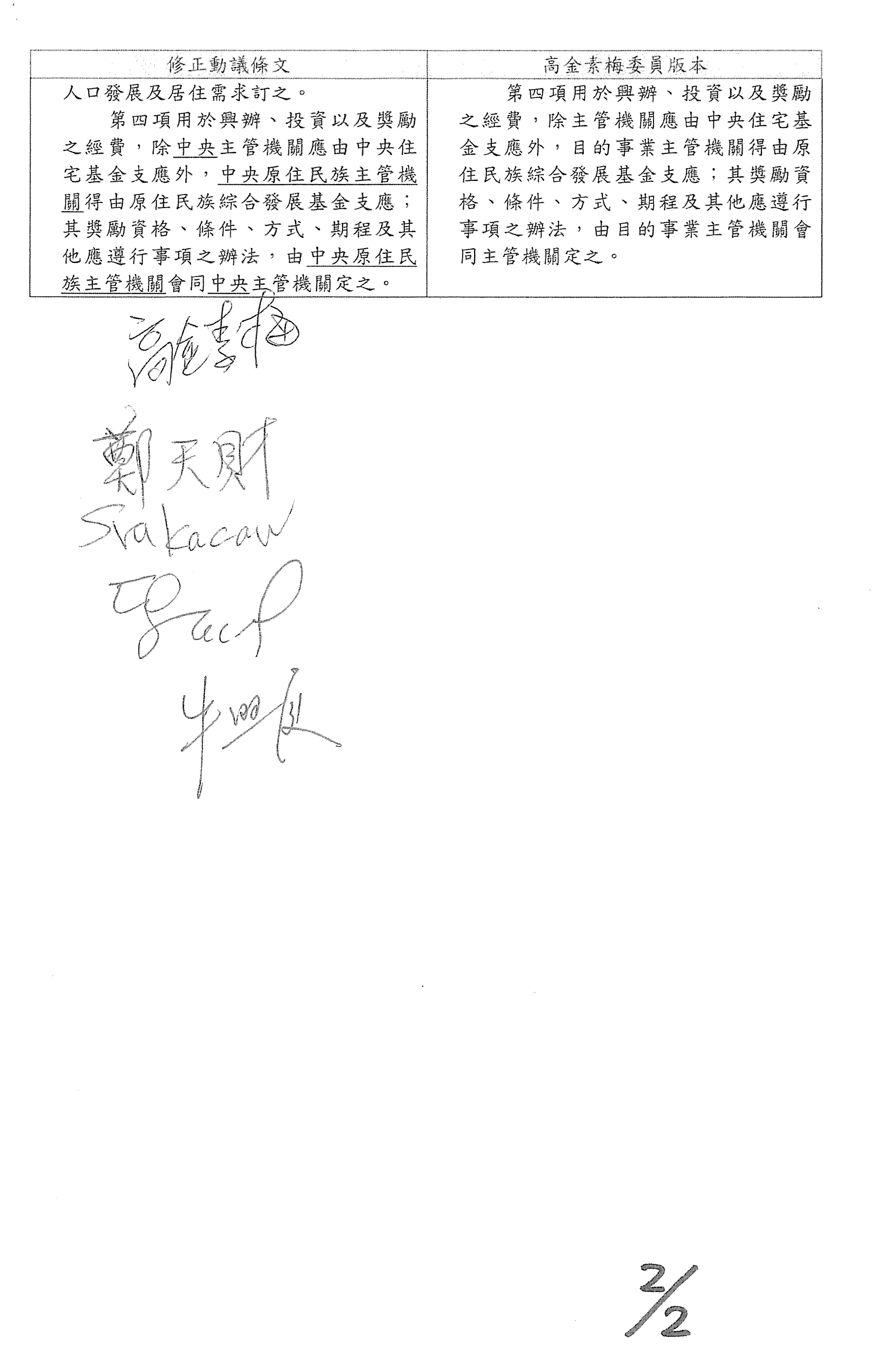 委員高金素梅等修正動議: