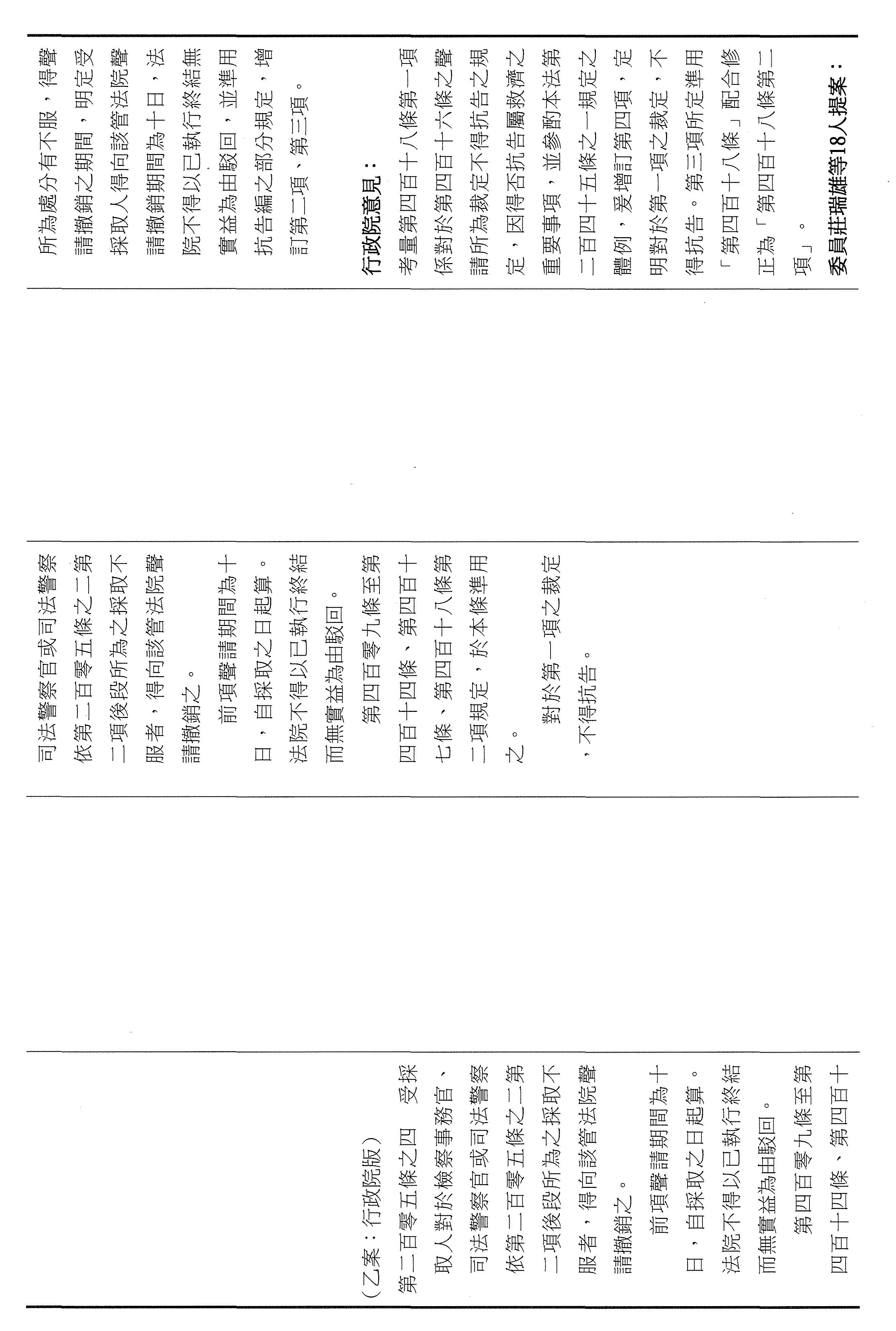 現在審查增訂第二百零五條之三,在第18頁,有司法院、行政院提案的甲案,這是司法院版,還有司法院及行政院提案的乙案,這是行政院院版;委員莊瑞雄等18人提案、沈發惠等18人提案、陳素月等19人提案,以及委員吳宗憲等3人所提修正動議。