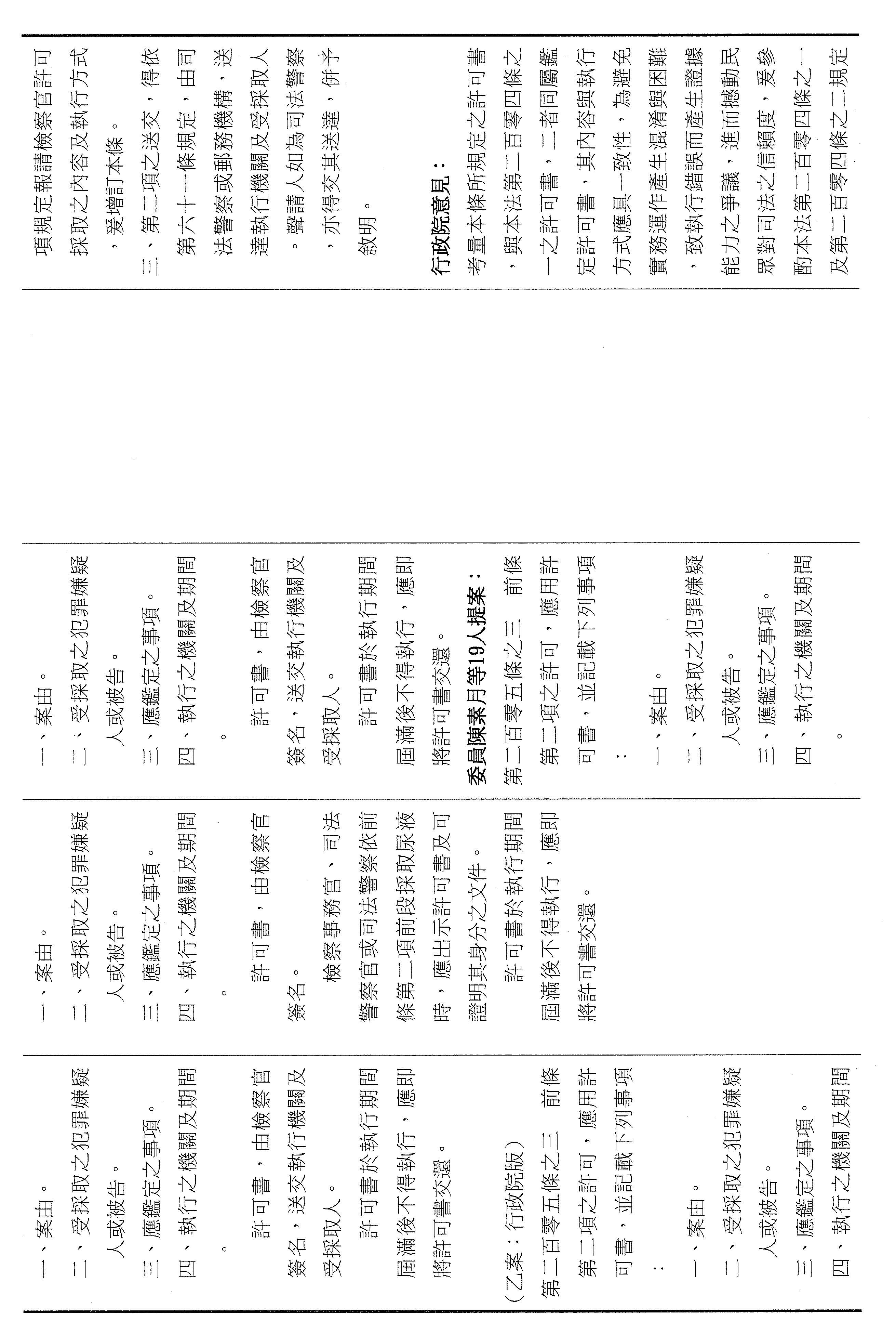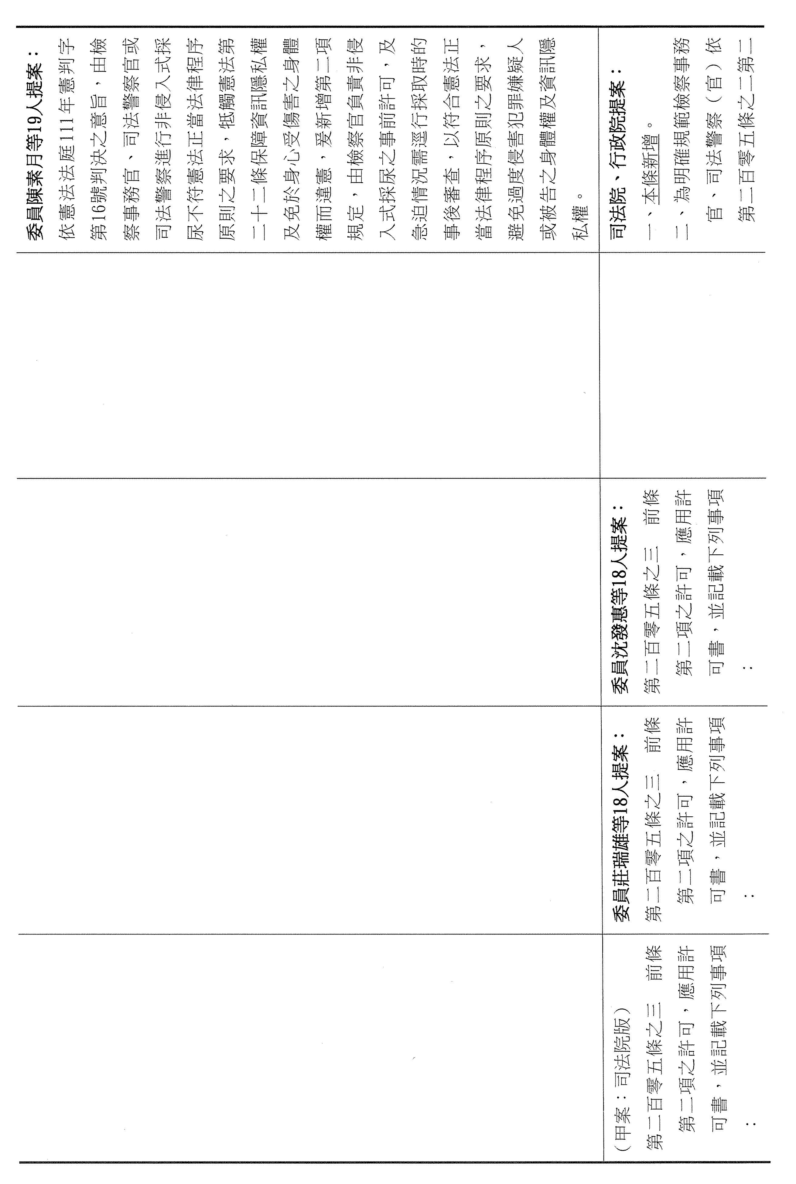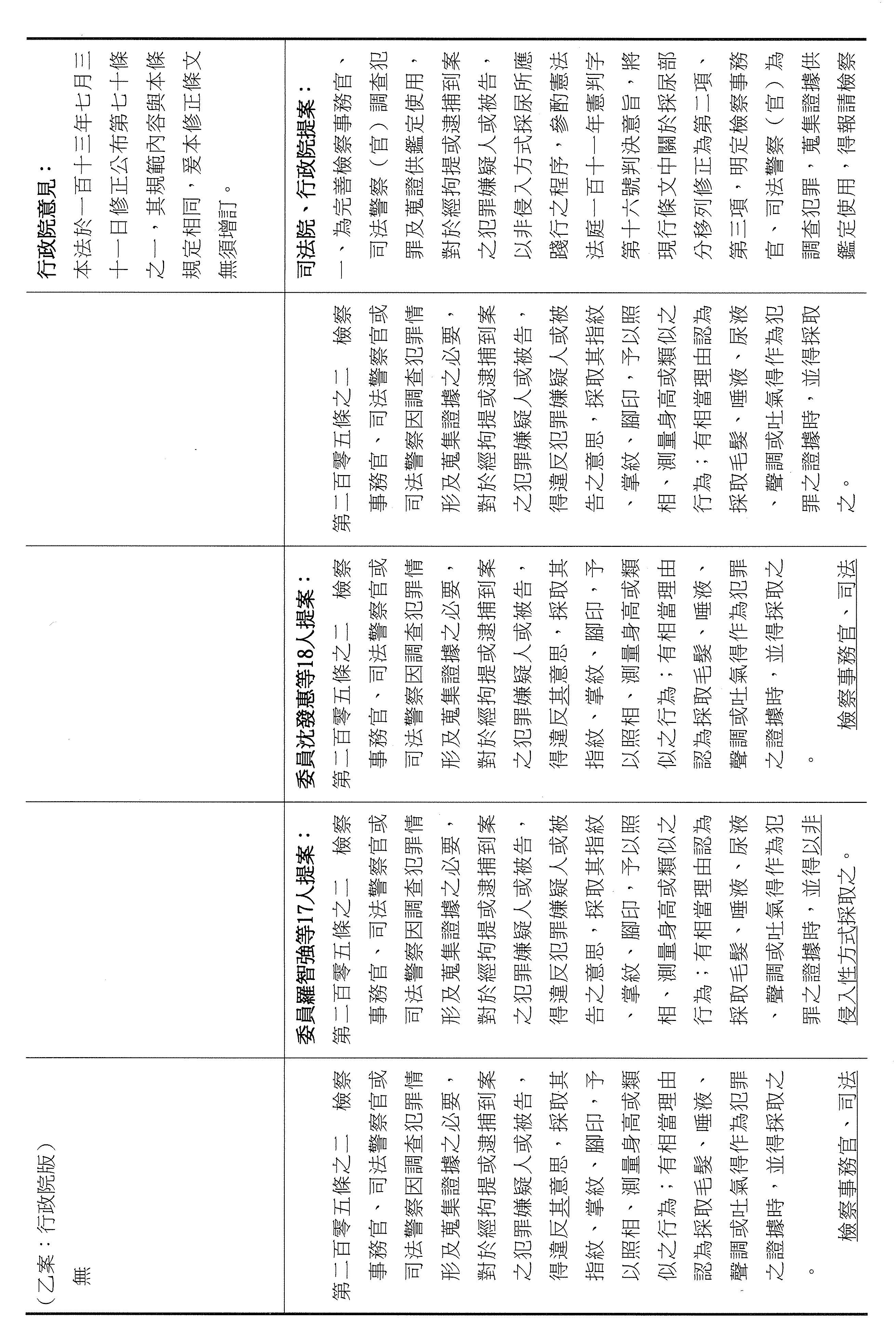 王副秘書長梅英:跟主席報告,司法院和行政院的版本其實兩個實質上是一樣的,只是立法模式的論述方式不同。至於主席所提的這個修正動議,就是把頓號改成「及」,因為在第二百四十五條之一有相同的規定,就是現行條文已經有相同的規定,現行法那個地方是用頓號,所以如果要讓整部刑事訴訟法的體例一致的話,是不是還是採原來行政院的版本,就是用頓號?