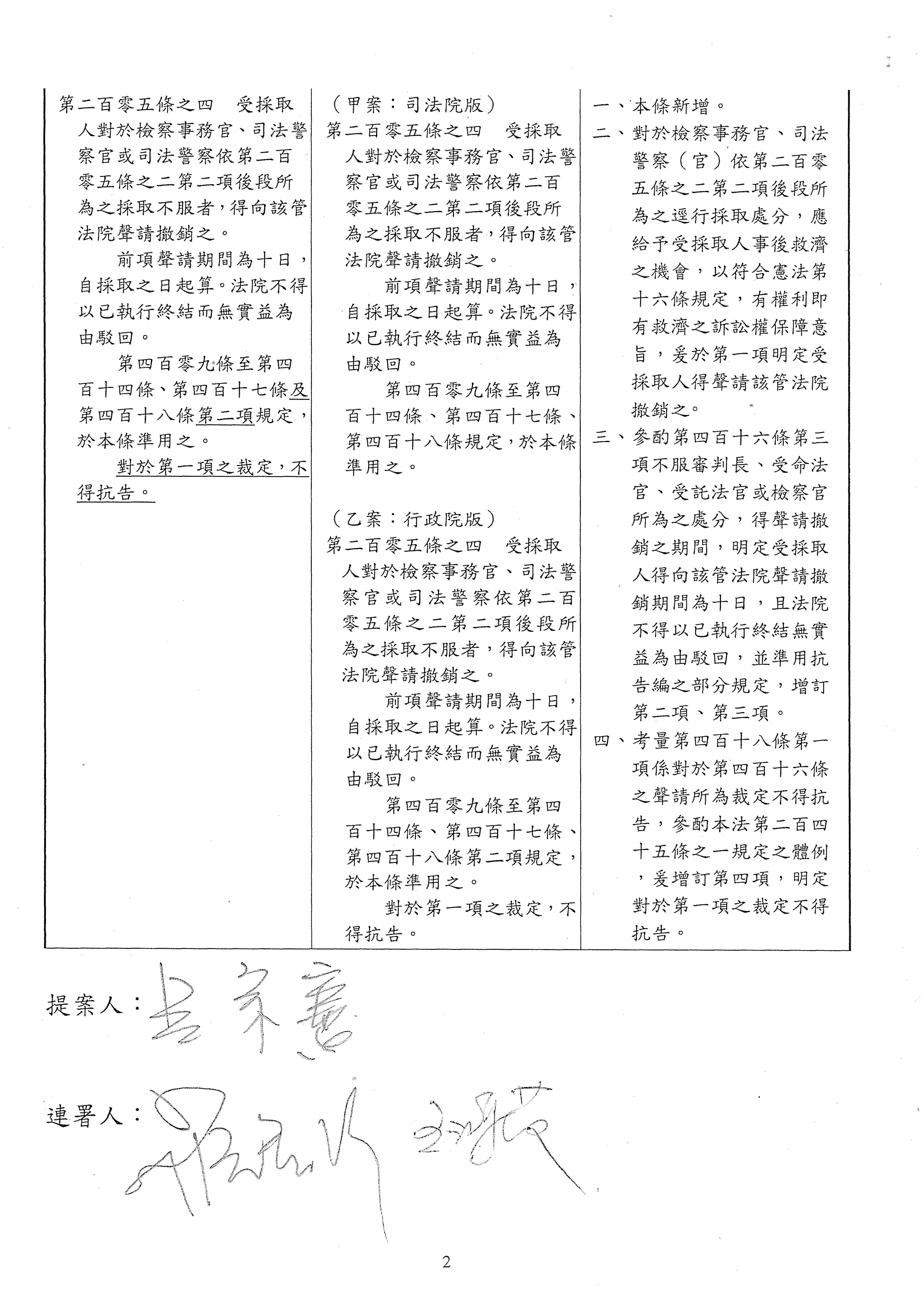 主席:羅委員,你同意採司法院嗎?同意,好,因為大家沒有不同的意見,所以第二百零五條之二就依照司法院及行政院提案通過。