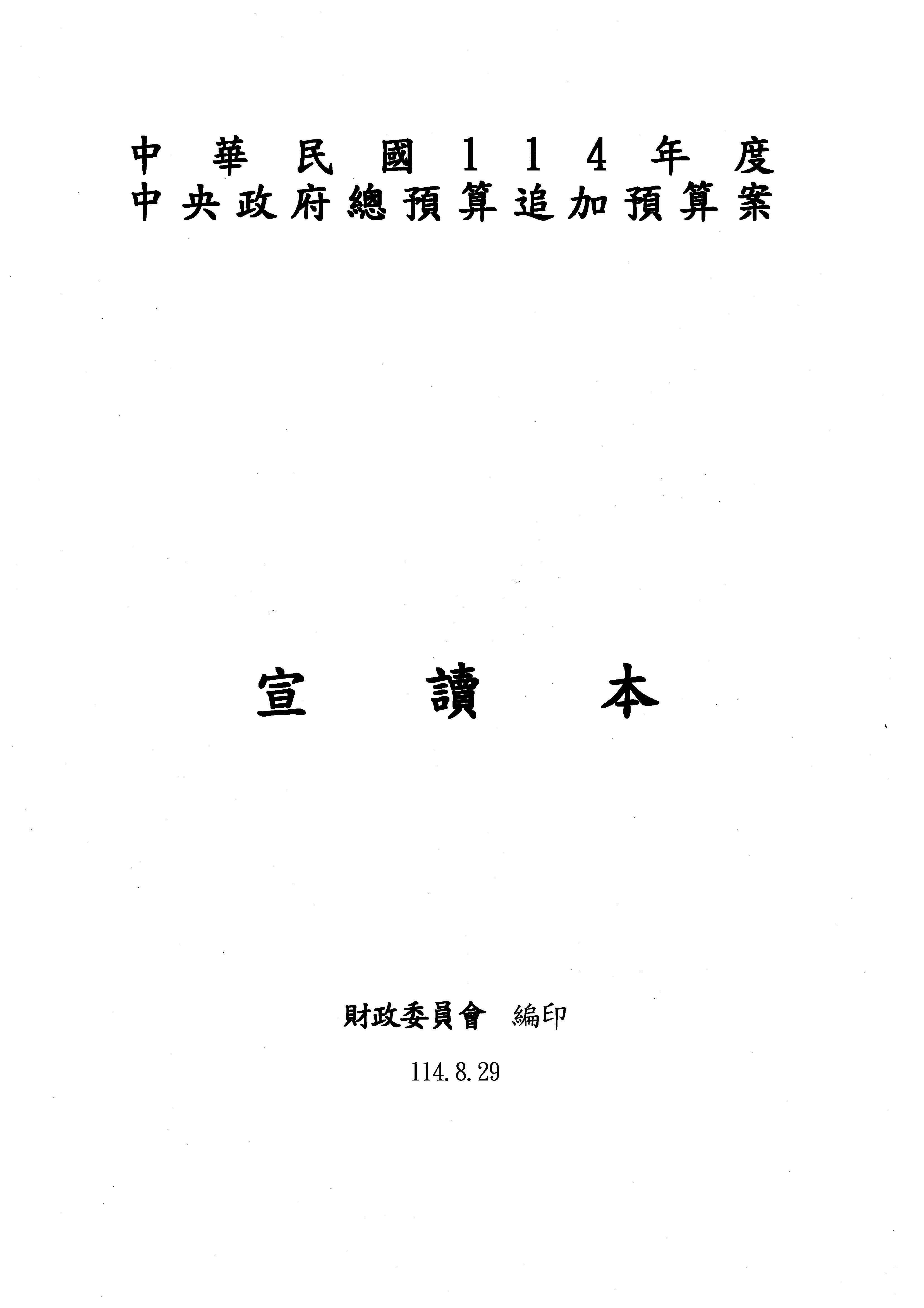協商主題:研商「114年度中央政府總預算追加預算案」相關事宜。