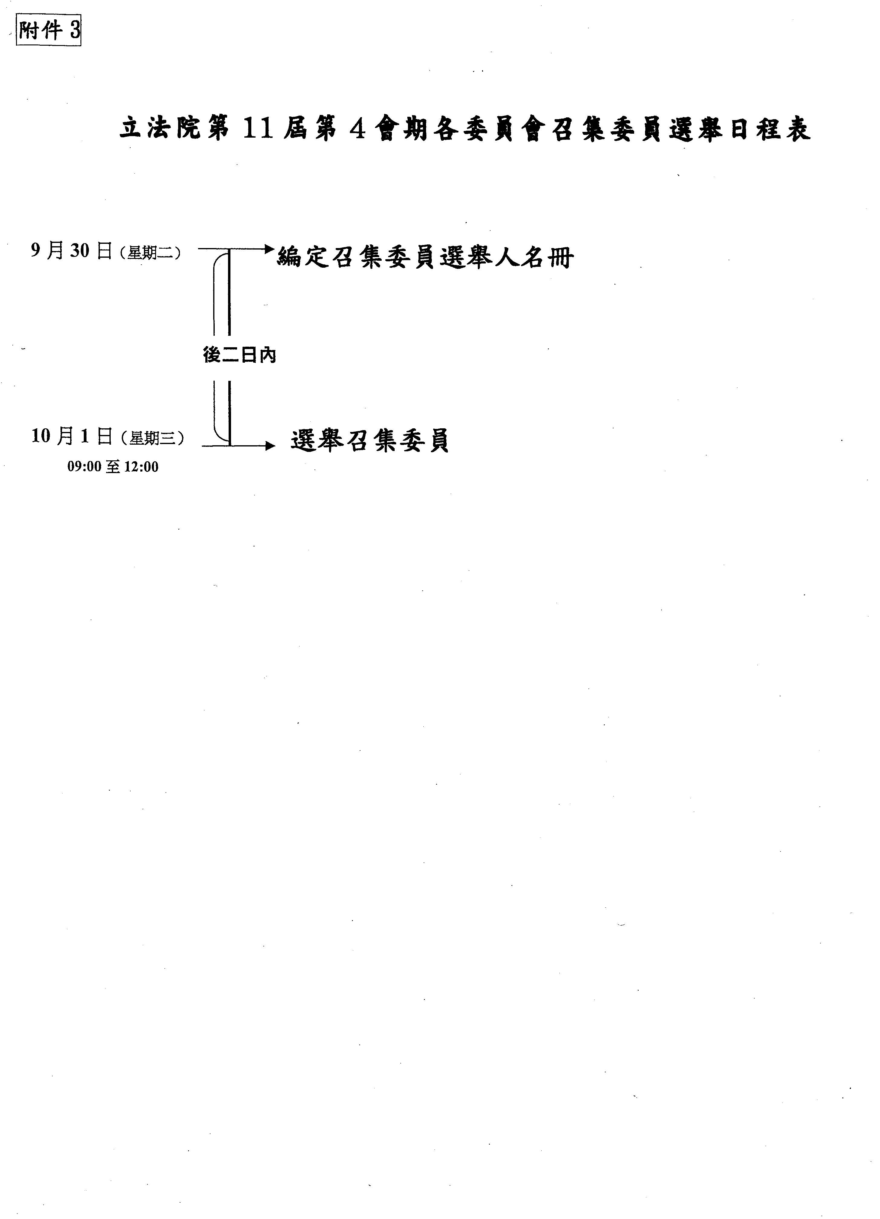 七、本(第4)會期各委員會召集委員之選舉,不受立法院各委員會召集委員選舉辦法之限制,其日程表如附件3。