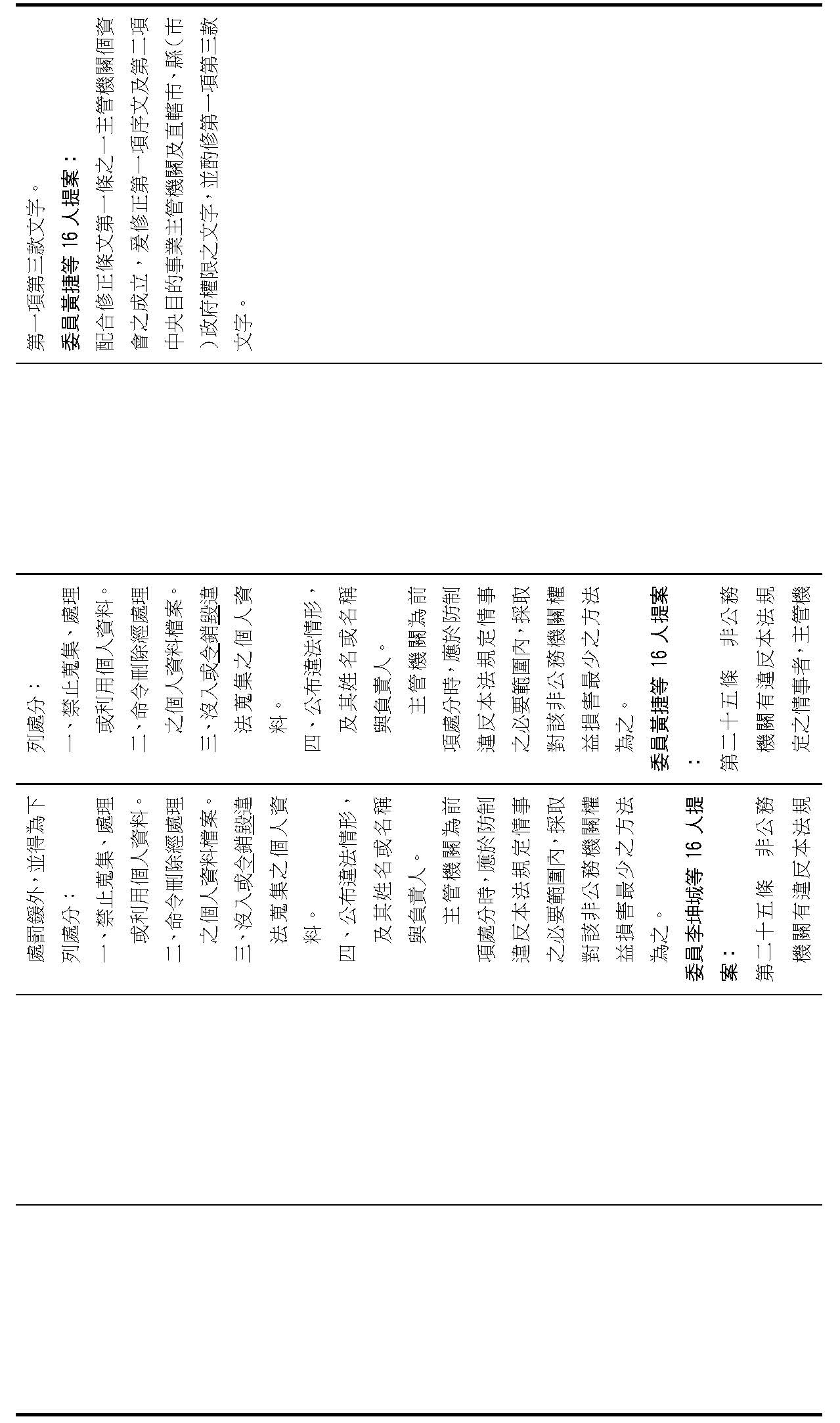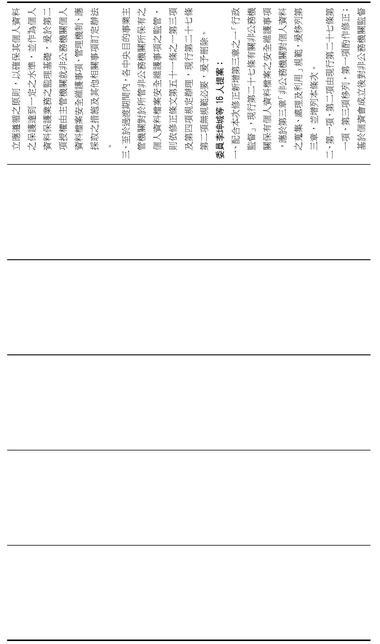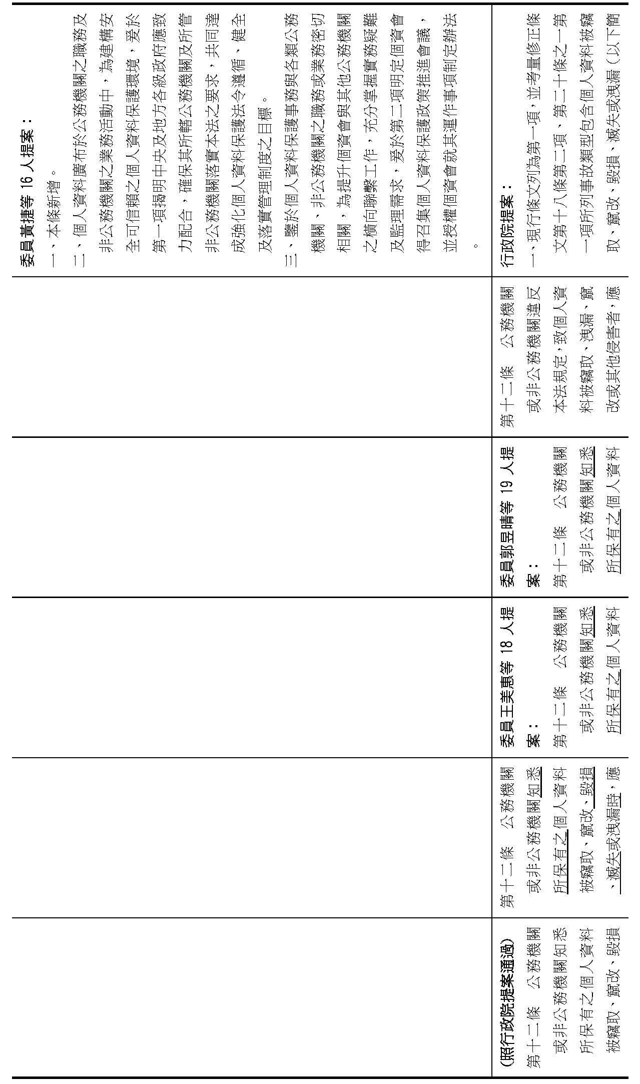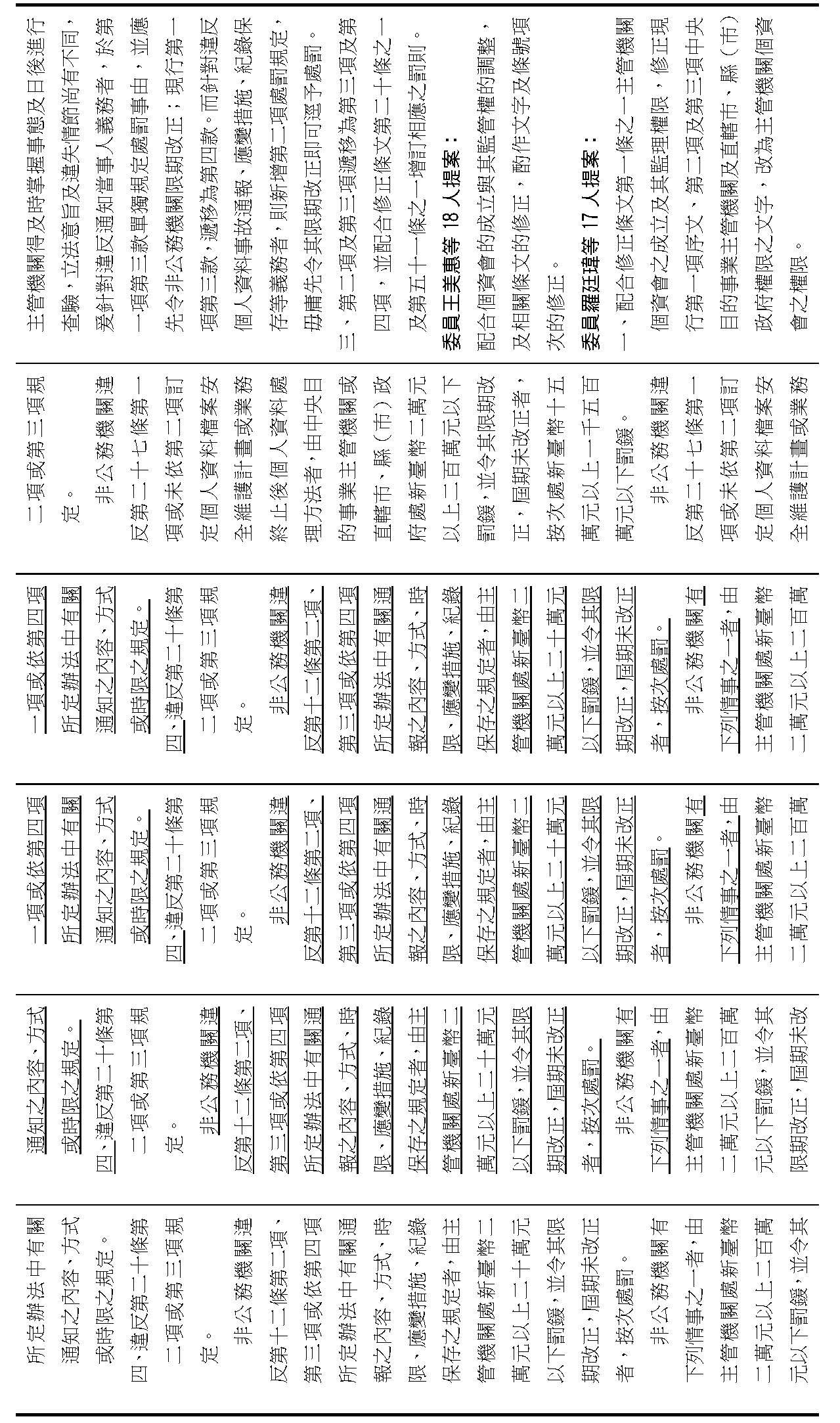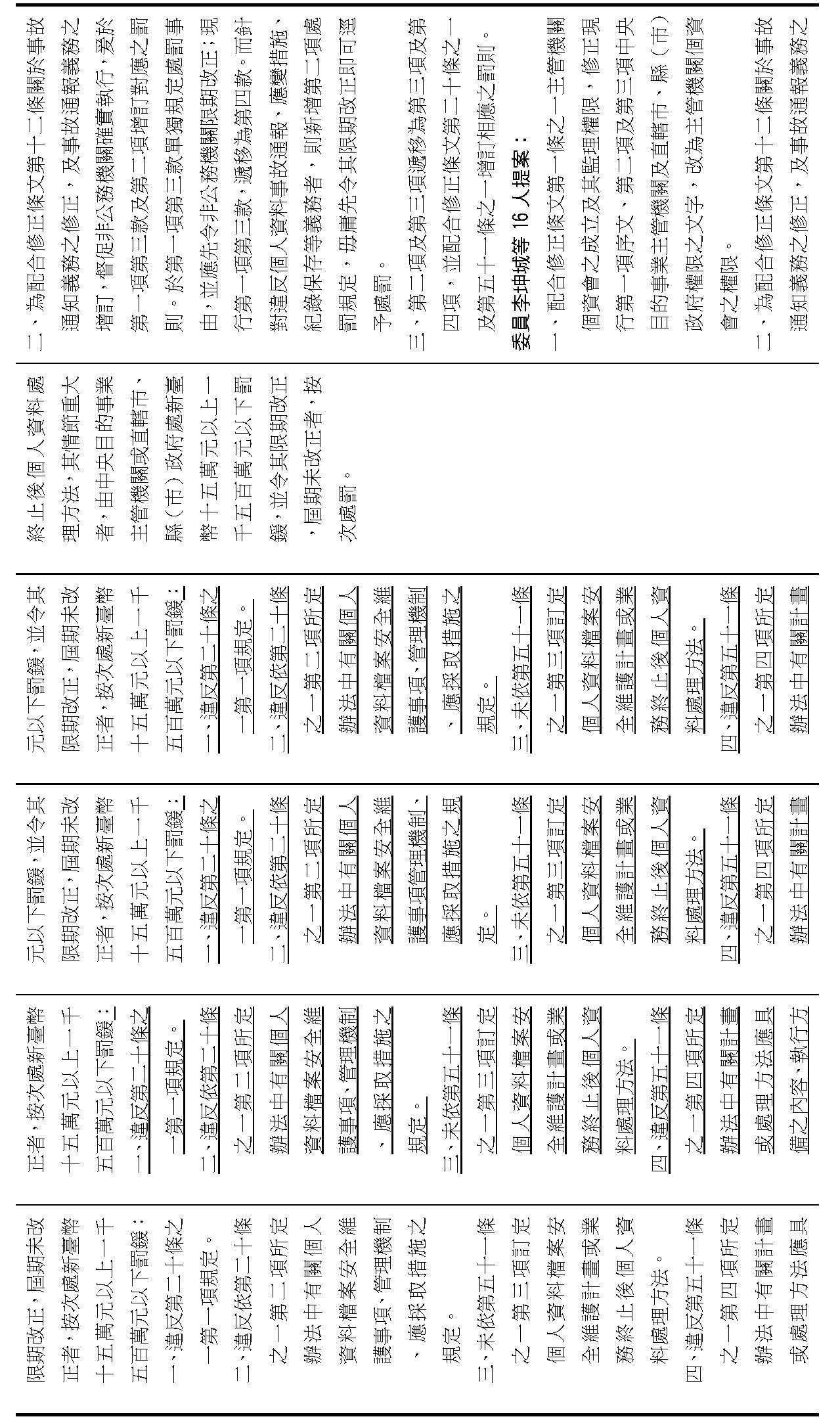 主旨:院會交付本會審查行政院函請審議「個人資料保護法部分條文修正草案」及本院委員王美惠等18人、委員羅廷瑋等17人、委員李坤城等16人、委員郭昱晴等19人、委員蔡易餘等18人、委員黃捷等16人分別擬具「個人資料保護法部分條文修正草案」、委員陳亭妃等16人擬具「個人資料保護法第十二條、第二十七條及第四十八條條文修正草案」等8案,業經併案審查完竣,並決議須交由黨團協商,復請提報院會討論。