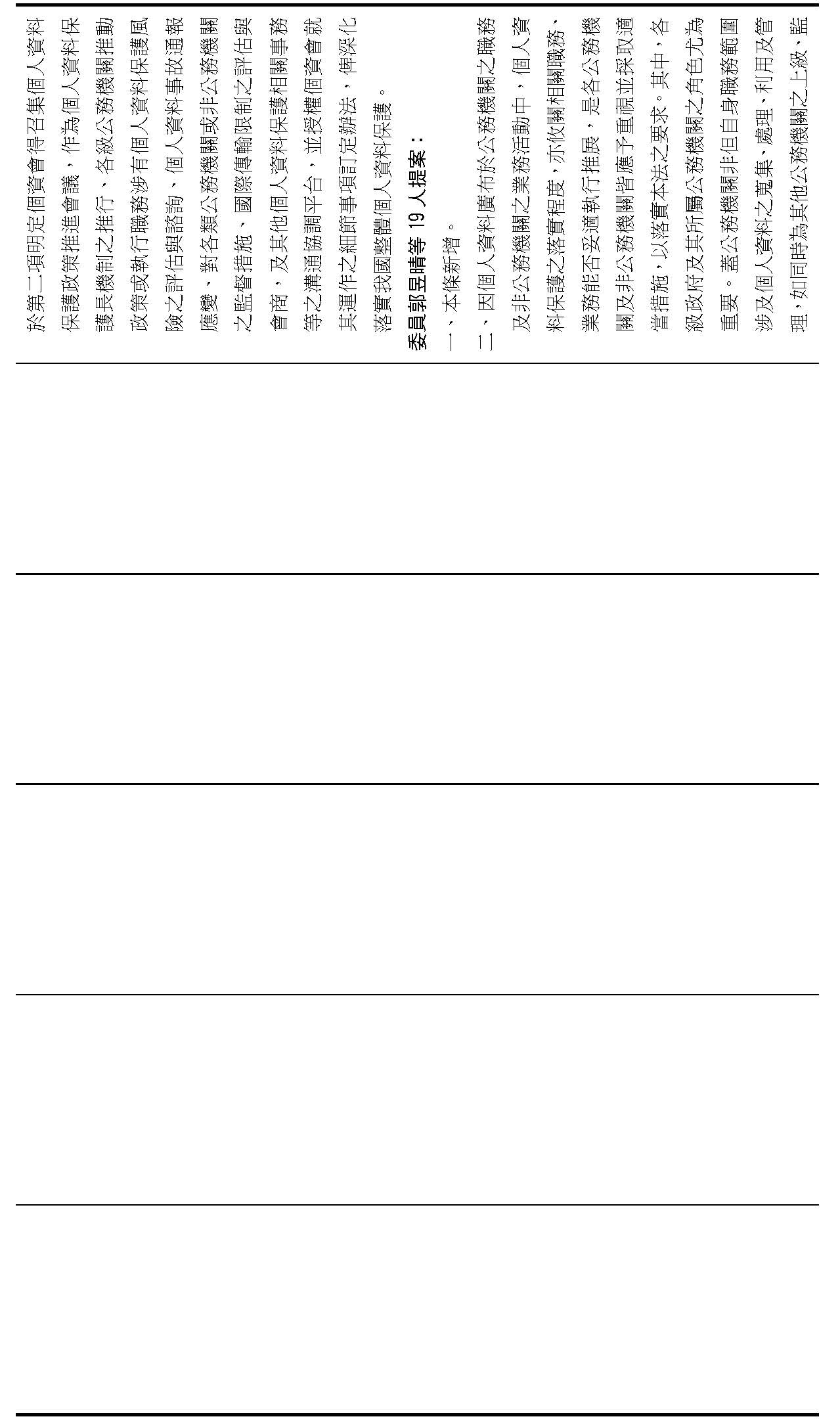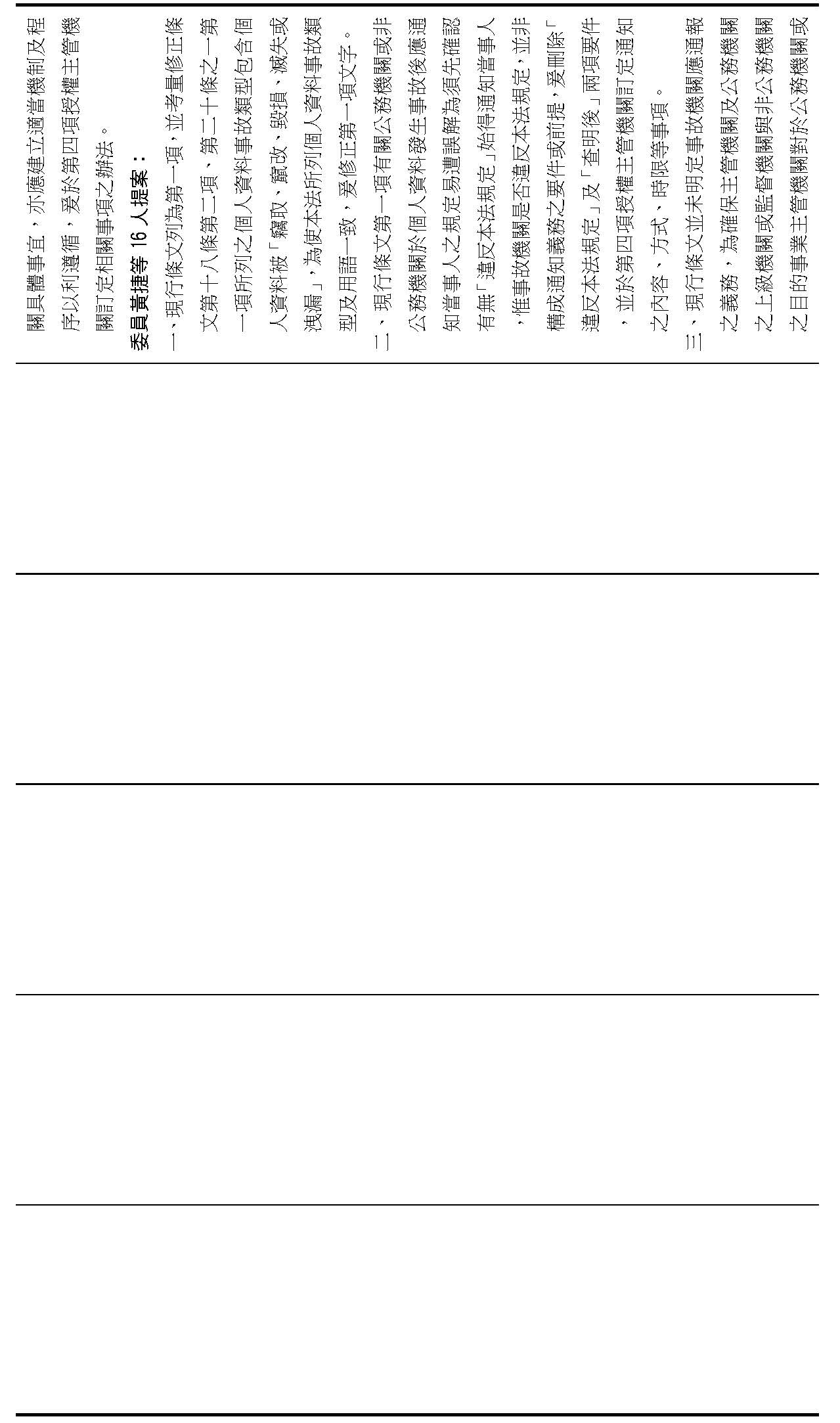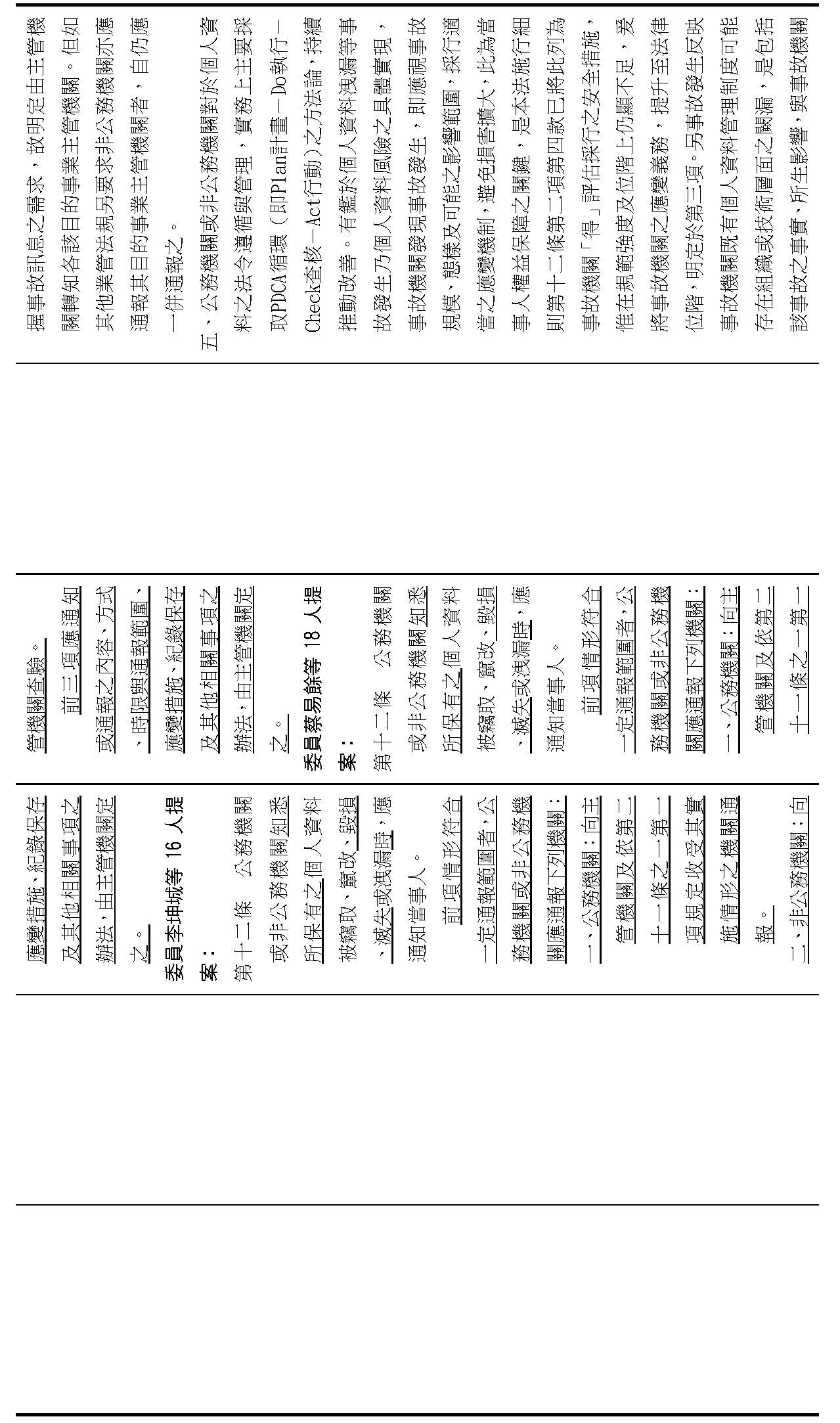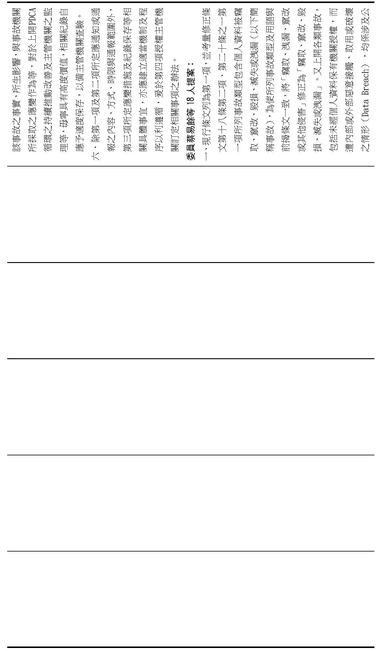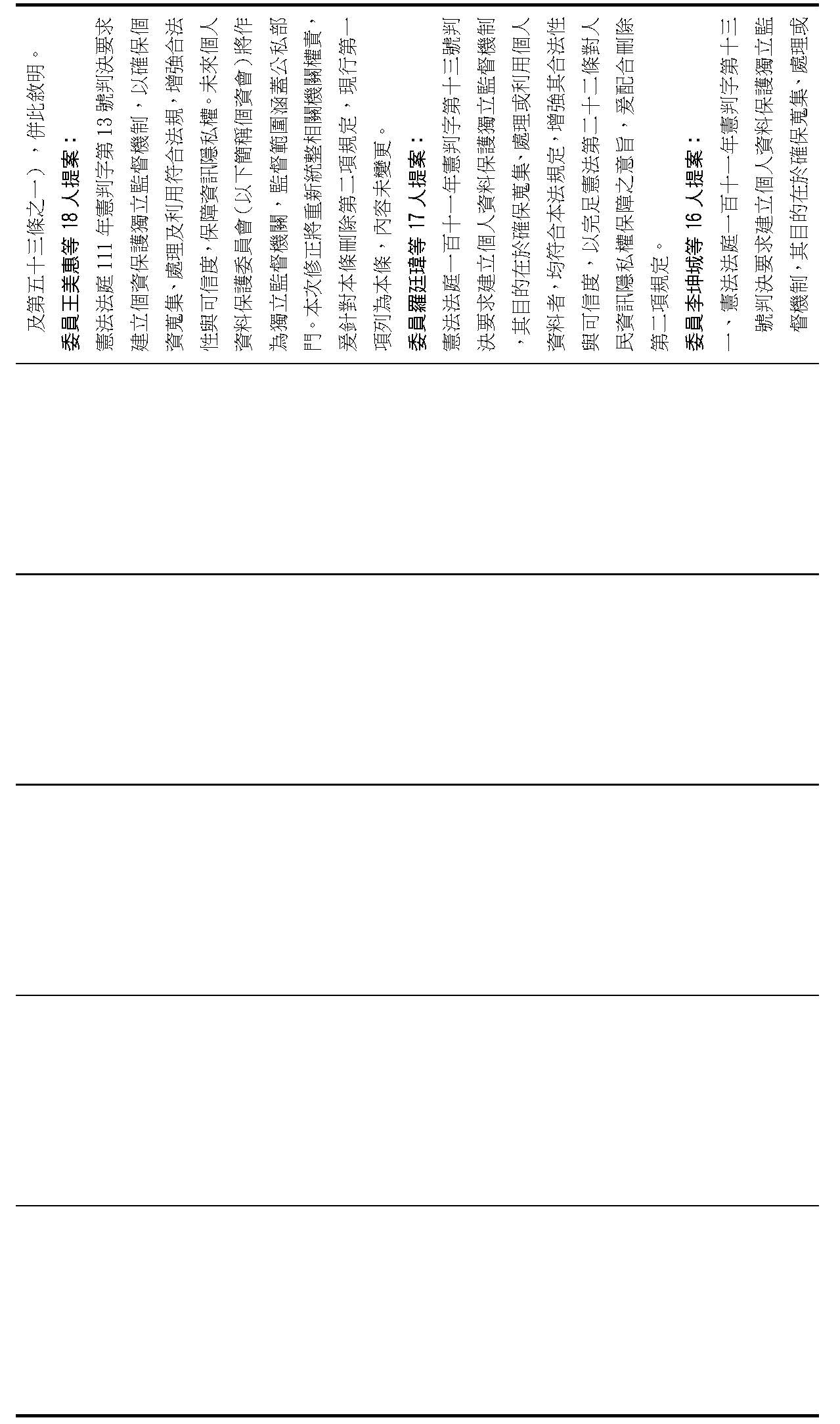 主旨:院會交付本會審查行政院函請審議「個人資料保護法部分條文修正草案」及本院委員王美惠等18人、委員羅廷瑋等17人、委員李坤城等16人、委員郭昱晴等19人、委員蔡易餘等18人、委員黃捷等16人分別擬具「個人資料保護法部分條文修正草案」、委員陳亭妃等16人擬具「個人資料保護法第十二條、第二十七條及第四十八條條文修正草案」等8案,業經併案審查完竣,並決議須交由黨團協商,復請提報院會討論。