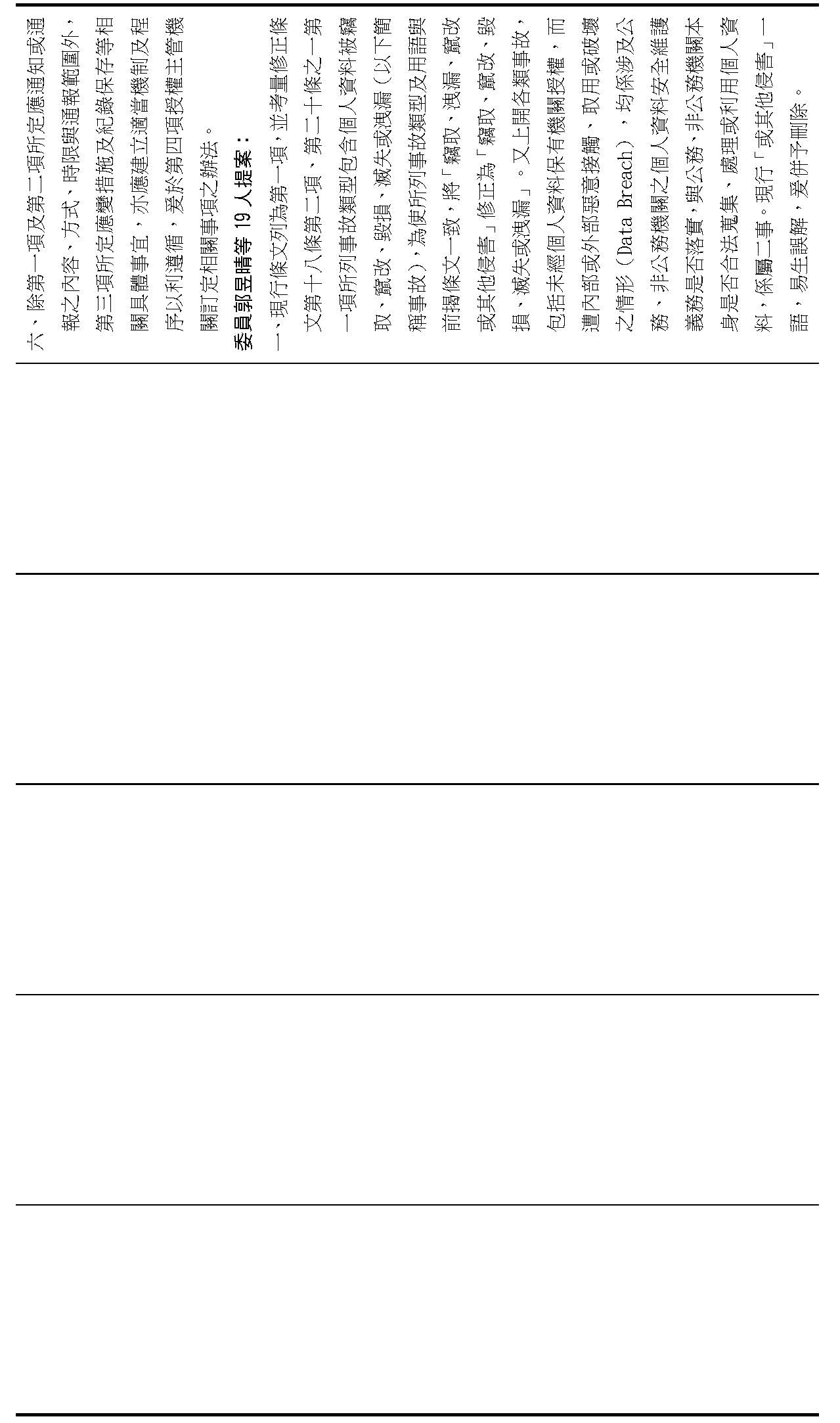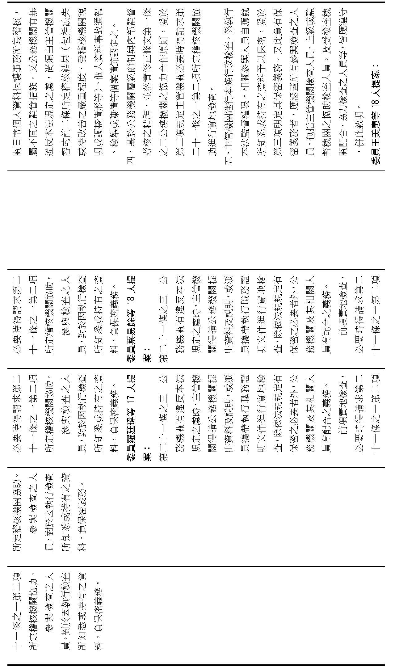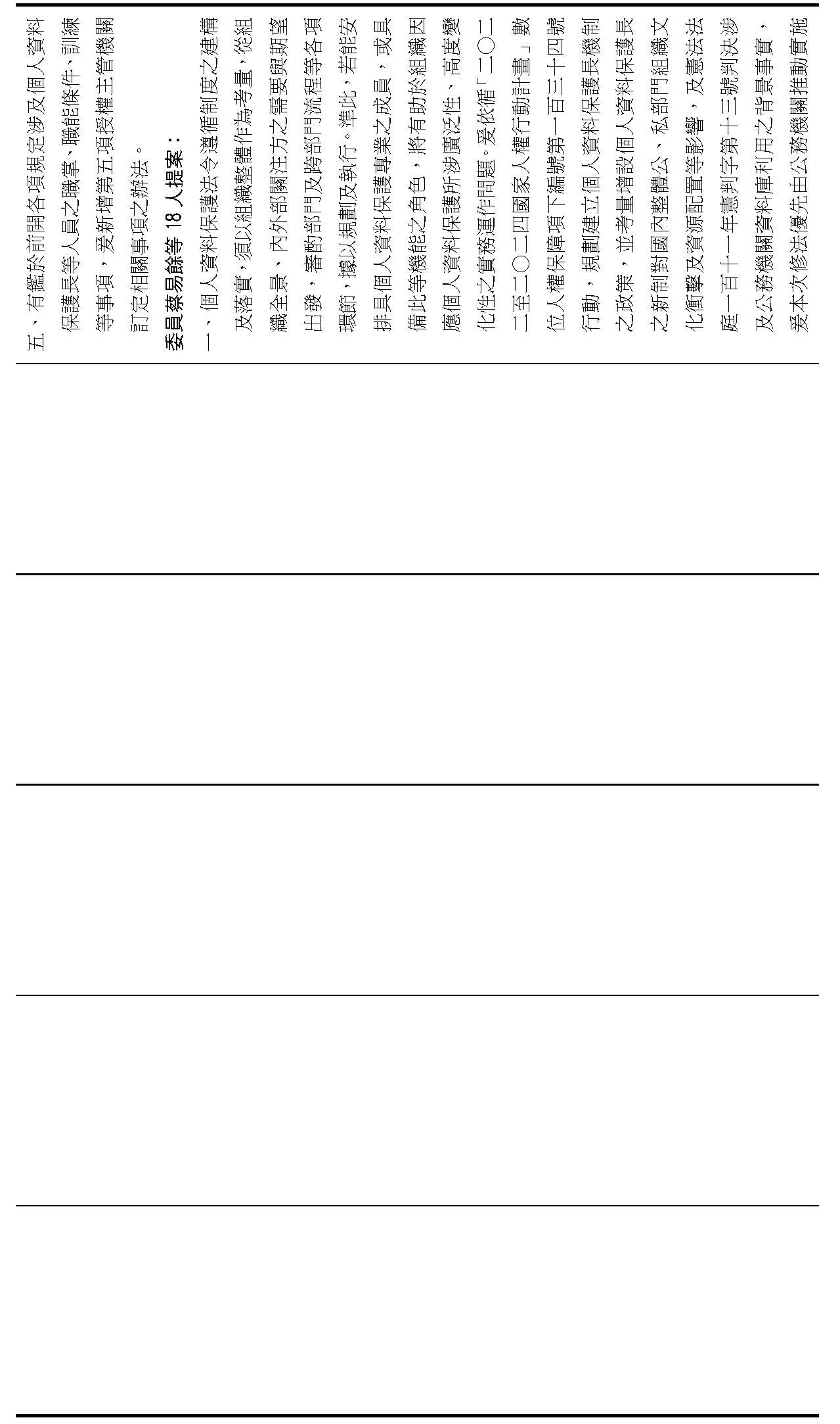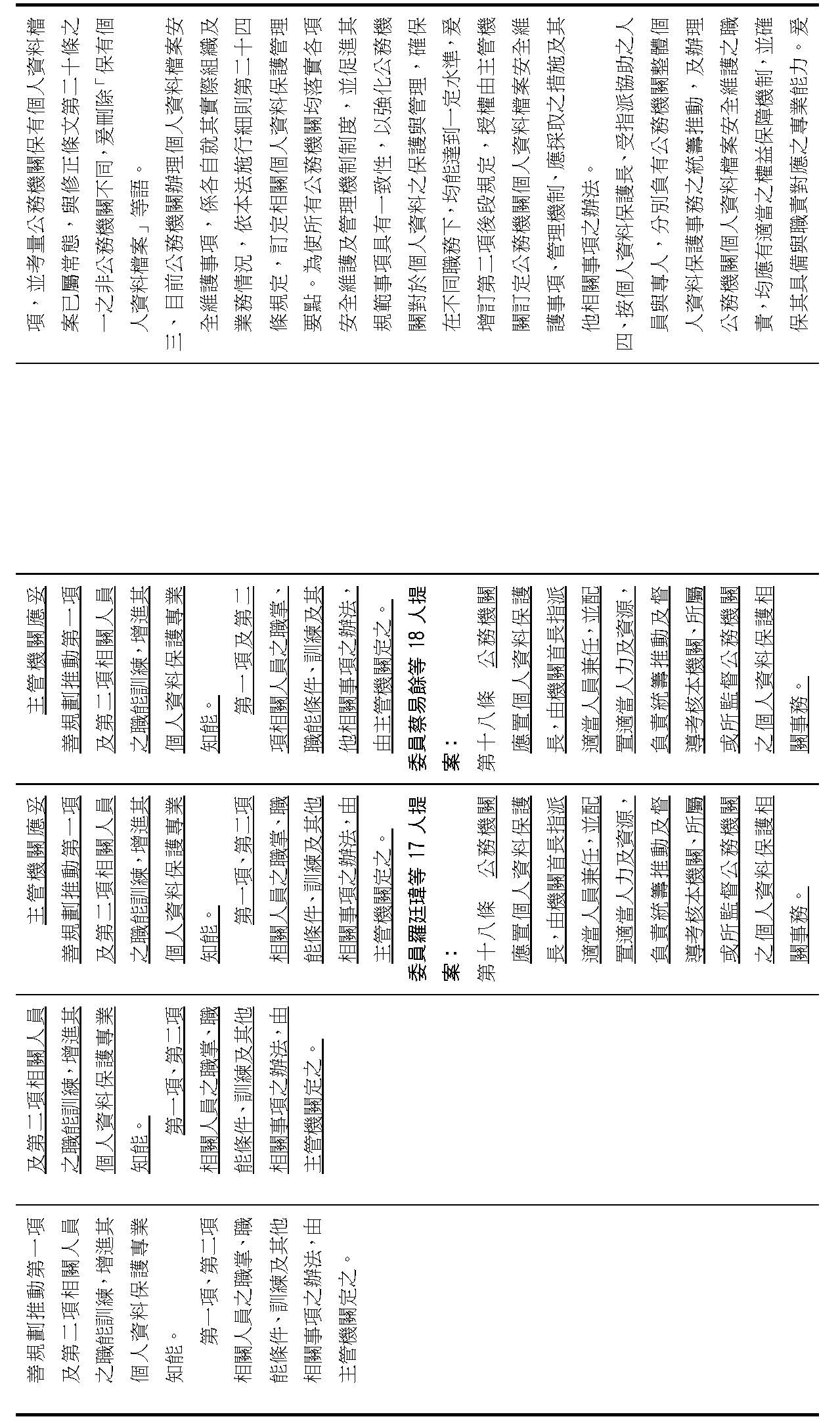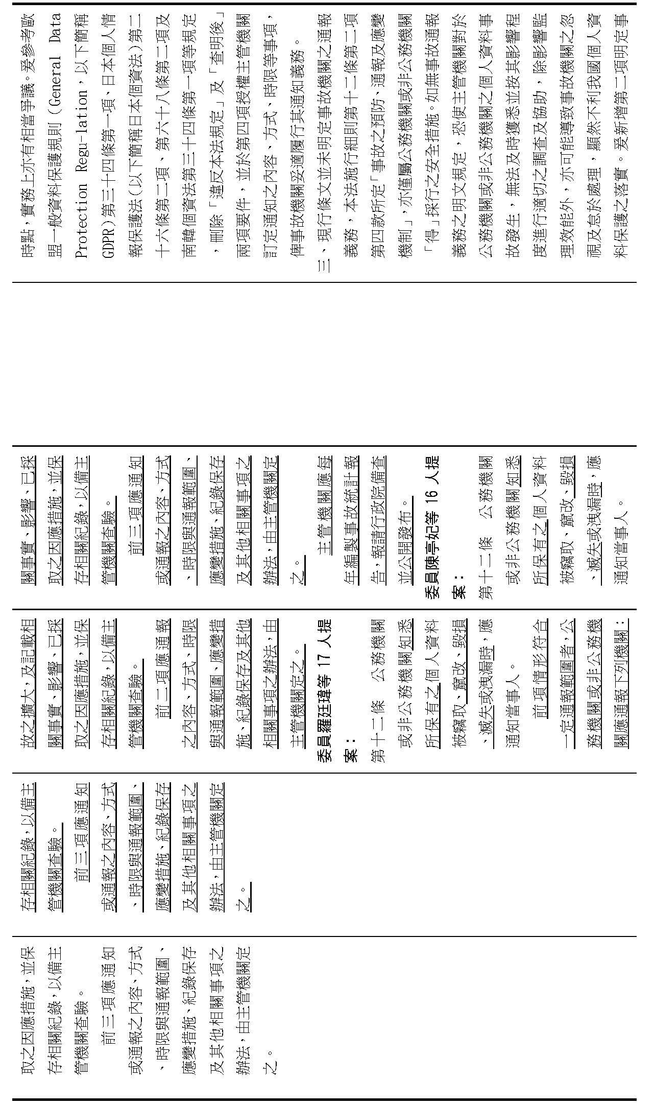 主旨:院會交付本會審查行政院函請審議「個人資料保護法部分條文修正草案」及本院委員王美惠等18人、委員羅廷瑋等17人、委員李坤城等16人、委員郭昱晴等19人、委員蔡易餘等18人、委員黃捷等16人分別擬具「個人資料保護法部分條文修正草案」、委員陳亭妃等16人擬具「個人資料保護法第十二條、第二十七條及第四十八條條文修正草案」等8案,業經併案審查完竣,並決議須交由黨團協商,復請提報院會討論。