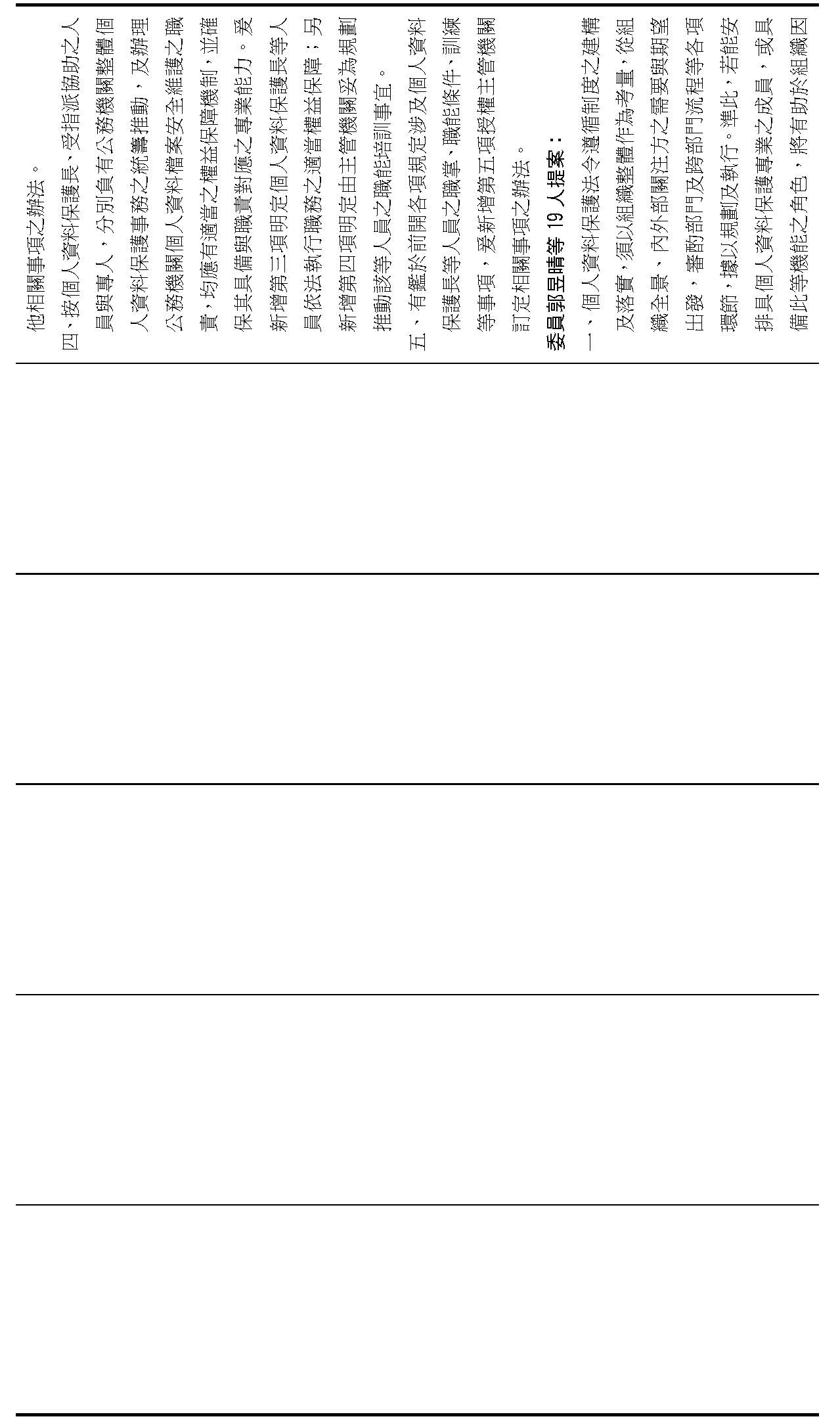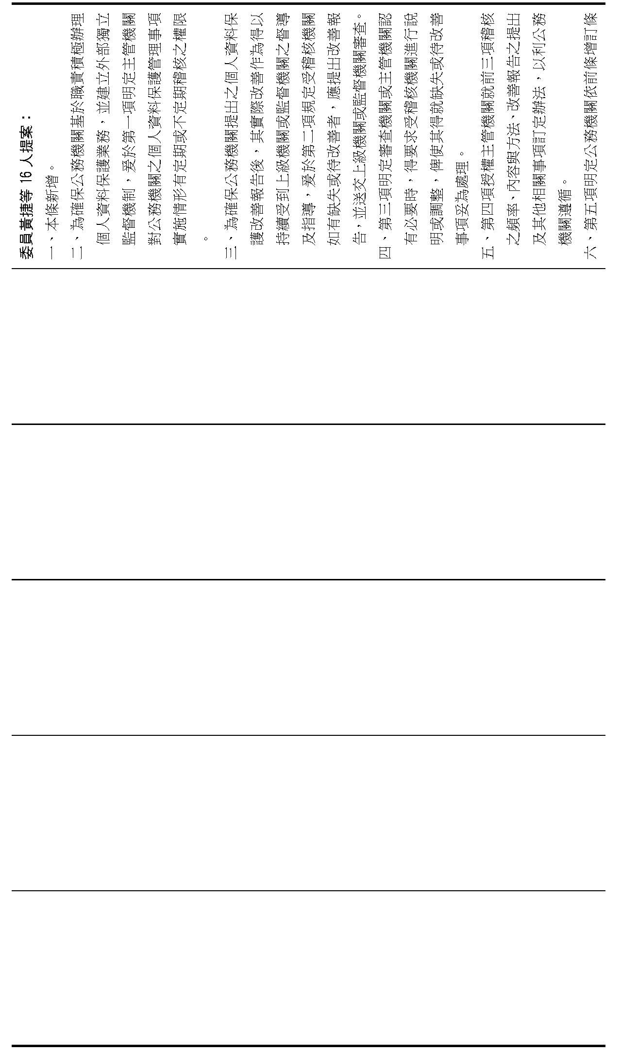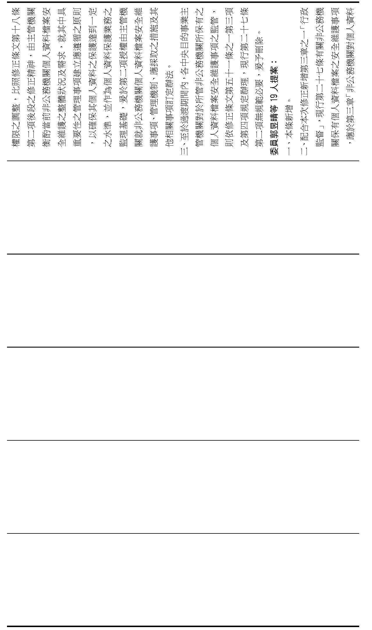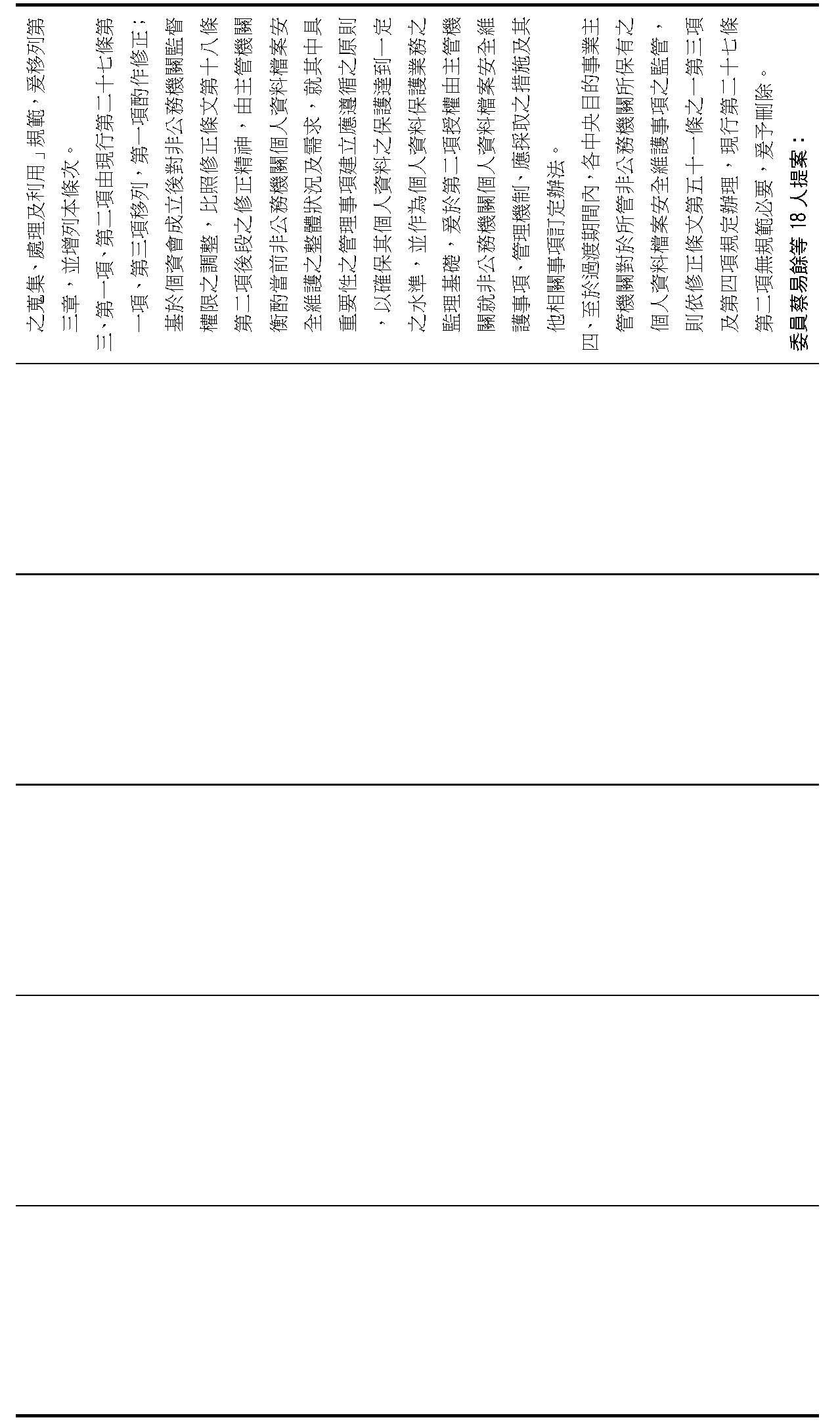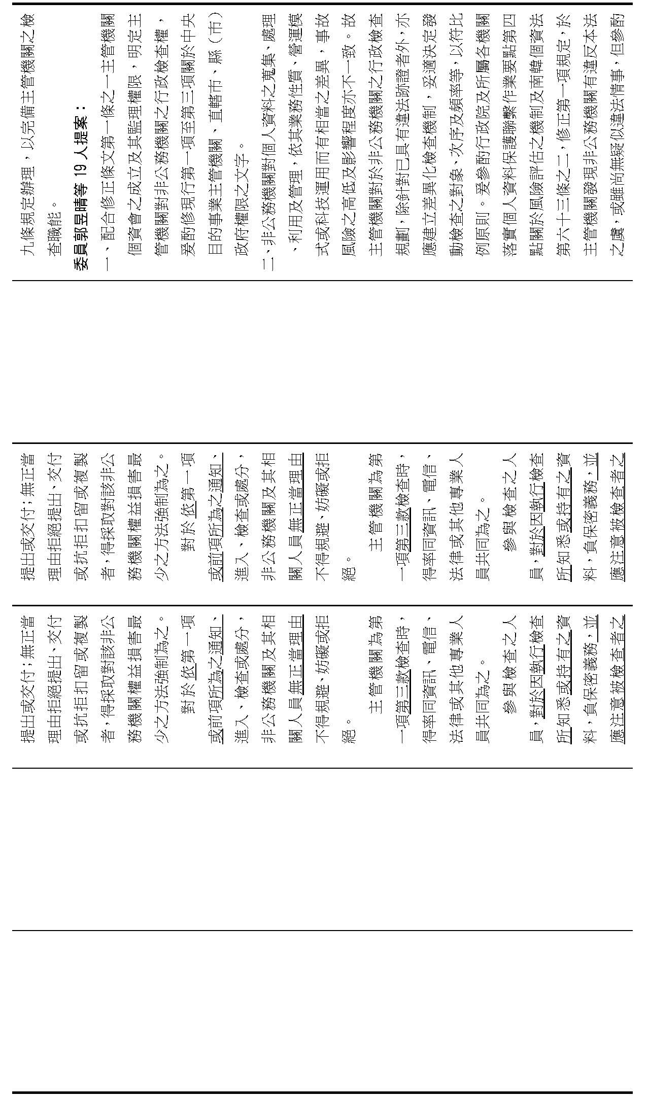 主旨:院會交付本會審查行政院函請審議「個人資料保護法部分條文修正草案」及本院委員王美惠等18人、委員羅廷瑋等17人、委員李坤城等16人、委員郭昱晴等19人、委員蔡易餘等18人、委員黃捷等16人分別擬具「個人資料保護法部分條文修正草案」、委員陳亭妃等16人擬具「個人資料保護法第十二條、第二十七條及第四十八條條文修正草案」等8案,業經併案審查完竣,並決議須交由黨團協商,復請提報院會討論。