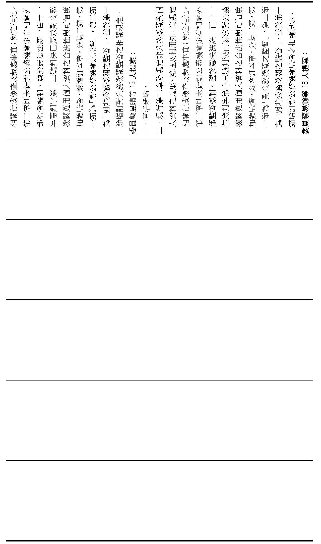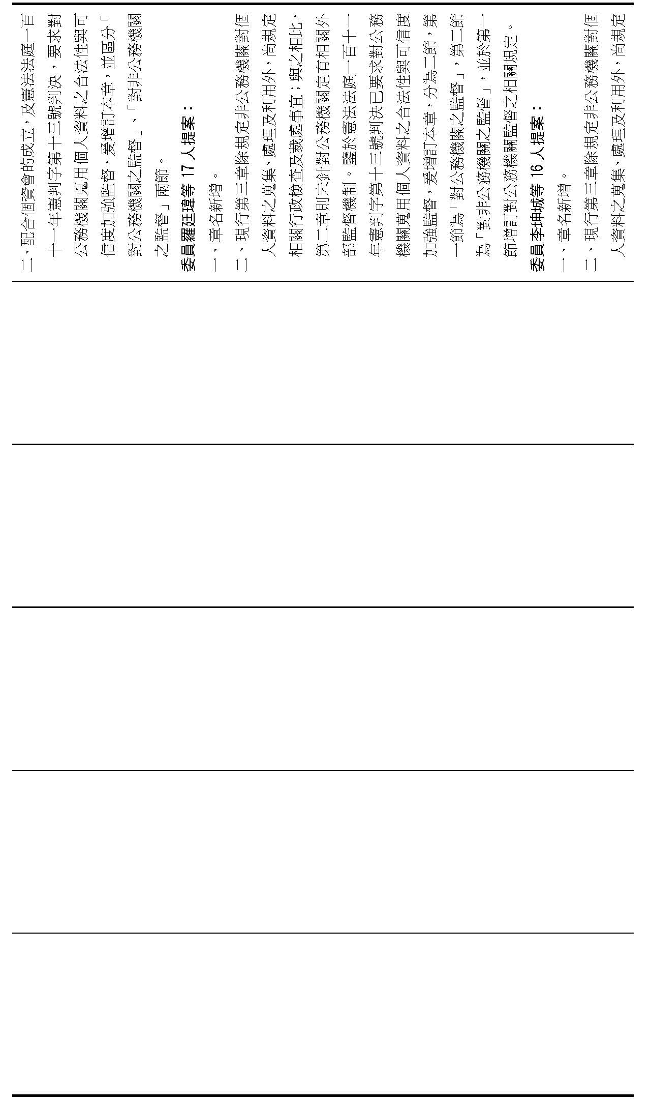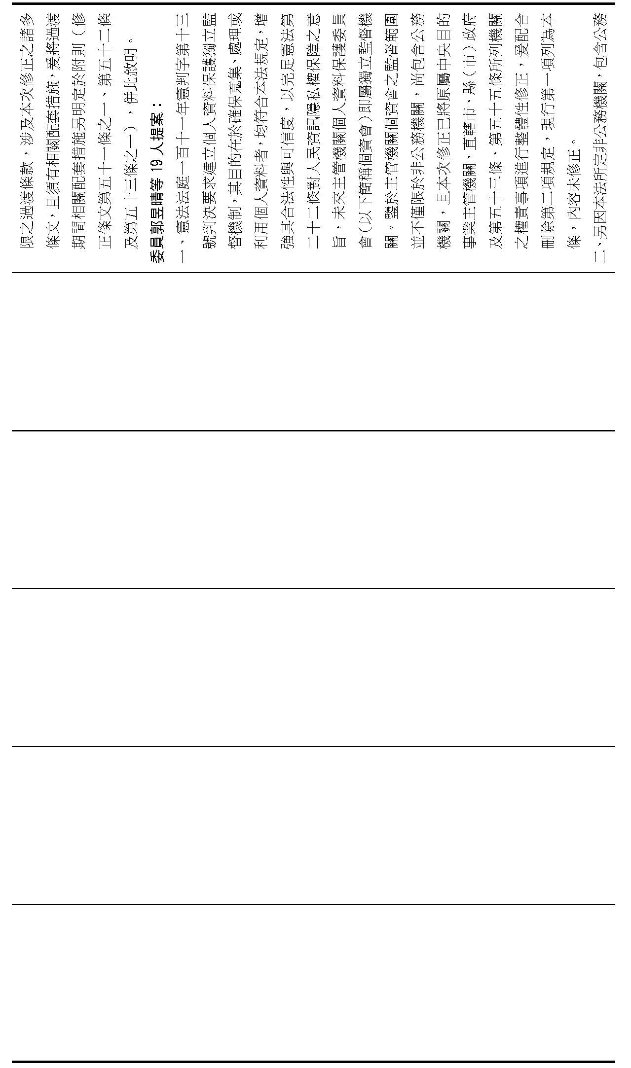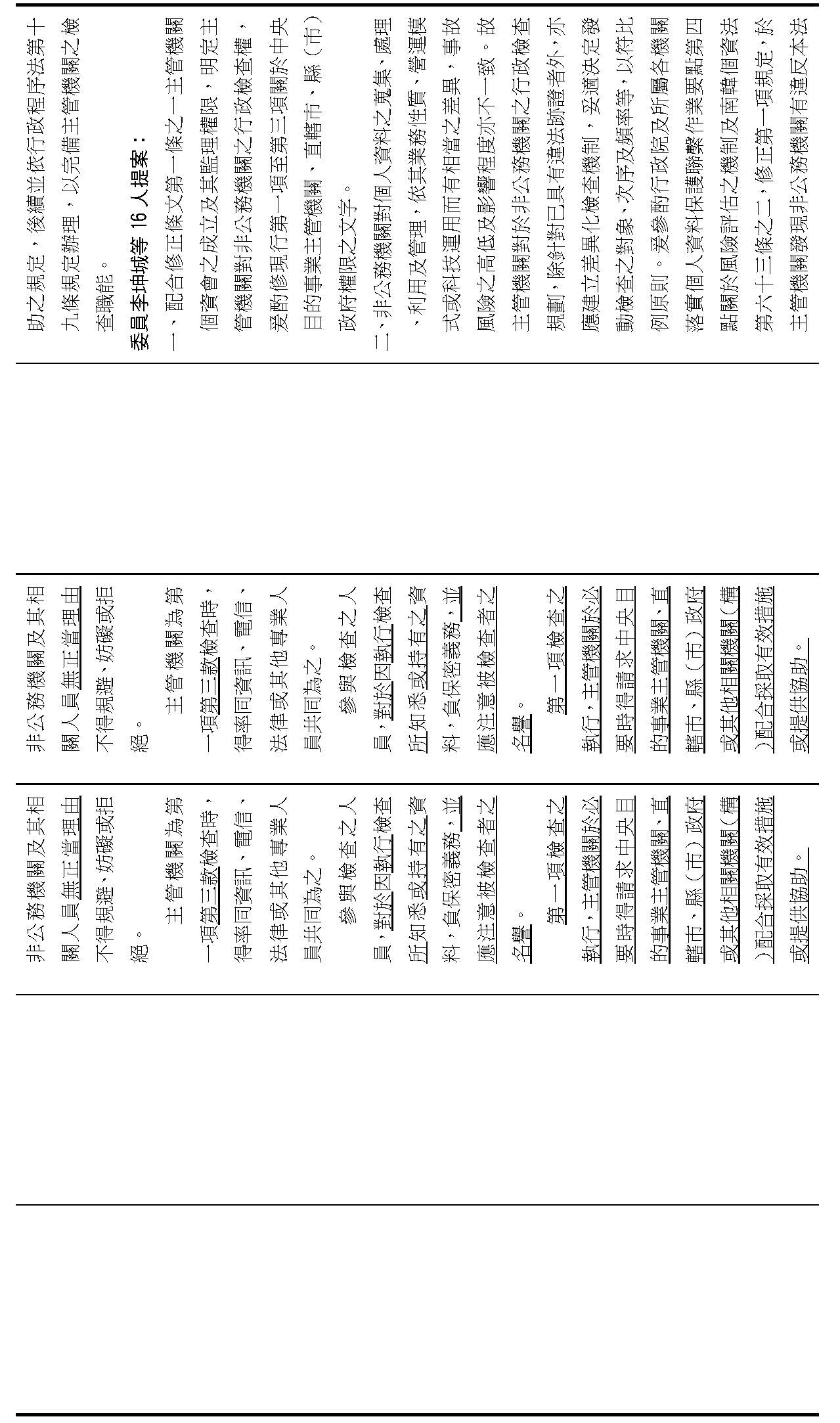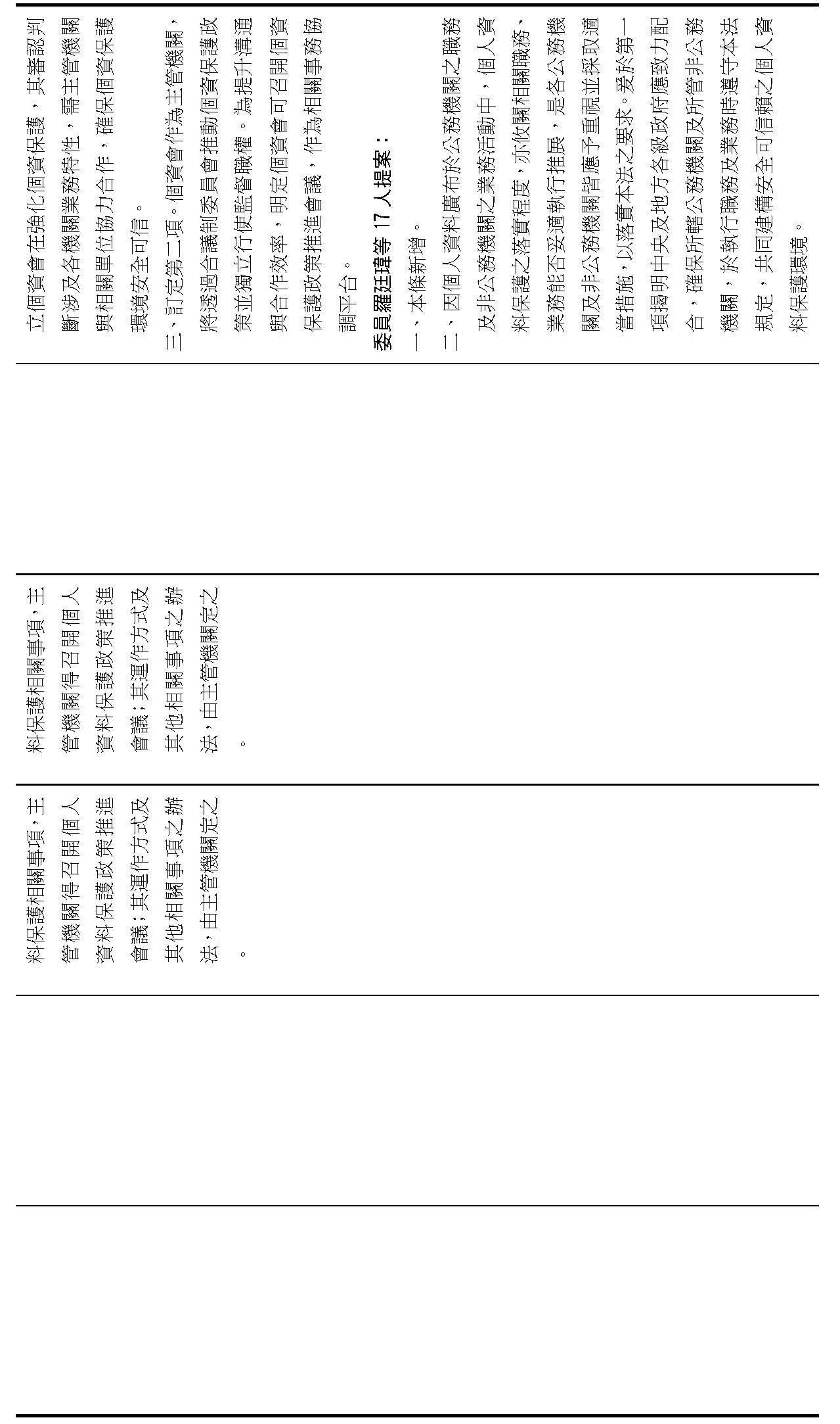 主旨:院會交付本會審查行政院函請審議「個人資料保護法部分條文修正草案」及本院委員王美惠等18人、委員羅廷瑋等17人、委員李坤城等16人、委員郭昱晴等19人、委員蔡易餘等18人、委員黃捷等16人分別擬具「個人資料保護法部分條文修正草案」、委員陳亭妃等16人擬具「個人資料保護法第十二條、第二十七條及第四十八條條文修正草案」等8案,業經併案審查完竣,並決議須交由黨團協商,復請提報院會討論。